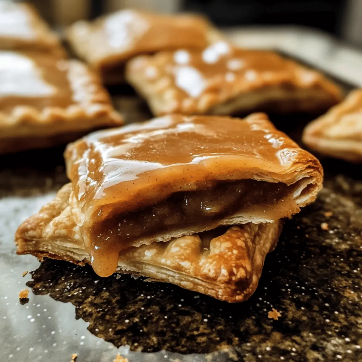 Während ich durch die herbstlichen Gassen schlenderte, wurde ich von dem verführerischen Duft von frischen Äpfeln und Zimt umhüllt. Da wusste ich, es ist Zeit für ein neues Lieblingsrezept: Apfel Pop Tarts mit selbstgemachter Apfelbutter. Diese flaumigen, buttrigen Pastries sind nicht nur ein köstlicher Morgengenuss, sie zaubern auch ein Stück Herbst auf euren Tisch! Die Zubereitung ist durch die Verwendung von hausgemachter Apfelbutter ein wahrer Genuss: Ihr könnt die Süße nach Belieben anpassen. Und das Beste? Sie sind schnell zubereitet und machen sich hervorragend als Snack für zwischendurch. Seid ihr bereit, eure Küche mit dem perfekten herbstlichen Frühstück zu verwandeln? Lasst uns loslegen und diese unwiderstehlichen Leckereien zaubern! Warum sind diese Apfel Pop Tarts so besonders? Frisch gebacken: Die Kombination aus flockigem Teig und einer süßen, hausgemachten Apfelbutter lässt das Herz eines jeden Feinschmeckers höher schlagen. Schnell und einfach: Dank der einfachen Zubereitung sind sie ideal für alle, die in der Küche nicht viel Zeit verlieren wollen! Vielseitig: Ihr könnt verschiedene Füllungen und Glasuren ausprobieren, je nach Lust und Laune. Probiert sie auch warm mit einer Portion Apfel Crumble Käsekuchen dazu. Herbstflair: Diese Leckerei bringt den wahren Herbstgeschmack direkt auf den Tisch – ideal für eure Frühstückstafel oder als Snack zwischendurch. Selbstgemacht: Mit der Wahl von hausgemachter Apfelbutter könnt ihr die Süße nach eurem Geschmack anpassen und dabei auf unnötige Zusatzstoffe verzichten! Apfel Pop Tarts Zutaten Kleine Hinweise: Diese Apfel Pop Tarts mit selbstgemachter Apfelbutter sind ein wahrer Genuss! Hier sind die Zutaten, die du brauchst, um diese köstlichen Leckereien zuzubereiten. Für den Teig Weißes Mehl – sorgt für die nötige Struktur; kann durch glutenfreies Mehl ersetzt werden. Zucker – fügt dem Teig eine feine Süße hinzu; Kokoszucker ist eine gesunde Alternative. Kaltes, gesalzenes Butter – wichtig für die Fluffigkeit des Teigs; ungesalzene Butter eignet sich auch, mache aber einen Hauch Salz hinzu. Eiskaltes Wasser – bindet den Teig, ohne das Fett zu erwärmen; achte darauf, dass es sehr kalt ist. Ei (zum Bestreichen) – gibt dem Teig eine goldene Farbe; kann für eine milchfreie Option durch Milch ersetzt werden. Für die Füllung Hausgemachte Apfelbutter – die Hauptzutat für die leckere Füllung; achte darauf, dass sie nicht zu flüssig ist. Brauner Zucker (leicht gepackt) – süßt die Füllung und sorgt für zusätzliche Feuchtigkeit; Kokoszucker kann auch verwendet werden. Mehl (für die Füllung) – verdickt die Füllung und verhindert, dass sie zu flüssig wird. Zimt – gibt der Füllung eine wärmende Note und intensiviert den Apfelgeschmack; Muskatnuss ist eine weitere schöne Variante. Für die Glasur Puderzucker – süßt die Glasur und sorgt für eine glatte Konsistenz. Apfelwein – bringt Geschmack in die Glasur; kann auch durch Apfelsaft oder Milch ersetzt werden. Mit diesen köstlichen Zutaten zauberst du im Handumdrehen deine eigenen Apfel Pop Tarts mit selbstgemachter Apfelbutter – perfekt für den herbstlichen Genuss! Schritt-für-Schritt-Anleitung für Apfel Pop Tarts mit selbstgemachter Apfelbutter Step 1: Apfelbutter vorbereiten Falls du deine Apfelbutter selbst machst, beginne damit, die Äpfel zu schälen, zu entkernen und klein zu schneiden. Koche sie in einem Topf mit Zucker und Zimt, bis sie weich sind (ca. 20-30 Minuten). Püriere die Mischung glatt und lasse sie abkühlen, bevor du mit den Pop Tarts fortfährst. Step 2: Teig zubereiten Gib das Mehl und den Zucker in eine Küchenmaschine und pulsiere kurz, um sie zu vermischen. Füge kalte Butter in kleinen Stücken hinzu und püriere, bis die Mischung groben Sandkörnern ähnelt. Füge das eiskalte Wasser hinzu, bis sich der Teig bildet. Forme ihn zu einer Scheibe, wickele ihn in Frischhaltefolie und lasse ihn 1 Stunde im Kühlschrank ruhen. Step 3: Füllung mischen In einer Schüssel vermischst du die selbstgemachte Apfelbutter, den braunen Zucker, das Mehl und den Zimt. Rühre die Mischung gut um, bis sie eine glatte Konsistenz erreicht. Diese köstliche Füllung wird später zwischen den Teigstücken der Apfel Pop Tarts platziert. Step 4: Teig ausrollen Nehme den gekühlten Teig aus dem Kühlschrank und rolle ihn auf einer leicht bemehlten Arbeitsfläche auf eine Dicke von etwa 3 mm aus. Achte darauf, dass die Form gleichmäßig ist und in Rechtecke geschnitten wird. Verwende einen Teigschneider oder ein scharfes Messer, um gleich große Teile zu formen. Step 5: Pop Tarts zusammensetzen Auf der Hälfte der Teigrechtecke verteilst du großzügig die Apfel-Füllung. Lege die restlichen Rechtecke darauf und drücke die Ränder mit einer Gabel fest, um sie zu versiegeln. Stich in die Oberseite jeder Pop Tart einige kleine Löcher, damit die Dampf entweichen kann, während sie backen. Step 6: Eierwasch auftragen Verquirle ein Ei in einer kleinen Schüssel und benutze einen Pinsel, um die Oberflächen der Pop Tarts mit der Eimischung zu bestreichen. Dies gibt der Oberfläche einen goldenen Glanz beim Backen. Leg die fertigen Teigtaschen für 15-20 Minuten in den Gefrierschrank, um die Form zu stabilisieren. Step 7: Backen Heize den Ofen auf 175°C (350°F) vor. Lege die vorbereiteten Pop Tarts auf ein mit Backpapier belegtes Blech und backe sie 30-35 Minuten lang, bis sie goldbraun sind. Achte darauf, dass sie gleichmäßig backen und ein herrlicher Duft durch die Küche zieht. Step 8: Glasur zubereiten Vermische in einer Schüssel Puderzucker, Apfelbutter und Apfelwein zu einer glatten Glasur. Rühre, bis keine Klumpen mehr vorhanden sind. Diese süße Glasur wird über die abgekühlten Apfel Pop Tarts gegossen, um ihnen eine köstliche und glänzende Oberflächen zu verleihen. Step 9: Abkühlen lassen Lass die Pop Tarts nach dem Backen auf einem Gitterrost komplett abkühlen, bevor du die Glasur darü