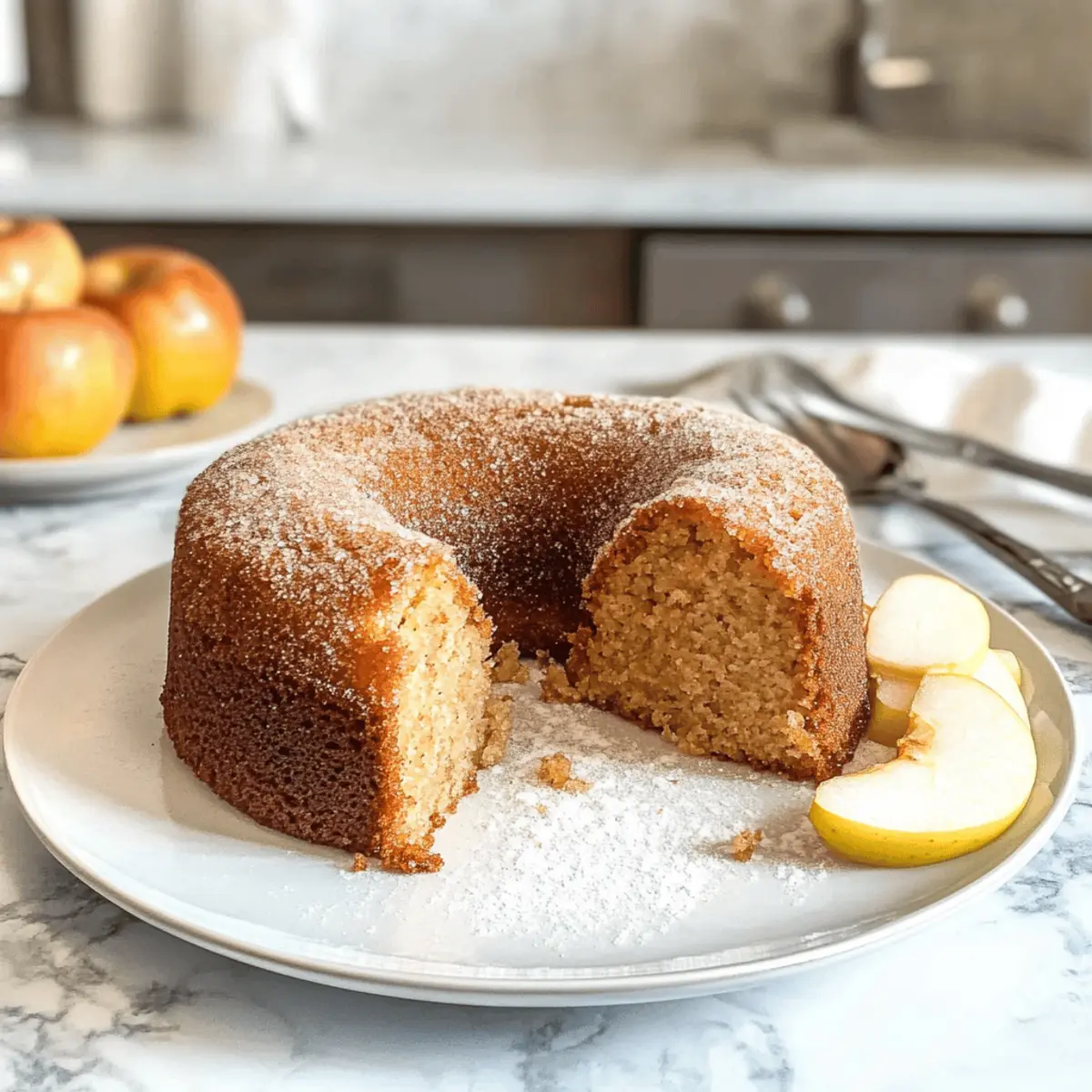 Ein saftiger Apfelwein-Donut-Kuchen mit warmen Gewürzen, perfekt für den Herbstgenuss.