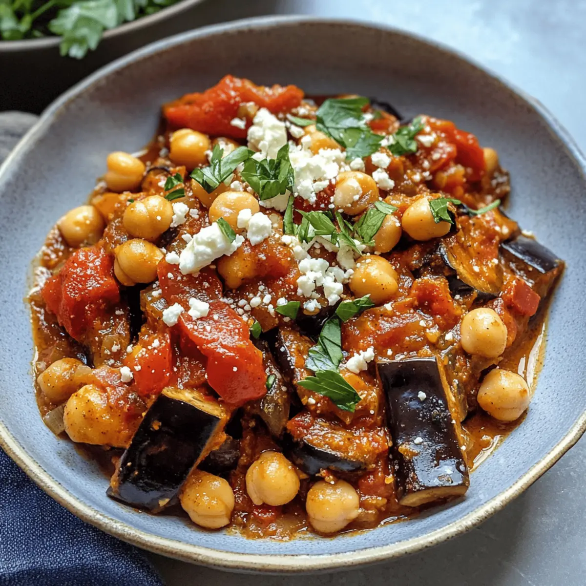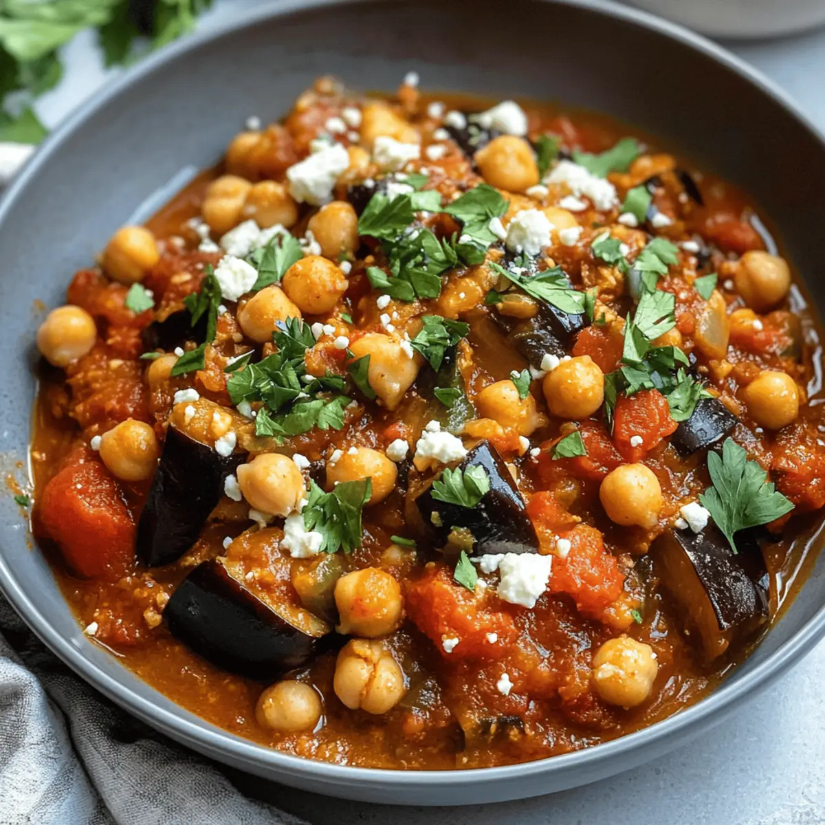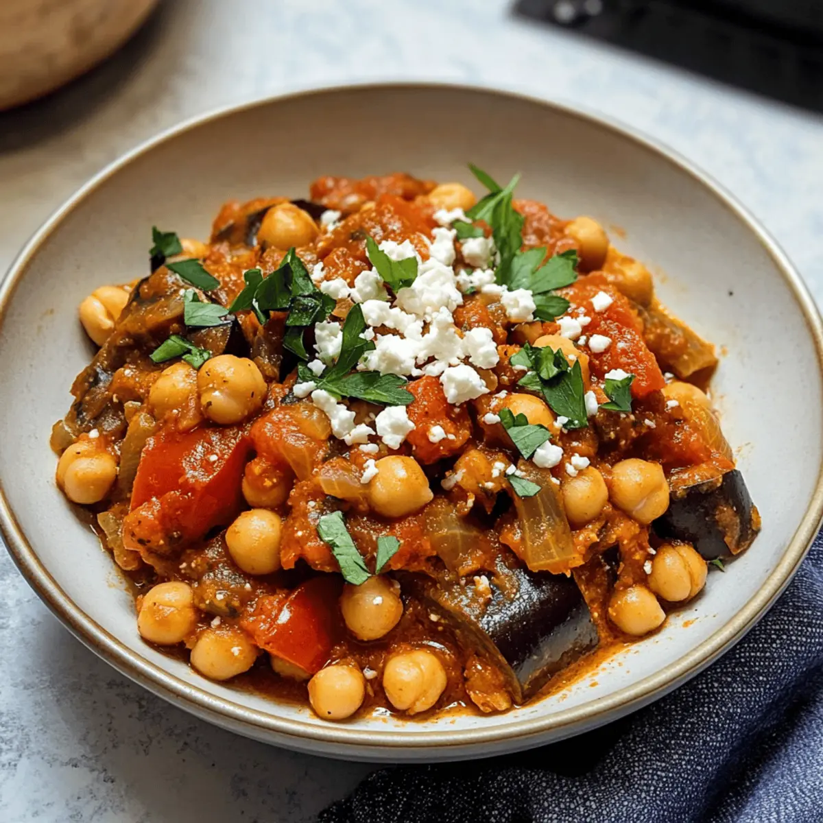 Stell dir vor, ein wärmender Duft von orientalischen Gewürzen zieht durch deine Küche und entfaltet sich beim Kochen eines köstlichen Auberginen-Eintopfs mit Kichererbsen, Tomaten und Harissa. Dieses Gericht ist nicht nur ein Paradebeispiel der nordafrikanischen Küche, sondern auch ein herzhaftes Comfort Food, das in weniger als einer Stunde zubereitet werden kann. Die Mischung aus gerösteten Auberginen, süßen Cherrytomaten und der pikanten Schärfe der Harissa zaubert ein Geschmackserlebnis, das dich umhauen wird. Egal ob für ein gemütliches Abendessen oder ein schnelles Mittagsgericht, dieser Eintopf ist eine wahre Gaumenfreude, die selbst die eingefleischtesten Fleischesser überzeugt. Bist du bereit, deine Geschmacksnerven auf eine kulinarische Reise zu schicken? Warum wirst du diesen Eintopf lieben? Aromatische Geschmacksexplosion: Der Auberginen-Eintopf kombiniert die Süße von Cherrytomaten mit der pikanten Schärfe der Harissa, was ein unvergessliches Geschmackserlebnis schafft. Schnelle Zubereitung: Mit weniger als einer Stunde Kochzeit ist dieses Gericht ideal für alle, die im Alltag wenig Zeit haben. Gesunde Zutaten: Vollgepackt mit proteinreichen Kichererbsen und ballaststoffreichen Auberginen, ist dieser Eintopf nicht nur eine köstliche, sondern auch eine nahrhafte Wahl. Vielseitigkeit: Dieser Eintopf bietet viele Anpassungsmöglichkeiten; ob du ihn vegan gestalten oder mit verschiedenen Gemüsesorten experimentieren möchtest, der Kreativität sind keine Grenzen gesetzt! Köstliches Comfort Food: Perfekt für kalte Tage, bringt dieses Gericht Wärme und Zufriedenheit auf den Tisch. Beeindruckt deine Gäste: Egal, ob du für Freunde kochst oder ein Familienessen planst, dieser Eintopf wird jedem schmecken und deine Gäste beeindrucken! Auberginen-Eintopf Zutaten • Für einen köstlichen Auberginen stew with chickpeas, tomatoes & harissa. Für den Eintopf Auberginen – Hauptzutat, sorgt für eine cremige Textur; kein vorheriges Salzen nötig. Olivenöl – Für das Anbraten und Rösten der Auberginen; verleiht dem Gericht Aroma. Meersalz – Grundwürze; einfach nach Geschmack hinzufügen. Schwarzer Pfeffer – Essenziell für die Geschmacksbalance; frisch gemahlen ist am besten. Knoblauch (6 Zehen) – Verleiht tiefes Aroma; langsames Kochen intensiviert den Geschmack. Harissa Gewürzmischung (1 EL) – Für die scharfe Note; weniger Olivenöl verwenden, falls Paste genutzt wird. Cherrytomaten (800 g, aus Dosen) – Hauptquelle für Süße und Flüssigkeit; Marke „Mutti“ bietet frischen Geschmack. Kichererbsen (400 g, Dose) – Fügt Protein und Textur hinzu; trockene Kichererbsen für noch mehr Geschmack verwenden. Sahne (2 EL oder veganer Ersatz) – Macht das Gericht reichhaltig; kann für eine vegane Variante weggelassen werden. Glatte Petersilie – Optional zur Garnierung; bringt frische Farbe ins Gericht. Fetakäse oder Schafskäse – Optional, für zusätzlichen Geschmack. Getreide (Bulgur, Reis, Quinoa, etc.) – Serviervorschlag; gekocht als Beilage für mehr Fülle. Step-by-Step Instructions for Auberginen-Eintopf mit Kichererbsen, Tomaten und Harissa Step 1: Ofen vorheizen Heize den Ofen auf 200°C (180°C Umluft) vor und lege ein Backblech mit Backpapier aus. Während der Ofen aufheizt, kannst du die Auberginen vorbereiten. Dieser Schritt ist wichtig, da das Rösten der Auberginen dem Eintopf eine tiefere Geschmacksintensität verleiht und sie schön weich macht. Step 2: Auberginen rösten Schneide die Auberginen in Würfel und mische sie in einer Schüssel mit 2 EL Olivenöl, Meersalz und schwarzem Pfeffer. Verteile die Würfel gleichmäßig auf dem Backblech und röste sie im vorgeheizten Ofen für etwa 25 Minuten, bis sie goldbraun und zart sind. Die Veränderung der Farbe zeigt, dass sie perfekt geröstet sind. Step 3: Knoblauch anschwitzen In der Zwischenzeit erhitze 2 EL Olivenöl in einem großen Topf bei mittlerer Hitze. Füge die zerdrückten Knoblauchzehen hinzu und schwitze diese an, bis sie duften, etwa 1–2 Minuten. Achte darauf, dass der Knoblauch nicht verbrennt, da dies dem Eintopf einen bitteren Geschmack verleihen könnte. Step 4: Sauce zubereiten Nun kommt die Harissa ins Spiel! Gib 1 EL Harissa zur angebratenen Knoblauchmischung hinzu und brate sie kurz an, bis die Aromen sich entfalten, etwa 30 Sekunden. Dann fügst du die Cherrytomaten und die Kichererbsen hinzu. Lasse alles für etwa 10 Minuten köcheln, bis die Sauce leicht eindickt und die Aromen sich gut vermischen. Step 5: Auberginen integrieren Nehme die gerösteten Auberginen aus dem Ofen und mische sie unter die Tomatensauce im Topf. Rühre 2 EL Sahne ein, damit der Eintopf eine cremige Konsistenz erhält. Lass den Eintopf weitere 5 Minuten bei niedriger Hitze köcheln, um die Aromen voll durchziehen zu lassen. Step 6: Anrichten und servieren Serviere den Auberginen-Eintopf in tiefen Tellern, garniert mit gehackter glatter Petersilie und optionalem Feta oder Schafskäse. Dieser Eintopf harmoniert hervorragend mit einem Beilagengetreide wie Reis, Quinoa oder Bulgur. Erlebe den vollmundigen Geschmack und die cremige Textur! Zeit sparen mit der Vorbereitung des Auberginen-Eintopfs Der Auberginen-Eintopf mit Kichererbsen, Tomaten und Harissa eignet sich hervorragend für die Vorbereitung, um Zeit in der hektischen Woche zu sparen. Du kannst die Auberginen bis zu 24 Stunden im Voraus rösten und in einem luftdichten Behälter im Kühlschrank aufbewahren, um ihre Textur und den Geschmack zu bewahren. Auch die Cherrytomaten und Kichererbsen können bereits am Vortag bereitgestellt werden. Wenn du bereit bist zu servieren, mische einfach die gerösteten Auberginen unter die vorbereitete Sauce und lasse das ganze für etwa 5 Minuten köcheln, um die Aromen gut zu vereinen. So hast du ein köstliches, hausgemachtes Gericht in kürzester Zeit und es bleibt dabei genauso lecker wie frisch zubereitet! Lagerung und Einfrieren des Auberginen-Eintopfs Kühlschrank: Der Eintopf