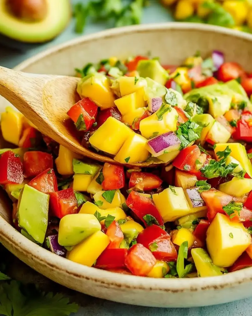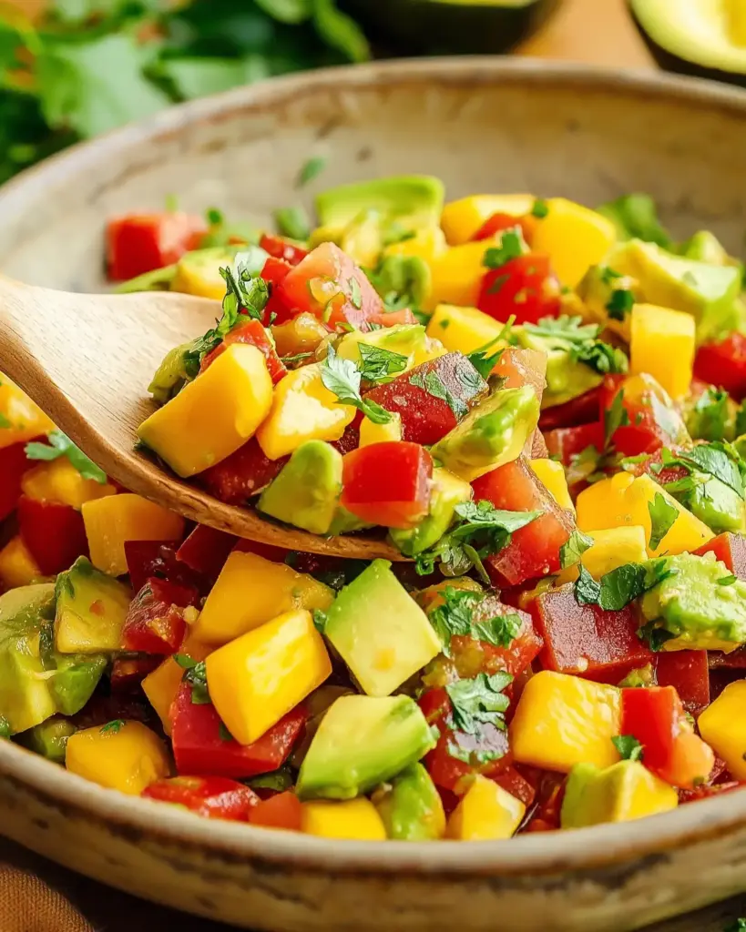 Einführung in Avocado-Erdbeer-Mango-Salsa Wenn die Sonne scheint und die Temperaturen steigen, gibt es nichts Besseres als eine erfrischende Avocado-Erdbeer-Mango-Salsa. Diese fruchtige Salsa ist nicht nur ein Genuss für die Sinne, sondern auch eine schnelle Lösung für geschäftige Tage. Sie lässt sich in nur 15 Minuten zubereiten und bringt Farbe und Geschmack auf jeden Tisch. Egal, ob Sie ein Grillfest planen oder einfach nur einen gesunden Snack möchten, dieses Rezept wird Ihre Lieben beeindrucken. Die Kombination aus cremiger Avocado, süßen Erdbeeren und saftiger Mango ist einfach unwiderstehlich und perfekt für den Sommer! Warum Sie diese Avocado-Erdbeer-Mango-Salsa lieben werden Die Avocado-Erdbeer-Mango-Salsa ist ein wahres Geschmackserlebnis, das einfach und schnell zuzubereiten ist. In nur 15 Minuten haben Sie eine frische, fruchtige Salsa, die Ihre Geschmacksknospen zum Tanzen bringt. Sie ist nicht nur gesund, sondern auch vielseitig einsetzbar – als Dip, Beilage oder sogar als Hauptgericht. Diese Salsa bringt den Sommer auf den Tisch und lässt sich wunderbar anpassen, um jedem Gaumen gerecht zu werden. Ein Genuss, den Sie nicht verpassen sollten! Zutaten für Avocado-Erdbeer-Mango-Salsa Um diese köstliche Avocado-Erdbeer-Mango-Salsa zuzubereiten, benötigen Sie einige frische Zutaten, die leicht zu finden sind. Hier ist eine Übersicht: Avocados: Wählen Sie reife, aber feste Avocados. Sie sollten leicht auf Druck nachgeben, aber nicht matschig sein. Diese bringen die cremige Textur in die Salsa. Erdbeeren: Frische, saftige Erdbeeren sind ein Muss. Achten Sie darauf, dass sie rot und süß sind. Sie können auch gefrorene Erdbeeren verwenden, wenn frische nicht verfügbar sind. Mango: Eine reife Mango sorgt für die süße Note. Wenn Sie keine Mango finden, können Sie auch Pfirsiche oder Nektarinen verwenden. Rote Zwiebel: Diese verleiht der Salsa einen knackigen Biss. Wenn Sie es milder mögen, können Sie auch Frühlingszwiebeln verwenden. Limette: Der Saft bringt Frische und Säure. Achten Sie darauf, frische Limetten zu verwenden, um den besten Geschmack zu erzielen. Koriander: Frischer Koriander gibt der Salsa ein aromatisches Flair. Wenn Sie kein Koriander-Fan sind, können Sie ihn durch Petersilie ersetzen. Salz und Pfeffer: Diese Gewürze runden den Geschmack ab. Verwenden Sie nach Belieben, um die Aromen zu verstärken. Die genauen Mengenangaben finden Sie am Ende des Artikels, wo Sie auch eine druckbare Version des Rezepts erhalten können. So haben Sie alles, was Sie brauchen, um diese erfrischende Salsa zuzubereiten! So machen Sie Avocado-Erdbeer-Mango-Salsa Schritt 1: Zutaten vermengen Beginnen Sie mit der Zubereitung Ihrer Avocado-Erdbeer-Mango-Salsa, indem Sie die gewürfelten Avocados, die frisch geschnittenen Erdbeeren und die saftige Mango in einer großen Schüssel vorsichtig vermengen. Seien Sie sanft, damit die Avocados nicht zerdrückt werden. Diese Kombination ist der Grundstein für Ihre fruchtige Salsa! Schritt 2: Zwiebel und Koriander hinzufügen Jetzt ist es Zeit, die gehackte rote Zwiebel und den frischen Koriander hinzuzufügen. Diese Zutaten bringen nicht nur Farbe, sondern auch einen herrlichen Geschmack in die Salsa. Mischen Sie alles gut, damit sich die Aromen gleichmäßig verteilen. Der Koriander verleiht der Salsa eine aromatische Frische! Schritt 3: Limettensaft hinzufügen Gießen Sie nun den frisch gepressten Limettensaft über die Mischung. Dieser Schritt ist entscheidend, denn der Limettensaft bringt eine spritzige Frische in die Salsa. Rühren Sie alles sanft um, bis die Zutaten gut vermischt sind. Der Duft wird Sie sofort begeistern! Schritt 4: Abschmecken Jetzt kommt der spannende Teil: das Abschmecken! Fügen Sie Salz und Pfeffer nach Geschmack hinzu. Probieren Sie die Salsa und passen Sie die Gewürze an, bis sie perfekt ist. Diese kleinen Anpassungen machen einen großen Unterschied im Geschmack! Schritt 5: Kühlen Um die Aromen wirklich zur Geltung zu bringen, stellen Sie die Salsa für mindestens 30 Minuten in den Kühlschrank. Dies gibt den Zutaten Zeit, sich zu verbinden und die Aromen zu intensivieren. Wenn Sie bereit sind, servieren Sie die Salsa kühl und genießen Sie die fruchtige Frische! Tipps für den Erfolg Wählen Sie reife, aber feste Avocados, um die beste Textur zu erzielen. Schneiden Sie die Früchte gleichmäßig, damit die Salsa ansprechend aussieht und die Aromen gut verteilt sind. Experimentieren Sie mit zusätzlichen Zutaten wie Jalapeños für einen scharfen Kick. Servieren Sie die Salsa frisch, um die Aromen optimal zur Geltung zu bringen. Verwenden Sie frische Limetten für den besten Geschmack – der Unterschied ist spürbar! Benötigte Ausrüstung Schneidebrett: Ein robustes Brett ist ideal zum Schneiden der Früchte. Alternativ können Sie auch ein flexibles Schneidebrett verwenden. Schneidemesser: Ein scharfes Messer erleichtert das Schneiden der Avocados, Erdbeeren und Mango. Ein Ausstecher für die Avocado kann hilfreich sein. Große Schüssel: Eine große Schüssel ist notwendig, um alle Zutaten zu vermengen. Eine Rührschüssel aus Edelstahl ist eine gute Wahl. Esslöffel: Zum Mischen und Abschmecken der Salsa. Ein Holzlöffel ist ideal, um die Zutaten sanft zu vermengen. Variationen Schärfere Variante: Fügen Sie eine gehackte Jalapeño oder eine Prise Cayennepfeffer hinzu, um der Salsa einen würzigen Kick zu verleihen. Fruchtige Vielfalt: Experimentieren Sie mit anderen Früchten wie Ananas oder Kiwi, um neue Geschmackskombinationen zu entdecken. Vegane Option: Diese Salsa ist bereits vegan, aber Sie können sie auch mit einer Prise geräuchertem Paprika verfeinern, um einen rauchigen Geschmack zu erzielen. Proteinreiche Ergänzung: Fügen Sie schwarze Bohnen oder Kichererbsen hinzu, um die Salsa nahrhafter zu machen und eine sättigende Beilage zu kreieren. Frische Kräuter: Neben Koriander können Sie auch frische Minze oder Basilikum verwenden, um der Salsa eine neue aromatis