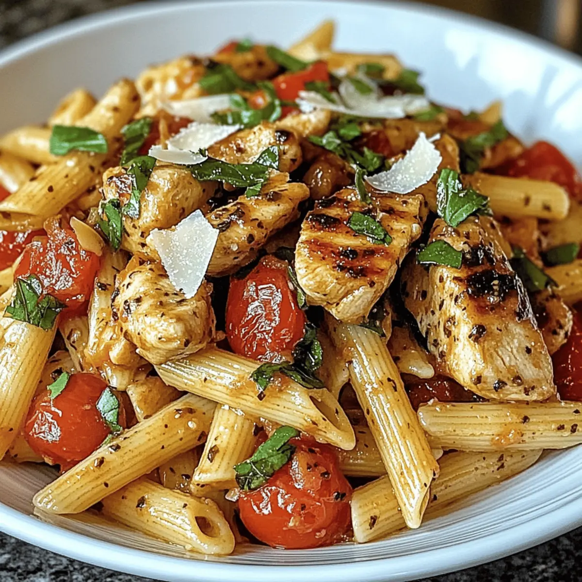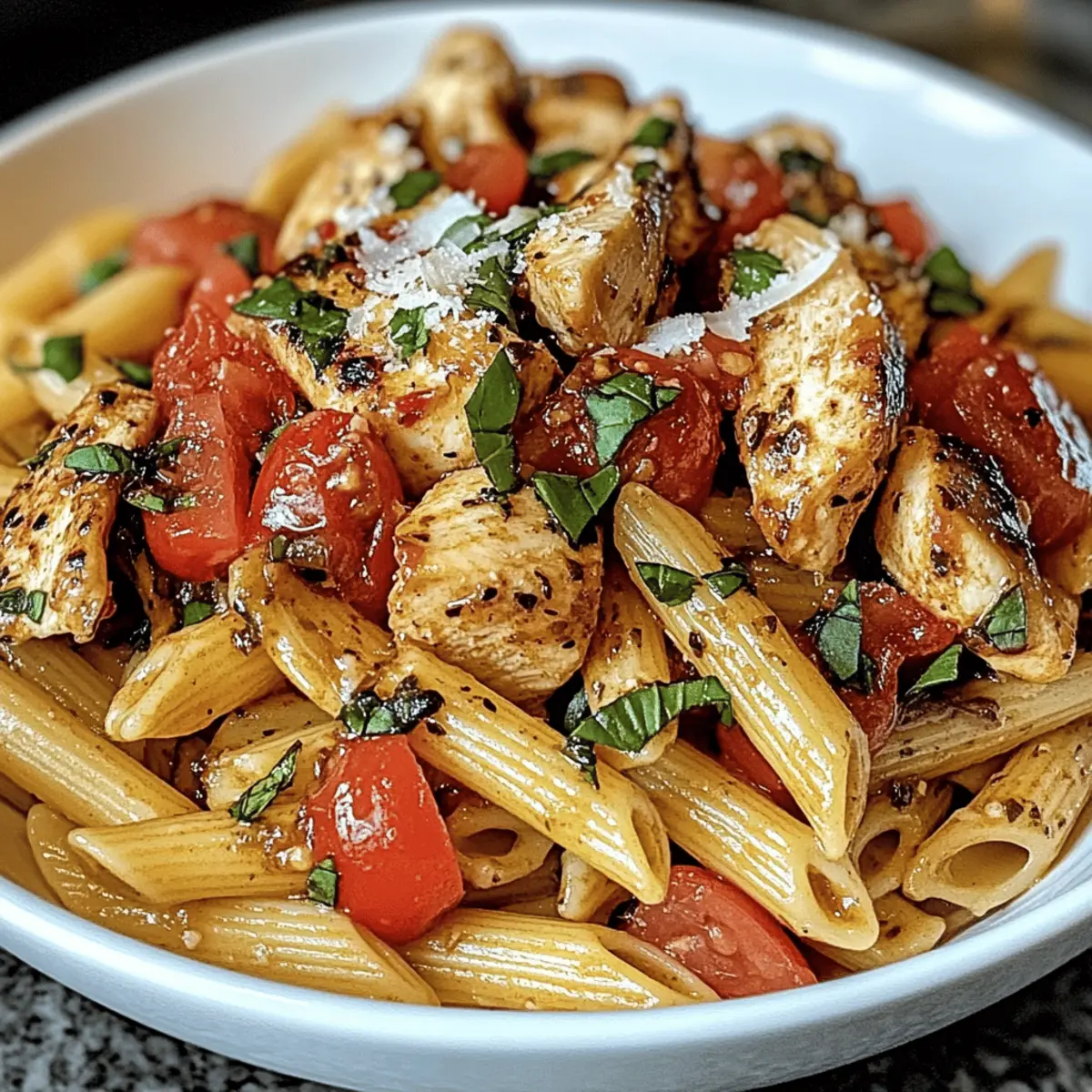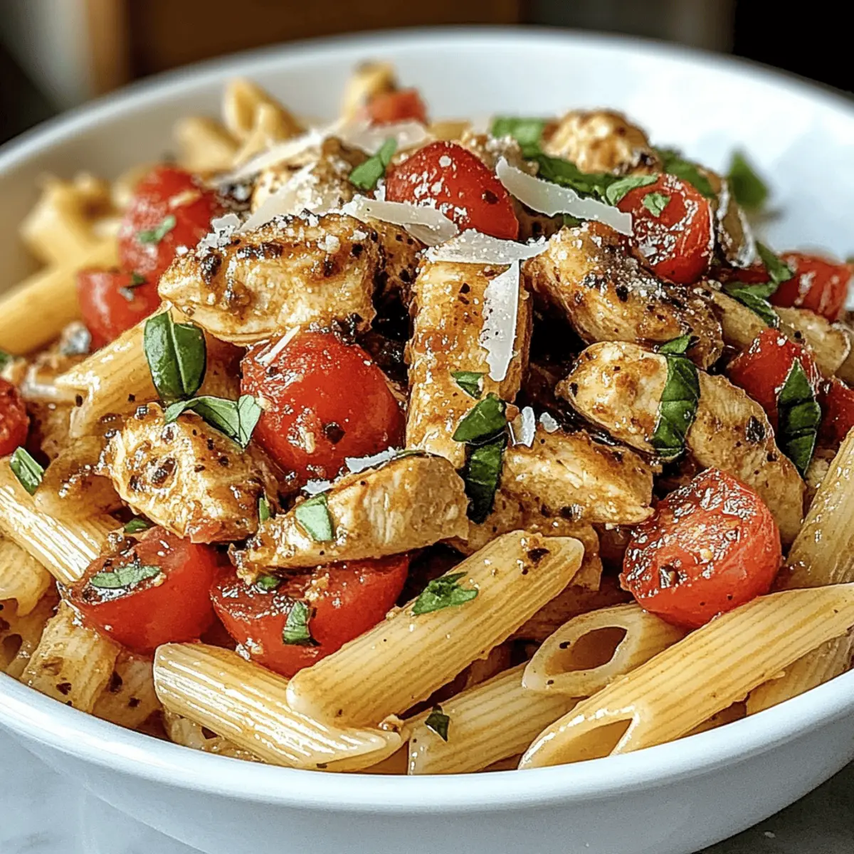 Kürzlich dachte ich darüber nach, wie oft ich in der Küche stehe und auf der Suche nach einer schnellen, aber dennoch köstlichen Lösung für ein Abendessen bin. Hier kommt die Bruschetta-Hühnchen-Pasta ins Spiel – ein Rezept, das in nur 30 Minuten auf den Tisch gezaubert werden kann und alle Gäste begeistert. Diese mediterrane Köstlichkeit vereint frische Tomaten, aromatischen Basilikum und saftiges Hühnchen und bietet somit nicht nur einen hohen Proteingehalt, sondern auch eine köstliche Abwechslung zu klassischen Fast-Food-Gerichten. Sie ist nicht nur schnell zubereitet, sondern ebenfalls anpassbar – so kannst du je nach Saison oder Vorrat im Kühlschrank kleine Varianten ausprobieren. Bist du bereit, deine Liebsten mit dieser einfachen, aber raffinierten Pasta zu verzaubern? Warum wirst du dieses Rezept lieben? Einfachheit pur: Die Zubereitung dieser Bruschetta-Hühnchen-Pasta ist unkompliziert und erfordert nur grundlegende Kochfähigkeiten. Unsagbarer Geschmack: Die Kombination aus frischen Tomaten, aromatischem Basilikum und saftigem Hühnchen sorgt für einen unwiderstehlichen Geschmack, der jeden begeistert. Anpassungsfähigkeit: Ob mit Vollkornnudeln oder gegrilltem Gemüse – du kannst das Rezept ganz nach deinem Geschmack variieren, wie zum Beispiel mit Tomaten Basilikum Pasta oder cremiger Knoblauch Rindfleisch Pasta. Schnell und nahrhaft: In nur 30 Minuten hast du nicht nur ein köstliches Essen, sondern auch eine proteinreiche Mahlzeit, die dich lange satt hält. Perfekte Konsistenz: Die Pasta wird al dente gekocht, und die Kombination aus saftigen Tomaten und zartem Hühnchen macht jedes Bissen zu einem Genuss. Bruschetta-Hühnchen-Pasta Zutaten • Entdecke die perfekten Zutaten für ein köstliches, gesundes Gericht! Für das Hühnchen Hühnchenbrust ohne Haut – Hauptproteinquelle, achte darauf, sie auf ½ Zoll zu klopfen für gleichmäßiges Garen; Hühnchenschenkel sind eine köstliche Alternative. Für die Pasta Penne-Nudeln – Basis des Gerichts; koche sie al dente für die beste Konsistenz; jede Lieblingspasta eignet sich als Ersatz. Für das Bruschetta-Topping Roma-Tomaten – Essenziell für den Bruschetta-Geschmack; ihre niedrige Feuchtigkeit hält die Stücke gut; verwende Kirschtomaten für mehr Süße. Rote Zwiebel – Fügt Süße und Crunch hinzu; kann auch mit Schalotten ersetzt oder ganz weggelassen werden. Knoblauch – Sorgt für aromatische Tiefe; frisch gehackt gibt den besten Geschmack. Frisches Basilikum – Unverzichtbar für das mediterrane Aroma; frische Kräuter sind wichtig! Für das Dressing Balsamico-Essig – Liefert die nötige Säure und den Geschmack; kein direkter Ersatz, aber Rotweinessig hat ähnliche Eigenschaften. Olivenöl – Verbessert die Textur und den Geschmack; extra vergine bevorzuge ich; Avocadoöl ist ein guter Ersatz. Für das Finish Parmesan-Käse – Für einen perfekten Abschluss; Pecorino Romano kann für mehr Schärfe verwendet werden. Salz und Pfeffer – Grundgewürze, die die Aromen verstärken. Nutze diese Zutaten für deine Bruschetta-Hühnchen-Pasta und erlebe, wie schnell und einfach ein gesundes, köstliches Gericht zubereitet werden kann! Schritt-für-Schritt-Anleitung für Bruschetta-Hühnchen-Pasta Step 1: Bruschetta-Topping vorbereiten Vermische in einer Schüssel die gewürfelten Roma-Tomaten, den frisch gehackten Knoblauch, das geschnittene Basilikum, das Olivenöl, den Balsamico-Essig sowie Salz und Pfeffer. Lass das Gemisch für mindestens 15 Minuten marinieren, damit die Aromen sich entfalten können und die Tomaten ihren Saft abgeben. Step 2: Hühnchen vorbereiten Schneide die Hühnchenbrust in gleichmäßige Schnitzel und würze sie mit Oregano, Knoblauchpulver, Salz und Pfeffer. Stelle sicher, dass die Gewürze gut verteilt sind, um ein köstliches Aroma und einen intensiven Geschmack in deiner Bruschetta-Hühnchen-Pasta zu erreichen. Step 3: Hühnchen anbraten Erhitze etwas Olivenöl in einer großen Pfanne bei mittlerer bis hoher Hitze. Brate die Hühnchenstücke für etwa 3-4 Minuten auf jeder Seite an, bis sie goldbraun sind und eine interne Temperatur von 74 °C (165 °F) erreichen. Lass das Hühnchen nach dem Braten 5-10 Minuten ruhen, bevor du es in Scheiben schneidest. Step 4: Pasta kochen Bringe in einem großen Topf ausreichend Wasser zum Kochen und füge eine großzügige Menge Salz hinzu. Koche die Penne-Nudeln gemäß der Packungsanweisungen, bis sie al dente sind. Vor dem Abgießen der Nudeln, hebe dir eine Tasse vom Nudelwasser auf, um es später in der Soße zu verwenden. Step 5: Bruschetta-Mischung erhitzen Gib die vorbereitete Bruschetta-Mischung zusammen mit etwas Olivenöl in die gleiche Pfanne, in der du das Hühnchen gebraten hast. Erhitze die Mischung sanft, um die Aromen zu intensivieren, ohne die frischen Zutaten zu kochen. Step 6: Pasta und Bruschetta kombinieren Füge die abgetropften Nudeln und etwas von dem reservierten Nudelwasser zur Bruschetta-Mischung in die Pfanne hinzu. Mische alles gut durch, sodass die Nudeln gleichmäßig mit der saftigen Tomaten-Basilikum-Soße umhüllt sind. Step 7: Servieren und garnieren Serviere die Bruschetta-Hühnchen-Pasta auf Tellern, belege sie mit den in Scheiben geschnittenen Hühnchenstücken und garniere sie mit frisch geriebenem Parmesan und zusätzlichen Basilikumblättern. Diese aromatische Präsentation macht dein Gericht besonders einladend und köstlich! Expert Tips für Bruschetta-Hühnchen-Pasta Richtig würzen: Achte darauf, das Hühnchen gut zu würzen; eine kurze Marinierzeit intensiviert den Geschmack und macht das Gericht noch köstlicher. Al dente kochen: Überkoche die Pasta nicht! Teste sie 2-3 Minuten vor der angegebenen Kochzeit, damit sie die perfekte Konsistenz hat. Frische Zutaten: Nutze frisches Basilikum und frisch gehackten Knoblauch für das Bruschetta-Topping. Das verleiht der Bruschetta-Hühnchen-Pasta ein unvergleichliches Aroma. Marinieren ist wichtig: Lasse die Bruschetta-Mischung ca.