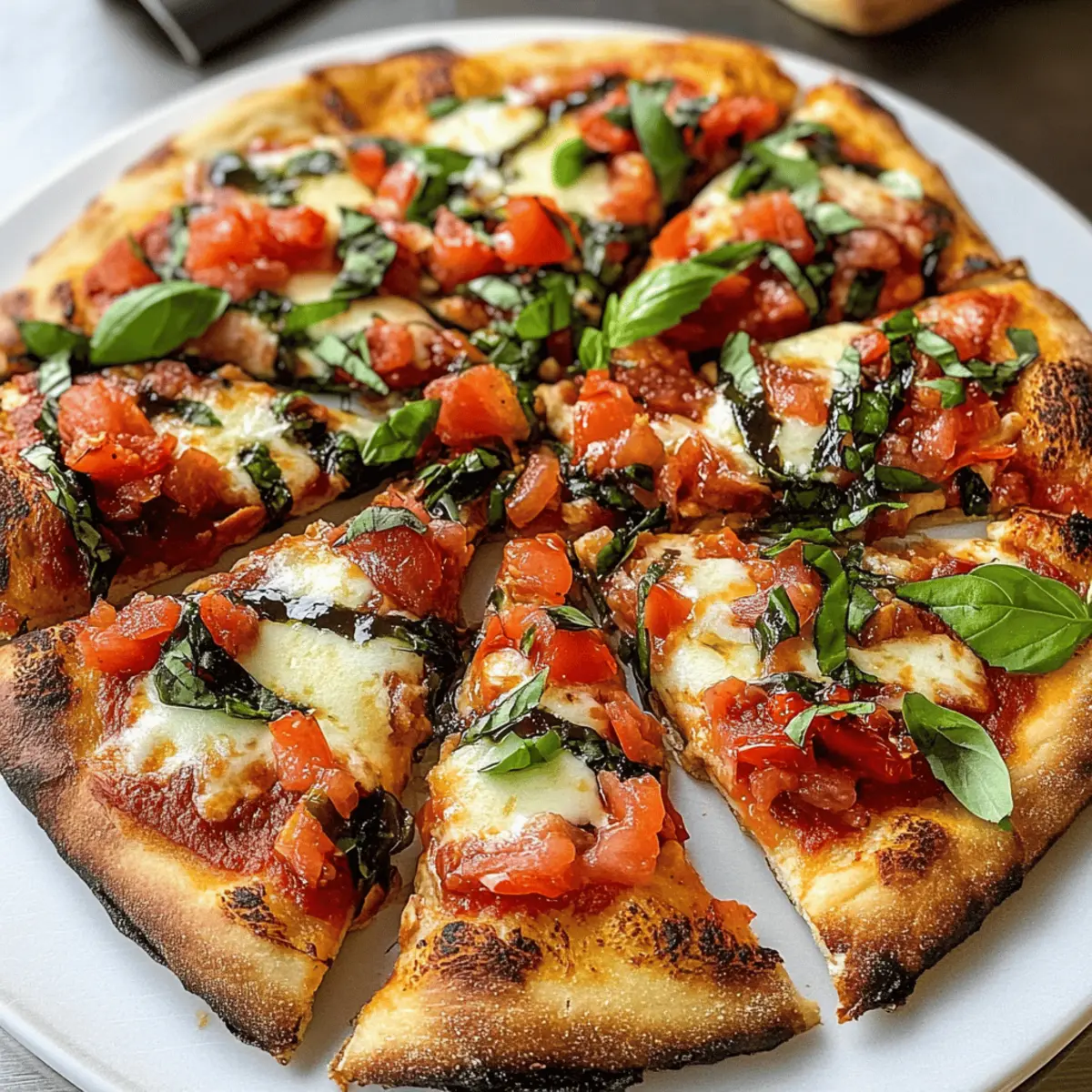 Es gibt Momente in der Küche, die sich für immer ins Gedächtnis einprägen – wie der verführerische Duft von gebackenem Brot, der durch das Haus zieht. Heute lade ich euch ein, gemeinsam mit mir diese Erinnerungen zu schaffen, während wir die 6-Zutaten Bruschetta Pizza zubereiten. Diese einfache, vegetarische Pizza verwandelt die traditionelle Pizza-Nacht in ein echtes Fest der Aromen. Mit der spritzigen DeLallo Tomaten-Bruschetta und frischem Basilikum zubereitet, ist dieses Gericht nicht nur schnell in der Zubereitung, sondern auch ein sicherer Treffer für die ganze Familie. Perfekt für einen gemütlichen Abend mit lieben Menschen oder als herzlicher Snack für das nächste Spiel – was wird euer Lieblingsmoment beim Genießen dieser kulinarischen Köstlichkeit sein? Warum ist diese Bruschetta Pizza besonders? Einfache Zubereitung: Die 6-Zutaten dieser köstlichen Bruschetta Pizza sind schnell zusammengefügt, sodass du in kürzester Zeit ein schmackhaftes Gericht servieren kannst. Frischer Geschmack: Die Kombination aus DeLallo Tomaten-Bruschetta, frischem Basilikum und schmelzendem Mozzarella sorgt für ein vibrantes Geschmackserlebnis, das deine Geschmacksnerven verwöhnt. Überraschende Vielseitigkeit: Diese Pizza kann mit verschiedenen Käsesorten oder zusätzlichen Toppings wie Oliven oder Feta erweitert werden, um neue Geschmackselemente zu entdecken. Familienfreundlich: Ideal für den gemütlichen Abend mit der Familie oder als Snack beim Spiel, diese Pizza wird sicher für glückliche Gesichter sorgen. Zeitsparend: Statt lange in der Küche zu stehen, hast du in weniger als 30 Minuten eine leckere Mahlzeit gezaubert, die gleich beim ersten Biss begeistert. Bruschetta Pizza Zutaten Für den Pizzateig • Frischer Pizzateig (1 lb) – Die Grundlage für die Pizza, die eine perfekte Kombination aus zähem und knusprigem Genuss bietet. Für die Beläge • Grated Garlic – Fügt dem Knoblauchapfel Öl aromatische Tiefe hinzu; frischer Knoblauch sorgt für den besten Geschmack. • Extra-Virgin Olive Oil – Liefert einen fruchtigen Geschmack und hilft, den Knoblauch im Teig zu infundieren; hochwertige Olivenöle sind eine hervorragende Wahl. • Mozzarella Cheese (8 oz) – Für eine cremige und sprudelnde Decke, frischer Mozzarella schmilzt am besten und bietet mehr Geschmack. • DeLallo Tomato Bruschetta (3/4 cup) – Die Hauptzutat, die voller Geschmack mit Tomaten, Basilikum und Knoblauch ist. • Fresh Basil Leaves (1/3 cup) – Bringt frische und eine pfeffrige Note, die die Reichhaltigkeit von Käse und Öl perfekt ausgleicht. Schritt-für-Schritt-Anleitungen für Bruschetta Pizza Schritt 1: Knoblauchöl vorbereiten Vermische in einer kleinen Schüssel den geriebenen Knoblauch mit dem extra-nativen Olivenöl und einer Prise Salz. Lass die Mischung einige Minuten stehen, damit sich die Aromen entfalten können. Dieses aromatische Knoblauchöl wird später auf den Pizzateig aufgetragen, um ihm einen intensiven Geschmack zu verleihen. Schritt 2: Teig vorbereiten Heize den Ofen auf 260°C (500°F) vor und stelle ein Pizzastein oder ein Backblech im Ofen bereit. Rolle den frischen Pizzateig auf einer bemehlten Backpapier-Oberfläche zu einem runden Durchmesser von 30 bis 36 cm (12 bis 14 Zoll aus). Achte darauf, dass der Teig gleichmäßig dünn ausgerollt ist, um eine perfekte Konsistenz beim Backen zu erhalten. Schritt 3: Pizza belegen Bestreiche den ausgewellten Pizzateig großzügig mit dem vorbereiteten Knoblauchöl und verteile die Mozzarella-Scheiben gleichmäßig darauf. Die Mischung aus geschmolzenem Käse und Knoblauchöl wird der Bruschetta Pizza ein köstliches Aroma verleihen, das während des Backens noch intensiver wird. Schritt 4: Backen Vorsichtig den belegten Pizzateig auf den vorgeheizten Pizzastein oder das Backblech transferieren. Backe die Pizza für etwa 10 bis 14 Minuten, bis der Rand goldbraun und der Käse sprudelnd ist. Achte darauf, dass die Pizza nicht zu lange backt, um ein Austrocknen zu vermeiden und eine optimale Konsistenz zu erreichen. Schritt 5: Belegen und Servieren Nimm die frisch gebackene Bruschetta Pizza aus dem Ofen und löffle die DeLallo Tomaten-Bruschetta gleichmäßig über die heiße Pizza. Verziere sie mit frischen Basilikumblättern und einem leichten Drizzle von Balsamico-Glasur, falls gewünscht. Schneide die Pizza in Stücke und serviere sie warm für ein köstliches Geschmackserlebnis, das jeder lieben wird. Bruschetta Pizza Variationen Lass deiner Kreativität freien Lauf und entdecke spannende Variationen, um diese Bruschetta Pizza nach deinem Geschmack anzupassen! Käsewechsel: Ersetze Mozzarella durch Ziegen- oder Feta-Käse für eine pikante Note. Diese cremigen Käsesorten bringen frischen Wind in deine Pizza! Zusätzliche Beläge: Füge geschnittene Oliven oder einen Spritzer Feta hinzu, um mehr geschmackliche Komplexität zu erreichen. Das erhöht den Genuss und sorgt für aufregende Geschmackskombinationen. Würzige Variante: Streue rote Paprikaflocken oder frisch gemahlenen schwarzen Pfeffer für einen Hauch von Schärfe über die Pizza. Dieser Kick wird deine Geschmacksknospen kitzeln! Kräuterwechsel: Experimentiere mit verschiedenen Kräutern, wie Oregano oder Thymian, um die Frische zu intensivieren. Diese Kräuter ergänzen die Tomaten-Bruschetta hervorragend. Dinkelteig: Verwende Dinkelmehl für den Pizzateig, um einen nussigen Geschmack und mehr Nährstoffe hinzuzufügen. Das ist eine großartige Option im Sinne einer gesünderen Ernährung. Süße Note: Füge ein paar Scheiben frischer Feigen oder einen Hauch Honig vor dem Servieren hinzu. Diese süße Ergänzung bringt eine interessante und köstliche Geschmacksbalance. Vegane Option: Setze auf pflanzliche Alternativen für Mozzarella und verwende vegane Butter für das Knoblauchöl. So kannst du die Pizza ganz ohne tierische Produkte genießen. Mediterraner Twist: Kreiere eine mediterrane Variante, indem du Artischocken und geröstete Paprika hi