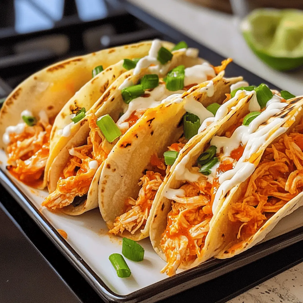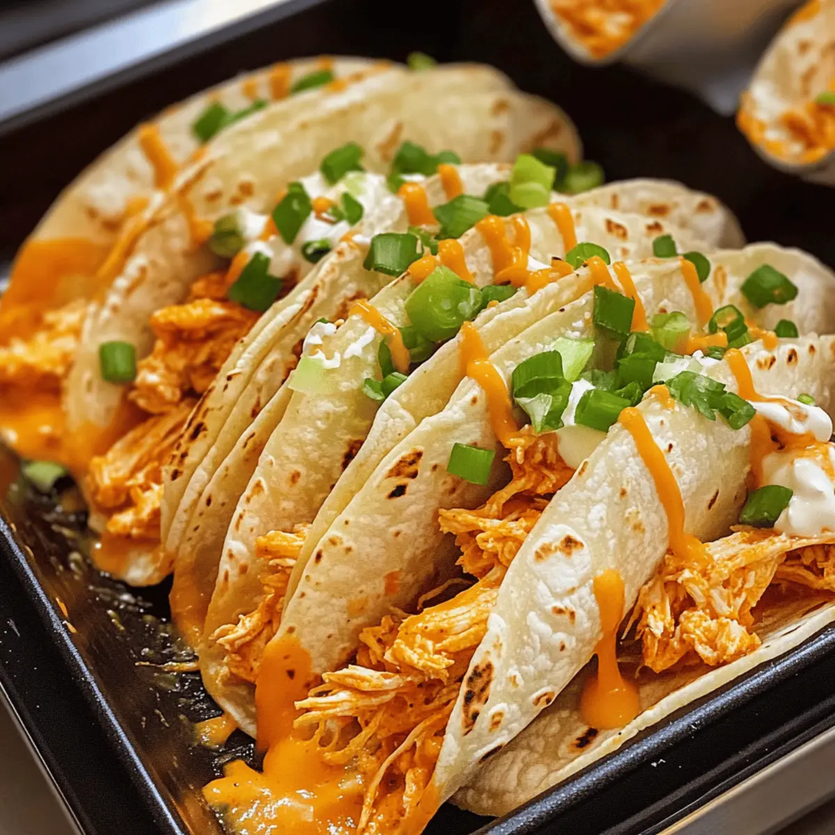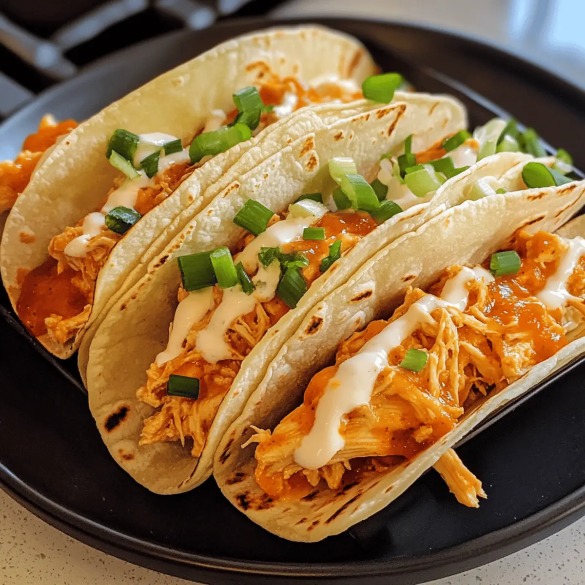 Wie oft ertappt man sich dabei, in der Küche zu stehen und nach Inspiration für das nächste Abendessen zu suchen? Das war genau mein Gedankenprozess, als ich beschloss, die köstlichen Buffalo-Hühnchen-Tacos auszuprobieren. Diese Tacos sind nicht nur im Handumdrehen zubereitet, sondern auch perfekt für die ganze Familie – jeder kann seine eigenen, individuell gestalteten Toppings wählen! Mit würzigem, saftigem Hühnchen, das in einer köstlichen Buffalo-Sauce schwimmt, und geschmolzenem Cheddar-Käse, umhüllt von knusprigen Tortillas, erwartet euch ein voller Geschmackskick. Stell dir vor, wie der erste Biss in diese würzige, herzliche Köstlichkeit dein Abendessen aufpeppt. Bist du bereit, deine Liebsten mit diesem schnellen und schmackhaften Rezept zu erfreuen? Warum sind Buffalo-Hühnchen-Tacos so beliebt? Schnelligkeit: Diese Tacos sind in kürzester Zeit zubereitet – perfekt für stressige Wochentage! Würzig und herzhaft: Die Kombination von saftigem Hühnchen und würziger Buffalo-Sauce sorgt für einen wahren Geschmackskick. Familienfreundlich: Jeder kann seine eigenen Toppings wählen, was sie zu einem idealen Abendessen für alle macht. Vielseitigkeit: Ob zusätzlich mit Jalapeños oder frischen Tomaten – die Möglichkeiten sind endlos! Ein Blickfang: Diese Tacos sind nicht nur lecker, sondern sehen auch auf dem Tisch fantastisch aus. Kombiniere sie mit Mexikanischem Reis oder Bohnen für ein komplettes Gericht, das deine Gäste beeindrucken wird! Buffalo-Hühnchen-Taco-Zutaten • Diese Buffalo-Hühnchen-Tacos sind nicht nur schnell zubereitet, sondern auch unglaublich lecker! Für die Füllung Zerreißendes Hähnchen – sorgt für eine saftige Proteinbasis. Du kannst auch auf fertiges Rotisserie-Hähnchen zurückgreifen, um Zeit zu sparen. Buffalo-Sauce – bringt die richtige Würze und Schärfe. Passe die Menge je nach persönlichem Geschmack an oder ersetze sie durch eine mildere Sauce. Weizentortillas – halten die Füllung zusammen. Für eine glutenfreie Option kannst du auch Maistortillas verwenden. Ranch-Dressing – sorgt für die nötige Cremigkeit, um die Schärfe auszubalancieren. Du kannst es auch durch Blauschimmelkäse-Dressing ersetzen, um den klassischen Buffalo-Geschmack zu verstärken. Geriebener Cheddar-Käse – schmilzt wunderbar und verleiht zusätzlichen Geschmack. Alternativen wie Pepper Jack oder Monterey Jack sorgen für variierten Schärfegrad. Gehackte Frühlingszwiebeln – bringen Frische und Textur als Garnitur. Optionales Topping Diced tomatoes – für einer zusätzlichen saftigen Komponente. Sliced jalapeños – für den extra Kick! Crumbled blue cheese – perfekt für ein klassisches Buffalo-Taco-Erlebnis. Schritt-für-Schritt-Anleitung für Buffalo-Hühnchen-Tacos Schritt 1: Hähnchen erwärmen Erhitze in einer großen Pfanne bei mittlerer Temperatur die zerreißenden Hähnchenstücke für etwa 3-5 Minuten. Rühre regelmäßig um, bis das Hähnchen durchgehend warm ist. Achte darauf, dass es nicht anbrennt und gleichmäßig erwärmt wird, damit es zart und saftig bleibt. Schritt 2: Mit der Buffalo-Sauce vermengen Füge nach dem Erwärmen die Buffalo-Sauce zum Hähnchen in der Pfanne hinzu. Mische das Hähnchen gut mit der Sauce und lasse es für weitere 2-3 Minuten köcheln, damit die Geschmäcker sich verbinden. Achte darauf, dass das Hähnchen gleichmäßig mit der würzigen Sauce überzogen ist. Schritt 3: Tortillas vorbereiten Erhitze in einer separaten Pfanne bei mittlerer Hitze eine Tortilla für etwa 30 Sekunden auf jeder Seite, bis sie warm und leicht goldbraun ist. Dies verhindert, dass die Tortilla beim Falten reißt, und verleiht ihr eine schöne, knusprige Textur. Möchtest du eine zusätzliche Knusprigkeit? Brate sie etwas länger an! Schritt 4: Tacos zusammenstellen Spread eine großzügige Menge Ranch-Dressing auf die eine Hälfte der warmen Tortilla. Darauf setzen dann das buffalo Hähnchen und eine Handvoll geriebenen Cheddar-Käse. Lass etwas Platz für das Falten der Tortilla. Die cremige Ranch-Dressing wird perfekt mit der würzigen Hähnchenfüllung harmonieren. Schritt 5: Tacos füllen und braten Klappe die Tortilla in der Mitte zusammen und lege sie in die heiße, beschichtete Pfanne. Brate die Taco für 2-3 Minuten auf jeder Seite, bis sie goldbraun sind und der Käse geschmolzen ist. Achte darauf, dass sie schön knusprig wird und das Innere angenehm warm bleibt. Schritt 6: Servieren und Garnieren Nehme die Tacos vorsichtig aus der Pfanne und lege sie auf einen Teller. Garniere die Buffalo-Hühnchen-Tacos großzügig mit gehackten Frühlingszwiebeln. Du kannst auch zusätzliche Toppings wie Diced Tomatoes oder geschnittene Jalapeños hinzufügen, um die Tacos nach deinem Geschmack zu individualisieren. Serviere sie sofort und genieße die würzigen Aromen! Buffalo-Hühnchen-Tacos Variationen Lasst eurer Kreativität freien Lauf und passt die Buffalo-Hühnchen-Tacos nach euren Wünschen an! Dairy-Free: Ersetzt den Käse durch pflanzlichen Käse und das Ranch-Dressing durch veganes Dressing für eine milchfreie Variante. Spicy Twist: Nutzt eine scharfe Sriracha-Sauce anstelle der klassischen Buffalo-Sauce, um das Feuer zu erhöhen. Glutenfrei: Tauscht die Weizentortillas gegen Mais- oder Reistortillas, um diese Tacos glutenfrei zu genießen. Shredded Beef: Verwandele die Füllung und nutze stattdessen geschreddertes Rindfleisch für einen herzhaften Geschmack. Zwei Käse: Kombiniert geriebenen Cheddar mit einem würzigen Pepper Jack für mehr Käsearoma und einen extra Kick. Fruchtige Beigabe: Füge gewürfelte Mango oder Ananas hinzu, um eine süße Note zu integrieren, die perfekt mit dem würzigen Hähnchen harmoniert. Es bringt Frische in jedes Bissen. Cremiger Ziegenkäse: Tauscht den Cheddar gegen zerbröselten Ziegenkäse für ein kräftiges, cremiges Erlebnis in euren Tacos. Grillversion: Grillt die Tortillas für eine rauchige Note, die hervorragend zu den würzigen Aromen der Tacos passt. 