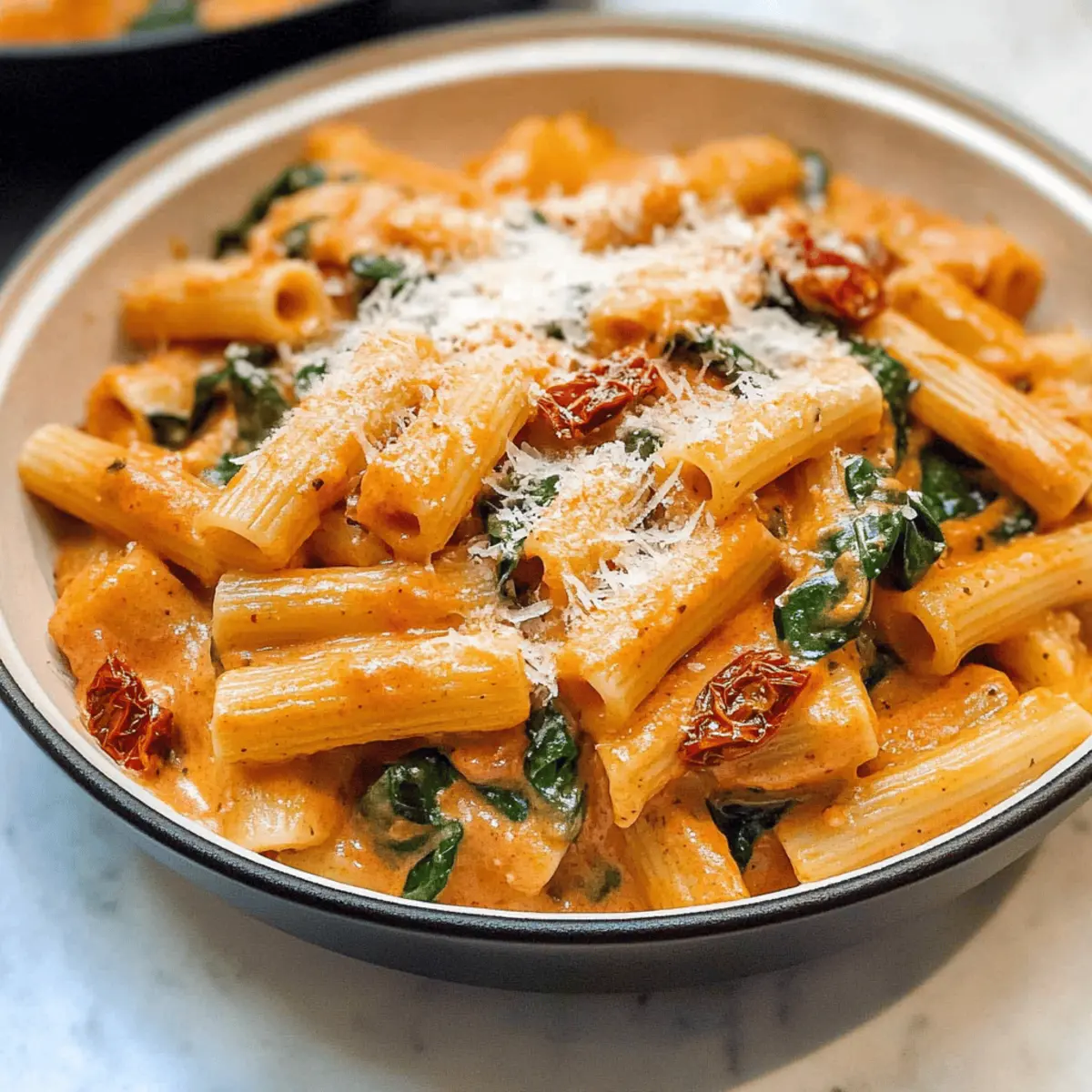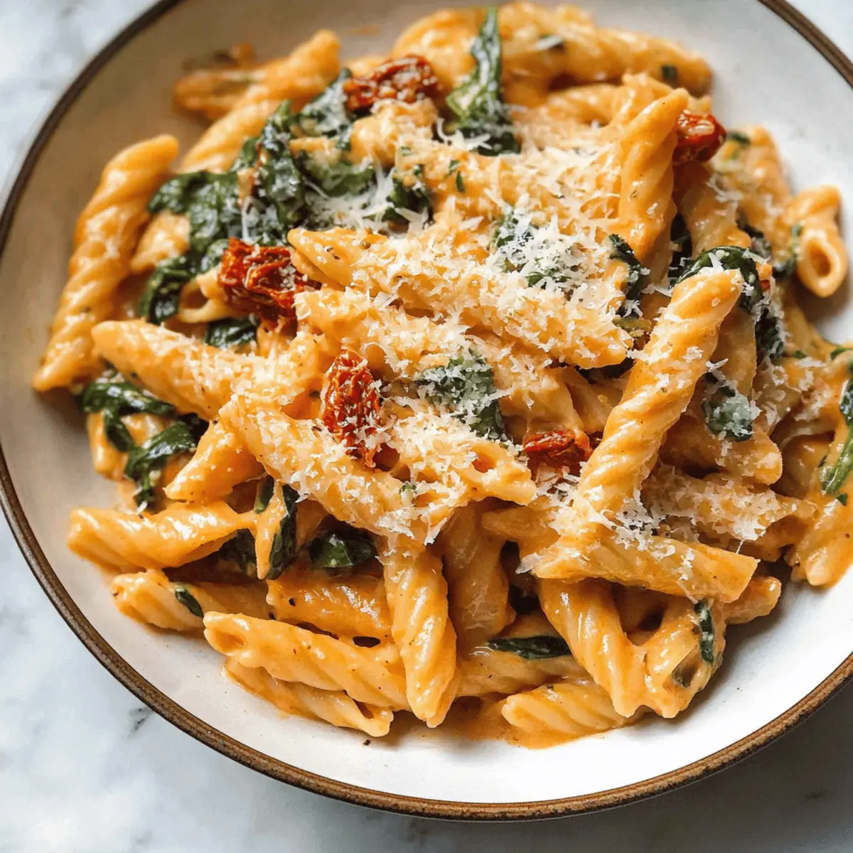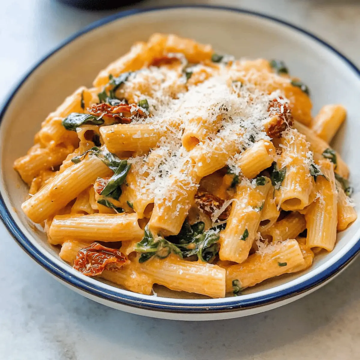 Als ich neulich in meiner Küche stand und den lockenden Duft von gerösteten Knoblauchzehen einatmete, wurde mir bewusst, dass das Rezept für die cremige getrocknete Tomaten Pasta genau das ist, was man für ein schnelles und köstliches Abendessen braucht. Diese Pasta ist nicht nur einfach und schnell zubereitet, sondern bietet auch ein überraschend cremiges Finish, das dich sofort verzaubert. Mit nur etwa 400 Kalorien pro Portion ist sie eine perfekte Wahl für alle, die sich nach einem herzhaften Gericht sehnen, ohne dabei schlechtes Gewissen zu haben. Ob für dich selbst oder um Gäste zu beeindrucken – dieses Rezept ist eine Einladung, sich jeden Bissen schmecken zu lassen. Bist du bereit, deine Kochleidenschaft auf ein neues Level zu heben? Warum wirst du dieses Rezept lieben? Einfachheit: Die Zubereitung ist unkompliziert und erfordert nur grundlegende Kochkenntnisse. Reiche Aromen: Die Kombination aus sonnengetrockneten Tomaten und frischem Basilikum sorgt für einen intensiven Geschmack, der jeden Bissen zum Genuss macht. Vielseitigkeit: Du kannst die Pasta ganz nach deinem Geschmack anpassen – füge zusätzliches Gemüse oder Protein hinzu, um Abwechslung zu schaffen. Gesunde Wahl: Mit nur 400 Kalorien pro Portion ist dieses Gericht eine leichte und nahrhafte Option. Schnell und praktisch: Perfekt für eine schnelle Mahlzeit unter der Woche oder ein gemütliches Abendessen mit Freunden. Lass dich auch von meiner anderen Rezeptidee inspirieren: Sonngetrocknete Tomaten Fettuccine, perfekt für Pasta-Liebhaber! Cremige getrocknete Tomaten Pasta Zutaten • Entdecke die köstlichen Zutaten für dieses einfache Rezept! Für die Sauce • Sonnengetrocknete Tomaten – sorgen für den tiefen, herzhaften Geschmack; verwende Öl eingelegte oder trockene, die vorher eingeweicht werden sollten. • Basilikumblätter – bringen Frische und Aroma; kannst sie durch Spinat oder zusätzliche sonnengetrocknete Tomaten ersetzen. • Joghurt/Sauerrahm – optional zur Cremigkeit; für eine würzige Note kann Zitronensaft verwendet werden. • Sahne – für die extra cremige Konsistenz; wähle mehr für eine reichhaltigere Sauce oder ersetze sie durch zusätzliche Milch. • Milch – bildet die Basis der Sauce; verwende fettarme Milch oder Vollrahm für mehr Genuss. • Tomatenmark – verstärkt die Farbe und den Geschmack; kann weggelassen werden, wenn gewünscht. • Parmesan – gibt Umami und Tiefe; Ersetze ihn durch Nährhefe für eine milchfreie Option. Für die Pasta • Pasta – das Herzstück des Gerichts; Penne oder Ziti sind ideal, glutenfreie Varianten sind ebenfalls möglich. • Öl der sonngetrockneten Tomaten – verleiht der Sauce zusätzlichen Geschmack und Reichhaltigkeit. • Knoblauchzehen – essentielle Aromen für die Geschmacksvertiefung. • Zwiebel – sorgt für süße und Fülle; jede Zwiebelart ist einsetzbar. • Frischer Spinat – bringt Nährstoffe und Farbe; kann durch jedes Blattgemüse ersetzt oder ganz weggelassen werden. Genieße die Ausgewogenheit und den Geschmack dieser cremigen getrockneten Tomaten Pasta, die geschmacklich begeistert und unter 400 Kalorien pro Portion bleibt! Schritt-für-Schritt-Anleitung für Cremige getrocknete Tomaten Pasta Step 1: Soße pürieren Vermische die sonnengetrockneten Tomaten, Basilikumblätter, Joghurt oder Sauerrahm, Sahne, Milch, Tomatenmark, Parmesan sowie Salz und Pfeffer in einem Mixer. Püriere alles, bis eine cremige, glatte Konsistenz erreicht ist. Dies dauert in etwa 1-2 Minuten, je nach Stärke des Mixers. Achte darauf, dass keine Stückchen bleiben und die Farbgebung intensiv ist. Step 2: Zwiebel und Knoblauch braten Erhitze das Öl der sonnengetrockneten Tomaten in einer großen Pfanne bei mittlerer Hitze. Füge die gehackten Knoblauchzehen hinzu und brate sie 20 Sekunden lang, bis sie duften. Gib dann die Zwiebel hinein und koche sie etwa 3-5 Minuten, bis sie weich und leicht goldbraun ist. Achte darauf, sie regelmäßig umzurühren, um ein Anbrennen zu vermeiden. Step 3: Pasta kochen Bringe in einem großen Topf ausreichend gesalzenes Wasser zum Kochen. Füge die Pasta hinzu und koche sie nach Packungsanweisung, bis sie al dente ist – dies dauert in der Regel 8-10 Minuten. Bevor du die Pasta abgießt, hebe dir eine Tasse des stärkehaltigen Pastawassers auf. Dies ist entscheidend für die Konsistenz der Soße. Step 4: Zutaten kombinieren Lass die gekochte Pasta abtropfen und gib sie in die Pfanne zu den Zwiebeln und dem Knoblauch. Rühre die vorbereitete cremige Soße sowie die frischen Spinatblätter unter. Vermische alles gründlich und füge nach Bedarf ½ Tasse des reservierten Pastawassers hinzu, um die Soße zu verdünnen und geschmeidig zu machen. Step 5: Erhitzen und servieren Lasse die Pasta für 2 Minuten bei mittlerer Hitze erwärmen, bis der Spinat zusammengefallen ist und die Soße leicht blubbert. Achte darauf, nicht zu lange zu erhitzen, um ein Überkochen der Soße zu vermeiden. Probier die Pasta und passe die Gewürze nach deinem Geschmack an, bevor du sie heiß servierst. Was passt zur Cremigen getrockneten Tomaten Pasta? Lass dich von diesen köstlichen Beilagen inspirieren, um dein Pasta-Erlebnis zu vervollständigen! Knuspriges Knoblauchbrot: Perfekt, um die cremige Sauce aufzusaugen, bietet es einen herzhaften Kontrast in der Textur. Ein Happen vom Knoblauchbrot mit der Pasta? Ein Genuss! Frischer Gartensalat: Eine leichte Mischung aus grünen Blättern, Kirschtomaten und einem spritzigen Dressing bringt Frische und Farbe auf den Tisch. Dieser Salat sorgt für einen tollen Kontrast zur cremigen Pasta. Gegrilltes Gemüse: Zucchini, Paprika und Aubergine, leicht angebraten, fügen Rauchigkeit und zusätzliche Nährstoffe hinzu, perfekt um die Nudeln zu ergänzen und das Gericht zu erheitern. Gekühlter Weißwein: Ein spritziger Sauvignon Blanc harmoniert fantastisch mit der Tomatenessenz und der Cremigkeit des Gerichts. Ein Schluck Wein während des Essens macht den Abend pe