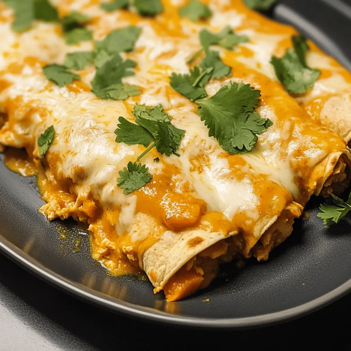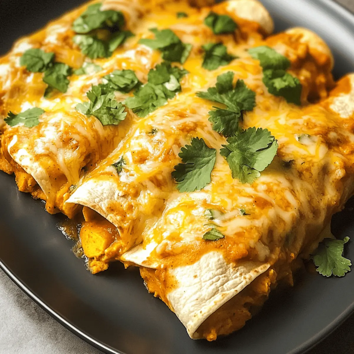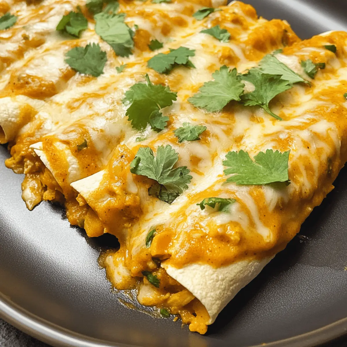 Während ich in meiner Küche stehe, durchströmt der verführerische Duft von Gewürzen und frisch gebackenem Käse den Raum und lässt mein Herz höher schlagen. Heute teile ich mit euch ein ganz besonderes Rezept: Cremige Kürbis-Hühnchen-Enchiladas. Diese köstliche Variation vereint zartes Hühnchen, süße Kartoffeln und eine samtige Kürbissauce zu einem wahrhaft erstaunlichen Gericht, das perfekt für die Herbstsaison ist. Was dieses Rezept so besonders macht? Sie sind nicht nur kinderfreundlich und glutenfrei, sondern auch ein wahres Comfort-Food, das die ganze Familie begeistern wird. Wer könnte schon einem warmen, cremigen Geschmack widerstehen, der den Gaumen umschmeichelt? Seid ihr bereit, in die Welt der Tex-Mex-Küche einzutauchen und eure nächsten Lieblings-Enchiladas zu entdecken? Warum wirst du dieses Rezept lieben? Einfachheit pur: Die Zubereitung dieser Cremigen Kürbis-Hühnchen-Enchiladas ist kinderleicht und benötigt kaum Erfahrung – perfekt für alle Hobbyköche. Wunderbare Aromen: Die Kombination aus würzigen Gewürzen und süßem Kürbis macht jedes Bissen zu einem Geschmackserlebnis, das die Sinne verwöhnt. Familienfreundlich: Diese Enchiladas sind nicht nur glutenfrei, sondern auch so lecker, dass selbst die kleinen Essensverweigerer sie lieben werden! Vielseitig einsetzbar: Du kannst das Rezept anpassen, indem du für verschiedene Geschmäcker eine Vielzahl von Käsesorten oder Proteinen verwendest – probiere doch mal eine vegetarische Variante mit Bohnen! Schnell zubereitet: Mit der Möglichkeit, die Enchiladas im Voraus zuzubereiten und einzufrieren, sparst du Zeit und kannst spontane Gäste problemlos bewirten. Perfekte Textur: Die cremige Sauce kombiniert mit der zarten Hähnchenfüllung und dem geschmolzenen Käse sorgt für ein unvergleichliches Mundgefühl, das alle begeistern wird. Cremige Kürbis-Hühnchen-Enchiladas: Zutaten Für die Sauce • Reine Kürbispüree – bietet die Basis für die cremige Sauce; verwende Libby’s für besten Geschmack. • Chili-Pulver – fügt Wärme und Tiefe hinzu. • Gemahlener Kreuzkümmel – verstärkt den herzhaften Geschmack. • Gemahlener Koriander – bringt eine zitrusartige, warme Note. • Gemahlener Zimt – bietet eine subtile Süße, die die würzigen Aromen ergänzt. • Hühnerbrühe oder Wasser – passt die Konsistenz der Sauce nach deinem Wunsch an. • Griechischer Joghurt – sorgt für Cremigkeit und einen leicht säuerlichen Geschmack. Für die Füllung • Süßkartoffel – liefert Süße und Nährstoffe; in Würfel schneiden für gleichmäßiges Kochen. • Hähnchenbrust ohne Knochen – die Hauptproteinquelle, die Herzhaftigkeit hinzufügt. • Würfelig geschnittene grüne Chilis – bringt eine scharfe Komponente, die das Aroma hebt. • Mexikanischer Käse – schmilzt wunderbar obendrauf; wähle fettarmen Käse für weniger Kalorien. • Maistortillas – das Gefäß für die Füllung; achte darauf, dass sie biegsam sind für leichtes Rollen. Für das Topping • Koriander – bringt Frische in das Gericht und sorgt für Farbe beim Servieren. Diese Cremigen Kürbis-Hühnchen-Enchiladas sind nicht nur ein Fest für den Gaumen, sondern auch einfach zuzubereiten und perfekt für die ganze Familie! Schritt-für-Schritt-Anleitungen für Cremige Kürbis-Hühnchen-Enchiladas Step 1: Ofen vorheizen Heize den Ofen auf 175 °C (350 °F) vor, während du die Vorbereitung für deine cremigen Kürbis-Hühnchen-Enchiladas beginnst. Dies stellt sicher, dass die Enchiladas gleichmäßig garen und der Käse beim Backen schön schmilzt. Anzeichen dafür, dass der Ofen bereit ist, sind das Aufblitzen der Kontrolllampe und die gleichmäßige Temperatur im Innenraum. Step 2: Sauce zubereiten In einer großen Schüssel vermenge das Kürbispüree, Chili-Pulver, Kreuzkümmel, Koriander, Zimt, Hühnerbrühe und griechischen Joghurt miteinander, bis die Mischung glatt und cremig ist. Diese Sauce bildet die köstliche Basis für deine Enchiladas. Etwa 3–5 Minuten Rühren sorgen dafür, dass die Aromen gut miteinander verschmelzen. Step 3: Boden der Auflaufform vorbereiten Verteile 1 Tasse der vorbereiteten cremigen Kürbissauce gleichmäßig auf dem Boden einer 23 x 33 cm (9 x 13 Zoll) großen Auflaufform. Diese Schicht bietet nicht nur Geschmack, sondern hilft auch, die Enchiladas beim Backen nicht ankleben zu lassen. Achte darauf, die Sauce gleichmäßig zu verteilen, um ein gleichmäßiges Garen zu gewährleisten. Step 4: Süßkartoffeln garen Gib die gewürfelten Süßkartoffeln in eine mikrowellengeeignete Schüssel mit einem Schuss Wasser und decke sie ab. Erhitze die Kartoffeln in der Mikrowelle für 3–5 Minuten, bis sie zart sind. Rühre nach der Garzeit um und lasse sie kurz abkühlen, um eine sichere Handhabung beim Mischen zu gewährleisten. Step 5: Füllung vorbereiten In einer separaten Schüssel vermengst du die gekochten Süßkartoffeln, zerkleinertes Hühnchen, grüne Chilis und die Hälfte des Käses. Füge ½ Tasse der vorbereiteten Kürbissauce hinzu und mische alles gut, bis die Zutaten gleichmäßig verteilt sind. Diese Füllung verbindet die verschiedenen Geschmäcker harmonisch und sorgt für eine tolle Textur. Step 6: Tortillas füllen und rollen Nehme eine Maistortilla und lege etwa 2–3 Esslöffel der Füllung in die Mitte. Rolle die Tortilla auf, indem du die Seiten einklappst, und platziere sie mit der Nahtseite nach unten in die vorbereitete Auflaufform. Wiederhole diesen Prozess mit den restlichen Tortillas, bis die Füllung aufgebraucht ist. Step 7: Sauce über die Enchiladas gießen Gieße die verbleibende Kürbissauce gleichmäßig über die gefüllten Enchiladas, sodass sie gut bedeckt sind. Streue dann die restlichen Käsestücke darüber, um eine schmelzende, goldene Kruste zu schaffen. Diese Schicht sorgt für zusätzlichen Geschmack und ein ansprechendes Aussehen, wenn die Enchiladas fertig gebacken sind. Step 8: Backen und servieren Backe die Enchiladas f
