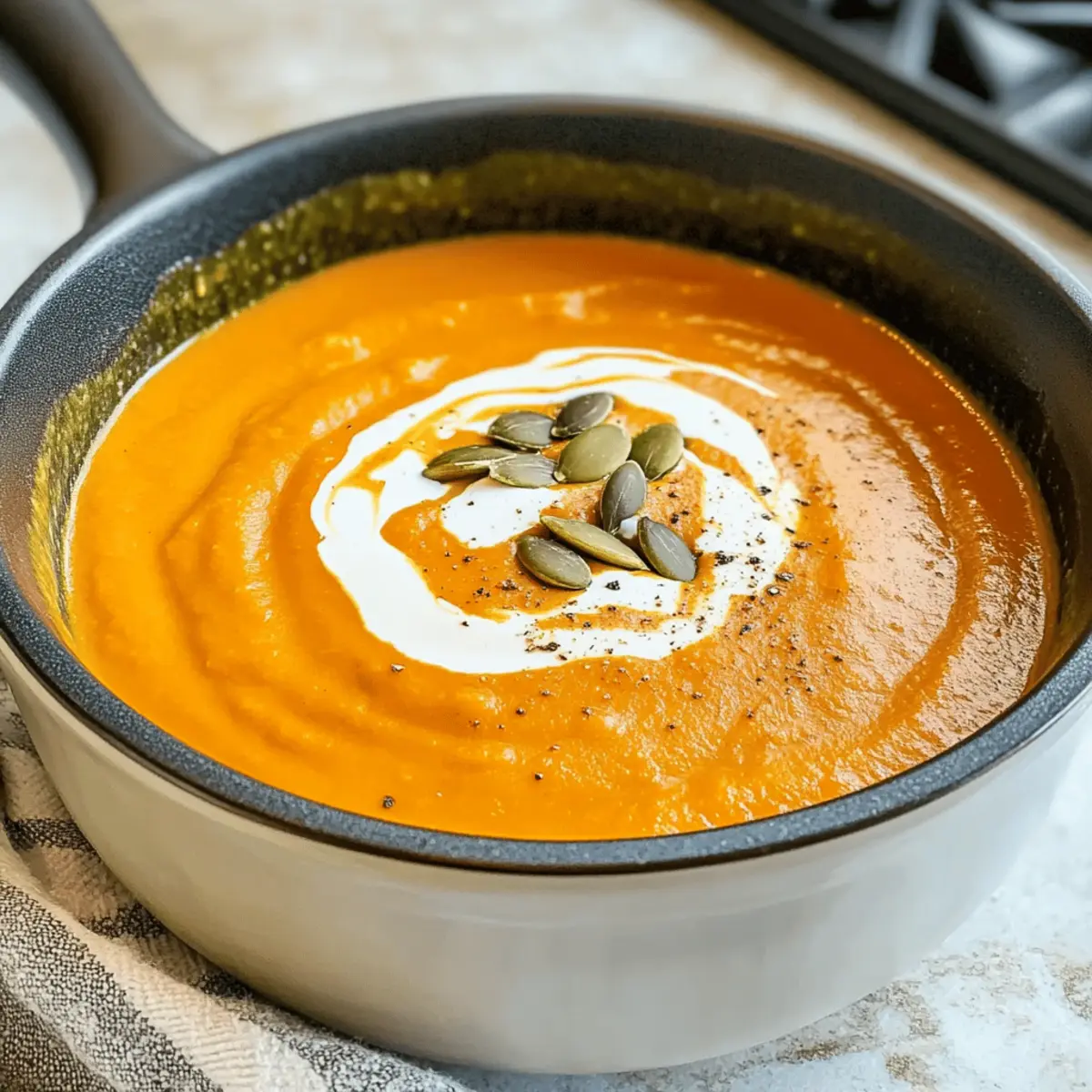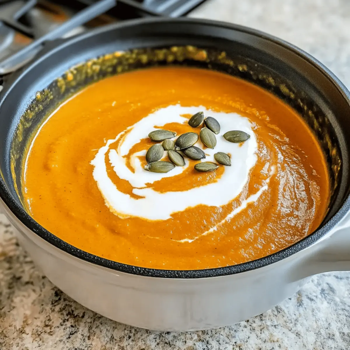 Während die kühle Jahreszeit Einzug hält, gibt es nichts Besseres als eine wärmende Cremige Kürbissuppe, die das Herz und die Seele umschmeichelt. Bei diesem Rezept verwandele ich einfache Zutaten in ein cremiges, samtiges Vergnügen, das sowohl Erwachsenen als auch Kindern schmeichelt. Es ist perfekt für gemütliche Abende und bietet die harmonische Balance von sanfter Süße und milden Gewürzen – ideal für alle, die eine köstliche, vegetarische Option suchen. Außerdem ist es blitzschnell zubereitet und ermöglicht dir, es mit verschiedenen Zutaten anzupassen, sodass jeder Löffel zur individuellen Gaumenfreude wird. Neugierig, wie du ganz einfach diese Saison zum Schlemmen verwandeln kannst? Lass uns in die Rezepte eintauchen! Warum ist diese Kürbissuppe einzigartig? Einfachheit, Die Zubereitung dieser cremigen Kürbissuppe erfordert nur grundlegende Kochfähigkeiten und wenige Zutaten – ideal für Kochanfänger und erfahrene Köche gleichermaßen. Vielfältig, Du kannst die Suppe ganz nach deinem Geschmack anpassen, indem du verschiedene Kürbissorten oder Toppings wie geröstete Kürbiskerne hinzufügst. Wärmend, Perfekt für kalte Winterabende, vermittelt diese Suppe ein Gefühl von Gemütlichkeit und Wohlbefinden. Nährstoffreich, Dank des hohen Gehalts an Vitaminen und Ballaststoffen aus frischem Kürbis ist sie nicht nur lecker, sondern auch gesund. Familienfreundlich, Diese Suppe kommt bei Groß und Klein gleichermaßen gut an und verwandelt das Abendessen in ein aufregendes Geschmackserlebnis. Für weitere tolle Optionen, schau dir auch diese leckeren Beilagen zu deiner Kürbissuppe an! Cremige Kürbissuppe Zutaten • Um die perfekte cremige Kürbissuppe zu kreieren, brauchst du nur einige einfache Zutaten! Für die Suppe Kürbis/Butzernutsquash – Der Hauptbestandteil, der natürliche Süße und eine cremige Textur bietet; Zucker-Kürbisse oder Butternut sind am besten geeignet. Zwiebel – Sorgt für Süße und Tiefe im Geschmack; langsam karamellisieren für optimale Ergebnisse. Knoblauch – Verbessert das Aroma und den Geschmack; verwende ganze Zehen für ein besseres Püree. Brühe (Huhn oder Gemüse) – Gibt der Suppe eine hervorragende Geschmacksbasis; nach Belieben salzen. Wasser – Um die Konsistenz der Suppe anzupassen. Sahne/Schlagsahne/Milch – Sorgt für reichhaltige Cremigkeit; am Ende hinzufügen, um ein Gerinnen zu vermeiden. Salz und Pfeffer – Unverzichtbar zum Würzen und zur Verstärkung der natürlichen Aromen der Suppe. Optionales Topping Geröstete Kürbiskerne – Fügen einen knackigen Biss hinzu und ergänzen das Kürbisaroma perfekt. Zusätzliche Sahne – Für einen schönen Servierlook und eine Extra-Portion Cremigkeit. Speck – Wenn du es nicht vegetarisch magst, bringt knuspriger Speck ein herzhafte Note ins Spiel. Probier diese cremige Kürbissuppe und genieße das Zusammenspiel der Aromen, das sie zu einem wahren Herbstliebling macht! Schritt-für-Schritt-Anleitung für Cremige Kürbissuppe Step 1: Kürbis vorbereiten Schäle den Kürbis oder Butternut und entferne die Kerne. Schneide das Fruchtfleisch in etwa 5 cm große Stücke und lege sie in einen großen Topf. Diese Stücke werden die Basis deiner cremigen Kürbissuppe bilden und sollten gleichmäßig geschnitten sein, um ein gleichmäßiges Garen zu gewährleisten. Step 2: Gemüse anbraten Füge die in Scheiben geschnittene Zwiebel und die ganzen Knoblauchzehen zum Kürbis hinzu. Decke das Gemüse mit der Brühe und Wasser ab—genug, damit der Kürbis gerade so bedeckt ist. Bringe alles bei mittlerer Hitze zum Kochen und lasse es dann bei niedriger Hitze etwa 10 Minuten köcheln, bis der Kürbis weich ist. Step 3: Pürieren Sobald der Kürbis zart ist, nimm den Topf vom Herd und verwende einen Stabmixer, um die Suppe bis zur gewünschten Konsistenz zu pürieren. Alternativ kannst du die Suppe portionsweise in einem Standmixer pürieren, achte dabei darauf, dass der Deckel leicht geöffnet bleibt, damit der Dampf entweichen kann. Step 4: Abschmecken und verfeinern Rühre die pürierte Kürbissuppe gut durch und schmecke sie mit Salz und Pfeffer ab. Um die Cremigkeit zu erhöhen, füge nun die Sahne oder Milch hinzu und rühre alles vorsichtig um, ohne die Suppe erneut zum Kochen zu bringen. Dies verleiht deiner Cremigen Kürbissuppe die perfekte Textur. Step 5: Servieren Ladle die heiße, cremige Kürbissuppe in Schalen und garniere sie nach Belieben mit einem Schuss Sahne oder gerösteten Kürbiskernen. Serviere die Suppe warm, idealerweise zusammen mit knusprigem Brot oder frischen Brötchen. Jetzt kannst du dich auf eine wärmende und köstliche Mahlzeit freuen! Expertentipps für cremige Kürbissuppe Richtige Kürbissorte wählen: Verwende Zucker-Kürbisse oder Butternut, um das Beste aus der natürlichen Süße zu holen – das macht die Suppe besonders cremig. Zwiebeln langsam karamellisieren: Nimm dir Zeit, um die Zwiebeln weich und goldbraun zu braten; das verleiht der Suppe eine wunderbare Geschmacksbasis. Vorsichtig pürieren: Wenn du die heiße Suppe pürierst, tu dies in kleinen Portionen. Lasse den Deckel leicht geöffnet, um den Dampf entweichen zu lassen und Überkochen zu verhindern. Cremig abschmecken: Füge die Sahne erst am Ende hinzu und erhitze sie vorsichtig, um ein Gerinnen zu vermeiden; so bleibt die Suppe schön samtig. Aufbewahrungstipps: Wenn du die Suppe einfrierst, lagere die Sahne separat. Füge frische Sahne beim Aufwärmen hinzu, um die richtige Konsistenz wiederherzustellen. Die Zubereitung im Voraus: Cremige Kürbissuppe Cremige Kürbissuppe ist perfekt für die Vorbereitung im Voraus! Du kannst den Kürbis und die Zwiebeln bis zu 24 Stunden vorher schälen und schneiden, um wertvolle Zeit zu sparen. Bewahre sie in einem luftdichten Behälter im Kühlschrank auf, um die Aromen frisch zu halten. Auch die Brühe kannst du bis zu 3 Tage im Voraus zubereiten; verwende sie einfach, um beim Kochen Zeit zu sparen. Um die beste Qualität zu
