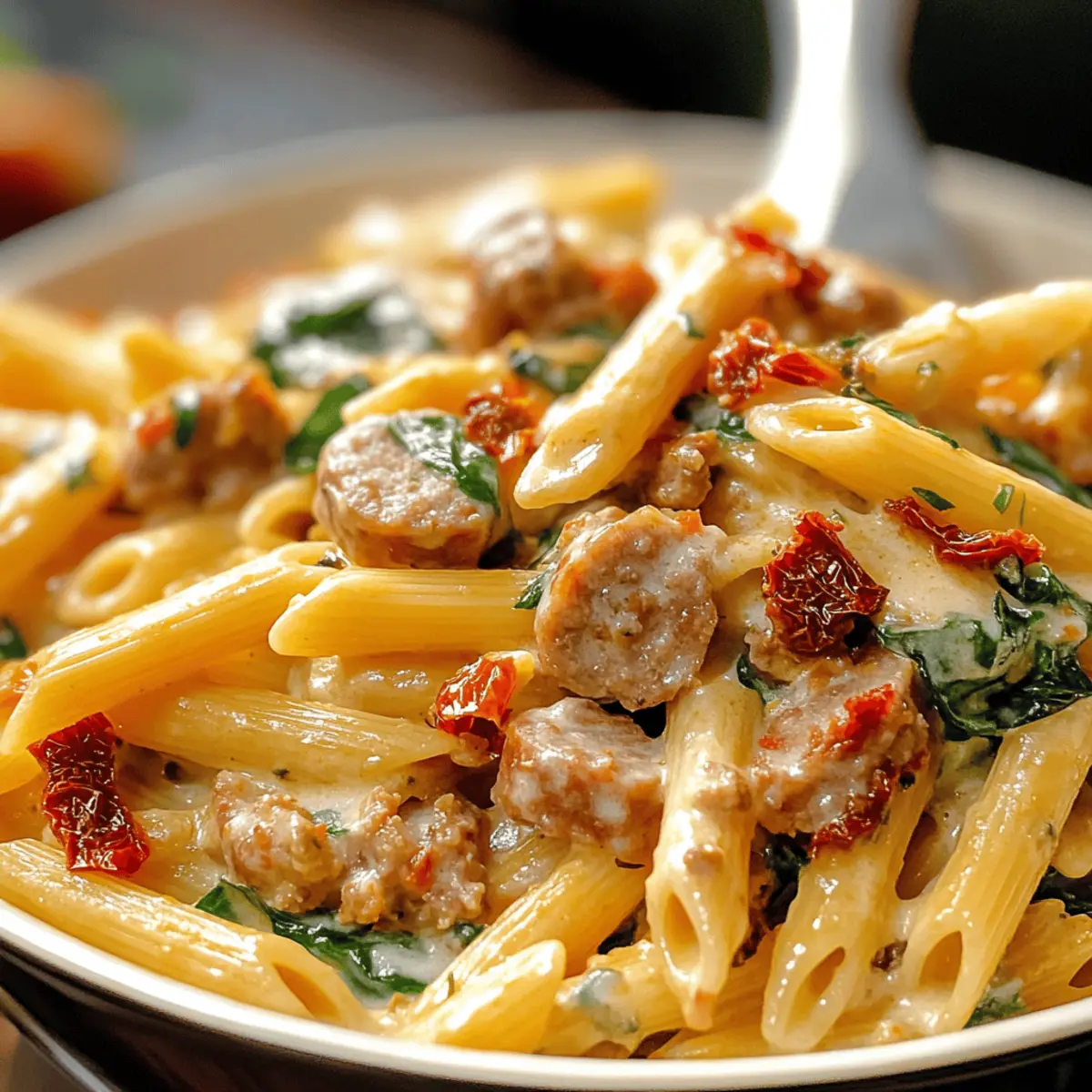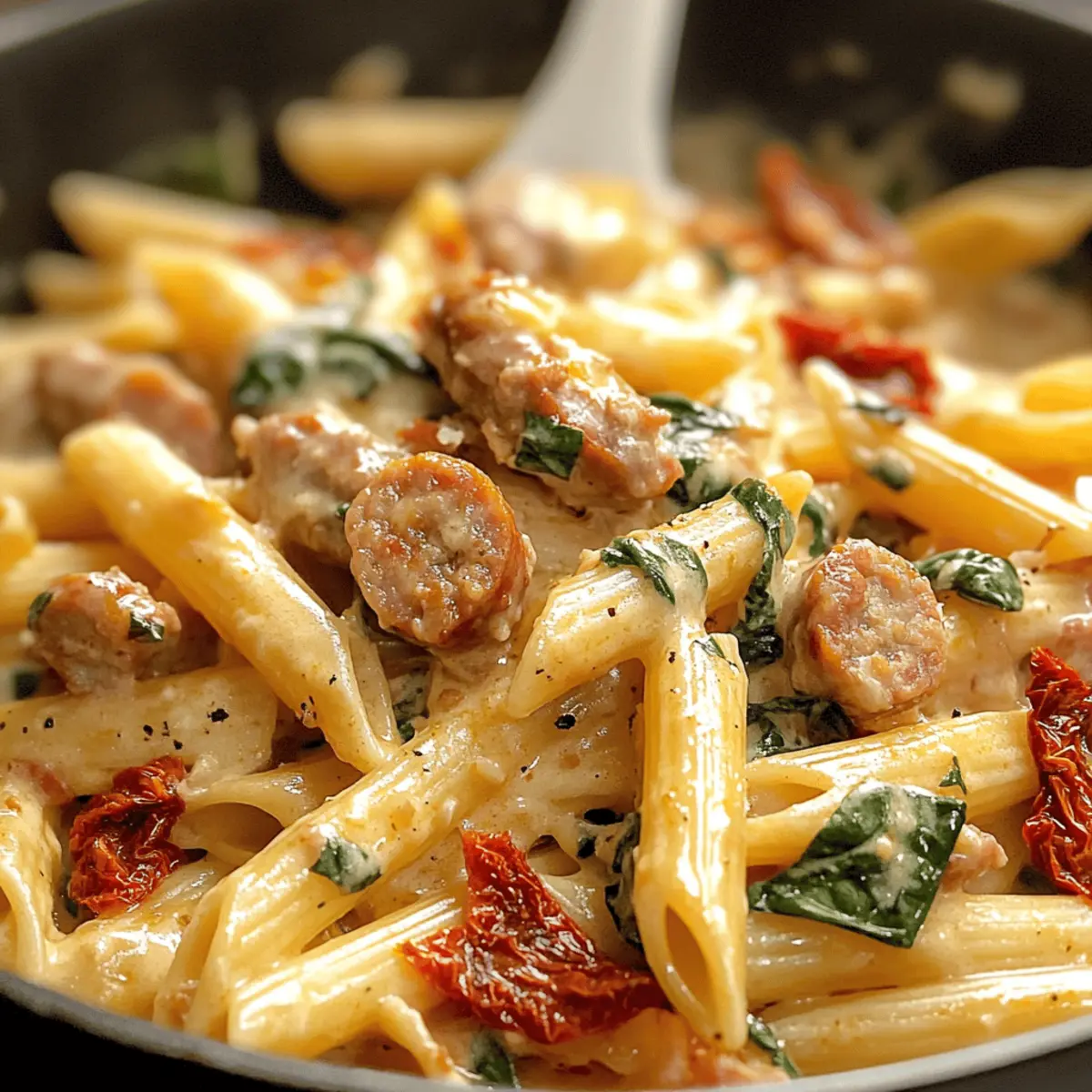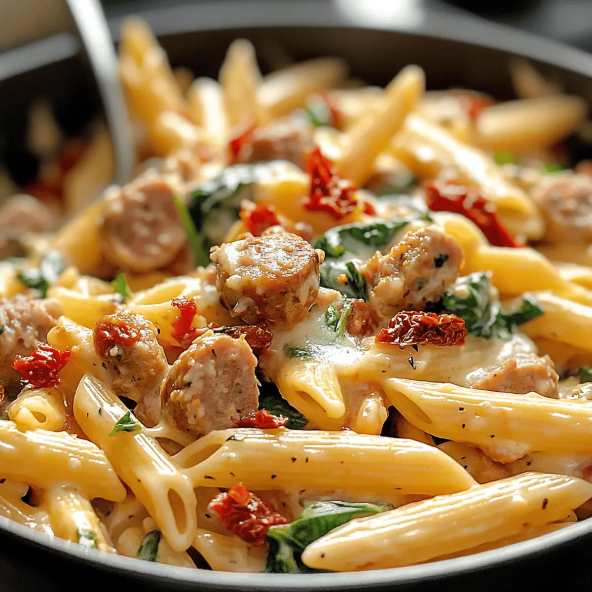 Welches Gericht könnte einfacher sein, die Seele zu wärmen, als eine cremige toskanische Wurst-Pasta? Wenn ich an italienisches Komfortessen denke, schießen mir sofort Bilder von dampfenden Tellern voller leckerer Pasta durch den Kopf, überzogen mit einer reichen, samtigen Sahnesauce. Diese Rezeptur ist nicht nur ein schneller Genuss, der in nur 30 Minuten auf dem Tisch steht, sondern bietet auch die perfekte Kombination aus würziger Wurst, herzhaften sonnengetrockneten Tomaten und frischem Spinat. Es ist eine wunderbare Möglichkeit, die Familie an einem hektischen Abend zu erfreuen und alle mit einem Hauch von Italien zu verwöhnen. Bist du bereit, deine eigenen Geschmacksknospen zu überraschen? Warum wirst du dieses Rezept lieben? Einfachheit für jeden: Die Zubereitung dieser cremigen toskanischen Wurst-Pasta erfordert nur grundlegende Kochfähigkeiten und ist in nur 30 Minuten erledigt. Reiche, herzhafte Aromen: Die Kombination aus würziger Wurst und sonnengetrockneten Tomaten sorgt für ein unvergleichliches Geschmackserlebnis, das dich direkt nach Italien versetzt. Vielseitigkeit pur: Du kannst die Wurst leicht variieren oder Gemüse wie Brokkoli hinzufügen, um das Rezept nach deinem Geschmack anzupassen. Perfekte Textur: Die samtige Sauce umhüllt die Penne und sorgt für einen wunderbar cremigen Biss, den du lieben wirst. Familienfreundlich: Dieses Gericht ist ideal, um die ganze Familie an einem hektischen Abend zu verwöhnen – ein echter Publikumsliebling! Cremige toskanische Wurst-Pasta Zutaten • Perfekt für dein nächstes Abendessen! Für die Pasta • Penne Pasta – Die Hauptkohlenhydratbasis, die die cremige Sauce perfekt aufnimmt. • Salz – Essenziell für die perfekte Geschmackstiefe beim Kochen der Pasta. Für die Sauce • Olivenöl – Zum Anbraten von Wurst und Knoblauch, um den Geschmack zu intensivieren. • Italienische Wurst – Bietet Reichhaltigkeit und Würze; wähle mild oder scharf, je nach Vorliebe. • Knoblauch – Für aromatische Tiefe; nur kurz anbraten, um Bitterkeit zu vermeiden. • Sonnengetrocknete Tomaten – Fügen eine angenehme Chewy-Textur und einen pikanten Geschmack hinzu; frische Tomaten können für eine leichtere Variante verwendet werden. • Hühnerbrühe – Verleiht der Sauce einen herzhaften Unterton. • Italienische Gewürze – Eine Kräutermischung, die das Gericht wunderbar ergänzt; frische Kräuter sorgen für mehr Geschmack. • Rote Paprikaflocken – Für eine subtile Schärfe; die Menge kann je nach Geschmack angepasst werden. • Schlagsahne – Sorgt für eine samtige Sauce; kann durch halb-halb ersetzt werden, wenn leichter gewünscht. • Parmesan Käse – Nussig und salzig, perfekt für die cremige Sauce; frisch gerieben sorgt für bessere Textur. • Baby-Spinat – Für Frische und Farbe; kann durch Grünkohl oder Rucola ersetzt werden. Gewürze • Pfeffer – Für die geschmackliche Feinheit; nach Belieben hinzufügen. • Frische Basilikumblätter – Zum Garnieren; fügen Helligkeit und Geschmacksvielfalt hinzu. Mit diesen Zutaten wird deine cremige toskanische Wurst-Pasta nicht nur ein Genuss, sondern auch ein schnelles und einfaches Gericht, das die Herzen deiner Liebsten erwärmen wird! Step-by-Step Instructions für Cremige toskanische Wurst-Pasta Step 1: Pasta kochen Bringe einen großen Topf mit gut gesalzenem Wasser zum Kochen. Füge die Penne-Pasta hinzu und koche sie etwa 8–10 Minuten, bis sie al dente ist. Halte einen Becher des Nudelwassers zurück, bevor du die Pasta abgießt, um die Konsistenz der Sauce später anzupassen. Step 2: Wurst anbraten Erhitze eine große Pfanne bei mittlerer Hitze und füge einen Esslöffel Olivenöl hinzu. Gib die italienische Wurst hinein und brate sie etwa 5–7 Minuten lang, bis sie schön gebräunt ist. Nimm die Wurst anschließend aus der Pfanne und stelle sie beiseite, während du mit der Sauce fortfährst. Step 3: Knoblauch sautieren Verwende die gleiche Pfanne, in der die Wurst war, um den Geschmack einzufangen. Füge bei mittlerer Hitze eine weitere kleine Menge Olivenöl hinzu und sautierte den gehackten Knoblauch für etwa 30 Sekunden, bis er aromatisch ist und leicht goldig wird. Achte darauf, den Knoblauch nicht zu verbrennen, da er sonst bitter wird. Step 4: Zutaten hinzufügen Rühre die sonnengetrockneten Tomaten, Hühnerbrühe, italienische Gewürze und rote Paprikaflocken in die Pfanne ein. Lasse die Mischung etwa 5 Minuten lang köcheln, bis sie leicht eindickt und die Aromen sich gut vermischen. Dies ist der Moment, in dem die cremige toskanische Wurst-Pasta wirklich an Geschmack gewinnt. Step 5: Sahne und Käse einrühren Reduziere die Hitze auf niedrig und gieße die Schlagsahne in die Pfanne. Rühre geriebenen Parmesan ein, bis er geschmolzen ist und eine cremige Sauce entsteht. Füge die gebräunte Wurst und den Baby-Spinat hinzu und würze mit Salz und Pfeffer nach Geschmack. Die Farbe und Frische des Spinats bringen das Gericht zum Strahlen. Step 6: Pasta kombinieren Vermenge die gekochte Penne-Pasta mit der cremigen Sauce in der Pfanne. Wenn die Sauce zu dick ist, füge nach und nach etwas von dem zurückgehaltenen Nudelwasser hinzu, bis die gewünschte Konsistenz erreicht ist. Die Pasta sollte gut umhüllt und leicht glänzend sein, was die cremige toskanische Wurst-Pasta perfekt abrundet. Step 7: Servieren Serviere die cremige toskanische Wurst-Pasta heiß, garniert mit frischen Basilikumblättern und zusätzlichem geriebenem Parmesan, wenn gewünscht. Dieses Gericht eignet sich hervorragend für ein schnelles Abendessen unter der Woche und bringt ein Stück Italien auf deinen Tisch! What to Serve with Cremige toskanische Wurst-Pasta Genieße die perfekte Kombination von Aromen und Texturen, während du diese köstliche Pasta zum Hauptgericht machst. Knuspriges Brot: Ideal zum Auftunken der reichhaltigen Sauce, sorgt für einen wunderbaren Kontrast zur Cremigkeit der Pasta. Einfacher grüner Salat: Eine frische Mischung a