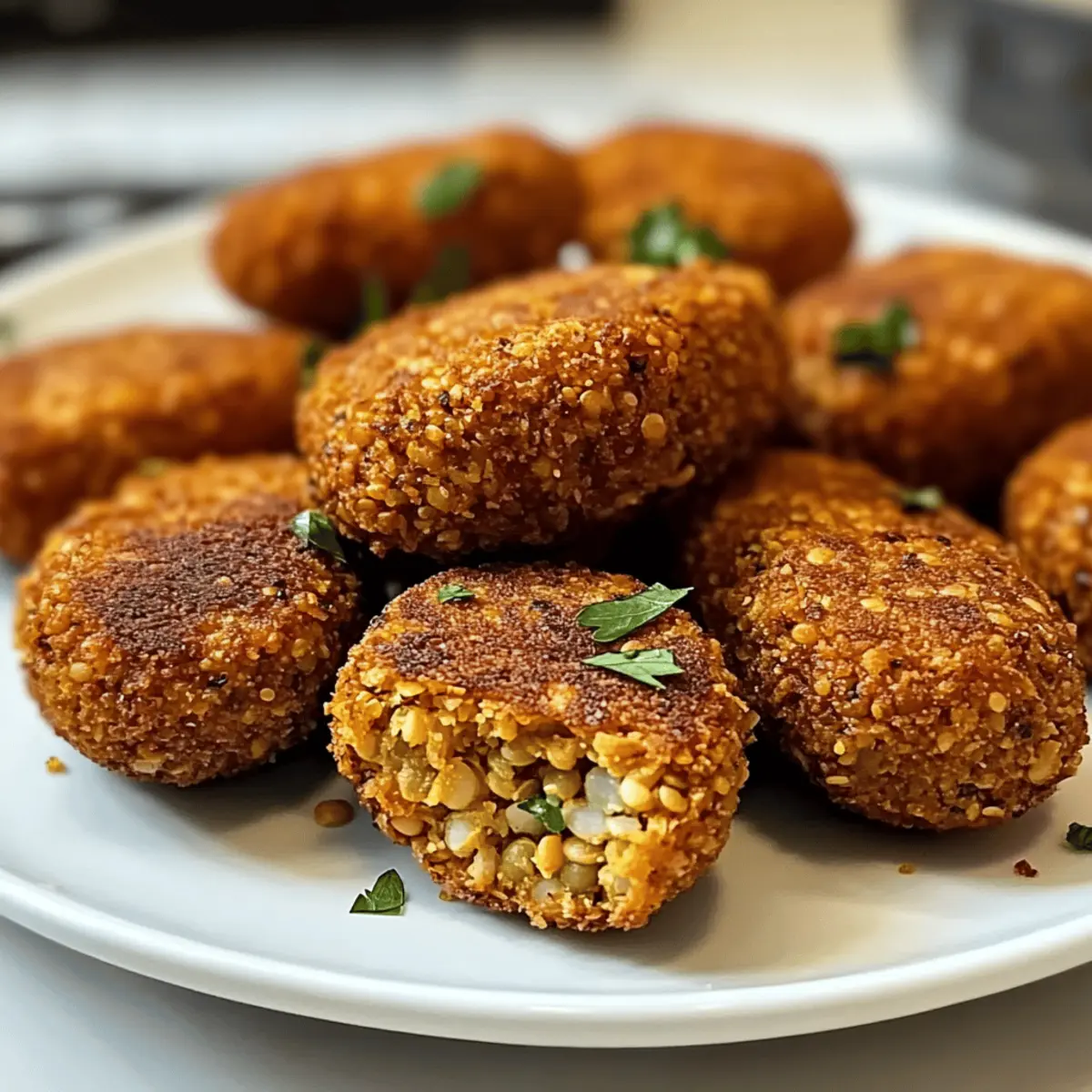Hast du schon einmal etwas aus deiner Kindheit zurück ins Gedächtnis gerufen, während du in der Küche stehst? Mit diesen knusprigen Linsenkroketten aus der Heißluftfritteuse entsteht genau dieses Gefühl. Sie sind eine gesunde und proteinreiche Snack-Option, die perfekt geeignet ist, um dir das Gefühl von Komfort und Zufriedenheit zu geben – und das ganz ohne schlechtes Gewissen. Die Zubereitung ist schnell und unkompliziert, was sie ideal für einen hektischen Abend macht. Außerdem lassen sie sich wunderbar variieren, sodass du je nach Lust und Laune mit verschiedenen Gewürzen oder Zutaten experimentieren kannst. Neugierig, wie du dir diese gesunden Häppchen zubereiten kannst? Lass uns gleich starten! Warum solltest du diese Linsenkroketten ausprobieren? Köstlicher Geschmack: Die Kombination aus gewürzten roten Linsen und knusprigem Paniermehl sorgt für ein Geschmackserlebnis, das die Sinne verführt. Gesunde Snack-Option: Diese Kroketten sind reich an Protein und Ballaststoffen, perfekt für alle, die auf eine gesunde Ernährung achten möchten. Einfache Zubereitung: Mit nur wenigen Zutaten und in nur 20 Minuten zubereitet, sind sie eine echte Zeitersparnis in der Küche. Vielseitige Variationsmöglichkeiten: Du kannst sie ganz nach deinem Geschmack anpassen, indem du verschiedene Gewürze oder zusätzliche Zutaten wie Feta oder Gemüse hinzufügst. Perfekt für gesellige Abende: Ob als Snack oder als Teil eines Buffets, sie kommen bei Freunden und Familie immer gut an. Mit diesen Crispy Linsenkroketten aus der Heißluftfritteuse holst du dir ein Stück Heimat und Gesundheitsbewusstsein auf den Teller! Crispy Linsenkroketten Zutaten • Erlebe die einfache und gesunde Zubereitung dieser köstlichen Snacks! Für die Kroketten Rote Linsen – die Hauptzutat, proteinreich und ballaststoffhaltig; ohne Einweichen kochen, bis sie weich sind. Paniermehl – bindet die Mischung und verleiht eine knusprige Textur; für glutenfreie Optionen einfach glutenfreies Paniermehl verwenden. Gewürze (z.B. Kreuzkümmel, Paprika) – bringen das Aroma; du kannst auch Mediterrane Gewürzmischungen verwenden, um mehr Vielfalt zu schaffen. Olivenöl – sorgt für Feuchtigkeit und Geschmack; nur eine geringe Menge ist notwendig wegen der Heißluftfritteuse. Sesam – optional, für zusätzlichen Crunch; die Kroketten vor dem Frittieren darin wälzen. Für die Dips (optional) Hummus – ein cremiger Begleiter, der hervorragend zu den knusprigen Kroketten passt. Tzatziki – erfrischend und perfekt für einen zusätzlichen Geschmacks-Kick. Schritt-für-Schritt-Anleitung für Crispy Linsenkroketten aus der Heißluftfritteuse Step 1: Linsen kochen Koche die roten Linsen in einem Topf mit kochendem Wasser für etwa 10 Minuten, bis sie weich sind. Achte darauf, dass sie nicht zerfallen. Nach dem Kochen gut abtropfen lassen und kurz abkühlen, damit sie die perfekte Konsistenz für die Kroketten behalten. Step 2: Mischung vorbereiten Gib die abgetropften Linsen in eine große Rührschüssel und füge die Paniermehl und die gewählten Gewürze hinzu. Vermische alles gründlich, bis die Zutaten gut miteinander verbunden sind. Bei Bedarf können auch zusätzliche Zutaten wie Feta oder Gemüse hinzugefügt werden, um den Geschmack zu verfeinern. Step 3: Kroketten formen Nehme eine kleine Menge der Linsenmasse und forme sie mit deinen Händen zu kleinen Kroketten oder Patties. Achte darauf, dass sie gleichmäßig groß sind, damit sie gleichmäßig garen. Bei Bedarf kannst du von der Mischung probieren, um sicherzustellen, dass die Gewürze deinen Vorlieben entsprechen. Step 4: Optional mit Sesam bestreuen Wenn du möchtest, wälze die geformten Kroketten vorsichtig in Sesam, um eine zusätzliche knusprige Schicht zu erhalten. Dies ist ein einfacher Schritt, der den Kroketten eine interessante Textur und einen zusätzlichen Geschmack verleiht, bevor sie in die Heißluftfritteuse gelangen. Step 5: Heißluftfritteuse vorheizen Heize deine Heißluftfritteuse auf 180°C vor, während du die Kroketten vorbereitest. Das Vorheizen sorgt dafür, dass die Kroketten gleichmäßig garen und perfekt knusprig werden. Während die Fritteuse aufheizt, kannst du die Kroketten in eine geeignete Form bringen. Step 6: Kroketten frittieren Lege die geformten Crispy Linsenkroketten in einer einzigen Schicht in den Korb der Heißluftfritteuse. Achte darauf, dass sie nicht übereinander liegen, damit sie gleichmäßig garen. Garen die Kroketten für etwa 15-20 Minuten, oder bis sie goldbraun und knusprig sind. Schüttle den Korb gelegentlich, um eine gleichmäßige Bräunung zu gewährleisten. Step 7: Servieren oder Lagern Sobald die Kroketten goldbraun und knusprig sind, nimm sie vorsichtig aus der Heißluftfritteuse. Du kannst sie sofort heiß servieren oder auf einem Tablett abkühlen lassen, bevor du sie für später aufbewahrst. Diese Crispy Linsenkroketten aus der Heißluftfritteuse sind eine köstliche und gesunde Snack-Option! Aufbewahrungstipps für Crispy Linsenkroketten Kühlschrank: Bewahre die gebratenen Linsenkroketten im Kühlschrank auf, um ihre Frische zu bewahren. Sie sind bis zu 3 Tage haltbar, solltest du sie aber in einem luftdichten Behälter verstauen, um Austrocknung zu vermeiden. Gefriertruhe: Wenn du die kroketten für längere Zeit aufbewahren möchtest, friere sie roh oder gekocht ein. Roh können sie bis zu 2 Monate im Gefrierfach gelagert werden. Bei Gebrauch einfach aus dem Gefrierfach in die Heißluftfritteuse geben, ohne vorher aufzutauen. Wiedererwärmen: Um die Knusprigkeit zu erhalten, erwärme die Linsenkroketten auf 180°C in der Heißluftfritteuse für etwa 5-10 Minuten. So bleiben sie schön knusprig, ähnlich wie frisch zubereitet. Vorbereitung im Voraus: Du kannst die Linsenkroketten auch im Voraus vorbereiten und formen, um sie bei Bedarf schnell zuzubereiten. Lagere sie einfach bis zur Zubereitung im Kühlschrank oder Gefrierfach. Was passt zu Crispy Linsenkroketten aus der Heißluftfr