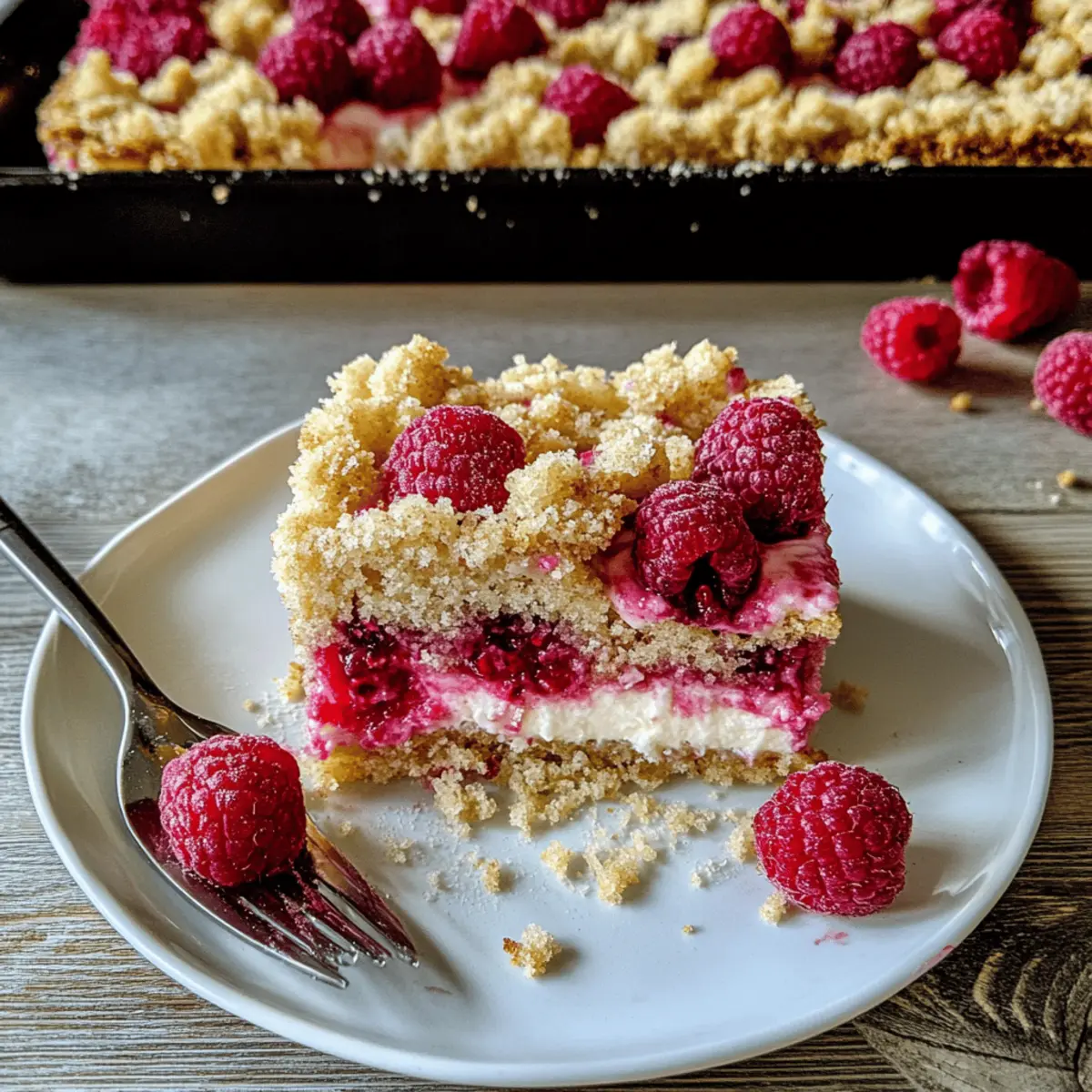 „Ich kann das Geräusch der knusprigen Streusel förmlich hören, wenn ich in diesen saftigen Streuselkuchen beiße.“ Dieser Streuselkuchen mit Quark und Himbeeren vom Blech ist nicht nur schnell zubereitet, sondern auch ein echter Genuss, der jede Kaffeetafel verzaubert. Mit seiner köstlichen Kombination aus cremigem Quark und frischen Himbeeren ist er die perfekte Erfrischung an warmen Sommertagen. Egal, ob für einen Geburtstag oder einfach nur als süßer Snack für zwischendurch – dieser Kuchen verspricht, die Herzen Ihrer Gäste im Sturm zu erobern. Bereiten Sie sich auf das begeisterte: „Ein Stück geht noch!“ vor, denn die Kombination aus saftigem, fruchtigem Geschmack und knusprigen Streuseln lässt niemanden widerstehen. Ich kann es kaum erwarten, Ihnen zu zeigen, wie einfach dieser Genuss ist! Was halten Sie von einer kleinen Abwandlung mit anderen Früchten oder Nüssen? Warum werden Sie dieses Rezept lieben? Einfachheit: Die Zubereitung dieses Streuselkuchens könnte nicht einfacher sein! Mit nur wenigen Zutaten zaubern Sie im Handumdrehen einen Kuchen, der hervorragend für Ihre Kaffeetafel geeignet ist. Saisonale Frische: Die Kombination aus cremigem Quark und fruchtigen Himbeeren macht ihn zur perfekten sommerlichen Erfrischung. Vielseitigkeit: Variieren Sie das Rezept nach Belieben mit verschiedenen Früchten wie Erdbeeren oder Blaubeeren, um immer wieder neue Geschmackserlebnisse zu schaffen! Genuss für jeden Anlass: Ob Geburtstagsfeier oder entspannte Nachmittage – dieser Kuchen zieht alle Blicke auf sich und sorgt für „Ein Stück geht noch!“. Schnelligkeit: In weniger als 1 Stunde ist dieser köstliche Blechkuchen fertig, perfekt für spontane Backaktionen. Verpassen Sie nicht auch unsere anderen einfache Kuchenrezepte für noch mehr Inspiration! Einfacher Streuselkuchen vom Blech mit Himbeeren • Für den Teig Dinkelmehl (300g) – Grundlage für den Teig; Weizenmehl kann als Ersatz dienen. Haferflocken (100g) – Fügt Textur und gesunde Ballaststoffe hinzu; glutenfreie Haferflocken sind für eine glutenfreie Option empfehlenswert. Butter (200g, kalt) – Gibt dem Teig Fettgehalt und Geschmack; Margarine kann für eine milchfreie Variante verwendet werden. Zucker (100g) – Süßt den Teig; für eine leichtere Süße kann auch Kokosblütenzucker verwendet werden. Zitrone (1, Abrieb) – Bringt Frische in den Teig und hebt den Geschmack hervor. • Für die Quarkfüllung Magerquark (250g) – Hauptbestandteil der Füllung, sorgt für Cremigkeit; Ricotta ist eine gute Alternative. Sahnequark (250g) – Ergänzt die Füllung mit einer weiteren cremigen Schicht; Mascarpone bringt mehr Reichhaltigkeit. Zucker (100g) – Für die Quarkmasse, kann nach Wunsch reduziert werden. Vanillepuddingpulver (1 Päckchen) – Dichtet die Quarkfüllung ab und sorgt für zusätzliche Süße; Maisstärke ist ein guter Ersatz für Allergiker. Eier (2) – Binden die Füllung; Leinsamen-Ei eignet sich als vegane Variante. • Für den Belag Himbeeren (250g, frisch oder TK) – Hauptfrucht im Rezept, sorgt für die fruchtige Note; die Verwendung von TK-Himbeeren wird empfohlen, um den Saftverlust zu minimieren. Dieser einfache Streuselkuchen vom Blech mit Himbeeren wird schnell zum Star Ihrer Kaffeetafel und sorgt für jede Menge Begeisterung! Schritt-für-Schritt Anleitung für Einfacher Streuselkuchen vom Blech mit Himbeeren Step 1: Streuselteig vorbereiten Mehl, Haferflocken, Zucker und Zitronenabrieb in einer großen Schüssel vermengen. Kaltgestellte Butter in kleinen Stücken hinzufügen und alles mit den Händen oder einem Handmixer schnell zu einem krümeligen Teig verarbeiten. Zwei Drittel des Teigs gleichmäßig in ein mit Backpapier belegtes Blech drücken, sodass ein glatter Boden entsteht. Step 2: Boden vorbacken Heizen Sie den Ofen auf 180 °C Umluft vor und backen Sie den Boden für etwa 10 Minuten, bis er fest und leicht goldbraun ist. Achten Sie darauf, dass der Teig nicht zu dunkel wird; er sollte eine leicht gebackene Farbe annehmen. Nach dem Vorbacken aus dem Ofen nehmen und kurz abkühlen lassen. Step 3: Quarkfüllung anrühren In einer Schüssel Magerquark, Zucker, Vanillepuddingpulver und Eier mit einem Schneebesen gut vermischen, bis die Masse glatt und cremig ist. Diese Mischung gleichmäßig auf den vorgebackenen Boden streichen, damit sich die Quarkfüllung gleichmäßig verteilt und eine schöne Grundlage für die Himbeeren bildet. Step 4: Himbeeren hinzufügen Die frischen oder tiefgekühlten Himbeeren gleichmäßig auf der Quarkmasse verteilen. Drücken Sie die Himbeeren leicht in die Quarkfüllung, damit sie während des Backens nicht wegrollen. Achten Sie darauf, die Himbeeren gut zu verteilen, damit jeder Bissen fruchtig und köstlich wird. Step 5: Streusel krümeln Den restlichen Streuselteig in kleinen Stücken als Streusel über die Quarkfüllung und die Himbeeren streuen. Dies sorgt für die typische knusprige Oberseite des Streuselkuchens mit Quark und Himbeeren. Verteilen Sie die Streusel gleichmäßig, um eine ansprechende Textur zu erzielen. Step 6: Fertig backen Den Kuchen erneut in den vorgeheizten Ofen schieben und für weitere 35–40 Minuten backen. Achten Sie darauf, dass die Streusel goldbraun und knusprig sind und die Quarkmasse fest geworden ist. Ein schöner goldbrauner Farbton zeigt an, dass der Streuselkuchen bereit ist. Step 7: Abkühlen lassen Nehmen Sie den Kuchen aus dem Ofen und lassen Sie ihn vollständig abkühlen. Idealerweise sollte er für beste Ergebnisse über Nacht im Kühlschrank ruhen. Dadurch setzen sich die Aromen und die Struktur wird noch besser, bevor Sie ihn servieren. Expert Tips für Einfacher Streuselkuchen vom Blech Teig gleichmäßig verteilen: Drücken Sie den Teig gut im Blech an, um eine feste Basis zu schaffen. Dies verhindert, dass die Quarkfüllung beim Backen ausläuft. Frische Himbeeren verwenden: Frische Himbeeren sorgen für den besten Geschmack. Wenn Sie gefrorene Himbeeren nutzen,