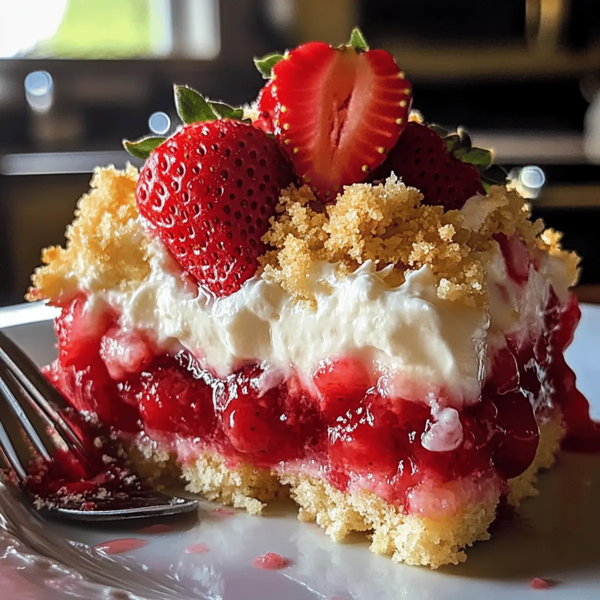 Zufällig entdeckte ich letzten Sommer ein Rezept, das mein Herz im Sturm eroberte: der Erdbeer-Käsekuchen-Dump-Kuchen. Dieses köstliche Dessert vereint cremige Käsekuchenfüllung mit saftigen Erdbeeren auf einem goldenen, buttrigen Boden – und das ganz ohne großen Aufwand! Ideal für gesellige Abende oder entspannte Familienessen, ermöglicht dieses Rezept eine sofortige Genuss-Erfahrung. Die Zubereitung ist nicht nur einfach und schnell, sondern auch anpassbar für verschiedene Diäten wie glutenfrei oder mit kalorienärmeren Zutaten. Wer könnte da widerstehen? Lass dich von den verführerischen Schichten und dem Traum von Beeren und Käsekuchen mitreißen – bereit, dein eigenes persönliches Meisterwerk zu kreieren? Warum wirst du diesen Kuchen lieben? Einfachheit pur: Die Zubereitung des Erdbeer-Käsekuchen-Dump-Kuchens ist kinderleicht und erfordert keine besonderen Backfähigkeiten. Vielfältig anpassbar: Du kannst die Früchte nach Belieben variieren – probiere auch Blaubeeren oder Himbeeren aus! Cremige Texturen: Der Kontrast zwischen der luftig-leichten Käsekuchenfüllung und der knusprigen Kruste ist einfach unwiderstehlich. Perfekt für jeden Anlass: Ob Geburtstagsfeier oder Familienabend, dieser Kuchen wird immer ein Hit sein. Schnell gemacht: In weniger als einer Stunde hast du ein köstliches Dessert, das die Gäste begeistert. Und wenn du auf der Suche nach gesünderen Alternativen bist, kannst du auch zu kalorienärmeren Zutaten greifen und nach Belieben variieren! Erdbeer-Käsekuchen-Dump-Kuchen Zutaten Hier sind die benötigten Zutaten für diesen köstlichen Desserttraum! Für den Boden Gelbes Kuchenmix – verleiht dem Kuchen Struktur und Süße; kann durch weißes oder erdbeerfarbenes Kuchenmix ersetzt werden. Butter (1/2 Tasse) – sorgt für Reichtum und Feuchtigkeit; muss geschmolzen werden, um die gleichmäßige Verteilung zu gewährleisten. Für die Füllung Erdbeer-Pflaumenfüllung (2 Tassen) – bringt Geschmack und Feuchtigkeit; frische Erdbeeren können mit Zucker und Maisstärke für eine hausgemachte Variante gekocht werden. Frischkäse (1 Tasse, weich) – kreiert die cremige Käsekuchen-Schicht; reduzierte Fettvariante kann für eine leichtere Option verwendet werden. Puderzucker (1/2 Tasse) – süßt die Frischkäse-Schicht; nach persönlichem Geschmack anpassbar. Vanilleextrakt (1 Teelöffel) – verbessert den Gesamtgeschmack; verwende reinen Vanilleextrakt für den besten Geschmack. Für den Belag Schlagsahne (1 Tasse) – bietet einen leichten, fluffigen Belag; hausgemachte Sahne ist eine wunderbare Alternative. Lass dich inspirieren und genieße die Zubereitung deines eigenen Erdbeer-Käsekuchen-Dump-Kuchens! Schritt-für-Schritt-Anleitung für den Erdbeer-Käsekuchen-Dump-Kuchen Schritt 1: Backofen vorheizen Heize den Backofen auf 175 °C vor und bereite eine 9×13 Zoll große Auflaufform vor, indem du sie leicht einfettest oder mit Backpapier auslegst. Dies ist der erste Schritt, um sicherzustellen, dass dein Erdbeer-Käsekuchen-Dump-Kuchen gleichmäßig backt und nicht anklebt. Schritt 2: Frischkäse Mischung herstellen Nehme eine große Rührschüssel und kombiniere den weichen Frischkäse mit dem Puderzucker und dem Vanilleextrakt. Mit einem Handmixer geschmeidig schlagen, bis die Mischung cremig und klumpenfrei ist. Dies dauert etwa 2-3 Minuten. Die glatte Mischung wird die köstliche Käsekuchen-Schicht deines Dump-Kuchens bilden. Schritt 3: Erdbeerfüllung verteilen Verteile gleichmäßig die Erdbeer-Pflaumenfüllung auf dem Boden der vorbereiteten Auflaufform. Verwende einen Spatel, um die Füllung gleichmäßig zu glätten, damit die saftigen Erdbeeren perfekt unter der cremigen Schicht liegen. Achte darauf, dass die Füllung gleichmäßig bis in die Ecken reicht, um einen harmonischen Geschmack in jedem Bissen zu gewährleisten. Schritt 4: Käsekuchen-Mischung hinzufügen Gieße die cremige Frischkäse-Mischung vorsichtig über die Erdbeerfüllung in der Form. Verwende einen Spatel, um die Mischung sanft zu verteilen, sodass sie sich gleichmäßig auf der Erdbeerfüllung niederlässt. Diese Schicht sorgt für die charakteristische Cremigkeit des Erdbeer-Käsekuchen-Dump-Kuchens und sollte bis zu den Rändern der Form erreicht werden. Schritt 5: Kuchenmix gleichmäßig streuen Streue das trockene gelbe Kuchenmix gleichmäßig über die Käsekuchen-Mischung. Achte darauf, dass es keine trockenen Stellen gibt. Verwende die Rückseite eines Löffels, um die Mischung sanft zu drücken, damit sie besser eindringen kann und gleichmäßig bräunt, wenn der Kuchen gebacken wird. Schritt 6: Butter beträufeln Drizzle die geschmolzene Butter gleichmäßig über die gesamte Cake-Mix-Schicht, sodass alles gut benetzt ist. Die Butter wird beim Backen für eine goldene, knusprige Kruste sorgen und dem Erdbeer-Käsekuchen-Dump-Kuchen seine köstliche Textur verleihen. Schritt 7: Backen Backe den Kuchen im vorgeheizten Ofen für etwa 45 Minuten, bis die Oberseite goldbraun und die Mischung an den Rändern leicht bubbelnd ist. Der Kuchen sollte in der Mitte fest sein, aber schön leicht, wenn man ihn berührt. Dies verrät dir, dass dein Erdbeer-Käsekuchen-Dump-Kuchen perfekt gegart ist. Schritt 8: Abkühlen und Dekorieren Lasse den Erdbeer-Käsekuchen-Dump-Kuchen nach dem Backen etwa 30 Minuten in der Form abkühlen. Danach kannst du ihn mit der Schlagsahne garnieren und nach Belieben dekorieren. Dadurch wird dein Dessert noch einladender und perfekt für den Serviertisch. Was serviert man zum Erdbeer-Käsekuchen-Dump-Kuchen? Genieße eine köstliche Kombination von Aromen und Texturen, die dein Dessert auf ein neues Niveau heben. Vanilleeis: Das cremige Eis sorgt für einen perfekten Kontrast zur warmen Kuchenschicht. Jede Gabel bietet eine harmonische Süße. Frische Beeren: Eine Mischung aus saftigen Erdbeeren, Himbeeren und Blaubeeren bringt Frische und zusätzliche Fruchtigkeit ins Spiel. Diese Komponente erhöht nicht nur den Geschmac