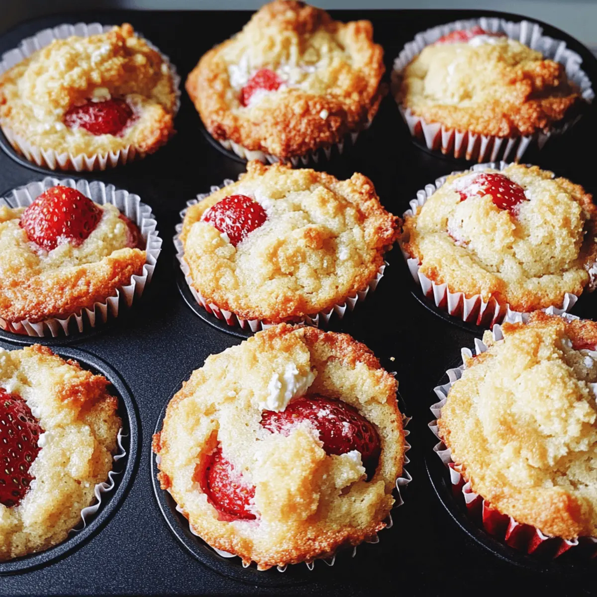 Die saftigen, rosa Erdbeeren, die sich in der Küche auf dem Tisch stapeln, haben es mir angetan und ich kann einfach nicht widerstehen! Mit einem Hauch von Ricotta werden diese leckeren Erdbeer-Ricotta-Muffins zu einem Erlebnis, das das übliche Frühstückszeug weit hinter sich lässt. Diese Muffins sind nicht nur leicht und fluffig, sie enthalten auch gesunde Vollkornzutaten und reichhaltiges Protein, was sie zum perfekten Snack für jede Tageszeit macht. Egal, ob zum Frühstück oder als Nachmittagsleckerei – die Kombination aus fruchtiger Süße und cremigem Ricotta sorgt für ein himmlisches Geschmackserlebnis. Neugierig, wie einfach man sie zubereiten kann? Lass uns gemeinsam in die Rezeptwelt eintauchen! Warum sind Erdbeer-Ricotta-Muffins so besonders? Gesunde Zutaten: Diese Erdbeer-Ricotta-Muffins sind ein wahrer Genuss, der gesund bleibt! Mit Vollkornmehl und cremigem Ricotta bringen sie nicht nur Geschmack, sondern auch wertvolles Protein in deinen Alltag. Einfach zu machen: Das Rezept ist unkompliziert und benötigt keine besonderen Backfähigkeiten, sodass du auch als Anfänger die perfekten Muffins zaubern kannst. Vielseitig einsetzbar: Egal ob zum Frühstück, als Snack oder zum Kaffee – diese Muffins passen immer! Für Abwechslung kannst du auch andere Beeren oder Gewürze hinzufügen. Frische und Aroma: Mit saftigen, frischen Erdbeeren und einem Hauch von Zitrone haben diese Muffins ein unwiderstehliches Aroma, das bereits beim Backen deine Küche erfüllt. Schnell zubereitet: In weniger als 30 Minuten sind diese Muffins gebacken und bereit, genossen zu werden! Ideal für alle, die wenig Zeit haben, aber trotzdem etwas Leckeres und Gesundes möchten. Entdecke auch unsere Himmlischen Erdbeer Franzoesischen Toast Auflauf für eine weitere Möglichkeit, frische Erdbeeren zu verwenden! Erdbeer-Ricotta-Muffin-Zutaten Für den Teig Olivenöl – sorgt für Feuchtigkeit und Reichtum; kann durch geschmolzenes Kokosöl oder Pflanzenöl ersetzt werden. Honig – süßt die Muffins; je nach Süße der Beeren zwischen ¼ bis ½ Tasse anpassbar – auch Agavensirup oder Ahornsirup sind Alternativen. Vanilleextrakt – verstärkt den Geschmack; verwende reinen Vanilleextrakt für mehr Tiefe. Eier – geben Struktur und Feuchtigkeit; für eine vegane Variante kannst du mit Leinsamen-Eiern (1 EL gemahlene Leinsamen + 2,5 EL Wasser pro Ei) ersetzen. Frisch gepresster Zitronen- oder Orangensaft – bringt Frische und balanciert die Süße; kann auch durch Apfelessig ersetzt werden. Ricotta – sorgt für eine leichte, cremige Textur; sowohl eine fettarme als auch eine Vollfettvariante sind geeignet, alternativ: Hüttenkäse. Vollkornmehl – liefert die Nährstoffe aus Vollkorn und sorgt für einen herzhaften Biss; kann durch Vollkorn-Backmehl für einen milden Geschmack oder bei Bedarf durch Allzweckmehl ersetzt werden. Backpulver – sorgt für das Aufgehen und die Fluffigkeit; stelle sicher, dass es frisch ist für die besten Ergebnisse. Salz – verstärkt den Geschmack; ein unverzichtbarer Bestandteil, den du nicht weglassen solltest. Gewürfelte Erdbeeren – das Hauptaroma, das Feuchtigkeit und Süße liefert; frisch ist am besten, gefrorene Erdbeeren können verwendet werden, wenn sie sorgfältig gewürfelt und direkt aus dem Gefrierfach hinzugefügt werden. Erdbeeren für die Dekoration – verleihen den Muffins optische Anziehungskraft und zusätzlichen Geschmack. Entdecke die Freude am Backen mit diesen köstlichen Erdbeer-Ricotta-Muffins! Schritt-für-Schritt-Anleitung für Erdbeer-Ricotta-Muffins Step 1: Ofen vorheizen Heize deinen Ofen auf 175°C vor. Damit die Erdbeer-Ricotta-Muffins gleichmäßig gebacken werden, ist es wichtig, dass der Ofen die richtige Temperatur erreicht hat. Während der Ofen aufheizt, kannst du mit der Zubereitung des Muffinteigs beginnen. Step 2: Feuchte Zutaten vermischen Gib in eine große Rührschüssel Olivenöl, Honig, Vanilleextrakt und Eier. Schlage alles mit einem Handmixer oder Schneebesen gut durch, bis die Mischung cremig und homogen ist. Achte darauf, die Zutaten gleichmäßig zu vermengen, um eine gleichmäßige Textur für die Erdbeer-Ricotta-Muffins zu gewährleisten. Step 3: Ricotta und Zitrussaft hinzufügen In einer separaten Schüssel vermischst du den Ricotta mit dem frisch gepressten Zitronen- oder Orangensaft. Rühre dies dann in die vorherige Mischung aus Schritt 2 ein, bis alles komplett integriert ist. Diese Kombination sorgt für die cremige Konsistenz und den frischen Geschmack der Muffins. Step 4: Trockene Zutaten vermengen In einer anderen Schüssel siebe das Vollkornmehl, das Backpulver und das Salz. Vermische die trockenen Zutaten gut, bevor du sie schrittweise in die feuchten Zutaten einfältst. Mische vorsichtig, um ein Überrühren zu vermeiden, da dies die Erdbeer-Ricotta-Muffins fluffig halten soll. Step 5: Erdbeeren vorbereiten Bestäube die gewürfelten Erdbeeren leicht mit einem Esslöffel Mehl, um zu verhindern, dass sie beim Backen sinken. Füge dann 1¼ Tassen der vorbereiteten Erdbeeren vorsichtig in den Muffinteig ein und falte sie mit einem Spatel unter. Diese saftigen Erdbeeren geben den Muffins das köstliche Fruchtaroma. Step 6: Teig in die Muffin-Form füllen Lege ein Muffinblech mit Muffinförmchen aus und löffele gleichmäßig den Teig in die Förmchen. Fülle sie etwa zu zwei Dritteln, dann dekorierst du die Muffins mit den reservierten Erdbeeren, indem du sie sanft in den Teig drückst. Dies gibt nicht nur Geschmack, sondern sorgt auch für ein schönes Aussehen. Step 7: Muffins backen Backe die Erdbeer-Ricotta-Muffins für 25 bis 28 Minuten im vorgeheizten Ofen oder bis die Oberseite goldbraun ist und ein Zahnstocher, der in die Mitte gesteckt wird, sauber herauskommt. Halte während des Backens Ausschau nach einer goldenen Farbe, um sicherzustellen, dass die Muffins perfekt gebacken sind. Variationen & Substitutionen für Erdbeer-Ricotta-Muffins Passe das Rezept nach deinem Geschmack an und