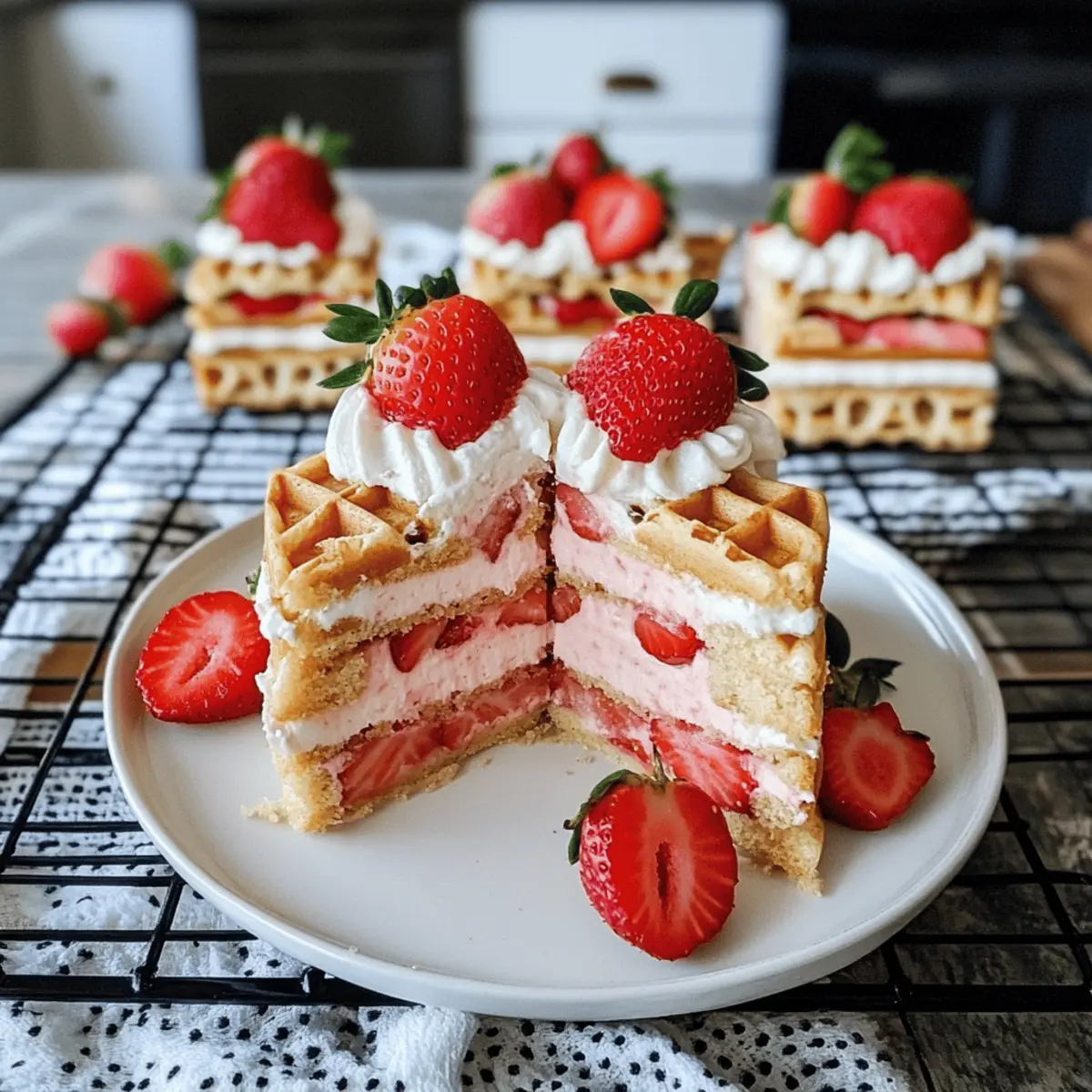 Hinweis: Bereiten Sie sich darauf vor, diesen köstlichen Erdbeerwaffelkuchen zu genießen, der keine langwierige Backzeit erfordert!