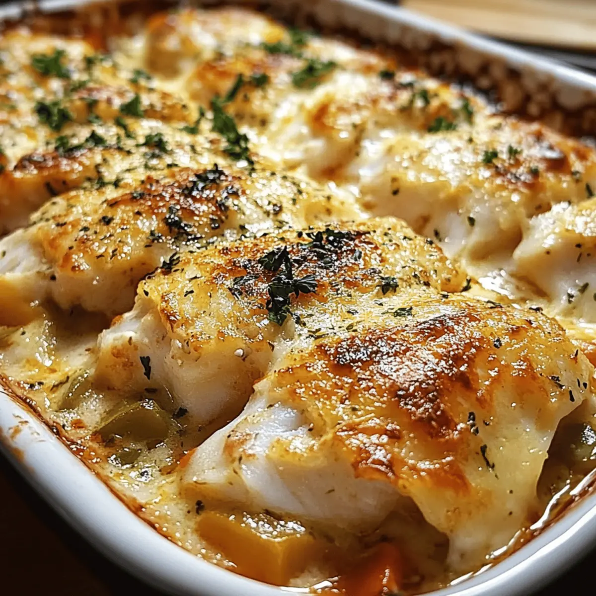 Mit einem verlockenden Duft, der den Raum erfüllt, wird der Fischauflauf sofort zum Star deiner Küche. Diese kreative Variation des klassischen Fischgerichts bringt nicht nur Freude auf die Teller, sondern lässt sich auch ganz nach deinem Geschmack anpassen. Egal, ob du zartes Kabeljau oder saftigen Lachs verwendest, dieser Fischauflauf ist im Handumdrehen zubereitet und überzeugt durch seine gesunde Kombination aus frischem Gemüse und schmelzendem Käse. Die Vorbereitungszeit ist kurz, was ihn zu einer perfekten Wahl für stressige Wochentage macht. Doch das Beste daran? Er ist ein echter Familienfavorit, der die Herzen deiner Liebsten im Sturm erobern wird. Bereit, deine eigene köstliche Version zu kreieren? Lass uns gemeinsam in die Welt des Fischauflaufs eintauchen! Warum ist dieser Fischauflauf so besonders? Gesundheitsbewusst und lecker: Dieses Gericht ist vollgepackt mit gesunden Zutaten, die nicht nur lecker sind, sondern auch gut für dein Wohlbefinden. Einfach zuzubereiten: Mit minimalem Aufwand zauberst du im Handumdrehen einen schmackhaften Fischauflauf, der selbst an hektischen Tagen perfekt ins Menü passt. Vielseitig anpassbar: Du entscheidest, welche Fische und Gemüse du verwendest, ganz nach deinem Geschmack. Möchtest du etwas Ausgefallenes ausprobieren? Mische ein wenig Zitrone oder verschiedene Kräuter für einen besonderen Kick hinzu. Familienfreundlich: Die Kombination aus zartem Fisch und cremigem Käse wird die gesamte Familie begeistern. Die Kinder werden nicht genug davon bekommen! Schnelle Zubereitungszeit: Schnell und einfach – dieser Fischauflauf ist die perfekte Lösung, wenn es mal schnell gehen muss, aber dennoch frisch und hausgemacht sein soll. Bereit, deine Familie mit diesem köstlichen Gericht zu verwöhnen? Schau dir auch unsere Tipps für die Zubereitung von Fisch an, um das Beste aus deinem Rezept herauszuholen! Fischauflauf einmal etwas anders: Zutaten Für den Fisch • Fester weißer Fisch – Verwende Kabeljau oder Lachs für unterschiedliche Geschmacksrichtungen. Für die Gemüsebasis • Paprika – Sie bringt Farbe und knackige Textur in dein Gericht. • Zucchini – Verleiht eine zarte Note und erhöht die Nährstoffe. • Spinat – Perfekt für zusätzliches Volumen und gesunde Ballaststoffe. Für den Käse • Schmelzkäse – Nutze Mozzarella oder Cheddar für eine cremige Konsistenz. Für die Gewürze • Dill – Eine klassische Wahl, die den Fischgeschmack wunderbar ergänzt. • Zitronenschale – Fügt eine frische Note hinzu und macht den Fischauflauf lebendiger. Optionaler Sättigungsanteil • Kartoffeln – Biete eine herzhafte Basis, kann aber weggelassen werden für eine leichtere Variante. Dieser Fischauflauf einmal etwas anders ist vollgepackt mit köstlichen Zutaten und ist die perfekte Möglichkeit, deiner Familie ein gesundes und schmackhaftes Essen zu servieren! Step-by-Step Instructions für Fischauflauf einmal etwas anders Step 1: Ofen vorheizen Heize deinen Ofen auf 180°C (350°F) vor, damit er die perfekte Temperatur erreicht, während du mit den Vorbereitungen für deinen Fischauflauf einmal etwas anders beginnst. Lasse ihn während der Zubereitung an, so dass du sicher sein kannst, dass alles schön gleichmäßig gegart wird. Step 2: Fisch und Gemüse vorbereiten Schneide deinen festen weißen Fisch wie Kabeljau oder Lachs in gleichmäßige Stücke, sodass sie gleichmäßig garen. Zudem bereitest du das Gemüse vor: Schneide Paprika, Zucchini und Spinat in bite-sized Stücke, um maximale Frische und Nährstoffe herauszuholen. Step 3: Gemüsebasis schichten Lege die vorbereiteten Gemüsestücke gleichmäßig in eine Auflaufform. Stelle sicher, dass das Gemüse gut verteilt ist, um eine schöne Grundlage für deinen Fischauflauf einmal etwas anders zu schaffen. Das Gemüse sollte eine attraktive, bunte Schicht bilden, die später den Geschmack des Gerichts ergänzt. Step 4: Fisch auf Gemüse legen Platziere die Fischstücke sorgfältig auf der Gemüseschicht in der Auflaufform. Achte darauf, dass die Fischstücke nicht übereinander liegen, damit sie rundum gleichmäßig garen. Die frischen Aromen des Fisches werden durch das Gemüse hervorgehoben und schöpfen die besten Geschmäcker aus der Kombination. Step 5: Käse und Gewürze hinzufügen Streue eine großzügige Menge deines gewählten Schmelzkäses über den Fisch und das Gemüse. Verfeinere alles mit Dill und, wenn gewünscht, etwas Zitronenschale für eine frische Note. Die Käse- und Gewürzkombination wird deinen Fischauflauf einmal etwas anders unwiderstehlich machen. Step 6: Abdecken und backen Decke die Auflaufform mit Aluminiumfolie ab und stelle sie in den vorgeheizten Ofen. Backe den Fischauflauf für etwa 25-30 Minuten, bis der Fisch und das Gemüse gar sind. Du erkennst die Garstufe, wenn der Fisch opak ist und sich leicht mit einer Gabel zerteilen lässt. Step 7: Folie entfernen und bräunen Nehme nach der Backzeit die Folie ab und lasse den Auflauf für weitere 10 Minuten backen. Dadurch wird der Käse goldbraun und erhält eine köstliche knusprige Oberfläche, die deinem Fischauflauf einmal etwas anders den letzten Schliff verleiht. Beobachte die Farbe des Käses, bis er schön gebräunt ist. Step 8: Servieren und genießen Nehme den Fischauflauf einmal etwas anders aus dem Ofen und lasse ihn kurz ruhen, bevor du ihn servierst. Der Auflauf sollte goldbraun und blubbernd sein. Genieße ihn direkt aus der Auflaufform mit etwas frischem Brot oder einem grünen Salat! Nützliche Tipps für Fischauflauf Frische Zutaten wählen: Achte darauf, frischen Fisch und saisonales Gemüse zu verwenden, um den besten Geschmack und Nährwert für deinen Fischauflauf zu gewährleisten. Gleichmäßige Stücke: Schneide Fisch und Gemüse in gleichmäßige Stücke, damit sie gleichmäßig garen. Das verhindert, dass einige Teile überkochen, während andere noch roh sind. Käse für zusätzliche Cremigkeit: Verwende geschmolzenen Käse wie Mozzarella o