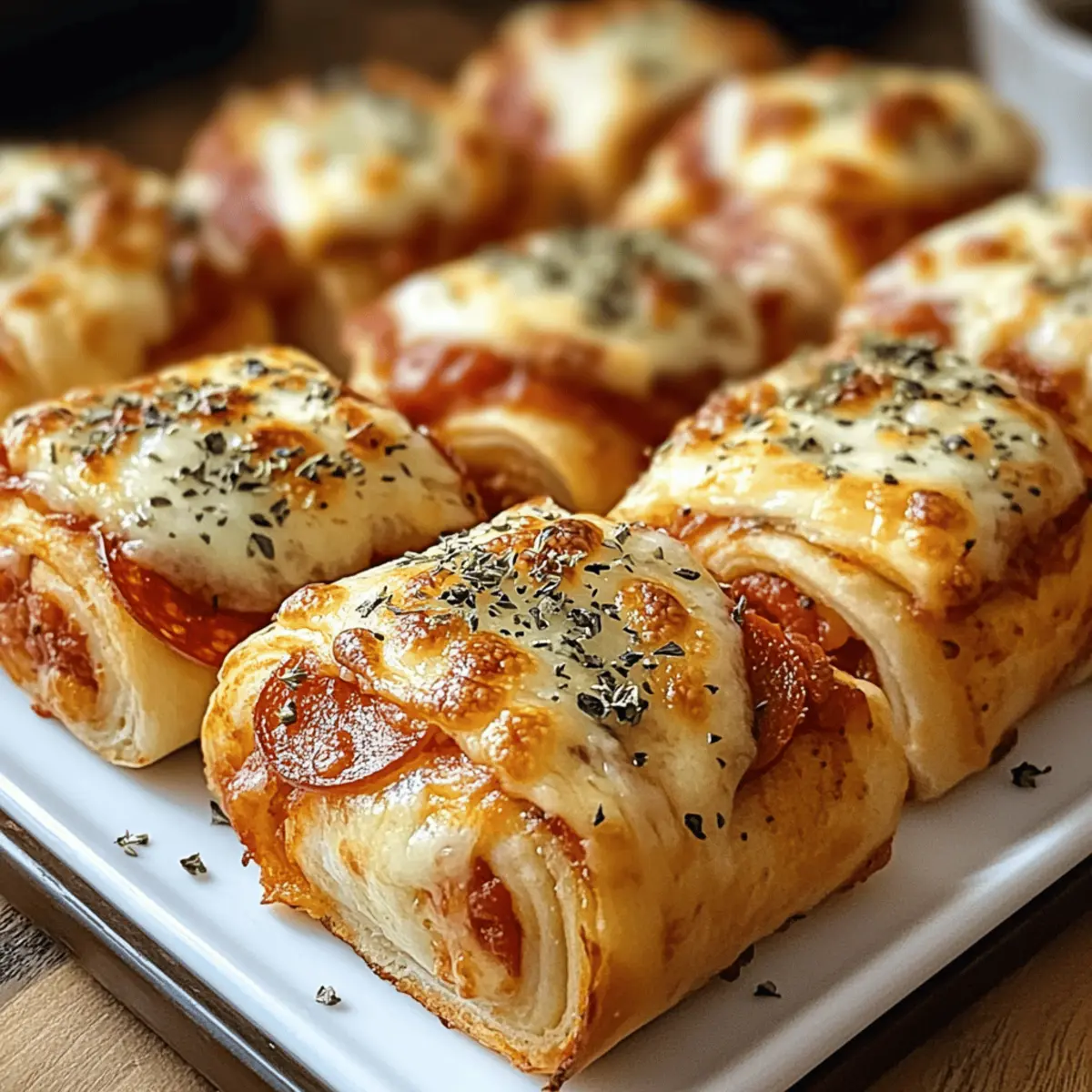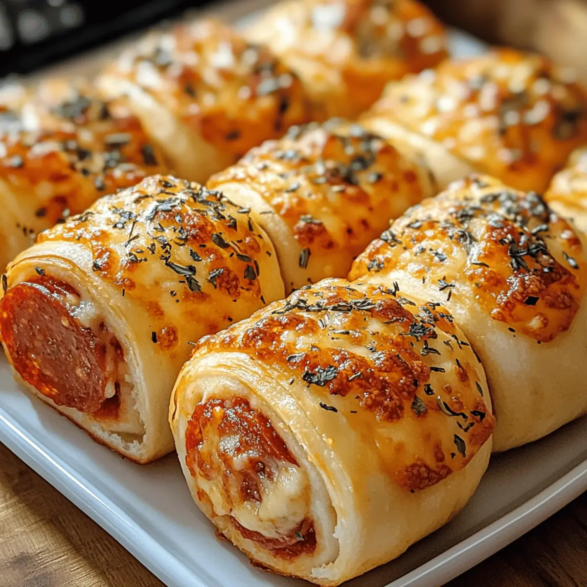 Hast du schon einmal den Duft frisch gebackener Pizzarollen in deiner Küche erlebt? Für mich gibt es kaum etwas Besseres als die Vorfreude, wenn sich die Ofentür öffnet und eine Wolke aus warmen, knusprigen Aromen entweicht. Heute teile ich mit dir das Rezept für meine Flaky Pepperoni-Pizza-Rollen mit Mozzarella und Kräutern – ein wunderbarer Snack, der super schnell zubereitet ist! Diese köstlichen Häppchen sind nicht nur bei Kindern beliebt, sondern lassen sich auch ganz leicht nach deinem Geschmack anpassen. In weniger als 30 Minuten sind sie bereit, deinen Hunger zu stillen—ideal für Filmabende, Partys oder ein schnelles Mittagessen. Bist du bereit, deine Küchenabenteuer ins nächste Level zu heben? Warum wirst du dieses Rezept lieben? Einfachheit: Die Zubereitung dieser Pizzarollen ist kinderleicht und erfordert nur grundlegende Kochkünste. Himmlischer Geschmack: Die Kombination aus schmelzendem Mozzarella und würzigem Pepperoni verführt jeden Gaumen. Vielseitigkeit: Customize sie ganz nach deinem Geschmack – füge Gemüse oder verschiedene Käsesorten hinzu! Schnell zubereitet: In weniger als 30 Minuten sind sie servierfertig; perfekt für hektische Tage. Familienfreundlich: Die Pizzarollen sind bei Kindern sehr beliebt und sorgen immer für Begeisterung. Ideale Snacks: Ob bei einem Filmabend oder als Partyhäppchen, sie sind ein Hit bei jedem Anlass! Flaky Pepperoni-Pizza-Rollen Zutaten Hinweis: Mit diesen Flaky Pepperoni-Pizza-Rollen mit Mozzarella und Kräutern zauberst du einen köstlichen Snack, der in keiner Küche fehlen darf! Für den Teig • Blätterteig – sorgt für die perfekte Struktur und Flakigkeit; glutenfreier Blätterteig ist eine gute Option für glutenempfindliche Genießer. Für die Füllung • Geriebener Mozzarella – liefert das cremige, schmelzende Erlebnis; ein Mix aus verschiedenen Käsesorten kann den Geschmack noch verstärken. • Scheiben Pepperoni – für die würzige, saftige Füllung; kann durch gekochte Wurst oder Schinken ersetzt werden, um den Geschmack zu variieren. • Getrocknete italienische Kräuter (Oregano und Basilikum) – bringen Tiefe ins Aroma; frische Kräuter sorgen für einen lebendigeren Geschmack. Für das Finish • Verquirltes Ei – dient als Eierwäsche für eine goldene Farbe und Glanz; ist optional, aber sehr empfehlenswert für die Präsentation. Für die Dips • Pizzasoße – ideal zum Dippen; wähle deine bevorzugte Sauce, von Marinara bis Ranch. Diese Zutaten machen deine Flaky Pepperoni-Pizza-Rollen nicht nur zu einem wahren Gaumenschmaus, sondern auch zu einem familienfreundlichen Rezept, das jeden neugierig macht! Schritt-für-Schritt-Anleitung für Flaky Peperoni-Pizza-Rollen mit Mozzarella und Kräutern Step 1: Ofen vorheizen Heize den Ofen auf 200 °C (400 °F) vor und lege ein Backblech mit Backpapier aus. Diese Vorbereitung ist entscheidend, damit die Flaky Peperoni-Pizza-Rollen gleichmäßig gebacken werden und eine goldbraune, knusprige Oberfläche erhalten. Halte das Blech bereit, während du die anderen Schritte ausführst. Step 2: Blätterteig ausrollen Rolle den aufgetauten Blätterteig auf einer bemehlten Fläche dünn aus, sodass er eine gleichmäßige Dicke hat. Achte darauf, dass der Teig nicht an der Arbeitsplatte kleben bleibt. Dadurch sorgst du für die Flakigkeit, die das Herzstück deiner Flaky Peperoni-Pizza-Rollen ist. Der Teig sollte rechteckig und glatt sein. Step 3: Käse verteilen Verteile den geriebenen Mozzarella gleichmäßig auf dem Blätterteig, dabei einen Rand von etwa 1–2 cm an den Kanten freilassen. Achte darauf, dass der Käse nach Belieben kräftig belegt wird, aber nicht überladen ist – zu viel Käse könnte beim Backen herauslaufen und die Rollfülle matschig machen. Step 4: Pepperoni und Kräuter hinzufügen Lege die Scheiben Pepperoni gleichmäßig auf den Käse und streue die getrockneten italienischen Kräuter darüber. Diese kombinierte Schicht bringt den herzhaften Geschmack in die Flaky Peperoni-Pizza-Rollen. Falls du frische Kräuter verwendest, wird das Aroma noch intensiver. Step 5: Rollen und schneiden Rolle den Blätterteig vorsichtig von einer langen Seite her auf, sodass eine feste Rolle entsteht. Drücke die Kanten leicht zusammen, um zu verhindern, dass die Füllung während des Backens herausquillt. Schneide die Rolle in etwa 2,5 cm dicke Scheiben, sodass die Füllung gleichmäßig verteilt bleibt. Step 6: Auf das Backblech legen Lege die geschnittenen Stücke mit der Schnittseite nach oben auf das vorbereitete Backblech. Achte darauf, genügend Abstand zwischen den Pizzarollen zu lassen, damit sie beim Backen Platz zum Aufgehen haben. Dies garantiert, dass jede Flaky Peperoni-Pizza-Rolle schön goldbraun wird. Step 7: Mit Ei bestreichen Verquirle das Ei in einer kleinen Schüssel und bestreiche die Oberseite der Pizzarollen sanft mit einem Pinsel. Diese Eierwäsche sorgt dafür, dass die Oberfläche beim Backen schön glänzend und goldbraun wird. Das sieht nicht nur lecker aus, sondern gibt den Flaky Peperoni-Pizza-Rollen auch einen appetitlichen Glanz. Step 8: Backen Backe die Pizzarollen im vorgeheizten Ofen für 15–18 Minuten, bis sie goldbraun und knusprig aussehen. Achte darauf, dass die Kanten der Rolle gut gebräunt sind, denn das ist ein Zeichen dafür, dass sie perfekt durchgebacken sind. Lass den köstlichen Duft in deiner Küche für Vorfreude aufkommen! Step 9: Servieren Nimm die Flaky Peperoni-Pizza-Rollen aus dem Ofen und lass sie etwas abkühlen. Serviere sie warm, eventuell mit einer Auswahl an Pizzasoßen zum Dippen. Diese herzhaften Häppchen sind nicht nur ein Genuss, sondern auch ein Hit bei allen Gelegenheiten! Flaky Peperoni-Pizza-Rollen vorbereiten für stressfreies Kochen Diese Flaky Peperoni-Pizza-Rollen mit Mozzarella und Kräutern eignen sich hervorragend für die Vorab-Zubereitung! Du kannst den Blätterteig bis 24 Stunden im Voraus ausrollen, mit Käse und Pepperoni belegen und dann gut einwickeln o