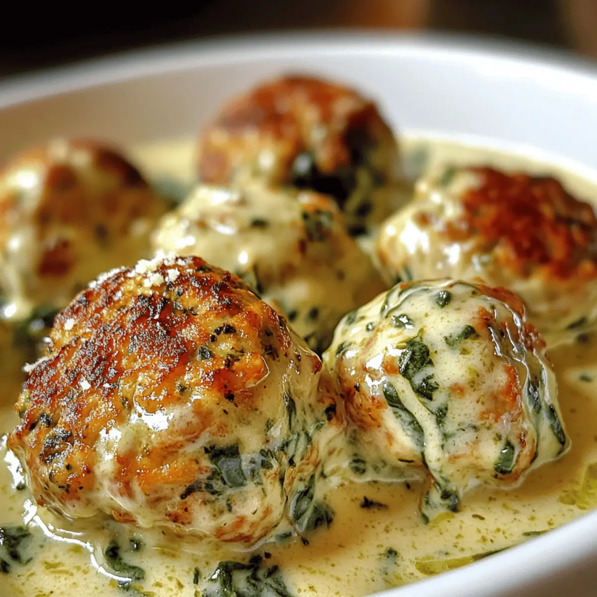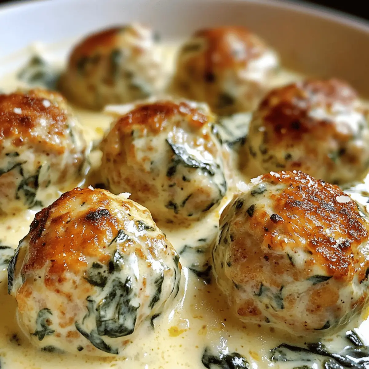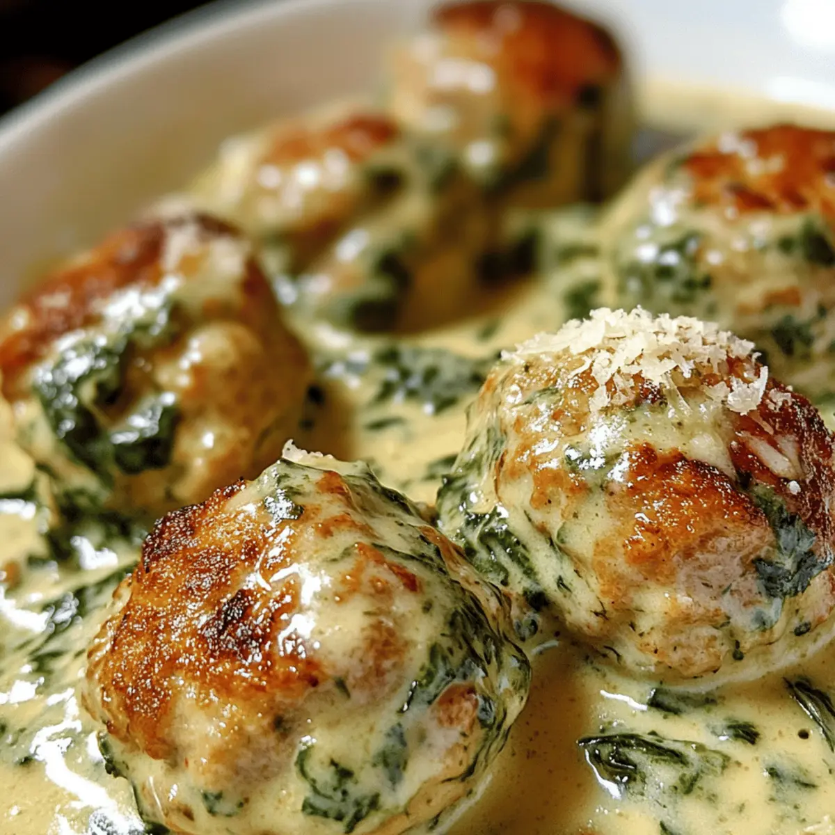 Genieße deine gebackenen Hähnchen-Ricotta-Fleischbällchen mit Spinat-Alfredo und mache es zu einem unvergesslichen Erlebnis!