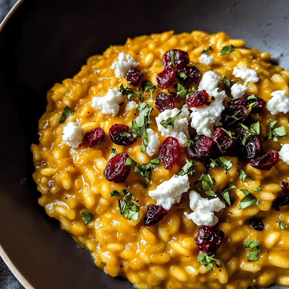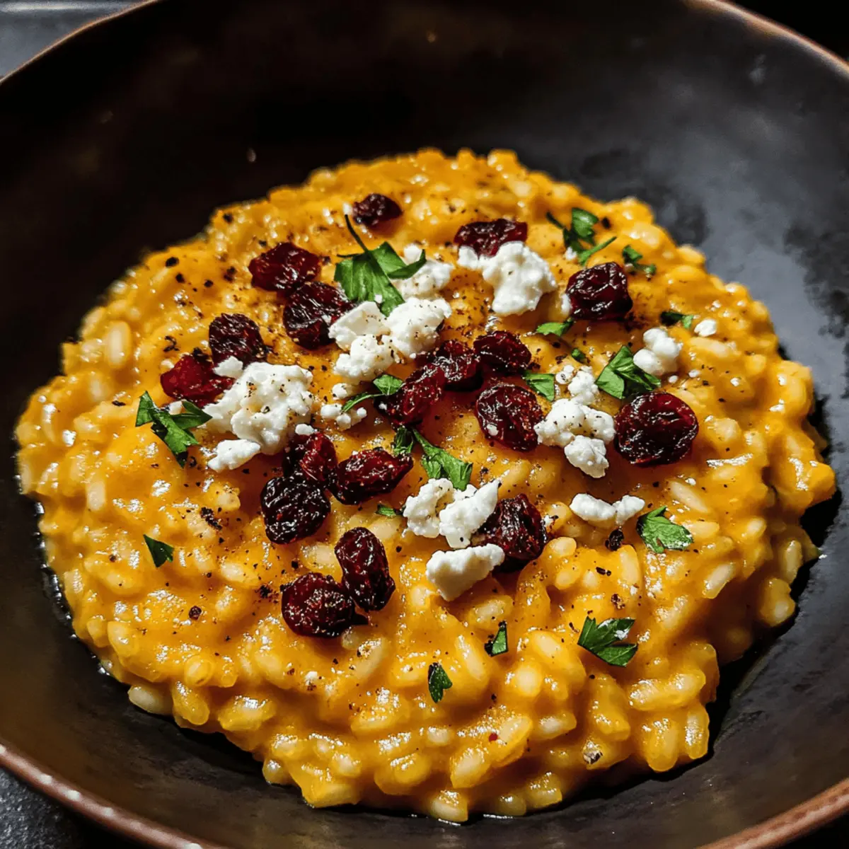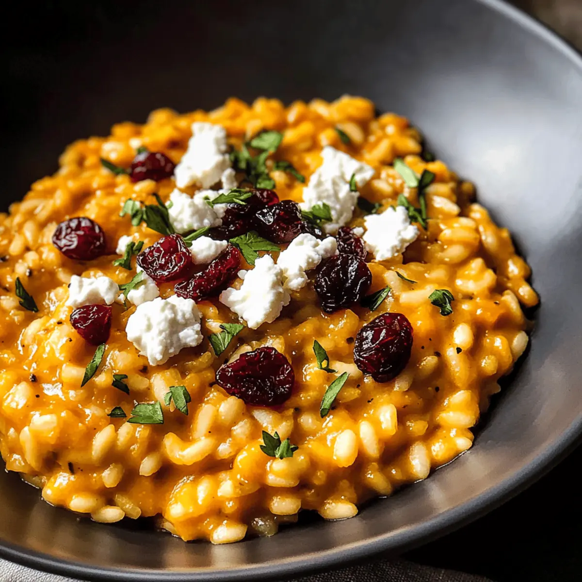 Dein Gebackenes Kürbis Ziegenkäse Risotto ist nun bereit. Serviere es sofort, garniert mit der restlichen Petersilie, großzügig zerbröckeltem Ziegenkäse und den getrockneten Cranberries. Die Kombination dieser Zutaten, zusammen mit der cremigen Textur, sorgt für ein unvergessliches Geschmackserlebnis.