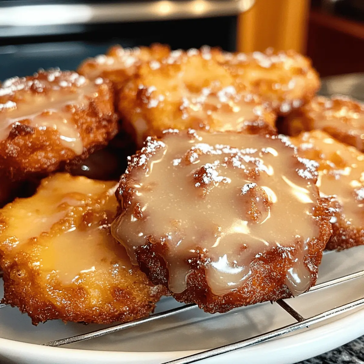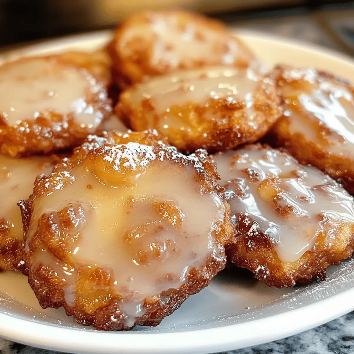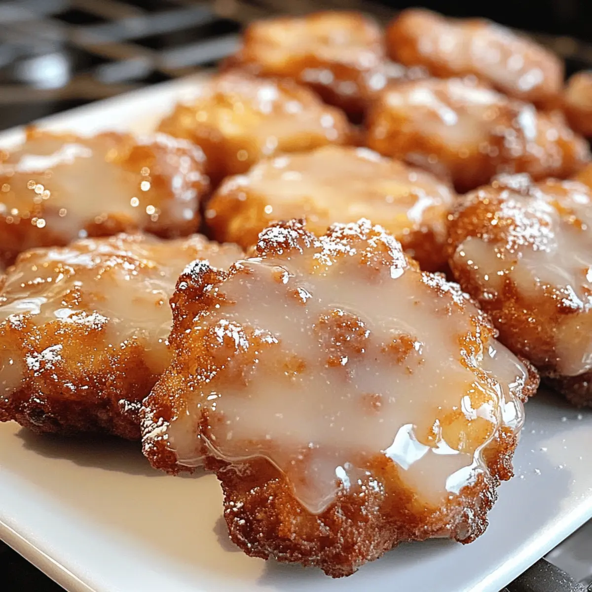 Die goldene Herbstsonne scheint durch das Küchenfenster, während der verführerische Duft von Zimt und Äpfeln meine Sinne umschmeichelt. Heute möchte ich euch mit einem ganz besonderen Rezept überraschen: Gebratene Apfelkrapfen, die nicht frittiert, sondern im Ofen gebacken werden! Diese leckeren Krapfen sind nicht nur eine gesündere Alternative zu ihren traditionellen Gegenstücken, sie sind auch super einfach zuzubereiten und bringen alle Familienmitglieder an den Tisch. Mit einer herrlichen Kombination aus saftigen Äpfeln und warmen Gewürzen zaubert ihr ein Stück Herbst auf die Teller – und das ganz ohne schlechtes Gewissen. Seid ihr bereit, euer Zuhause mit dem köstlichen Aroma dieser süßen Leckereien zu erfüllen? Dann lasst uns direkt in dieses saftige Abenteuer eintauchen! Warum wirst du diese Krapfen lieben? Einfachheit pur: Die Zubereitung dieser gebackenen Apfelkrapfen erfordert nur einfache Backfähigkeiten und alltägliche Zutaten aus deiner Vorratskammer. Gesunde Wahl: Diese Leckereien sind eine wesentlich gesündere Alternative zu frittierten Variationen, ohne dabei auf den köstlichen Geschmack zu verzichten. Vielseitig: Du kannst die Äpfel ganz nach Belieben austauschen – probiere einmal Birnen oder Pfirsiche für eine fruchtige Abwechslung! Familienfreundlich: Perfekt für jede Gelegenheit, die Krapfen zaubern ein Lächeln auf die Gesichter von Groß und Klein. Wundervoller Duft: Der verlockende Geruch von Zimt und Äpfeln wird deinen Raum durchdringen und alle zum Essen einladen. Zeitersparnis: In nur etwa 15 Minuten backen sie im Ofen, sodass du schnell etwas Leckeres zaubern kannst. Wenn du mehr Inspiration für Zeitersparnis und Rezepte suchst, schau dir auch meine anderen schnellen Desserts an! Zutaten für gebratene Apfelkrapfen • Für die knusprige Textur und den Geschmack, diese Zutaten verwenden! Für den Teig: Allzweckmehl – sorgt für die Struktur; kann durch glutenfreies Mehl ersetzt werden. Weißes Vollkornmehl – fügt einen nussigen Geschmack hinzu und verbessert die Nährstoffaufnahme; kann komplett durch Allzweckmehl ersetzt werden. Brauner Zucker – bringt Süße und Feuchtigkeit; für eine raffinierte Zuckeralternative kann Kokoszucker verwendet werden. Backpulver – sorgt für die nötige Lockheit beim Backen; unverzichtbar für das Aufgehen des Teigs. Zimt – verleiht den Krapfen einen warmen und gemütlichen Geschmack; für eine saisonale Note kann Kürbiskuchengewürz verwendet werden. Muskatnuss – steigert die Geschmacksvielfalt; frische Muskatnuss sorgt für ein besseres Aroma. Piment – fügt Tiefenwirkung hinzu; kann weggelassen werden, wenn nicht vorhanden. Salz – balanciert die Süße; kann weggelassen werden, wenn du eine natriumarme Diät einhältst. Butter – sorgt für Reichtum und Textur; für eine milchfreie Version kann Kokosöl verwendet werden. Milch – bringt Feuchtigkeit und bindet die Zutaten; für milchfreie Alternativen sind Mandel- oder Hafermilch geeignet. Ei – bindet die Zutaten zusammen; für eine vegane Option kann ein Flachs-Ei (1 EL gemahlener Flachs + 2,5 EL Wasser) verwendet werden. Vanilleextrakt – fördert den Gesamtgeschmack; keine Substitution empfohlen. Gehackter Apfel – Hauptgeschmackskomponente, die Feuchtigkeit und Süße liefert; kann durch Birnen oder Pfirsiche ersetzt werden. Für die Glasur: Puderzucker – sorgt für die süße und glänzende Glasur; kann für eine zuckerfreie Variante mit erythritol verwendet werden. Schritt-für-Schritt-Anleitung für gesunde gebratene Apfelkrapfen Step 1: Ofen vorheizen Heize zunächst deinen Ofen auf 200 °C vor und lege ein Backblech mit einer Silikonmatte oder Backpapier aus. Dies sorgt dafür, dass die gebackenen Apfelkrapfen beim Backen nicht anhaften. Eine sorgfältige Vorbereitung ist der erste Schritt zu köstlichen gebackenen Apfelkrapfen. Step 2: Trockene Zutaten vermengen In einer großen Schüssel vermischst du das Allzweckmehl, das weiße Vollkornmehl, den braunen Zucker, das Backpulver, Zimt, Muskatnuss, Piment und Salz gründlich. Achte darauf, dass keine Klumpen zurückbleiben. Diese Kombination aus trockenen Zutaten bildet die Basis für die köstlichen Krapfen und verleiht ihnen ihre aromatische Note. Step 3: Butter einarbeiten Schneide die kalte Butter in kleine Stücke und füge sie zu den trockenen Zutaten hinzu. Mit einem Pastry Cutter oder den Fingern drückst du die Butter ein, bis die Mischung groben Krümeln ähnelt. Dies sorgt für eine wunderbare, knusprige Textur in deinen gebackenen Apfelkrapfen. Step 4: Nasse Zutaten vermischen In einer separaten Schüssel verquirlst du die Milch, das Ei und den Vanilleextrakt. Diese Mischung bringt Feuchtigkeit in den Teig und bindet die Zutaten. Achte darauf, die nassen Zutaten gut zu vermengen, bevor du sie den trockenen Zutaten hinzufügst. Step 5: Teig anrühren Gieße die nassen Zutaten in die Schüssel mit den trockenen Zutaten und rühre vorsichtig um, bis alles gerade so vermischt ist. Achte darauf, nicht zu viel zu rühren, damit die gebackenen Apfelkrapfen nicht zäh werden. Der Teig sollte noch leicht klumpig sein – das ist perfekt! Step 6: Äpfel hinzufügen Falte nun vorsichtig die gehackten Äpfel in den Teig. Diese bringen saftige Süße und einen fruchtigen Geschmack in die gebackenen Apfelkrapfen, die du mit deiner Familie genießen wirst. Sei behutsam beim Mischen, um die Äpfel nicht zu zerdrücken. Step 7: Portionieren und backen Verwende einen Esslöffel oder einen Eisportionierer, um den Teig in gleichmäßigen Portionen von etwa 1/4 Tasse auf das vorbereitete Backblech zu setzen. Achte darauf, ausreichend Platz zwischen den Krapfen zu lassen, damit sie beim Backen aufgehen können. Backe die Krapfen für 11-13 Minuten im Ofen, bis die Unterseiten goldbraun und die Oberseiten fest sind. Step 8: Glasur vorbereiten Nachdem die Apfelkrapfen aus dem Ofen kommen, schalte deinen Ofen auf Grillfunktion um. In einer kleinen Schüssel vermischst du den P