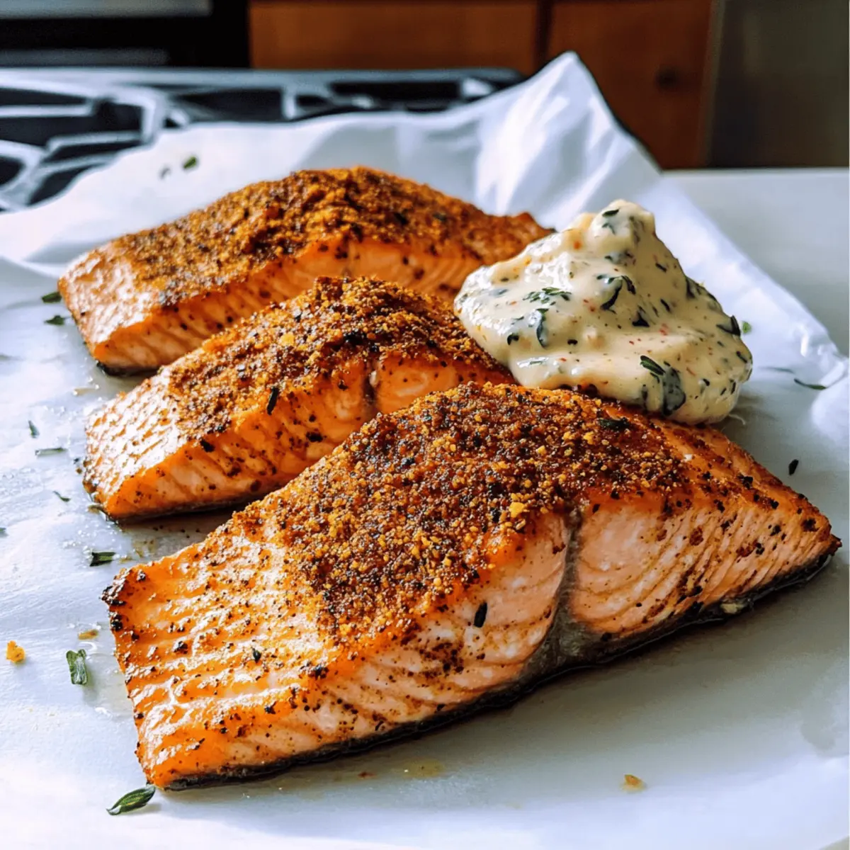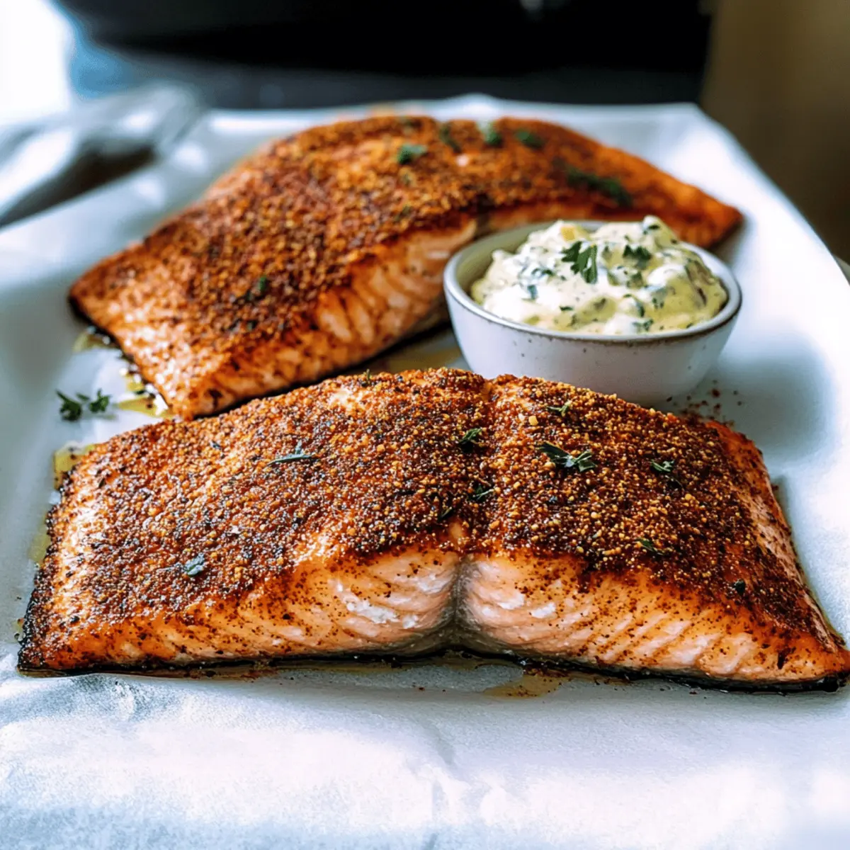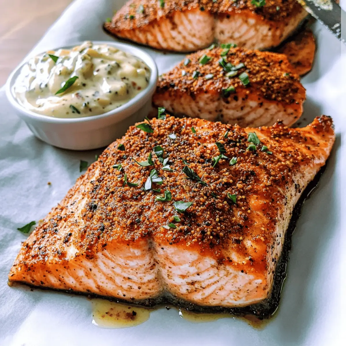 Es ist kaum zu fassen, wie einfach ein köstliches Abendessen sein kann! Mein Rezept für gebratenen Cajun-Lachs mit würziger Remoulade bringt die Aromen einer kreolischen Küche direkt auf den Tisch – und das in nur 20 Minuten. Dieser zarte, saftige Lachs trifft auf eine cremige, leicht scharfe Remoulade, die das Gericht perfekt ergänzt. Nicht nur, dass dieser Quick-Dinner-Genuss gesund ist und sich ideal für hektische Wochentage eignet, er ist auch glutenfrei und macht jeden Esser glücklich. Neugierig, wie diese Geschmacksexplosion entsteht? Lass uns gemeinsam loslegen! Warum ist dieses Rezept einzigartig? Einfachheit: In nur 20 Minuten zauberst du ein schmackhaftes Gericht, das selbst bei stressigen Tagen nicht ins Wasser fällt. Geschmacksexplosion: Die Kombination aus Cajun-Gewürzen und cremiger Remoulade sorgt für einen vollen, würzigen Genuss. Vielfalt: Serviere den Lachs mit köstlichen Beilagen wie Reis oder frischem Salat für ein rundum gelungenes Dinner. Gesund und lecker: reich an Omega-3-Fettsäuren und glutenfrei – perfekt für eine gesunde Ernährung. Eigenes Flair: Verleihe der Remoulade deinen persönlichen Twist mit extra Gewürzen oder Kräutern, und genieße jedes Mal etwas Neues! Gebratener Cajun-Lachs mit würziger Remoulade Zutaten • Hinweis: Entdecke die köstlichen Zutaten für deinen Gebratener Cajun-Lachs mit würziger Remoulade! Für den Lachs Lachsfilets – Wähle frische, wild gefangene Alaskalachsfilets für den besten Geschmack. Cajun-Gewürze – Bringe Schärfe und Tiefe ins Spiel. Ein fertiges Gewürzgemisch bietet sich an. Kokoszucker oder brauner Zucker – Ein Hauch von Süße, um die Gewürze auszubalancieren; brauner Zucker ist ein wunderbarer Ersatz. Raucharome Paprika – Sorgt für einen herrlichen Rauchgeschmack; achte darauf, dass es frisch ist. Salz – Verstärkt die Aromen; passe es an deine besonderen Ernährungsbedürfnisse an. Olivenöl – Hält den Lachs saftig; du kannst auch Avocadoöl verwenden. Für die Remoulade Mayonnaise – Die Basis für die Remoulade; veganen Mayo für eine milchfreie Option wählen. Zitrone – Frische und Säure für die Remoulade; kann durch Essig ersetzt werden. Scharfe Soße – Gibt einen scharfen Kick; justiere die Menge nach deinem persönlichen Geschmack. Gewürzgurkenrelish – Für die besondere Säure in der Remoulade; kann durch gehackte Dillgurken ersetzt werden. Zusätzliches Cajun-Gewürz (für die Remoulade) – Verstärkt das Geschmackerlebnis; optional, aber sehr empfehlenswert. Step-by-Step Instructions für Gebratener Cajun-Lachs mit würziger Remoulade Step 1: Ofen vorheizen Heize deinen Ofen auf 200°C vor. Dadurch wird sichergestellt, dass der Lachs gleichmäßig und schnell gart. Ein vorgeheizter Ofen sorgt dafür, dass die Außenseite des Lachsfilets schön knusprig wird, während das Innere zart und saftig bleibt. Step 2: Gewürzmischung vorbereiten Mische in einer kleinen Schüssel das Cajun-Gewürz, den Kokos- oder braunen Zucker, das geräucherte Paprikapulver und das Salz. Rühre alles gut um, sodass eine uniforme Gewürzmischung entsteht. Diese Mischung wird dem Lachs seinen würzigen Kick geben, also achte darauf, dass alles gleichmäßig verteilt ist. Step 3: Lachs würzen Reibe die Gewürzmischung großzügig auf die Lachsfilets. Achte darauf, dass die gesamte Oberfläche gut bedeckt ist, um den vollen Geschmack zu erreichen. Lege die gewürzten Filets auf ein mit Backpapier ausgelegtes Backblech, um ein Ankleben zu verhindern und die Reinigung zu erleichtern. Step 4: Öl hinzufügen Träufle etwas Olivenöl über die gewürzten Lachsfilets. Dieses Öl hilft dabei, den Lachs saftig zu halten, während er im Ofen gart. Du kannst auch mit einem Pinsel das Öl gleichmäßig verteilen, um sicherzustellen, dass jeder Bissen geschmackvoll ist und nicht austrocknet. Step 5: Lachs backen Schiebe das Backblech mit dem Lachs in den vorgeheizten Ofen und backe ihn für 12-15 Minuten. Der Lachs sollte zart und flockig sein, wenn du ihn mit einer Gabel prüfst. Achte darauf, dass die Oberfläche leicht bräunlich ist, dies zeigt, dass er schön gegart ist. Step 6: Remoulade zubereiten Während der Lachs im Ofen ist, kannst du die würzige Remoulade zubereiten. Vermische in einer Schüssel die Mayonnaise, den Zitronensaft, die Scharfe Soße, das Gewürzgurkenrelish und optional ein wenig Cajun-Gewürz. Rühre alles gut durch, damit eine cremige und würzige Sauce entsteht. Step 7: Servieren Wenn der Lachs fertig ist, nimm ihn aus dem Ofen und lasse ihn kurz ruhen. Serviere ihn zusammen mit der würzigen Remoulade, die perfekt zu den Aromen des gebratenen Cajun-Lachs passt. Du kannst den Lachs mit Beilagen wie Reis oder einem frischen Salat kombinieren, um dein Abendessen abzurunden. Variationen des Gebratenen Cajun-Lachs mit würziger Remoulade Egal, wie du es magst, dieser leckere Lachs kann ganz nach deinem Geschmack personalisiert werden! Fisch-Variation: Ersetze den Lachs durch Tilapia oder Forelle für eine andere Geschmacksrichtung. Jede Art von Fisch kann mit den gleichen Gewürzen zubereitet werden und bietet eine neue Überraschung auf dem Teller. Zucker reduzieren: Verwende weniger Zucker in der Gewürzmischung, um einen weniger süßen Geschmack zu erzielen. So leuchten die Gewürze noch mehr und bringen die Aromen zur Geltung. Gemüse hinzu: Füge roh oder kurz gebratenes Gemüse, wie Spargel oder Paprika, neben dem Lachs auf dem Blech hinzu. Das gibt dir eine bunte, nahrhafte Beilage! Kräuter-Boost: Garniere den Lachs vor dem Servieren mit frisch gehacktem Dill oder Petersilie. Frische Kräuter bringen zusätzliche Frische und Farbe ins Gericht. Vegetarische Alternative: Ersetze den Lachs durch gegrillten Tofu oder Tempeh, die mit Cajun-Gewürzen mariniert sind. Ein köstlicher, pflanzlicher Genuss! Scharfer Kick: Füge mehr scharfe Soße zur Remoulade hinzu, wenn du es richtig würzig magst. Das zielt perfekt auf das feurige Aroma ab! Cremiger Genuss: Verwend