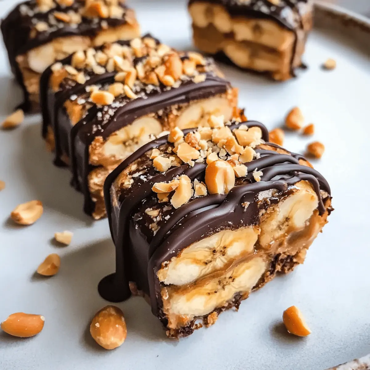 Hast du jemals versucht, fruchtige Snacks in etwas Süßes zu verwandeln? Mit den gefrorenen Bananen-Snickers wird diese Idee Wirklichkeit! Diese köstlichen Riegel sind nicht nur eine himmlische Erfrischung an heißen Sommertagen, sondern auch ganz ohne Zucker, Milchprodukte oder Gluten. In dieser simplen, no-bake Variante vereinen sich cremige Erdnussbutter, süße Bananen und knackige Erdnüsse zu einem gesunden Leckerbissen für Groß und Klein. Egal, ob du nach einem Snack für die Familie oder einer süßen Belohnung für dich suchst, diese gefrorenen Bananen-Snickers sind leicht zuzubereiten und machen sich prima im Gefrierschrank. Bist du bereit, diese süße Versuchung auszuprobieren? Warum wirst du diese gefrorenen Bananen-Snickers lieben? Einfachheit: Die Zubereitung ist supereinfach und erfordert keine besonderen Kochkünste. Jeder kann sie machen! Gesundheit: Diese Riegel sind nicht nur zuckerfrei, sondern auch vegan und glutenfrei – perfekt für alle, die auf ihre Ernährung achten. Vielfalt: Du kannst die Erdnussbutter je nach Vorliebe durch Mandel- oder Cashewbutter ersetzen. So bleibt es spannend und individuell! Erfrischend: Diese gefrorenen Snacks sind die ideale Abkühlung an heißen Tagen und liefern dir eine leckere, süße Belohnung. Crowd-Pleaser: Ob für die Familie oder Freunde, diese gefrorenen Bananen-Snickers kommen bei jedem gut an – perfekt für Partys oder als gesunder Snack für Zwischendurch. Entdecke auch, wie du mit anderen Rezepten wie Summer Fruit Salad oder Healthy Vegan Ice Cream deine Sommertage verfeinern kannst! Gefrorene Bananen-Snickers Zutaten ** Für die Riegel** • Bananen – Diese natürlichen Süßigkeiten bieten die perfekte Basis für unser Rezept. Wähle mittelreife Bananen für das beste Aroma. • Erdnussbutter – Sie verleiht den Riegeln Cremigkeit und einen nussigen Geschmack. Du kannst auch Mandel- oder Cashewbutter verwenden, um eine andere Geschmacksnote zu erzielen. • Zartbitter-Schokolade – Für eine schokoladige Note und einen köstlichen Crunch. Achte auf eine milchfreie Schokoladensorte, damit die Riegel vegan bleiben. • Kokosöl – Ermöglicht das Schmelzen der Schokolade und macht sie glatter. Du kannst es weglassen, aber es hilft der Schokolade, besser zu härten. • Gehackte Erdnüsse – Bringen einen knackigen Biss und eine salzige Note, die die Süße wunderbar ausbalanciert. Du kannst auch andere Nüsse verwenden oder sie ganz weglassen, falls du möchten. • Meersalz – Verstärkt die Aromen. Verwende es nach Geschmack. Mit diesen Zutaten für die gefrorenen Bananen-Snickers wird dein Snack zu einem geschmacklichen Genuss! Schritt-für-Schritt-Anleitung für Gefrorene Bananen-Snickers Step 1: Bananen vorbereiten Schäle die Bananen und schneide sie der Länge nach in Hälften, sodass du insgesamt 8 Scheiben erhältst. Lege diese Bananenscheiben auf ein mit Backpapier ausgelegtes Backblech. Achte darauf, dass die Scheiben genügend Platz haben, um ein Verkleben zu vermeiden. Step 2: Erdnussbutter auftragen Verteile gleichmäßig eine Schicht Erdnussbutter auf jede Bananenscheibe. Stelle sicher, dass die Erdnussbutter die gesamte Oberfläche bedeckt. Bestreue dann jede Scheibe mit einer Prise gehackter Erdnüsse und einem Hauch Meersalz, um die Aromen zu verstärken und eine salzige Note hinzuzufügen. Step 3: Schokolade schmelzen Schmelze die Zartbitter-Schokolade zusammen mit dem Kokosöl in einer mikrowellengeeigneten Schüssel. Erhitze sie in 30-Sekunden-Intervallen und rühre zwischendurch, bis die Mischung glatt und klumpenfrei ist. Achte darauf, die Mischung nicht zu überhitzen, damit sie ihre perfekte Konsistenz behält. Step 4: Schokolade tropfen Gieße die geschmolzene Schokolade vorsichtig über jede Erdnussbutter-bedeckte Bananenscheibe. Stelle sicher, dass die Schokolade gut verteilt ist und die Bananenscheiben vollständig umhüllt. Du kannst mit einem Löffel oder einer kleinen Kelle arbeiten, um dies zu erleichtern. Step 5: Gefrierzeit Stelle das Backblech mit den Bananensnickers in den Gefrierschrank und lasse sie dort für mindestens 1 Stunde stehen. Überprüfe, dass die Schokolade vollständig gehärtet ist, bevor du mit dem nächsten Schritt fortfährst. Die gefrorenen Bananen-Snickers sollten fest und leicht knackig sein. Step 6: Aufbewahrung und Schnitt Nachdem die Riegel fest sind, nimm das Backblech aus dem Gefrierschrank. Übertrage die gefrorenen Bananen-Snickers in einen luftdichten Behälter zur Aufbewahrung im Gefrierschrank. Du kannst sie ganz lassen oder in Stücke schneiden, um sie leichter portionieren zu können. Sie halten sich dort bis zu zwei Monate. Perfekte Vorbereitung für deine Gefrorenen Bananen-Snickers Die gefrorenen Bananen-Snickers sind ideal für die Vorbereitung im Voraus und bringen dir entspannte, stressfreie Wochen! Du kannst die Bananenscheiben bis zu 24 Stunden im Voraus schälen und schneiden. Lege sie einfach auf ein mit Backpapier ausgelegtes Blech, und stelle sicher, dass sie nicht aufeinander liegen, um Verkleben zu vermeiden. Auch die Erdnussbutter kann im Voraus aufgetragen werden. Wenn du bereit bist, die Riegel fertigzustellen, schmelze einfach die Zartbitter-Schokolade mit dem Kokosöl in der Mikrowelle (bei 30-Sekunden-Intervallen). Gieße die geschmolzene Schokolade über die Bananenscheiben und friere sie mindestens 1 Stunde ein. So bleiben die Riegel frisch und lecker – perfekt für einen schnellen und gesunden Snack! Tipps zur Aufbewahrung von gefrorenen Bananen-Snickers Fridge: Bewahre die gefrorenen Bananen-Snickers nicht im Kühlschrank auf, da sie dort weich werden und ihre Textur verlieren. Es ist am besten, sie im Gefrierfach zu lassen. Freezer: Lagere die Riegel in einem luftdichten Behälter im Gefrierfach, wo sie sich bis zu zwei Monate halten. So bleiben sie frisch und lecker. Reheating: Du solltest gefrorene Bananen-Snickers direkt aus dem Gefrierfach genießen, da sie schnell schmelzen. Warte ein paar Minuten, wenn s