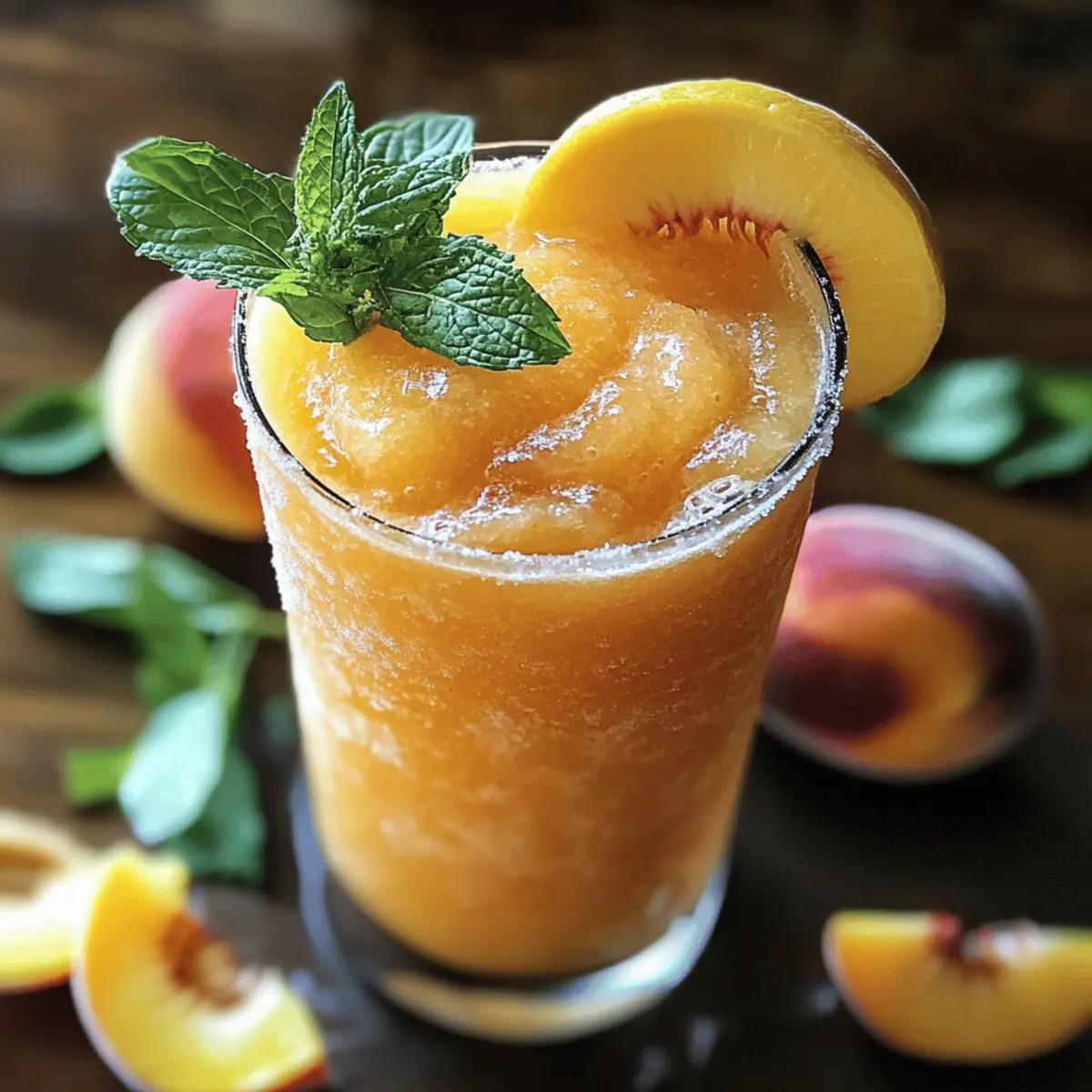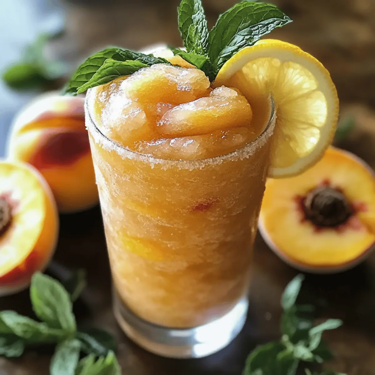Erfrischender Geschmack: Diese gefrorene Pfirsich-Limonade vereint die süße Frische von Pfirsichen mit der spritzigen Note von Zitrone.