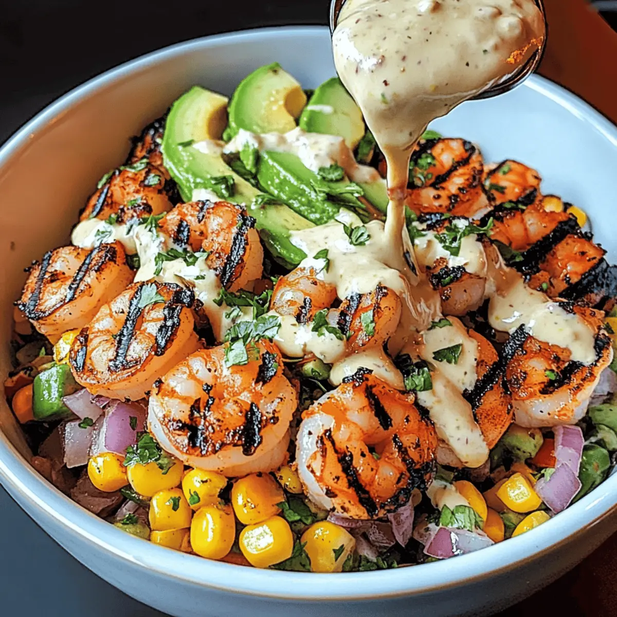 Mit einem zarten Duft von Grill und einer lebendigen Farbenpracht verführt mich die Vorstellung einer Gegrillten Garnelen-Schüssel mit Avocado, Mais-Salsa und cremiger Sauce. Dieses Gericht vereint alles, was ich am Essen liebe: köstliche Aromen und frische Zutaten, die nicht nur meinem Hunger gerecht werden, sondern auch den Gaumen meiner Freunde erfreuen. Der beste Teil? Die zubereitenden Minuten sind schnell vorbei, sodass ich mehr Zeit für die Dinge habe, die mir wirklich am Herzen liegen – schöne Momente mit den Liebsten. Diese Schüssel ist nicht nur glutenfrei, sondern auch anpassbar, sodass sie immer genau auf deinen Geschmack abgestimmt werden kann. Bist du bereit, deine nächste Essenskreation zu enthüllen? Lass uns gemeinsam in die Kochtöpfe eintauchen! Warum ist dieses Rezept ein Muss? Schnelle Zubereitung: In weniger als 30 Minuten ist deine Gegrillte Garnelen-Schüssel fertig, ideal für stressige Wochentage. Frische Aromen: Mit der Kombination aus Avocado, Mais-Salsa und cremiger Sauce wird jede Biss zu einem Geschmackserlebnis. Anpassbar: Du kannst problemlos die Garnelen gegen gegrilltes Hühnchen oder Tofu austauschen und so deinen Vorlieben gerecht werden. Gesund und nahrhaft: Diese Schüssel bietet eine perfekte Balance aus Proteinen, Ballaststoffen und gesunden Fetten. Für weitere leckere Anregungen könntest du dir auch unser Rezept für Gegrilltes Hähnchen mit oder eine Hähnchen Reis Bowl anschauen! Visuelle Pracht: Die leuchtenden Farben und die ansprechende Anordnung machen diese Schüssel zu einem echten Hingucker auf dem Tisch. Gegrillte Garnelen-Zutaten • Diese Gegrillte Garnelen-Schüssel mit Avocado, Mais-Salsa & cremiger Sauce wird euch mit ihren frischen Zutaten und Aromen begeistern! Für die Garnelen Garnelen – Verwendet große Garnelen für die beste Textur; sie sind der Hauptbestandteil dieser köstlichen Schüssel. Olivenöl – Sorgt für Feuchtigkeit und hilft, die Gewürze an den Garnelen zu halten. Paprika – Bringt einen smoky Geschmack und eine schöne Farbe ins Spiel; geräucherte Paprika kann auch verwendet werden. Knoblauchpulver – Verstärkt das Aroma, kann aber auch durch frischen, gehackten Knoblauch ersetzt werden. Salz & Pfeffer – Essentiell für die Würze; schmeckt nach Belieben ab. Cayenne – Fügt eine angenehme Schärfe hinzu; für weniger Schärfe einfach weglassen. Für die Salsa Mais – Frischer oder konservierter Mais sorgt für Süße und Textur; für eine kohlenhydratarme Option könnt ihr Zucchini oder Paprika verwenden. Rote Zwiebel – Verleiht der Salsa einen kräftigen Geschmack; Schnittlauch oder Frühlingszwiebeln sind gute Alternativen. Koriander – Frisch und aromatisch; Petersilie kann als leicht abweichender Geschmack dienen. Jalapeño – Für die Schärfe; entfernt die Samen, um die Schärfe zu reduzieren, oder ersetzt sie durch Paprika. Limettensaft – Bringt Frische und Helligkeit; Zitronensaft kann alternativ verwendet werden. Für die cremige Sauce Mayonnaise – Basis für die cremige Knoblauchsauce; griechischer Joghurt oder vegane Mayo sind leichte Alternativen. Sauerrahm – Sorgt für Cremigkeit in der Sauce; veganer Sauerrahm oder etwas mehr Mayo sind mögliche Substitute. Cremige Knoblauchsauce – Eine wunderbare Mischung aus Mayonnaise, Sauerrahm, Knoblauch, Limettensaft, Koriander, Salz und Pfeffer, die das Gericht abrundet. Schritt-für-Schritt-Anleitung für die Gegrillte Garnelen-Schüssel mit Avocado, Mais-Salsa & cremiger Sauce Schritt 1: Garnelen vorbereiten Die großen Garnelen in einer Schüssel mit Olivenöl, Paprika, Knoblauchpulver, Salz, Pfeffer und Cayenne gut vermengen. Diese Mischung sorgt für ein aromatisches Geschmackserlebnis. Lass die Garnelen 5-10 Minuten marinieren, damit die Gewürze gut einziehen können. Schritt 2: Mais-Salsa zubereiten In der Zwischenzeit die frischen oder konservierten Maiskörner in eine Schüssel geben und mit fein gehackter roter Zwiebel, Koriander, Jalapeño, Limettensaft und einer Prise Salz vermengen. Diese Salsa bringt frische und lebendige Aromen in die Gegrillte Garnelen-Schüssel und sollte beiseite gestellt werden, um durchzuziehen. Schritt 3: Garnelen grillen Erhitze den Grill oder eine Grillpfanne auf mittelhohe Temperatur. Die marinierten Garnelen ca. 2-3 Minuten pro Seite grillen, bis sie pink und opak sind und ein schönes Grillmuster zeigen. Achte darauf, sie nicht zu übergaren, da sie sonst zäh werden könnten. Entferne die Garnelen anschließend und lasse sie kurz ruhen. Schritt 4: Cremige Knoblauchsauce herstellen In einer kleinen Schüssel die Mayonnaise, den Sauerrahm, frisch gepressten Limettensaft, Koriander, Knoblauch und eine Prise Salz und Pfeffer gut vermischen, bis eine cremige und glatte Sauce entsteht. Diese Sauce wird die Gegrillte Garnelen-Schüssel perfekt abrunden und für zusätzliche Geschmackstiefe sorgen. Schritt 5: Schüssel anrichten Für die finale Anrichtung eine Basis aus Reis, Quinoa oder frischen Blattsalaten in eine Schüssel geben. Die gegrillten Garnelen gleichmäßig darauf verteilen, gefolgt von der Mais-Salsa und den in Scheiben geschnittenen Avocados. Zum Schluss die cremige Knoblauchsauce großzügig darüber träufeln und optional mit gehackten Frühlingszwiebeln und Sesamkörnern garnieren. Meal Prep für die Gegrillte Garnelen-Schüssel mit Avocado, Mais-Salsa & cremiger Sauce Diese Gegrillte Garnelen-Schüssel mit Avocado, Mais-Salsa & cremiger Sauce ist ideal für die Vorbereitung im Voraus! Du kannst die Garnelen bis zu 24 Stunden im Voraus marinieren und sie dann in einen luftdichten Behälter im Kühlschrank aufbewahren, um die Aromen intensiv zu halten. Auch die Mais-Salsa kann 2-3 Tage lang vorbereitet und im Kühlschrank aufbewahrt werden – lasse sie vorher gut durchziehen, damit sich die Aromen entfalten. Wenn es Zeit zum Servieren ist, grille die Garnelen einfach frisch, um ihre zarte Textur zu bewahren. Kombiniere alles in der Schüssel für ein schnelles, schma