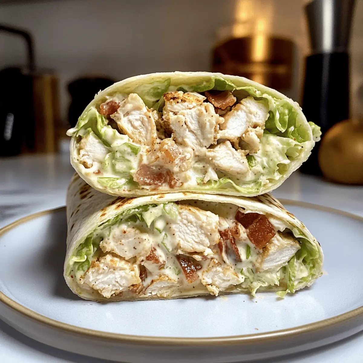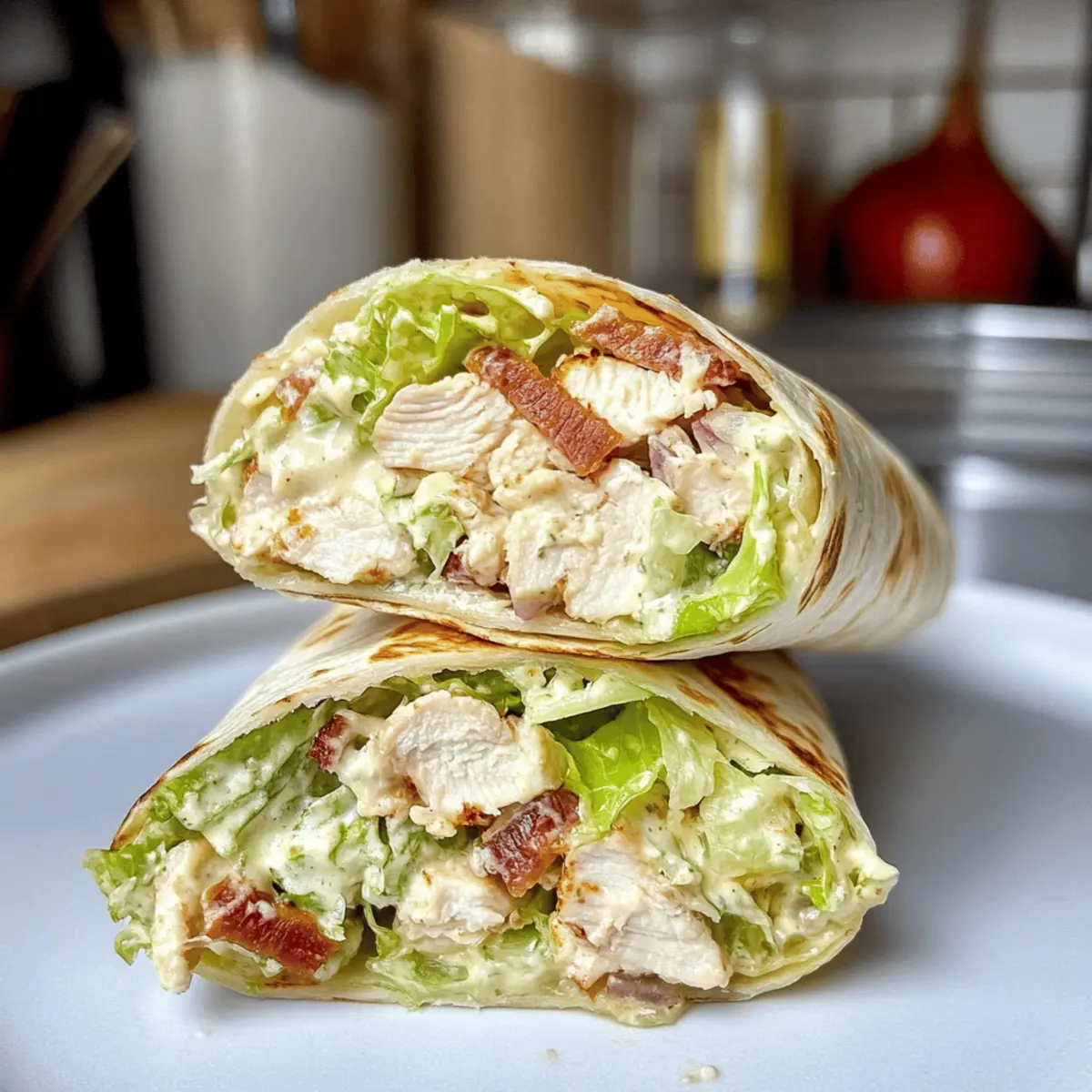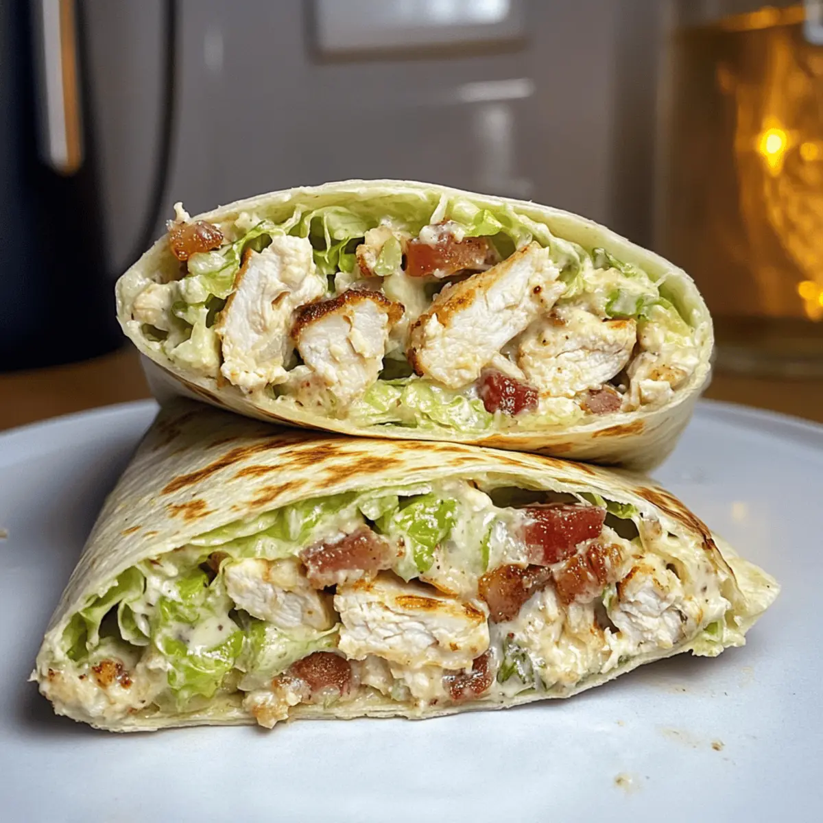 Beim Öffnen des Kühlschranks persistiert ein köstlicher Duft, der Appetit anregt. Der perfekte Kompromiss zwischen frischem Salat und herzhaftem Wrap ist endlich da: der gehackte Hähnchen-Caesar-Salat-Wrap! Diese schnelle und handliche Mahlzeit vereint zartes Hähnchen, knackigen Eisbergsalat und rauchigen Speck in einer weichen Tortilla. Ideal für stressige Wochentage oder als gesunder Lunch to go, begeistert dieses Rezept nicht nur durch seine Ruck-Zuck-Zubereitung, sondern auch durch seinen vollen, befriedigenden Geschmack. Entdecke die Freude, eine Familie oder Freunde mit diesem schmackhaften Gericht zu überraschen – und das alles ohne aufwendig kochen zu müssen! Was würdest du als Beilage zu deinem neuen Lieblingswrap servieren? Warum solltest du diesen Wrap lieben? Einfachheit: Die Zubereitung ist kinderleicht und benötigt nur einige grundlegende Küchentechniken – perfekt für Kochanfänger und Profis gleichermaßen. Vielseitigkeit: Variiere die Zutaten nach deinem Geschmack! Ob mit Hähnchen, Tofu oder chickpeas, es gibt unzählige Möglichkeiten. Gesund und lecker: Kombiniere frisches Gemüse und proteinreiches Hähnchen für eine ausgewogene Mahlzeit, die nicht nur schmeckt, sondern auch gesund ist. Perfekt für unterwegs: Ideal für ein schnelles Mittagessen oder ein einfaches Abendessen – dieser Wrap ist die perfekte Lösung für beschäftigte Tage. Freunde und Familie: Überrasche deine Lieben mit diesem köstlichen Gericht, das garantiert allen schmeckt – serviere dazu zum Beispiel einen frischen Erdnuss Crunch Salat für den extra Frischekick! Zutaten für den gehackten Hähnchen-Caesar-Salat-Wrap • Egal, ob du ein schnelles Mittagessen oder eine einfache Abendmahlzeit suchst, hier sind die Zutaten, die du brauchst! Für das Hähnchen Hähnchenbrust – sorgt für wertvolles Protein; verwende für eine schnellere Zubereitung übrig gebliebenes Brathähnchen. Koscheres Salz – verstärkt den Geschmack; alternativ kann Meersalz verwendet werden. Frisch gemahlener schwarzer Pfeffer – sorgt für eine subtile Schärfe; frisch gemahlen ist die beste Wahl. Olivenöl – hilft beim Braten des Hähnchens und fügt Reichtum hinzu; kann auch durch Avocadoöl ersetzt werden. Für den Wrap Große Burrito-Tortilla – dient als Hülle; Vollkorn- oder glutenfreie Tortillas sind ebenfalls möglich. Eisbergsalat – sorgt für Knackigkeit und Frische; Romana- oder Spinat sind ebenfalls geeignete Alternativen. Speckstreifen – verleiht rauchigen Geschmack und Crunch; Kaltes kostet oder vegetarischen Speck sind leichter Alternativen. Für das Dressing und den Belag Fertiges Caesar-Dressing – vereint die Aromen; hausgemacht oder andere Dressings wie Ranch können für Abwechslung verwendet werden. Frisch geriebener Parmesan – sorgt für Cremigkeit und Geschmack; Pecorino Romano kann ebenfalls verwendet werden. Schritt-für-Schritt-Anleitungen für den gehackten Hähnchen-Caesar-Salat-Wrap Step 1: Speck zubereiten Erhitze etwas Olivenöl in einer Pfanne bei mittlerer Hitze. Lege die Speckstreifen hinein und brate sie, bis sie knusprig sind – dies dauert etwa 5-7 Minuten. Nimm den Speck aus der Pfanne, lasse ihn auf Küchenpapier abtropfen und schneide ihn in kleine Stücke, während du auf weitere Schritte wartest. Step 2: Hähnchen braten Würze die Hähnchenbrust mit koscherem Salz und frisch gemahlenem Pfeffer. In derselben Pfanne, in der du den Speck gebraten hast, erhitzt du weiteres Olivenöl und brätst das Hähnchen bei mittlerer Hitze für etwa 4-5 Minuten pro Seite, bis es goldbraun ist. Danach das Hähnchen in den Ofen (175°C) für 15-20 Minuten geben, bis die Innentemperatur 75°C erreicht. Lass es nach dem Garen ruhen. Step 3: Salat zubereiten Während das Hähnchen abkühlt, schneide den Eisbergsalat in dünne Streifen und gib ihn in eine große Schüssel. Füge das frisch aufgeschnittene Hähnchen, den knusprigen Speck sowie das Caesar-Dressing und den geriebenen Parmesan hinzu. Mische alles gut durch, bis die Zutaten gleichmäßig verteilt sind und herausgekommen ist ein köstlicher gehackter Hähnchen-Caesar-Salat. Step 4: Wrap zusammenstellen Nimm eine große Burrito-Tortilla und lege eine Portion der Salatmischung in die Mitte. Falte die Seiten der Tortilla ein und rolle sie dann von unten nach oben fest zusammen. Achte darauf, dass die Füllung beim Rollen nicht herausfällt, und schaffe so einen handlichen Wrap. Step 5: Wrap toasten (Pro-Tipp) Erhitze erneut etwas Olivenöl in der Pfanne und lege den Wrap vorsichtig hinein. Toastet ihn für etwa 1-2 Minuten pro Seite, bis die Tortilla goldbraun und leicht knusprig ist. Dabei leicht mit einem Spatel drücken, damit der Wrap gleichmäßig bräunt und die Füllung warm bleibt. Was passt gut zum gehackten Hähnchen-Caesar-Salat-Wrap? Um ein komplettes Essens-Erlebnis zu schaffen, gibt es verschiedene köstliche Begleiter, die diesen Wrap perfekt ergänzen. Süßkartoffel-Pommes: Diese knusprigen Pommes bieten einen köstlichen Kontrast zur Weichheit des Wraps und eine süße Note. Tomatensalat: Frisch und leicht, bringt dieser Salat mit seinem spritzigen Dressing zusätzliche Frische zu deinem Wrap. Grüner Smoothie: Ein nährstoffreicher Drink mit Spinat und Banane ist die perfekte erfrischende Ergänzung zu deiner Mahlzeit. Zucchini-Puffer: Diese knackigen Puffer harmonieren hervorragend mit der herzhaften Füllung und sind eine gesunde Wahl. Gemüsesuppe: Eine leichte, klare Suppe sorgt für einen sanften Geschmack und rundet die Mahlzeit wunderbar ab. Erdnuss Crunch Salat: Der knackige und würzige Salat passt perfekt zu dem herzhaften Wrap und sorgt für einen aufregenden Texturwechsel. Expert Tips für den gehackten Hähnchen-Caesar-Salat-Wrap Hähnchen richtig garen: Achte darauf, das Hähnchen auf die richtige Innentemperatur von 75°C zu garen, um Sicherheit und Saftigkeit zu gewährleisten. Krosse Textur: Drücke den Wrap sanft mit einem Spatel während des Toastens, um einen gleichmä