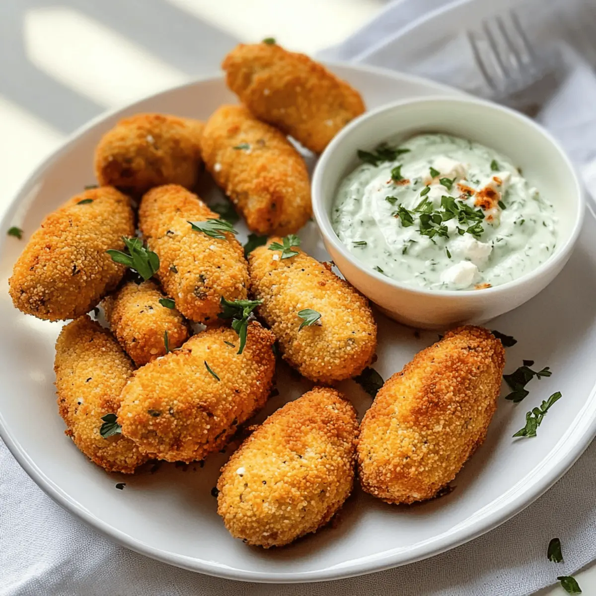 Der erste Biss in meine knusprigen Gemüse-Köfte mit Feta-Gurken-Dip lässt mich sofort an die lauen Sommerabende auf dem Balkon denken. Diese leckeren Couscous-Röllchen sind nicht nur ein wahrer Genuss, sondern auch das perfekte Fingerfood für gesellige Runden oder ein leichtes Mittagessen. Mit einer goldenen, knusprigen Kruste und einem weichen Inneren sind sie eine gelungene Abwechslung zu den üblichen Snack-Optionen und lassen sich schnell zubereiten. Egal ob du Vegetarier bist oder einfach eine gesunde Wahl suchst, dieses Rezept wird dich definitiv begeistern! Hast du schon eine Idee, mit welcher Überraschungs-Dip-Variation du deine Köfte verfeinern möchtest? Warum wirst du dieses Rezept lieben? Einfachheit: Die Zubereitung dieser Gemüse-Köfte ist kinderleicht und erfordert nur wenige Zutaten. Perfekt für Kochanfänger und im Stress! Vielfältige Variationen: Egal ob du Couscous oder Bulgur verwendest, die Optionen sind unbegrenzt. Probiere verschiedene Dips wie Hummus oder Avocado-Creme für noch mehr Geschmack! Erfrischender Dip: Der Feta-Gurken-Dip ist nicht nur leicht, sondern verleiht den Köften eine cremige Frische, die jeden Bissen zum Erlebnis macht. Für jede Gelegenheit: Diese köstlichen Köfte sind ideal für Partys, Picknicks oder einfach als gesunde Snack-Option zu Hause. Schnelligkeit: In kürzester Zeit zubereitet, sind sie die perfekte Wahl für einen unkomplizierten Genuss. Einfach in der Airfryer oder im Backofen! Perfektes Fingerfood: Mit ihrer knusprigen Textur sind diese Köfte der Hit auf jedem Buffet. Gemeinsam mit deinen Freunden oder der Familie werden sie schnell verschwinden. Gemüse-Köfte Zutaten • Für das Rezept wirst du frische und schmackhafte Zutaten benötigen, um deine selbstgemachten Gemüse-Köfte mit Feta-Gurken-Dip in vollen Zügen zu genießen. Für die Köfte Couscous – bildet die Basis und sorgt für die richtige Konsistenz; kann durch Bulgur oder Quinoa ersetzt werden. Zwiebel (Onion) – gibt Feuchtigkeit und Geschmack; Schalotten können für eine süßere Note verwendet werden. Öl (Oil) – notwendig zum Anbraten der Zwiebeln; jedes essbare Öl funktioniert gut. Ajvar – bringt Würze und Geschmack; kann durch roten Pesto oder geröstete Paprika ersetzt werden. Tomatenmark (Tomato Paste) – intensiviert den Geschmack; Alternativen sind getrocknete Tomatenpaste. Kreuzkümmel (Cumin) – verleiht ein warmes, erdiges Aroma; kann weggelassen oder reduziert werden für mildere Gerichte. Petersilie (Parsley) – sorgt für Frische und Farbe; kann auch durch Koriander ersetzt werden. Salz – wichtig zum Würzen; je nach Geschmack anpassen. Für den Feta-Gurken-Dip Feta-Käse – sorgt für die cremige Basis des Dips und einen salzigen Geschmack; kann auch durch Ricotta ersetzt werden für eine mildere Variante. Gurke – gibt zusätzliche Frische und Knackigkeit; verwende englische Gurken für weniger Samen. Joghurt – macht den Dip extra cremig; griechischer Joghurt verstärkt den Geschmack. Zitronensaft – bringt Frische und einen Hauch von Säure; ideal für mehr Geschmack. Pfeffer – rundet den Dip ab; frisch gemahlener Pfeffer ist immer am besten. Mit diesen Zutaten bist du bestens ausgestattet, um köstliche Gemüse-Köfte mit Feta-Gurken-Dip zuzubereiten. Lass dich inspirieren und genieße das Kochen! Schritt-für-Schritt-Anleitung für Gemüse-Köfte mit Feta-Gurken-Dip Step 1: Couscous zubereiten Bereite den Couscous gemäß den Anweisungen auf der Verpackung vor. In der Regel wird er mit heißem Wasser übergossen und etwa 5 Minuten quellen gelassen, bis er weich ist. Rühre ihn danach mit einer Gabel auf, um Klumpen zu entfernen, und lasse ihn leicht abkühlen, bis du ihn in die Gemüse-Köfte-Mischung einfügst. Step 2: Zwiebeln anbraten Schneide die Zwiebel fein und erhitze etwas Öl in einer Pfanne bei mittlerer Hitze. Sauté die Zwiebel für ca. 2,5 Minuten, bis sie glasig und leicht gebräunt ist. Achte darauf, die Zwiebel regelmäßig umzurühren, um ein Anbrennen zu vermeiden. Der süßliche Duft zeigt dir, dass sie bereit ist, mit den anderen Zutaten vermischt zu werden. Step 3: Gewürze und Ajvar hinzufügen Füge nun den Ajvar, das Tomatenmark, Kreuzkümmel, Petersilie und Salz zu den Zwiebeln in der Pfanne hinzu. Mische alles gut durch und lasse die Mischung für 1-2 Minuten kochen, damit sich die Aromen verbinden. Der intensive Duft zeigt dir, dass es Zeit ist, die Mischung vom Herd zu nehmen und etwas abkühlen zu lassen. Step 4: Zutaten kombinieren Gib die abgekühlte Zwiebelmischung vorsichtig in eine große Schüssel und füge den vorbereiteten Couscous hinzu. Vermische alles gründlich, bis die Zutaten gut miteinander verbunden sind. Überprüfe die Konsistenz und passe das Salz je nach Geschmack an. Diese Schritt stellt sicher, dass deine Gemüse-Köfte den perfekten Geschmack und die gewünschte Struktur haben. Step 5: Köfte formen Nehme eine kleine Menge der Mischung und forme sie zu etwa 30 kleinen Röllchen oder Bällchen. Stelle sicher, dass sie gleichmäßig und nicht zu locker sind, damit sie beim Kochen nicht auseinanderfallen. Lege die geformten Gemüse-Köfte auf ein mit Backpapier ausgelegtes Blech oder einen Teller, damit sie bereit sind für die weitere Zubereitung. Step 6: Gemüse-Köfte frittieren Für die Zubereitung in der Airfryer, sprühe die Köfte leicht mit Öl ein und lege sie in den Korb. Gare die Gemüse-Köfte bei 200 °C für 12-15 Minuten, bis sie goldbraun und knusprig sind. Überprüfe den Fortschritt nach 10 Minuten, um sicherzustellen, dass sie nicht überkochen. Diese Methode sorgt für eine perfekte knusprige Textur! Step 7: Backofen-Option Wenn du die Gemüse-Köfte im Backofen zubereiten möchtest, heize den Ofen auf 200 °C vor. Lege die Köfte auf ein mit Backpapier ausgelegtes Blech und backe sie etwa 25 Minuten lang, bis sie goldfarben und knusprig sind. Drehe die Köfte nach der Hälfte der Zeit um, um eine gleichmäßige Bräunung zu erreichen. Step 