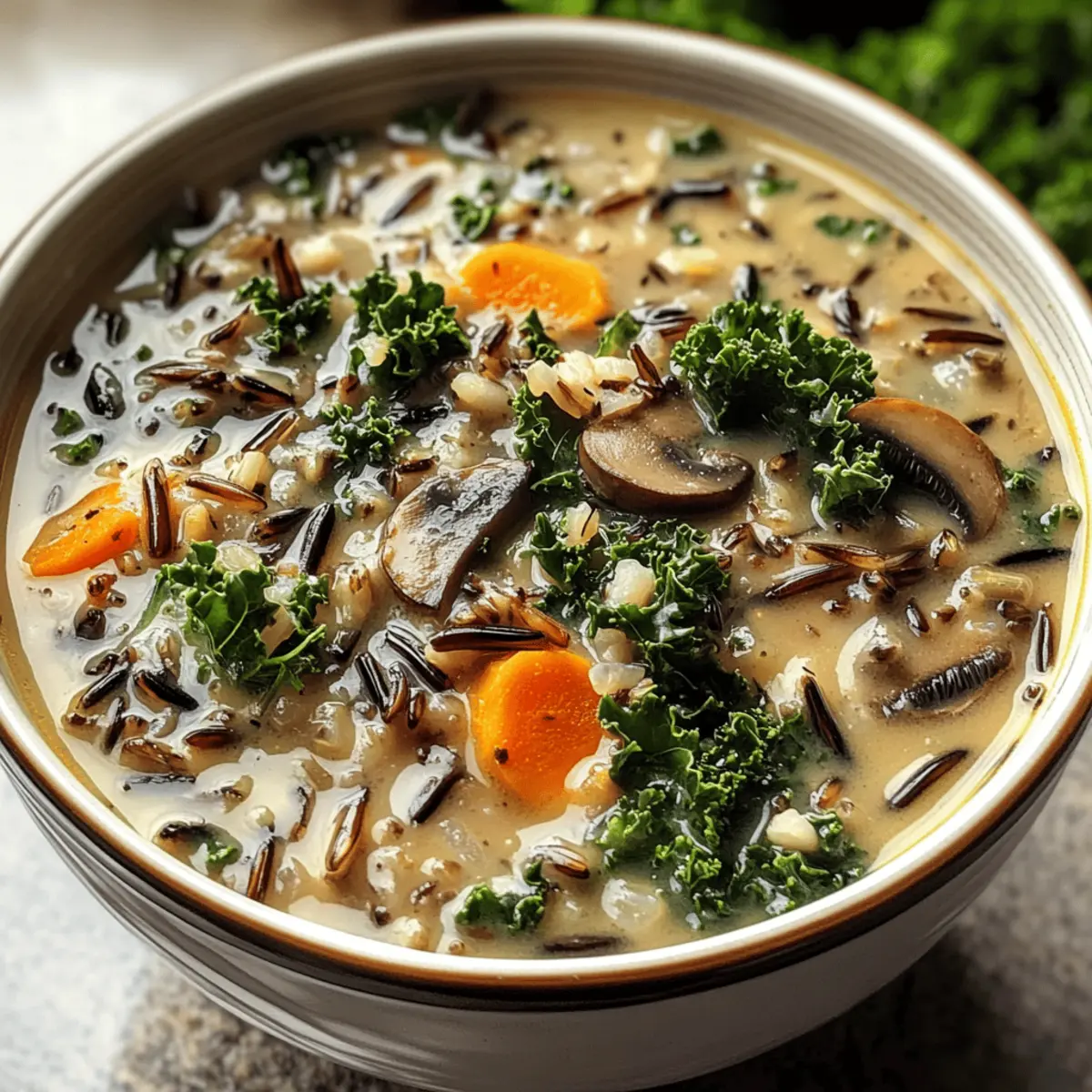 Wenn die Blätter langsam ihre Farben wechseln und die kühle Brise den Duft von Herbst in die Luft bringt, verspüre ich immer das Bedürfnis nach einer warmen, sättigenden Mahlzeit. Heute lade ich euch ein, mit mir zusammen eine Gemütliche Herbst-Wildreis-Suppe zuzubereiten, die nicht nur eure Geschmacksknospen verwöhnt, sondern auch ganz einfach zuzubereiten ist. Diese nahrhafte Suppe vereint zarte Wildreis-Körner, süße Karotten und die erdigen Aromen von Cremini-Pilzen, alles sanft in einem herzhaften, aromatischen Brühe gekocht. Perfekt für eine gesellige Runde oder einfach für einen ruhigen Abend zu Hause, lässt sich dieses Rezept auch wunderbar an verschiedene Vorlieben anpassen – sei es mit Kokosmilch für eine milchfreie Option oder der Wahl der Reisart. Lust auf ein köstliches, nährendes Gericht, das den Herbst auf den Teller bringt? Dann lasst uns loslegen! Warum wirst du diese Suppe lieben? Wärme: Diese Gemütliche Herbst-Wildreis-Suppe bringt das Gefühl von Zuhause auf den Tisch, ideal für kühle Abende. Vielseitigkeit: Du kannst die Zutaten nach deinem Geschmack anpassen, sei es mit Kokosmilch für eine milchfreie Variante oder durch die Wahl anderer Reissorten. Einfachheit: Die Zubereitung ist schnell und leicht, perfekt für Kochanfänger oder alle, die einen stressfreien Abend genießen möchten. Nährstoffreich: Mit Zucchini, Karotten und Kremini-Pilzen bekommst du viele Vitamine und Mineralstoffe in einem einzigen Löffel. Geselligkeit: Diese Suppe ist perfekt für gesellige Abende mit Freunden oder Familie. Serviere sie mit frischem Brot, und alle werden begeistert sein! Zutaten für die Gemütliche Herbst-Wildreis-Suppe • Eine nahrhafte Mischung für den Herbstgenuss. Für die Suppe Wildreis – bringt einen nussigen Geschmack und eine zähe Textur; Alternativ kannst du auch langkörnigen braunen Reis oder Quinoa verwenden. Olivenöl – ideal zum Anbraten der Aromaten; du kannst auch Avocadoöl verwenden, wenn du einen anderen Geschmack bevorzugst. Zwiebel – sorgt für Süße und Tiefe; alternativ können Schalotten für einen milderen Geschmack genutzt werden. Knoblauch – verleiht der Suppe wärmende, würzige Noten; verwende frischen Knoblauch für den besten Geschmack. Karotten – bringen natürliche Süße und Farbe; du kannst sie durch Pastinaken ersetzen, wenn du eine andere Note möchtest. Sellerie – sorgt für frische, aromatische Qualitäten; lass ihn weg, wenn du keinen zur Hand hast. Cremini-Pilze – steigern den Umami-Geschmack und die Reichhaltigkeit; jede beliebige Pilzsorte wie Champignons oder Shiitake kann verwendet werden. Gemüsebrühe – dient als Basis für die Suppe; du kannst auch Hühnerbrühe verwenden, falls du eine nicht-vegetarische Variante möchtest. Wasser – zur Anpassung der Konsistenz; du benötigst keinen Ersatz, es sei denn, du möchtest die Suppe dicker oder dünner. Getrockneter Thymian – gibt der Suppe herzhafte, leicht minzige Noten; Oregano kann im Notfall dazu dienen. Getrockneter Salbei – fügt mit seinem holzigen Aroma Tiefe hinzu; du kannst auch Geflügelgewürz verwenden. Salz und Pfeffer – essentielle Gewürze nach Geschmack. Kale – bringt Frische und eine milde Bitterkeit; verwende Spinat, wenn kein Kale verfügbar ist. Schlagsahne oder Kokosmilch – sorgt für eine samtige Textur; wähle Kokosmilch für eine milchfreie Variante. Frische Petersilie – optional als Garnitur für zusätzliche Frische und Geschmack. Die Gemütliche Herbst-Wildreis-Suppe ist nicht nur ein Fest für die Geschmacksknospen, sondern auch eine perfekte Möglichkeit, die Aromen des Herbstes in deinen Speiseplan zu integrieren! Schritt-für-Schritt-Anleitung für die Gemütliche Herbst-Wildreis-Suppe Step 1: Wildreis vorbereiten Spüle den Wildreis gründlich unter kaltem Wasser ab, um überschüssige Stärke zu entfernen, die die Textur beeinflussen könnte. Lass ihn dann in einem Sieb abtropfen, während du deine anderen Zutaten vorbereitest. Dies sorgt für eine perfekte Konsistenz in der finalen Gemütlichen Herbst-Wildreis-Suppe. Step 2: Zwiebel anbraten Erhitze in einem großen Suppentopf bei mittlerer Hitze drei Esslöffel Olivenöl. Füge die gewürfelte Zwiebel hinzu und brate sie etwa 5 Minuten lang an, bis sie durchscheinend ist. Der Duft der Zwiebel wird bereits die Küche mit einem einladenden Aroma erfüllen, perfekt für den nächsten Schritt. Step 3: Gemüse hinzufügen Gib den gehackten Knoblauch, die Karotten, den Sellerie und die Cremini-Pilze in den Topf. Koche das Gemüse weitere 5 Minuten, bis es weich ist und die Aromen sich entfalten. Diese Mischung wird die Basis für die herzhaften Aromen deiner Gemütlichen Herbst-Wildreis-Suppe schaffen. Step 4: Brühe und Reis kombinieren Füge nun den abgetropften Wildreis, die Gemüsebrühe, das Wasser, Thymian, Salbei, Salz und Pfeffer hinzu. Rühre alles gut um, um sicherzustellen, dass die Gewürze gleichmäßig verteilt sind. Die Brühe sollte gleichmäßig köcheln, um die Aromen zu intensivieren. Step 5: Kochen lassen Erhöhe die Hitze, um die Suppe zum Kochen zu bringen, und reduziere dann die Hitze auf ein leichtes Köcheln. Decke den Topf ab und lasse die Suppe 45-50 Minuten kochen, bis der Wildreis zart ist. Achte darauf, gelegentlich umzurühren, damit die Zutaten nicht anbrennen. Step 6: Grünkohl hinzufügen Wenn der Wildreis weich ist, rühre den grob gehackten Grünkohl in die Suppe und koche ihn weitere 5 Minuten, bis er welk ist. Der Grünkohl wird deiner Gemütlichen Herbst-Wildreis-Suppe nicht nur Farbe verleihen, sondern auch Nährstoffe und eine milde Bitterkeit hinzufügen. Step 7: Sahne oder Kokosmilch hinzufügen Gib nun die Schlagsahne oder, für eine milchfreie Option, die Kokosmilch in die Suppe. Rühre um und lasse die Mischung erneut erhitzen, bis sie schön warm ist, aber nicht kocht. Dies verleiht der Suppe die cremige Textur, die sie so besonders macht. Step 8: Abschmecken und servieren Schmecke die Suppe ab und 