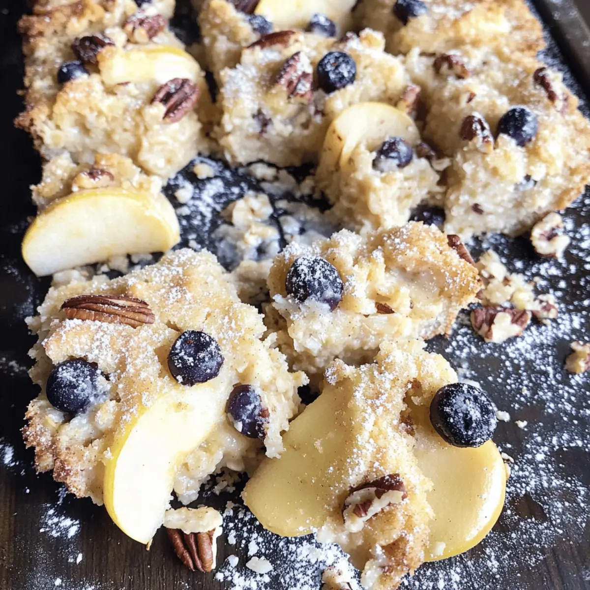 Eines Morgens, als die ersten Sonnenstrahlen durch die Fenster schlüpften, entschied ich mich für einen besonderen Start in den Tag: einen Haferflocken-Apfel-Frühstücksauflauf. Dieser herzhafte Auflauf vereint die saftige Süße von Granny Smith Äpfeln mit dem nahrhaften Biss alter Haferflocken und den wärmenden Aromen von Zimt. Was ich an diesem Rezept liebe, ist nicht nur die schnelle Zubereitung, die es mir erlaubt, in weniger als einer Stunde ein köstliches Frühstück zu zaubern, sondern auch die Tatsache, dass es als perfektes Gericht für Brunch mit Freunden dient. Dein Zuhause wird von verführerischen Düften durchzogen sein, während der Auflauf im Ofen backt. Bist du bereit, dieses gemütliche Frühstückserlebnis auszuprobieren und deine Lieben zu verwöhnen? Warum wirst du dieses Rezept lieben? Einfachheit: Die Zubereitung ist unkompliziert und benötigt keine besonderen Backkünste. Ideal für Anfänger und erfahrene Köche! Wärmende Aromen: Durch die Kombination von Zimt und Äpfeln entsteht eine unvergleichliche Gemütlichkeit, die dich umarmt. Vielseitigkeit: Du kannst ganz nach Geschmack Variationen ausprobieren, zum Beispiel mit Beeren oder Nüssen. Paare den Auflauf mit Griechischem Joghurt oder einer Prise Puderzucker für ein perfektes Frühstückserlebnis. Gesunde Zutaten: Jede Portion enthält nährstoffreiche Haferflocken und frische Äpfel, damit du mit einem guten Gewissen in den Tag startest. Wenn du nach weiteren köstlichen Frühstücksideen suchst, schau dir unseren Apfel Crumble Kaesekuchen an! Crowd-Pleasing: Dieses Rezept ist ein Hit bei Familie und Freunden. Serve es beim nächsten Brunch und lass das Lob nicht enden! Haferflocken-Apfel-Frühstücksauflauf Zutaten Für den Auflauf Granny Smith Äpfel – Sorgt für eine fruchtige Säure und bleibt beim Backen knackig; du kannst auch Honeycrisp oder Braeburn verwenden. Alte Haferflocken – Fügen dem Gericht eine herzliche Textur hinzu; achte darauf, dass sie glutenfrei sind, falls notwendig. Ungesalzene Butter – Verleiht dem Auflauf Geschmeidigkeit; ersetze sie durch Kokosöl für eine milchfreie Variante. Zucker – Süßt den Auflauf; benutze braunen Zucker für mehr Tiefe oder einen Zuckerersatz für weniger Kalorien. Mehl – Gebt Struktur; verwende Vollkornmehl für einen nährstoffreicheren Auflauf. Backpulver – Hilft beim Aufgehen; stelle sicher, dass es frisch ist, um die besten Ergebnisse zu erzielen. Zimt – Unterstreicht die Gemütlichkeit; füge Muskat hinzu, um die Aromen zu vertiefen. Salz – Balanciert die Süße; sollte inkludiert werden, um den Geschmack zu intensivieren. Vanilleextrakt – Sorgt für Aroma; du kannst auch Mandelessenz verwenden für eine besondere Note. Eier – Binden alles zusammen und bringen Feuchtigkeit; nutze Leinsamen-Eier als vegane Option. Pekanuss-Stücke – Fügen einen köstlichen Crunch hinzu; ersetze sie bei Allergien durch andere Nüsse oder Samen. Apfelsaft – Bringt Feuchtigkeit und Süße; Wasser kann ebenfalls verwendet werden. Puderzucker – Für die Glasur; kannst du weglassen oder gegen einen zuckerfreien Ersatz austauschen. Für die Glasur Puderzucker – Für die süße Überzugsnote; kann ggf. reduziert werden, wenn du es weniger süß magst. Milch – Hilft beim Anrühren der Glasur; pflanzliche Milch ist eine gute Alternative für eine milchfreie Option. Mit diesen Zutaten bist du auf dem besten Weg, einen köstlichen Haferflocken-Apfel-Frühstücksauflauf zu zaubern, der deine Familie und Freunde begeistert! Schritt-für-Schritt-Anleitungen für den Haferflocken-Apfel-Frühstücksauflauf Step 1: Ofen vorheizen und Form vorbereiten Heize den Ofen auf 190 °C vor und bereite eine 33×23 cm große Backform vor, indem du sie mit Kochspray einfettest. Diese Vorbereitungen sorgen dafür, dass der Haferflocken-Apfel-Frühstücksauflauf gleichmäßig gart und nicht anklebt. Step 2: Äpfel vorbereiten Schäle die Granny Smith Äpfel und schneide sie in kleine Würfel. Mische die Apfelstücke vorsichtig mit etwas Zitronensaft in einer Schüssel, um die Frische zu bewahren und eine braune Verfärbung zu verhindern. Setze die vorbereiteten Äpfel zur Seite, während du den Teig anrührst. Step 3: Trockene Zutaten vermengen Zerkleinere die alten Haferflocken grob in einer Küchenmaschine, bis sie eine leicht körnige Konsistenz erreichen. Siebe dann in eine große Schüssel die Haferflocken, Mehl, Backpulver und Zimt. Diese Mischung sorgt für eine schöne Textur und Geschmack in deinem Haferflocken-Apfel-Frühstücksauflauf. Step 4: Butter und Zucker cremig schlagen Schlage in einer separaten großen Schüssel die ungesalzene Butter und den Zucker mit einem Handmixer auf, bis die Mischung leicht und schaumig ist. Füge die Eier nacheinander hinzu und mixe weiter, bis sie gut eingearbeitet sind. Danach Vanilleextrakt und Salz hinzufügen und gut vermengen. Step 5: Trockene Zutaten und Flüssigkeit einarbeiten Gebe nun allmählich die trockenen Zutaten in die Butter-Zucker-Mischung. Füge den Apfelsaft hinzu und vermische alles vorsichtig, bis keine trockenen Stellen mehr sichtbar sind. Diese Mischung ergibt die Grundlage für deinen leckeren Haferflocken-Apfel-Frühstücksauflauf. Step 6: Äpfel und Pekannüsse unterheben Falte die vorbereiteten Apfelwürfel und die Pekannüsse vorsichtig in den Teig ein. Achte darauf, dass du nicht zu stark rührst, damit die Apfelstückchen und Nüsse gleichmäßig verteilt sind, ohne dass der Teig zu weich wird. Step 7: Teig in die Form geben Überführe den fertigen Teig in die vorbereitete Backform und glätte die Oberfläche mit einem Spatel. Streue die restlichen Pekannüsse gleichmäßig auf die obere Schicht, um eine knusprige Textur beim Backen zu erhalten. Step 8: Backen und abkühlen lassen Backe den Haferflocken-Apfel-Frühstücksauflauf für 25 bis 30 Minuten im vorgeheizten Ofen, bis er goldbraun ist und ein Zahnstocher sauber herauskommt. Lass den Auflauf in der Form auskühlen, bevor du