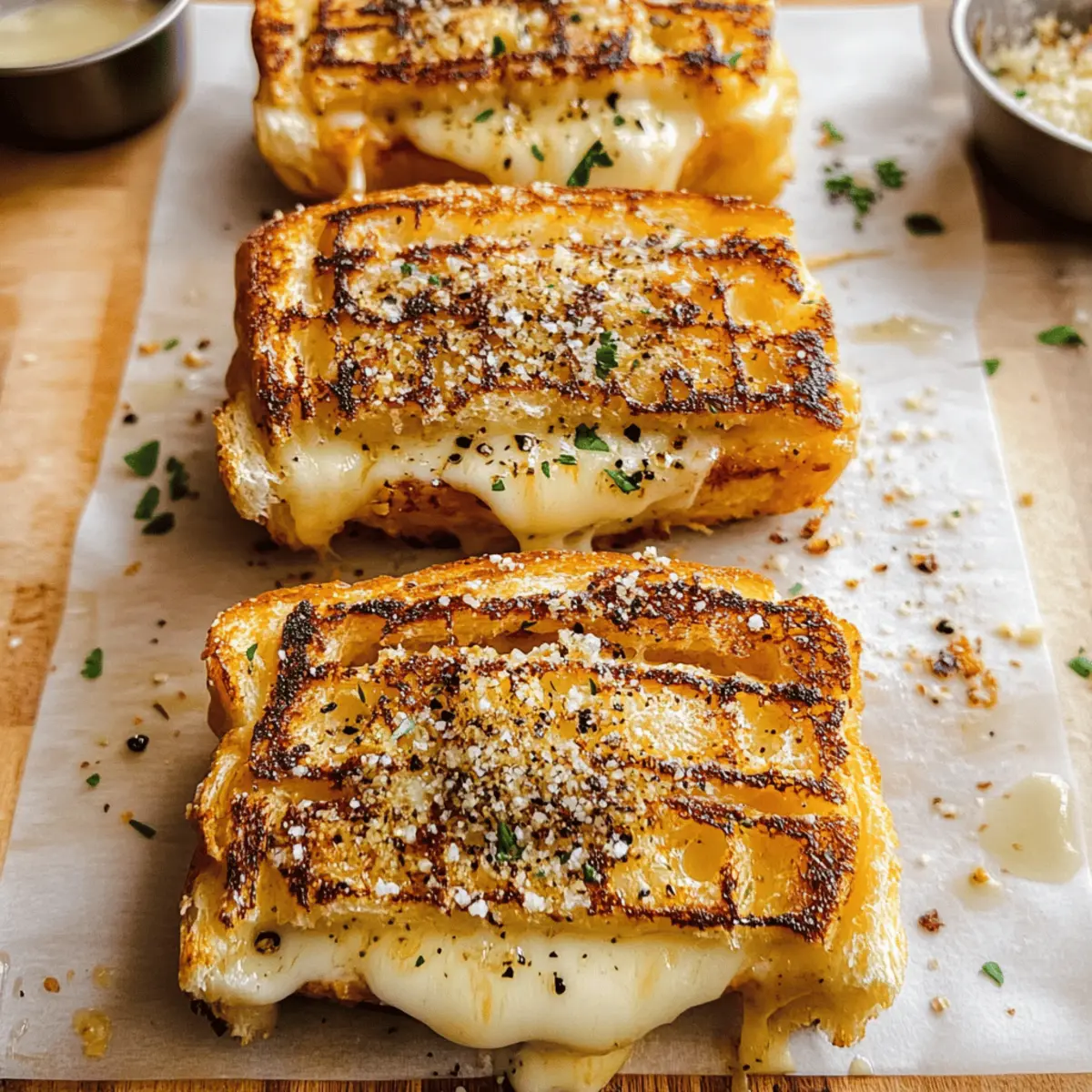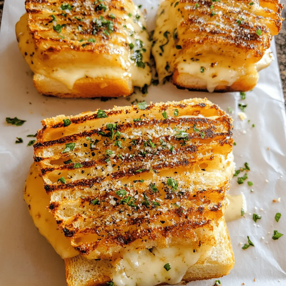 Es war einmal an einem regnerischen Abend, als ich beschloss, meinem unaufhörlichen Heißhunger auf Komfortessen nachzugeben. Die Lösung? Ein Hasselback Knoblauchbrot gegrillter Käse, der meine Geschmacksknospen zum Tanzen bringt! Diese kreative Variante des klassischen Sandwichs begeistert nicht nur mit knusprigen Kanten, sondern auch mit einer herzhaften Füllung aus schmelzendem Käse und aromatischer Knoblauchbutter. In nur wenigen Minuten ist dieses Gericht kinderfreundlich und ideal für alle, die sich nach einer schnellen, dennoch aufregenden Mahlzeit sehnen. Die Kombination aus verschiedenen Texturen wird sogar die wählerischsten Esser überzeugen. Was kann man dazu kombinierten? Vielleicht eine warme Schüssel Tomatensuppe? Lass dich von diesem Rezept inspirieren und entdecke die fröhlichen Momente, die mit jedem Bissen daherkommen! Warum wirst du dieses Rezept lieben? Einfachheit pur: Die Zubereitung ist kinderleicht und erfordert nur grundlegende Kochkenntnisse – perfekt für jeden, der schnell etwas Leckeres zaubern möchte. Herzhafter Geschmack: Die Kombination aus aromatischer Knoblauchbutter und geschmolzenem Käse sorgt für ein unvergleichliches Geschmackserlebnis, das jeden Bissen zu einem Hochgenuss macht. Vielfältige Variationen: Du kannst nach Belieben verschiedene Käsesorten oder zusätzliche Gewürze verwenden, um das Rezept ganz nach deinem Geschmack zu gestalten. Schnell und kinderfreundlich: Dieses Gericht ist nicht nur fix zubereitet, sondern auch ideal für die Kleinen geeignet – ein Hit für die ganze Familie! Perfekte Konsistenz: Mit knusprigen Kanten und einem warmen, zähen Inneren ist dieser Hasselback Knoblauchbrot gegrillte Käse eine wahre Gaumenfreude, die jeden begeistert. Erlebe den leckeren Geschmack und die einfache Zubereitung und genieße dazu vielleicht eine warme Schüssel mit Tomatensuppe. Hasselback Knoblauchbrot gegrillter Käse Zutaten Für die Knoblauchbutter Ungesalzene Butter – sorgt für die saftige Basis und eignet sich ideal, wenn sie geschmolzen wird. Knoblauch – liefert ein aromatisches Bouquet; fein hacken für eine gleichmäßige Verteilung in der Butter. Parmesan Käse – verleiht ein umami-reiches Aroma; nicht sparen für das beste Geschmackserlebnis. Für das Sandwich Japanisches Milchbrot (Shokupan) – perfekt wegen seiner Weichheit und der Fähigkeit, Füllungen zu halten; bei Bedarf kann auch hochwertiges weißes Sandwichbrot verwendet werden. Käse (z.B. Weiße Amerikaner, Cheddar) – sorgt für einen geschmolzenen, cremigen Kern; experimentiere mit Mozzarella oder Monterey Jack für verschiedene Geschmäcker. Schritt-für-Schritt-Anleitung für Hasselback Knoblauchbrot gegrillter Käse Step 1: Knoblauchbutter vorbereiten Schmelze die ungesalzene Butter in einem kleinen Topf bei mittlerer Hitze. Füge den fein gehackten Knoblauch und den Parmesan hinzu und rühre gut um, bis alles gleichmäßig vermischt ist. Achte darauf, dass der Knoblauch nicht verbrennt, und lass die Mischung kurz abkühlen, während du das Brot vorbereitest. Step 2: Brot vorbereiten Nimm das japanische Milchbrot und schneide gleichmäßige, vertikale Hasselback-Schnitte in die obere Scheibe, ohne die Unterseite des Brotes zu durchtrennen. Die Schnitte sollten etwa einen Zentimeter auseinander liegen, sodass das Brot beim Backen auseinanderfällt und die Knoblauchbutter gut eindringen kann. Step 3: Sandwiches zusammenstellen Bestreiche ein antihaftbeschichtetes Backblech großzügig mit der vorbereiteten Knoblauchbutter. Platziere dein Brotsandwich darauf und bepinsel auch die Oberseite des Brotes mit mehr Knoblauchbutter, sodass sie gut durchtränkt ist. Achte darauf, die Schnitte nicht zu vergessen, da hier der Käse schmelzen wird. Step 4: Backen Heize den Ofen auf 190°C (375°F) vor und backe das Sandwich für 10-12 Minuten. Achte darauf, dass der Käse schmilzt und die Oberseite des Brotes goldbraun und knusprig wird. Drehe das Backblech nach der Hälfte der Zeit um, um eine gleichmäßige Bräunung zu gewährleisten. Step 5: Alternative: Heißluftfritteuse Falls du eine Heißluftfritteuse bevorzugst, stelle die Temperatur auf 180°C (350°F) ein und gare das Sandwich für 5-7 Minuten. Diese Methode sorgt für ein besonders knuspriges Ergebnis, also beobachte das Sandwich, um sicherzustellen, dass es nicht zu dunkel wird. Step 6: Servieren Nimm das Hasselback Knoblauchbrot gegrillter Käse aus dem Ofen und lass es kurz abkühlen. Ziehe die knusprigen Quadrate von der Oberseite ab und serviere sie mit deiner Lieblingsdipsauce, wie einer herzhaften Tomatensauce oder einem frischen Dip. Genieße das Ergebnis! Hasselback Knoblauchbrot gegrillter Käse Varianten Entdecke, wie du dein Rezept mit diesen köstlichen Variationen noch interessanter gestalten kannst! Dairy-Free: Verwende pflanzliche Butter und eine Mischung aus veganem Käse für eine milchfreie Variante. Ideal für alle, die auf ihren Milchkonsum achten. Zusätzliche Kräuter: Füge gehackte frische Kräuter wie Basilikum oder Thymian zur Knoblauchbutter hinzu. Das verleiht dem Gericht eine frische, aromatische Note. Würzige Note: Mische etwas rote Paprikaflocken oder Cayennepfeffer in die Knoblauchbutter. Für alle, die es gerne etwas feuriger mögen, bringt dies einen tollen Kick! Zwiebelgeschmack: Ersetze den Knoblauch durch karamellisierte Zwiebeln für eine süßere, tiefere Geschmacksrichtung. Diese Variante sorgt für eine vollkommen neue Geschmackserfahrung. Füllung variieren: Probier es mit verschiedenen Käsesorten wie Brie oder Gouda; sie bringen ganz neue Geschmäcker ins Spiel und machen die Füllung noch interessanter. Crunchy Topping: Streue geröstete Semmelbrösel über das sandwich, bevor du es backst. Dies verleiht eine zusätzliche Knusprigkeit und besondere Textur. Roasted Garlic Twist: Verwende anstelle von frischem Knoblauch gerösteten Knoblauch. Er hat einen süßeren, milderen Geschmack und verleiht dem Sandwich eine wunderbare Tiefe. Gemüse h
