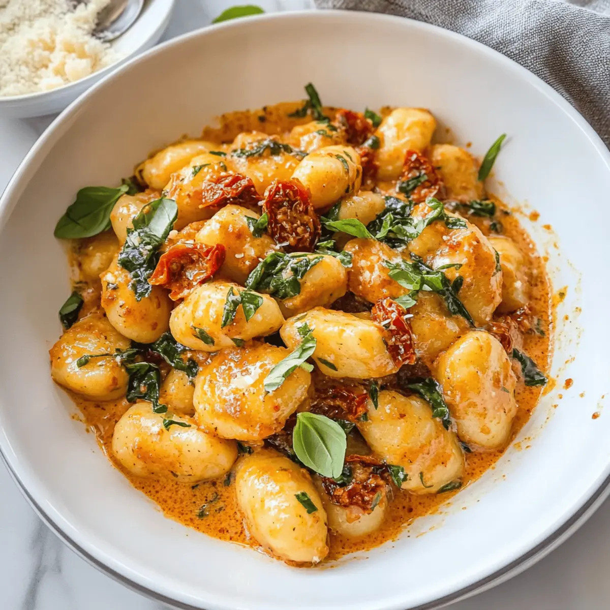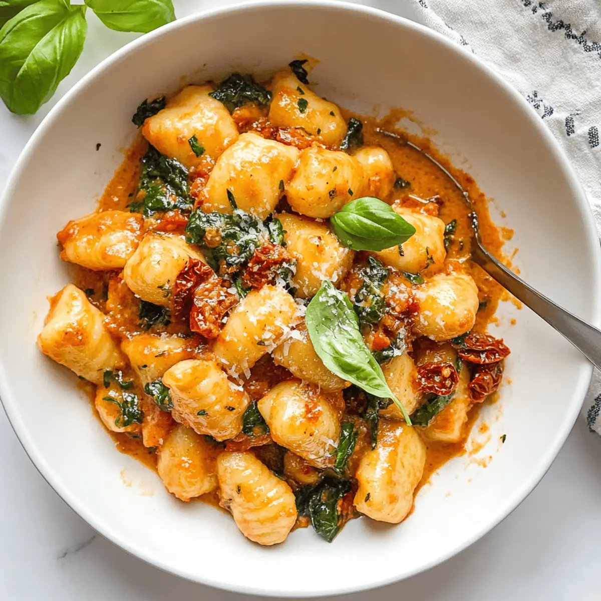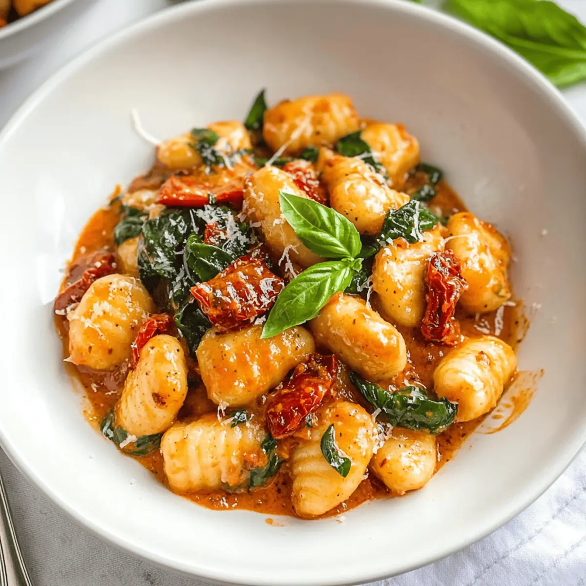 Ein wesentlicher Teil eines perfekten Abends ist das Essen, oder? Ich erinnere mich an den Moment, als ich zum ersten Mal meine cremigen „Heirate mich Gnocchi“ zubereitete. Diese leckere vegetarische Variante des klassischen „Heirate mich Hähnchen“ ist nicht nur in nur 30 Minuten fertig, sondern verwandelt zudem einen gewöhnlichen Abend in ein unvergessliches Date. Mit knusprig gebratenen Gnocchi, die in einer reichhaltigen, aromatischen Sauce aus sonnengetrockneten Tomaten gehüllt sind, wird jedes Biss zu einem Genuss. Egal, ob für einen besonderen Anlass oder einfach zum Verwöhnen nach einem langen Tag – diese Mahlzeit ist der reinste Genuss und eignet sich hervorragend für alle Pasta-Liebhaber. Neugierig, wie einfach es ist, diese delikate Kreation selbst zuzubereiten? Lass uns gemeinsam in die Zubereitung eintauchen! Warum wirst du diese Gnocchi lieben? Einfachheit: Die Zubereitung ist schnell und unkompliziert – in nur 30 Minuten genießt du ein köstliches Gericht! Aromatische Fülle: Die Kombination aus sonnengetrockneten Tomaten und intensiven Gewürzen bringt einen unverwechselbaren Geschmack, der begeistert. Vielseitigkeit: Diese Gnocchi passen perfekt zu einem romantischen Dinner oder als schnelles Essen nach einem langen Tag – die ideale Lösung für jede Gelegenheit. Wohlfühlfaktor: Mit ihrer cremigen Sauce und der knackigen Textur sind sie nicht nur sättigend, sondern auch himmlisch lecker. Gesunde Wahl: Nutze frisches Gemüse wie Spinat und variiere die Zutaten für eine noch köstlichere Version. Probiere auch andere Variationen aus, um deine Gäste zu überraschen! Heirate mich Gnocchi Zutaten Tauche ein in die köstlichen Details dieser geschmacklich beeindruckenden Gericht. Für die Gnocchi • Gnocchi – Ist die Hauptzutat, die eine perfekte Basis für das Gericht bietet; du kannst sie auch durch jede andere kurze Pasta ersetzen. Für die Sauce • Rote Zwiebel – Fügt eine süße und tiefe Note hinzu; kann durch Schalotten für einen milderen Geschmack ersetzt werden. • Knoblauch – Verstärkt das gesamte Geschmacksprofil; frisch ist am besten, aber Knoblauchpulver funktioniert auch in der Not. • Rote Paprika oder Chiliflocken – Sorgt für eine angenehme Schärfe; passe die Menge nach deinem persönlichen Geschmack an. • Gemischte italienische Gewürze – Bringt aromatische Noten ins Spiel; ersetze sie durch getrockneten Basilikum, Oregano und Thymian, wenn nötig. • Sonnengetrocknete Tomaten – Wichtig für den einzigartigen Geschmack des Gerichts; verwende ölgetränkte für mehr Reichtum, oder frische Tomaten, falls nötig. • Tomatenmark (Püree) – Verdickt die Sauce und intensiviert den Tomatengeschmack; ist nicht zwingend erforderlich, verbessert jedoch die Reichhaltigkeit. • Gemüsebrühe – Fügt Feuchtigkeit und Tiefe hinzu; kann durch Gemüsefond oder Hühnerbrühe ersetzt werden, wenn du nicht vegetarisch kochen möchtest. • Schlagsahne (doppelt) – Macht die Sauce cremig und reichhaltig; kann durch pflanzliche Sahne für vegane Optionen ersetzt werden. • Parmesan-ähnlicher Käse – Verleiht der Sauce Cremigkeit und Umami; ersetze ihn durch Nährhefe für eine vegane Variante. • Basilikum – Frisches Kraut für Garnitur und Geschmack; kann durch Petersilie für einen anderen Kräutergeschmack ersetzt werden. • Babyspinat – Fügt Nährstoffe und Farbe hinzu; kann auch durch Grünkohl oder andere Blattgemüse ersetzt werden. Schritt-für-Schritt-Anleitungen für Heirate mich Gnocchi Step 1: Aromaten anbraten In einem großen Topf erhitzt du bei mittlerer Hitze etwas Olivenöl. Füge die gewürfelte rote Zwiebel hinzu und brate sie etwa 4-5 Minuten, bis sie weich und durchsichtig ist. Anschließend gibst du den gehackten Knoblauch, die roten Paprika- oder Chiliflocken, italienische Gewürze, Salz, Pfeffer und die sonnengetrockneten Tomaten dazu. Koche die Mischung, bis sie aromatisch ist, etwa 1-2 Minuten. Step 2: Sauce herstellen Rühre das Tomatenmark ein und brate es kurz an, um den Geschmack zu intensivieren. Gieße dann die Gemüsebrühe dazu und lasse die Sauce bei schwacher Hitze 5-7 Minuten leicht köcheln, damit sie eindickt und die Aromen gut durchziehen können. Du wirst merken, dass die Sauce eine sämige Konsistenz erreicht. Step 3: Gnocchi braten Erhitze in einer separaten Pfanne etwas Olivenöl auf mittlerer bis hoher Hitze. Füge die Gnocchi hinzu und brate sie ca. 8-10 Minuten lang, bis sie goldbraun und knusprig sind, während das Innere weich bleibt. Schüttle die Pfanne regelmäßig, damit die Gnocchi gleichmäßig garen und nicht anhaften. Step 4: Sauce fertigstellen Gib die Schlagsahne und den geriebenen Käse in die Sauce und lasse sie bei niedriger Hitze sanft köcheln, bis der Käse geschmolzen ist und die Sauce cremig wird. Füge den frischen Spinat und das Basilikum hinzu und koche, bis der Spinat gerade zusammengefallen ist, etwa 1-2 Minuten. Step 5: Kombinieren und servieren Vermische die knusprigen Gnocchi vorsichtig mit der cremigen Sauce, sodass sie vollständig umhüllt sind. Serviere die Heirate mich Gnocchi sofort auf Tellern und garniere sie nach Belieben mit frischem Basilikum oder zusätzlichem Käse. Lass dir dieses köstliche Gericht schmecken! Vorbereiten der Heirate mich Gnocchi für müheloses Kochen Diese Heirate mich Gnocchi sind ideal für die Vorbereitung im Voraus! Du kannst die Sauce bis 24 Stunden vorher zubereiten. Bereite die aromatische Mischung aus roten Zwiebeln, Knoblauch, sonnengetrockneten Tomaten und Gewürzen vor und lagere sie in einem luftdichten Behälter im Kühlschrank. Am Tag des Servierens erwärmst du die Sauce bei schwacher Hitze und fügst die Schlagsahne und den Käse hinzu. Die Gnocchi kannst du frisch zubereiten, indem du sie in einer separaten Pfanne etwa 8-10 Minuten brätst, um eine perfekte Textur zu gewährleisten. Durch diese vorbereitenden Schritte bleibt die Qualität der Sauce über Nacht erhalten, sodass du im Handumdreh