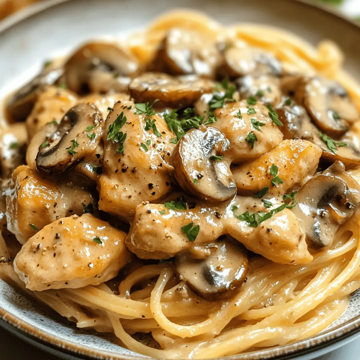 Mit einem Hauch von Italien auf dem Teller ist meine Hühnchen Marsala Pasta der Inbegriff von Comfort Food, das sowohl die Seele nährt als auch den Gaumen verwöhnt. In Sekunden entfaltet sich die Aromenvielfalt – zartes Hühnchen, umhüllt von einer cremigen Marsala-Weinsauce, trifft auf aromatische Pilze und duftenden Knoblauch. Diese köstliche Kombination macht das Gericht nicht nur zu einem schnellen und einfachen Rezept, das perfekt für herzhafte Familienessen ist, sondern auch zu einem echten Publikumsmagneten für festliche Anlässe. Wer kann da widerstehen? Lass uns gemeinsam in die Welt der italienischen Küche eintauchen und herausfinden, wie wir dieses gemütliche Gericht zaubern können! Warum ist dieses Rezept ein Muss? Simplicity: Die Zubereitung von Hühnchen Marsala Pasta ist denkbar einfach und lässt sich selbst für Kochanfänger problemlos umsetzen. Vielseitigkeit: Ob für ein gemütliches Familienessen oder ein festliches Dinner mit Freunden – dieses Gericht passt immer! Reiche Aromen: Die harmonische Kombination aus Zartheit des Hühnchens und der cremigen Sauce sorgt für ein unvergessliches Geschmackserlebnis. Zeitersparnis: In nur 30 Minuten hast du ein köstliches und sättigendes Gericht auf dem Tisch, perfekt für hektische Tage. Geselligkeit: Mit seiner appetitlichen Präsentation begeistert dieses Gericht einfach jeden, sei es beim wöchentlichen Familienessen oder bei einer besonderen Feier. Zutaten für Hühnchen Marsala Pasta • Die perfekte Basis für dein nächstes Pasta-Abenteuer! Für die Sauce Hühnchenbrust – Hauptquelle für Protein; kann durch Putenfleisch oder pflanzliche Alternativen ersetzt werden. Marsala-Wein – Sorgt für Süße und Geschmacksintensität; alternativ kann ein alkoholfreier Wein oder Brühe verwendet werden. Champignons – Fügen erdigen Geschmack und Textur hinzu; können durch andere Pilze ersetzt oder ganz weggelassen werden. Knoblauch – Für aromatische und geschmackliche Verstärkung; frisch vorzuziehen, kann aber auch durch Knoblauchpulver ersetzt werden. Hühnchenbrühe – Verbessert den Geschmack der Sauce; Vegetarier können Gemüsebrühe verwenden. Für die Pasta Pasta (z.B. Fettuccine) – Die Basis des Gerichts, die Struktur bietet; glutenfreie Pasta kann ebenfalls verwendet werden. Schlagsahne – Kreiert eine cremige Sauce; kann durch eine leichtere Alternative wie Halbfett-Crème oder Kokoscreme ersetzt werden. Parmesan – Fügt Reichhaltigkeit hinzu; für eine milchfreie Variante weglassen oder durch Hefeflocken ersetzen. Olivenöl – Zum Anbraten des Hühnchens; kann durch Butter für einen volleren Geschmack ersetzt werden. Genieße die köstliche Cremigkeit dieser Hühnchen Marsala Pasta, die sowohl den Gaumen als auch die Seele verwöhnt! Step-by-Step Instructions for Hühnchen Marsala Pasta Step 1: Hühnchen anbraten Erhitze in einer großen Pfanne bei mittlerer Hitze einen Esslöffel Olivenöl. Gib die Hähnchenbruststücke hinzu und brate sie etwa 5-7 Minuten, bis sie goldbraun und durchgegart sind. Achte darauf, dass sie eine Kerntemperatur von 74°C erreichen. Nimm das Hühnchen aus der Pfanne und stelle es beiseite, während du die Sauce zubereitest. Step 2: Champignons und Knoblauch dünsten In derselben Pfanne das restliche Olivenöl erhitzen und die geschnittenen Champignons und den gehackten Knoblauch hinzufügen. Dünste beides für 3-4 Minuten, bis die Pilze weich sind und leicht gebräunt aussehen. Der aromatische Duft des Knoblauchs signalisiert dir, dass es Zeit für den nächsten Schritt ist. Step 3: Mit Marsala ablöschen Gieße den Marsala-Wein in die Pfanne und lasse ihn für etwa 2-3 Minuten köcheln, bis er leicht reduziert ist. Dies intensiviert die Aromen und gibt deiner Hühnchen Marsala Pasta die charakteristische Süße. Rühre gelegentlich um, um die Röststoffe vom Pfannenboden zu lösen und in die Sauce zu integrieren. Step 4: Sauce zubereiten Füge nun die Hühnchenbrühe und die Schlagsahne zur Pfanne hinzu. Rühre alles gut um und lass die Mischung für etwa 5-7 Minuten köcheln, bis sie leicht eingedickt ist. Die cremige Konsistenz ist genau das, was deine Hühnchen Marsala Pasta so besonders macht. Step 5: Pasta untermischen Gib die bereits gekochte Fettuccine in die Sauce und mische sie gut unter. Achte darauf, dass die Pasta gleichmäßig mit der cremigen Sauce überzogen ist und die Aromen gut aufgenommen werden. Visualisiere, wie sich die Sauce perfekt um die Pasta schmiegt, während du rührst. Step 6: Mit Käse vollenden Füge zum Schluss den frisch geriebenen Parmesan hinzu und lass ihn schmelzen. Rühre nochmals um, bis der Käse vollständig in der Sauce integriert ist. Der Käse verleiht deiner Hühnchen Marsala Pasta eine reichhaltige und köstliche Note. Serviere das Gericht warm und genieße die Aromen des aromatischen italienischen Klassikers. Aufbewahrungstipps für Hühnchen Marsala Pasta Raumtemperatur: Bei Raumtemperatur aufbewahren ist nicht empfehlenswert; lasse das Gericht nicht länger als 2 Stunden draußen stehen, um die Frische zu erhalten. Kühlschrank: Reste können bis zu 3 Tage in einem luftdichten Behälter im Kühlschrank aufbewahrt werden. Gently reheat in a pan to maintain the creaminess of the sauce. Gefriertruhe: Die Hühnchen Marsala Pasta kann bis zu 3 Monate im Gefrierfach aufbewahrt werden. Achte darauf, sie gut in geeigneten Behältern oder Folie einzupacken, um Gefrierbrand zu vermeiden. Wiedererwärmen: Sanft in der Mikrowelle oder im Topf auf mittlerer Hitze erwärmen. Füge bei Bedarf einen kleinen Schuss Brühe hinzu, um die Sauce wieder cremig zu machen. Was passt zu Hühnchen Marsala Pasta? Die perfekte Kombination, um ein unvergessliches italienisches Mahl zu kreieren, wartet auf dich! Crispy Garlic Bread: Der knusprige Biss und der aromatische Knoblauch ergänzen die cremige Sauce perfekt und laden zum Dippen ein. Eine Kombination, die den Tisch zum Kochen bringt! Frischer Rucola-Salat: Dieser knackige Salat