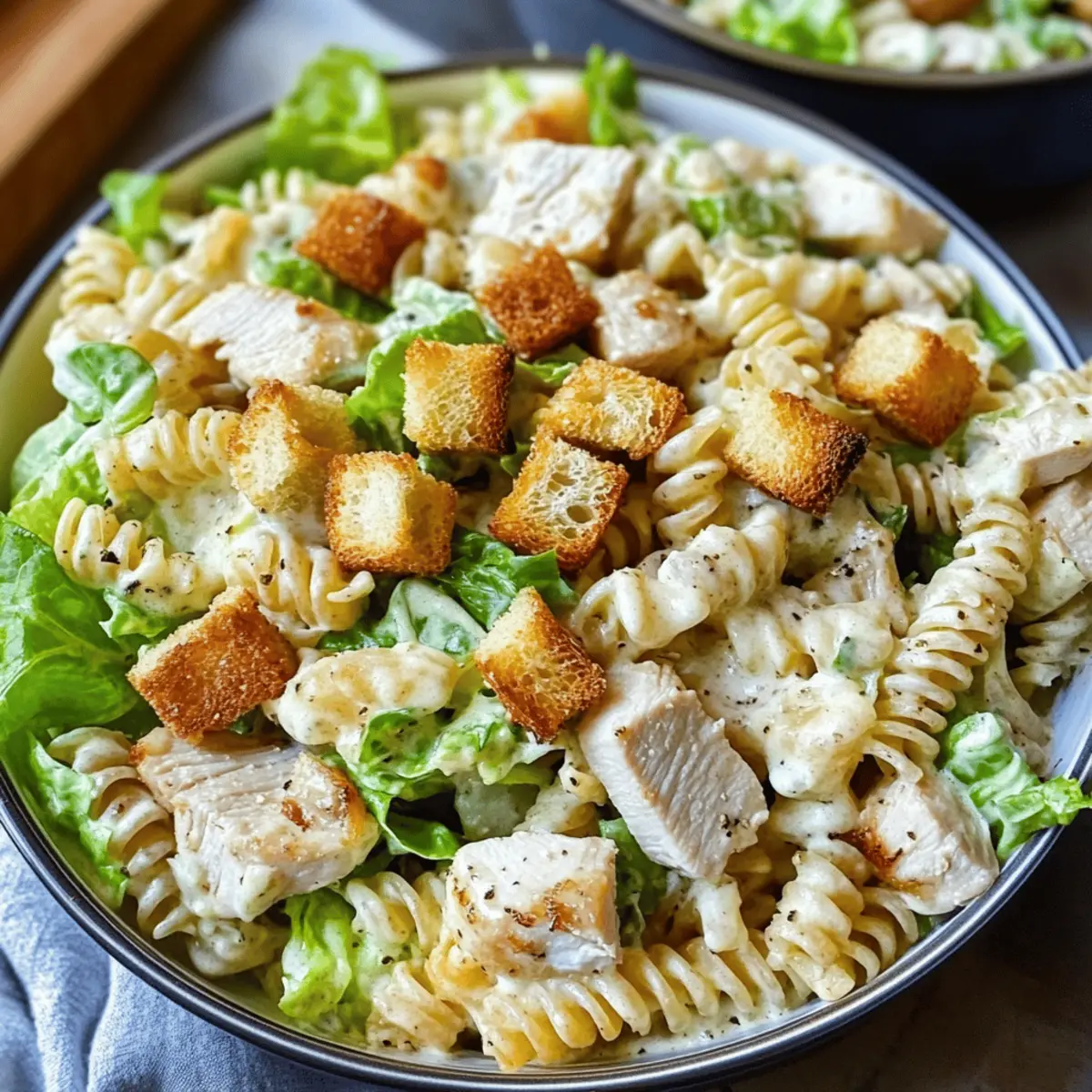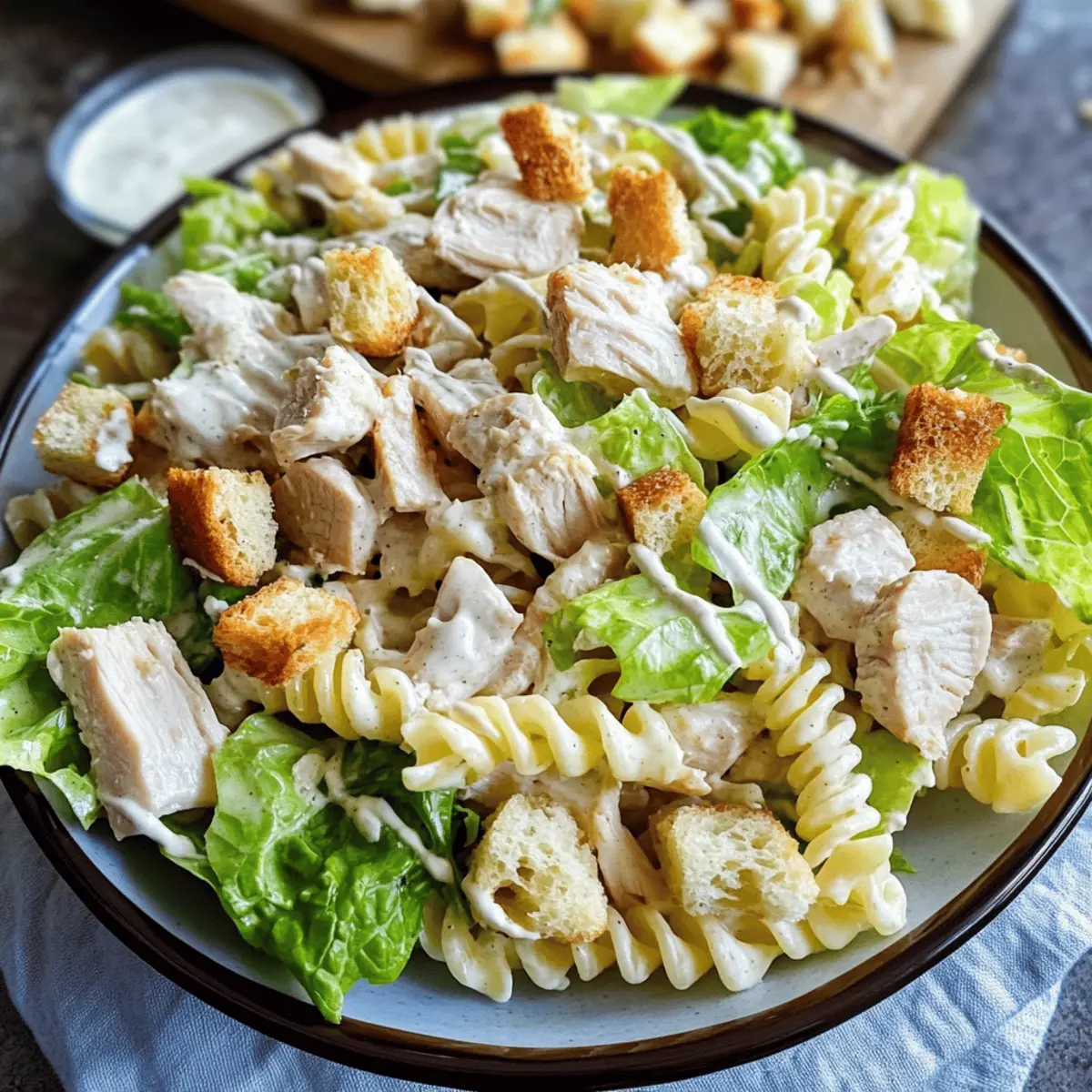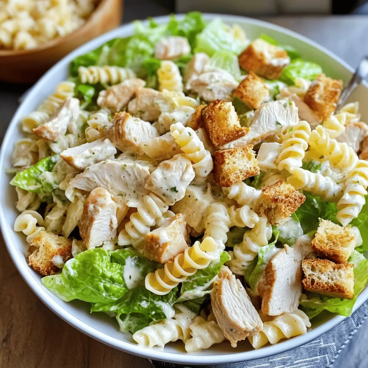 Die frische Brise eines Sommerabends weht durch das Fenster, während ich in der Küche stehe und eine köstliche Kreation zubereite: Hühnchen Caesar Nudelsalat. In nur 20 Minuten entsteht aus zarten Rotini, knackigem Romanasalat und saftigem vom Grill zubereitetem Hähnchen ein ganzes Geschmackserlebnis. Dieses Rezept vereint die Leichtigkeit eines Salats mit der Herzhaftigkeit von Pasta, was es zum perfekten Gericht für entspannte Abendessen oder als Beitrag zu einem geselligen Potluck macht. Ihr werdet lieben, wie unkompliziert es ist, sowie die Möglichkeit, es nach euren Wünschen zu variieren. Welche weiteren Zutaten würdet ihr hinzufügen, um euer persönliches Meisterwerk zu kreieren? Warum wirst du dieses Rezept lieben? Einfachheit ist das Geheimnis: In nur 20 Minuten kannst du ein köstliches Gericht zaubern, das selbst die am meisten beschäftigten Hausköche begeistert. Frische Zutaten wie knackiger Romanasalat und saftiges Hähnchen machen jeden Bissen zu einem Genuss. Vielseitigkeit ist king: Experimentiere mit variativen Zutaten wie Kirschtomaten oder sogar etwas Balsamico, um deinen Hühnchen Caesar Nudelsalat zu personalisieren. Perfekte Kombination von Texturen: Cremige Sauce trifft auf al dente Pasta und knackigen Salat – eine wahre Freude! Und nicht vergessen, der Salat ist ein Hit bei jeder Gelegenheit, ob beim Familientreffen oder beim gemütlichen Abendessen. Du kennst jemanden, der Pasta liebt? Lass sie an diesem großartigen Rezept teilhaben – sie werden es dir danken! Hühnchen Caesar Nudelsalat Zutaten • Um diesen leckeren Hühnchen Caesar Nudelsalat zuzubereiten, benötigst du folgende frische Zutaten: Für das Dressing Dijon-Senf – sorgt für die würzige Note im Dressing; kann durch gelben Senf ersetzt werden. Frischer Zitronensaft – bringt Frische und Säure; frischer Saft ist optimal, aber im Notfall funktioniert auch Flaschenware. Worcestershire-Sauce – fügt dem Dressing eine herzhafte Tiefe hinzu. Mayonnaise – die cremige Basis für das Dressing; griechischer Joghurt ist eine gesündere Alternative. Gehackter Knoblauch – verstärkt das Aroma des Dressings; frischer Knoblauch sorgt für intensiveren Geschmack. Anchovypaste – optional, für den klassischen Caesar-Geschmack; kann weggelassen werden. Fein geriebener Parmesan – verleiht eine salzige, reichhaltige Note; frisch gerieben oder aus dem Supermarkt. Für den Salat Ungekochte Nudeln (Rotini oder Penne) – die Grundlage des Salats; jede Pastasorte kann verwendet werden. Herzen von Romanasalat – für knackige Frische; kann durch gemischte Blattsalate ersetzt werden. Zerfleddertes Grillhähnchen – die schnelle Proteinquelle; kann durch gegrillte Garnelen ersetzt oder vegetarisch adaptiert werden. Croutons (optional) – für den extra Crunch; sowohl gekaufte als auch selbstgemachte sind erlaubt. Parmesan (zum Servieren) – verstärkt den Geschmack beim Servieren. Schritt-für-Schritt-Anleitung für Hühnchen Caesar Nudelsalat Step 1: Dressing zubereiten In einer mittelgroßen Schüssel vermischst du 2 Esslöffel Dijon-Senf, den Saft einer frischen Zitrone, 1 Esslöffel Worcestershire-Sauce, 4 Esslöffel Mayonnaise und 1 zerdrückte Knoblauchzehe. Wenn du den klassischen Caesar-Geschmack möchtest, füge 1 Teelöffel Anchovypaste hinzu. Rühre alles gut um, bis es eine cremige Konsistenz hat, und mische dann 50 Gramm fein geriebenen Parmesan unter. Mit Pfeffer abschmecken und beiseitestellen. Step 2: Pasta kochen Bringe in einem großen Topf 2 Liter gesalzenes Wasser zum Kochen. Gib 250 Gramm Rotini-Nudeln hinein und koche sie für etwa 10 Minuten, bis sie al dente sind. Achte darauf, dass die Nudeln noch bissfest sind. Nach dem Kochen lasse die Nudeln in einem Sieb abtropfen und spüle sie kurz mit kaltem Wasser ab, um den Kochprozess zu stoppen. Step 3: Salat zusammenstellen In einer großen Schüssel kombinierst du die abgetropften Nudeln, 1 Kopf gehackten Romanasalat und etwa 200 Gramm zerfleddertes Grillhähnchen. Gieße das vorbereitete Dressing über die Mischung und verwende eine große Gabel, um alles gut zu vermengen. Achte darauf, dass die Nudeln und der Salat gleichmäßig mit dem Dressing bedeckt sind. Step 4: Fertigstellen Wenn du möchtest, füge jetzt 50 Gramm Croutons hinzu, um dem Salat einen zusätzlichen Crunch zu verleihen. Garniere das ganze Gericht mit etwas frisch geriebenem Parmesan. Serviere den Hühnchen Caesar Nudelsalat sofort für die beste Frische, oder dekantiere ihn in den Kühlschrank, falls du ihn später genießen möchtest. Was passt zu Hühnchen Caesar Nudelsalat? Die Zubereitung eines köstlichen Abendessens wird mit der perfekten Kombination aus Beilagen noch einfacher und genussvoller. Cremige Kartoffelpüree: Ergänzt jede Gabel deines Salats mit einer sanften Textur; die milden Aromen harmonieren prima mit dem würzigen Dressing. Gegrilltes Gemüse: Bietet eine wunderbar rauchige Note; das farbenfrohe Gemüse sorgt für einen appetitlichen Anblick und ergänzt die Frische des Salats. Baguette mit Knoblauchbutter: Ein Muss für jeden Pasta-Liebhaber; die knusprige Kruste ist perfekt zum Auftunken des köstlichen Dressings. Caesar-Dressing-Dip: Erzeugt eine köstliche Verbindung; serviere es zusammen mit geschnittenem Gemüse als zusätzliches Fingerfood für einen geselligen Abend. Frischer Obstsalat: Die süßen, saftigen Früchte bieten einen erfrischenden Kontrast zu den herzhaften Aromen; ideal, um das Mahl abzurunden. Zitronenlimonade: Ein spritziges Getränk, das den Geschmack des Salats unterstreicht; die lebendige Säure ist der perfekte Begleiter für ein Sommeressen. Experttipps für Hühnchen Caesar Nudelsalat Dressing vorab machen: Bereite das Dressing mindestens eine Stunde im Voraus zu und lasse es im Kühlschrank ziehen, damit die Aromen intensivieren. Rucola-Crunch: Füge nach dem Servieren frischen Rucola hinzu, um eine zusätzliche knackige Komponente in deinem Hühnchen Caesar Nudelsalat zu erhalten. Nudeln al dent