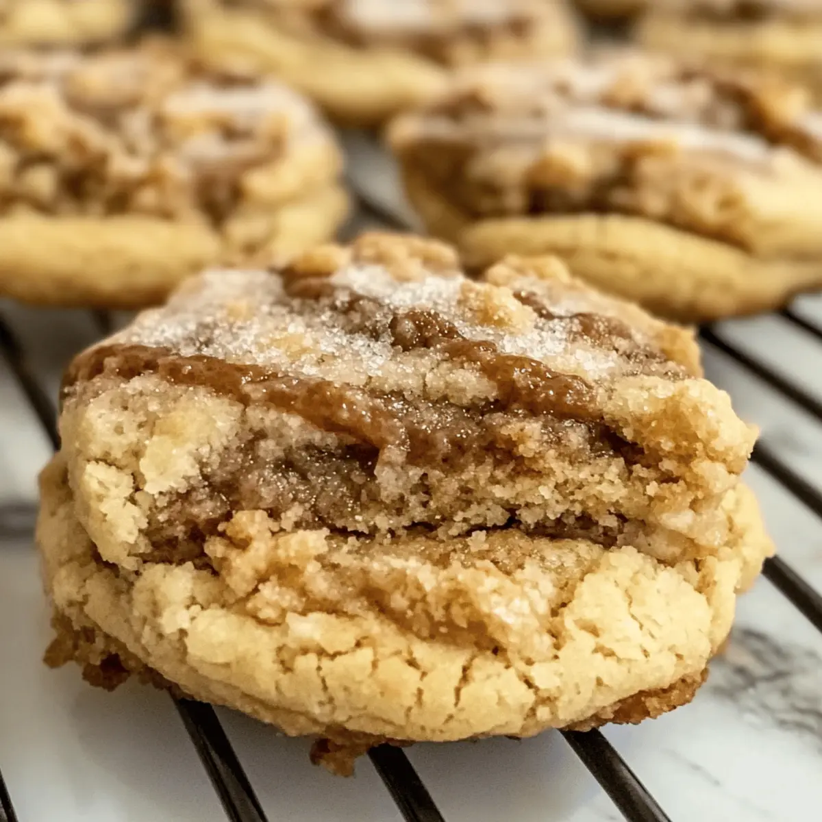Als ich das erste Bisschen eines frisch gebackenen Kaffeekuchenplätzchens nehmen wollte, war ich sofort von der warmen Zimtnote und dem butterartigen Crumble-Topping begeistert. Diese Kaffeekuchenplätzchen bieten eine perfekte Mischung aus der fluffigen Textur eines Kuchens und der praktischen Portabilität eines Plätzchens. Sie sind nicht nur ein wahrer Gaumenschmaus, sondern auch blitzschnell zubereitet – ideal für Momente, in denen man etwas Süßes und Befriedigendes braucht. Und das Beste: Sie sind sogar glutenfrei machbar! Diese kleinen Leckerbissen sind die perfekte Ergänzung für jede Kaffeepause oder gesellige Runde. Bist du bereit, den Duft von frisch gebackenem Gebäck in deiner Küche zu genießen? Warum sind diese Kaffeekuchenplätzchen unverzichtbar? Einfachheit, das Rezept ist unkompliziert und benötigt nur grundlegende Backfähigkeiten. Unwiderstehlicher Geschmack, die Kombination aus Zimt und Zucker sorgt für ein warmes, einladendes Aroma. Perfekte Größe, ideal zum Genießen mit einer Tasse Kaffee oder Tee. Vielseitig, du kannst die Plätzchen nach deinen Wünschen anpassen, z.B. mit Nüssen oder verschiedenen Gewürzen. Schnell zubereitet, in nur wenigen Minuten sind die Kaffeekuchenplätzchen fertig und verlangen nicht viel Geduld. Diese kleinen Köstlichkeiten sind perfekt für jede Gelegenheit und bringen jeden zum Schmelzen! Kaffeekuchenplätzchen Zutaten Hinweis: Diese Kaffeekuchenplätzchen sind ein Genuss, der sich hervorragend für einen glutenfreien Snack eignet! Für den Teig Allzweckmehl – Sorgt für Struktur und Zartheit; kann durch glutenfreies Mehl ersetzt werden, um sicherzustellen, dass sie glutenfrei sind. Backpulver – Lässt die Plätzchen aufgehen und sorgt für eine lockere Textur; frisch verwenden für beste Ergebnisse. Backsoda – Unterstützt das Aufgehen für ein weicheres Ergebnis. Salz – Balanciert die Süße und hebt die Aromen hervor; benutze Meersalz für den besten Geschmack. Gemahlener Zimt – Fügt den warmen, würzigen Geschmack hinzu, der an Kaffeekuchen erinnert. Gemahlene Muskatnuss – Bringt eine sanfte Wärme; kann mit Piment ersetzt oder weggelassen werden. Zucker – Süßt und verleiht der Plätzchenstruktur; brauner Zucker kann für mehr Tiefe verwendet werden. Ungesalzene Butter – Sorgt für einen reichen Geschmack und eine zarte Textur; für eine vegane Option Margarine verwenden. Brauner Zucker – Fügt Feuchtigkeit und einen Karamellgeschmack hinzu; das Verhältnis zu Zucker anpassen, je nach gewünschter Süße. Ei – Bindet die Zutaten; lässt sich durch eine Mischung aus Leinsamenmehl und Wasser für eine vegane Variante ersetzen. Vanilleextrakt – Verbessert den Gesamteindruck; verwende reinen Extrakt für den besten Geschmack. Für das Topping Zucker und Zimt Mischung – Fügt eine süße, knusprige Schicht hinzu, die perfekt harmoniert. Crumble-Topping – Mische Mehl, Butter und braunen Zucker für das ideale crunchy Finish. Schritt-für-Schritt-Anleitung für Kaffeekuchenplätzchen Step 1: Ofen vorheizen Heize deinen Ofen auf 175 °C (350 °F) vor und lege ein Backblech mit Backpapier aus. Diese Vorbereitung sorgt dafür, dass die Kaffeekuchenplätzchen gleichmäßig gebacken werden und nicht anhaften. Wenn der Ofen auf die richtige Temperatur erhitzt, kannst du mit den trockenen Zutaten beginnen. Step 2: Trockene Zutaten mischen In einer mittelgroßen Schüssel das Allzweckmehl, Backpulver, Backsoda, Salz, gemahlenen Zimt und Muskatnuss gründlich mit einem Schneebesen vermengen. Diese Schritt ist wichtig, um sicherzustellen, dass die Zutaten gleichmäßig verteilt sind. Stelle die Mischung beiseite, während du die feuchten Zutaten zubereitest. Step 3: Butter und Zucker cremig schlagen In einer großen Schüssel die ungesalzene Butter und den weißen Zucker mit einem Handmixer etwa 3 Minuten lang schlagen, bis die Mischung leicht und fluffig ist. Achte darauf, dass du einen hohen, luftigen Teig erhältst, denn das ist der Schlüssel zu leckeren Kaffeekuchenplätzchen. Step 4: Eier und Vanille hinzufügen Füge das Ei und den Vanilleextrakt zur Butter-Zucker-Mischung hinzu und rühre weiter, bis alles gut vermischt ist. Diese Zutaten bringen Feuchtigkeit und Geschmack in die Kaffeekuchenplätzchen. Mische so lange, bis keine Klümpchen mehr sichtbar sind. Step 5: Trockene und feuchte Zutaten kombinieren Lass die trockenen Zutaten langsam in die feuchte Mischung einfließen und falte sie vorsichtig mit einem Teigschaber ein, bis alles gerade so vermischt ist. Übermische den Teig nicht, um die Zartheit deiner Kaffeekuchenplätzchen zu bewahren. Step 6: Zimt-Zucker-Mischung vorbereiten In einer kleinen Schüssel den verbleibenden Zucker und den gemahlenen Zimt für die Füllung vermengen. Diese süße Mischung verleiht den Kaffeekuchenplätzchen einen besonderen Geschmack und eine feine Note. Stelle die Mischung beiseite, während du das Crumble-Topping zubereitest. Step 7: Crumble-Topping herstellen Mische in einer separaten Schüssel Mehl, braunen Zucker, Butter und Salz, bis eine krümelige Konsistenz entsteht. Dies ergibt ein köstliches knuspriges Topping für die Kaffeekuchenplätzchen. Achte darauf, dass die Krümel nicht zu klein werden; sie sollten noch eine Struktur haben. Step 8: Plätzchen formen Scoop mit einem Esslöffel den Teig aus und forme kleine Bälle, die du auf das Backblech platziert (mindestens zwei Zoll Abstand halten). Achte darauf, gleichmäßige Portionen zu nehmen, damit die Kaffeekuchenplätzchen beim Backen gleichmäßig garen. Step 9: Füllung und Topping hinzufügen Mach mit deinem Finger eine kleine Vertiefung in jedes Plätzchen, fülle diese mit der Zimt-Zucker-Mischung und bestreue sie anschließend mit dem Crumble-Topping. Diese Zwischenschicht sorgt für zusätzliche Süße und Textur und verwandelt die Kaffeekuchenplätzchen in eine wahre Delikatesse. Step 10: Backen Backe die Plätzchen für 10-12 Minuten im vorgeheizten Ofen, bis die Ränder goldbraun