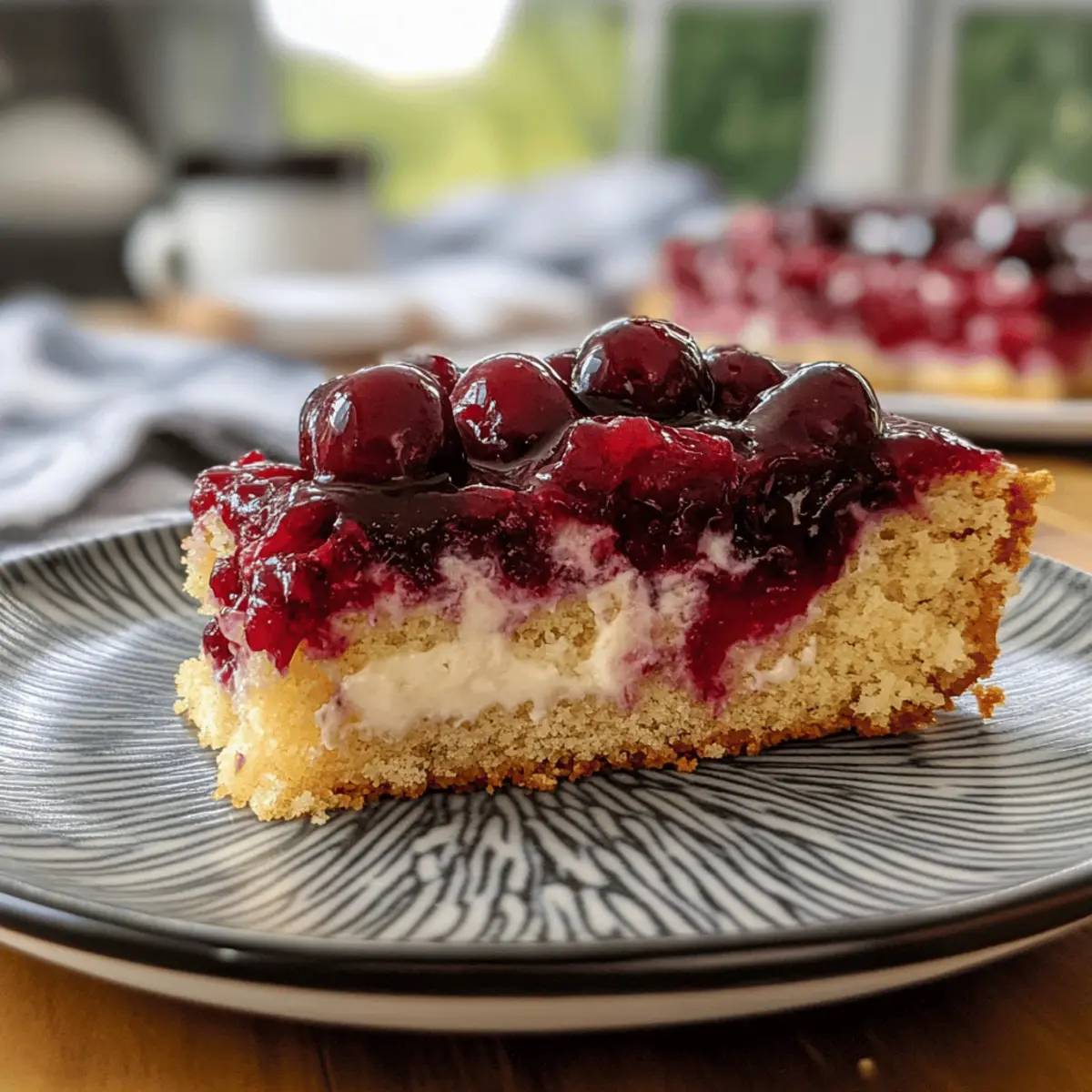 Himmlische Texturen: Die Kombination aus dem fluffigen Butterteig, der cremigen Puddingfüllung und den knackigen Kirschen schafft ein wahrhaft unverwechselbares Geschmackserlebnis.