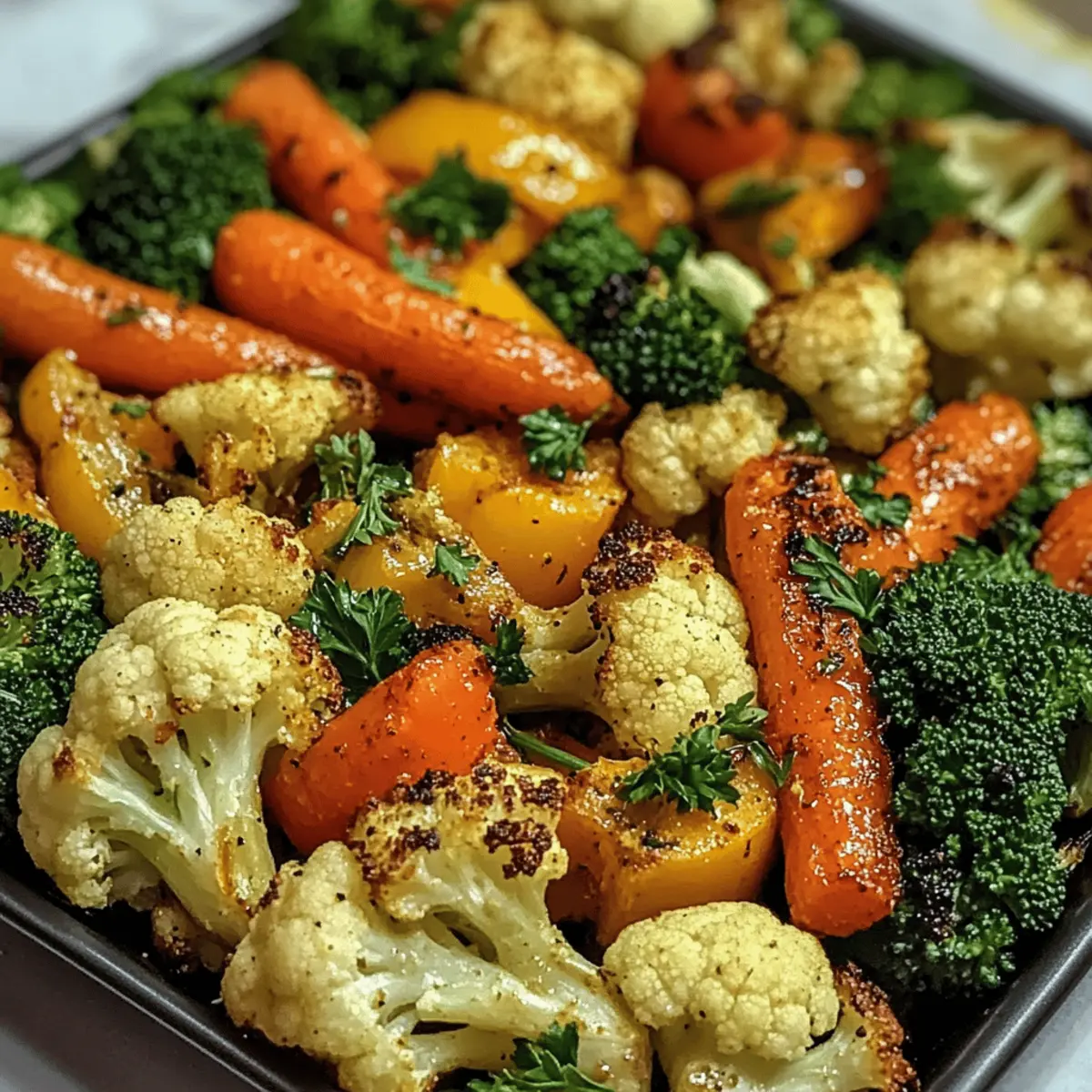 Die bunten Farben und der verlockende Duft von frisch geröstetem Gemüse zaubern oft ein Lächeln auf mein Gesicht. Speziell wenn es um Knoblauch geröstetes Gemüse geht, das nicht nur köstlich, sondern auch unglaublich gesund ist! Diese einfache, aber vielseitige Beilage macht sich hervorragend bei Familientreffen oder festlichen Anlässen. Die Zubereitung ist so schnell und unkompliziert, dass man sie problemlos in eine hektische Woche integrieren kann. Zudem kann man ganz nach Lust und Saison verschiedene Gemüsesorten hinzufügen und damit einen ganz individuellen Touch geben. Ob als Begleiter zu einem herzhaften Hauptgericht oder als leichtes Mittagessen mit Quinoa – dieses Rezept lässt sich an nahezu jede Gelegenheit anpassen. Bist du bereit, deine Küche mit dem unwiderstehlichen Aroma von Knoblauch zu füllen? Warum wirst du dieses Rezept lieben? Einfachheit: Die Zubereitung ist kinderleicht und erfordert nur wenig Zeit, sodass du auch an hektischen Tagen ein gesundes Gericht genießen kannst. Vielseitigkeit: Du kannst mit verschiedenen Gemüsesorten und Gewürzen experimentieren, was dir ermöglicht, jederzeit neue Geschmäcker zu entdecken. Probiere zum Beispiel das Rezept mit saisonalem Gemüse aus oder füge deine Lieblingskräuter hinzu! Gesund und nahrhaft: Diese gerösteten Gemüse sind nicht nur lecker, sondern liefern auch wertvolle Nährstoffe und sind ideal für eine ausgewogene Ernährung. Aromatische Erfahrung: Der verlockende Duft von geröstetem Knoblauch wird nicht nur deine Sinne ansprechen, sondern auch deine Gäste begeistern! Perfekte Beilage: Egal ob zu einem festlichen Familienessen oder einem lockeren Grillabend – dieses Gericht passt einfach immer! Geselligkeit: Knoblauch geröstetes Gemüse bringt Freunde und Familie zusammen, während du an einem gemeinsamen Tisch die Vielfalt und den Geschmack jeder Zutat feierst. Knoblauch geröstetes Gemüse Zutaten Hinweis: Hier findest du alles, was du für das köstliche Knoblauch geröstete Gemüse benötigst. Für das Gemüse Brokkoliröschen – verleihen Knackigkeit und eine leuchtende Farbe, frischer Brokkoli steigert die Nährstoffaufnahme. Blumenkohlsprossen – bieten einen milden Geschmack und eine wunderbare Textur. Kann durch Rosenkohl ersetzt werden. Karotten, in Scheiben – bringen Süße und eine lebhafte orange Farbe ins Gericht. Verwende für eine schnellere Zubereitung Babykarotten. Rote Paprika, gehackt – sorgt für einen süßen und leicht säuerlichen Geschmack; grüne Paprika sind eine rustikalere Wahl. Blaue Paprika, gehackt – verleiht Helligkeit und einen Hauch von Süße, kann aber auch durch Zucchini ersetzt werden. Für die Würzung Olivenöl – sorgt für eine gleichmäßige Röstung und intensiviert den Geschmack; kann durch Avocado- oder Rapsöl ersetzt werden. Knoblauch, gehackt – verleiht dem Gericht ein aromatisches Aroma; mehr Knoblauch macht es noch geschmackvoller. Salz – hebt alle Aromen hervor; je nach Vorliebe anpassen. Pfeffer – verfeinert das Geschmacksprofil; nach persönlichem Schärfeempfinden dosieren. Getrockneter Oregano – bringt einen warmen, erdigen Geschmack; frischer Oregano für ein lebendigeres Aroma. Getrockneter Thymian – fügt eine subtile Kräuternote hinzu; kann weggelassen oder durch italienische Gewürzmischung ersetzt werden. Frische Petersilie, gehackt – die Garnitur sorgt für Frische und visuelle Attraktivität; Basilikum kann ebenfalls verwendet werden. Schritt-für-Schritt-Anleitung für Knoblauch geröstetes Gemüse Step 1: Ofen vorheizen Heize den Ofen auf 220°C (425°F) vor. Diese hohe Temperatur ist entscheidend für das gleichmäßige Rösten und die Karamellisierung der Gemüsesorten. Bereite ein Backblech mit Backpapier vor, um ein Ankleben der Gemüse zu verhindern und die Reinigung zu erleichtern. Step 2: Gemüse vorbereiten Wasche das Gemüse gründlich und schneide Brokkoli und Blumenkohl in gleichgroße Röschen. Karotten in gleichmäßige Scheiben schneiden und die Paprika in Stücke hacken. Achte darauf, dass alle Stücke gleichmäßig sind, damit sie gleichmäßig garen. Dies sorgt dafür, dass dein Knoblauch geröstetes Gemüse perfekt auf den Tisch kommt. Step 3: Gemüse würzen Gib das vorbereitete Gemüse in eine große Schüssel. Füge Olivenöl, den gehackten Knoblauch, Salz, Pfeffer, Oregano und Thymian hinzu. Mische alles gut durch, sodass das Gemüse gleichmäßig mit der Würzmischung überzogen ist. Dies ist ein wichtiger Schritt, um den vollen Geschmack des Knoblauch gerösteten Gemüses zu entfalten. Step 4: Gemüse anordnen Verteile das gewürzte Gemüse in einer gleichmäßigen Schicht auf dem vorbereiteten Backblech. Achte darauf, dass die Stücke nicht übereinander liegen, um ein optimales Röstergebnis zu erzielen. Diese Anordnung ermöglicht eine perfekte Karamellisierung auf allen Seiten und sorgt dafür, dass dein Gericht ansprechend aussieht. Step 5: Rösten im Ofen Schiebe das Backblech in den vorgeheizten Ofen und röste das Gemüse für 25-30 Minuten. Rühre das Gemüse nach der Hälfte der Zeit um, um eine gleichmäßige Bräunung zu gewährleisten. Das Gemüse sollte am Ende zart und leicht gebräunt sein. Dieses Karamellisieren verstärkt die Aromen, was dein Knoblauch geröstetes Gemüse unwiderstehlich macht. Step 6: Servieren und Garnieren Nimm das Backblech aus dem Ofen und transferiere das geröstete Gemüse auf eine Servierplatte. Garniere es mit frischer, gehackter Petersilie für einen zusätzlichen Farbtupfer und Frische. Dein Knoblauch geröstetes Gemüse ist nun bereit, um genossen zu werden – ideal als Beilage zu vielen Gerichten oder als leichtes Hauptgericht! Knoblauch geröstetes Gemüse – Variationen & Alternativen Lass deiner Kreativität freien Lauf und passe dieses Rezept nach deinem Geschmack an! Ob herzhaft, würzig oder bunt – es gibt unzählige Möglichkeiten. Saisonale Gemüsesorten: Nutze Gemüse der Saison wie Zucchini, Spargel oder Süßkartoffeln f