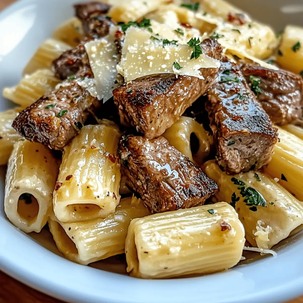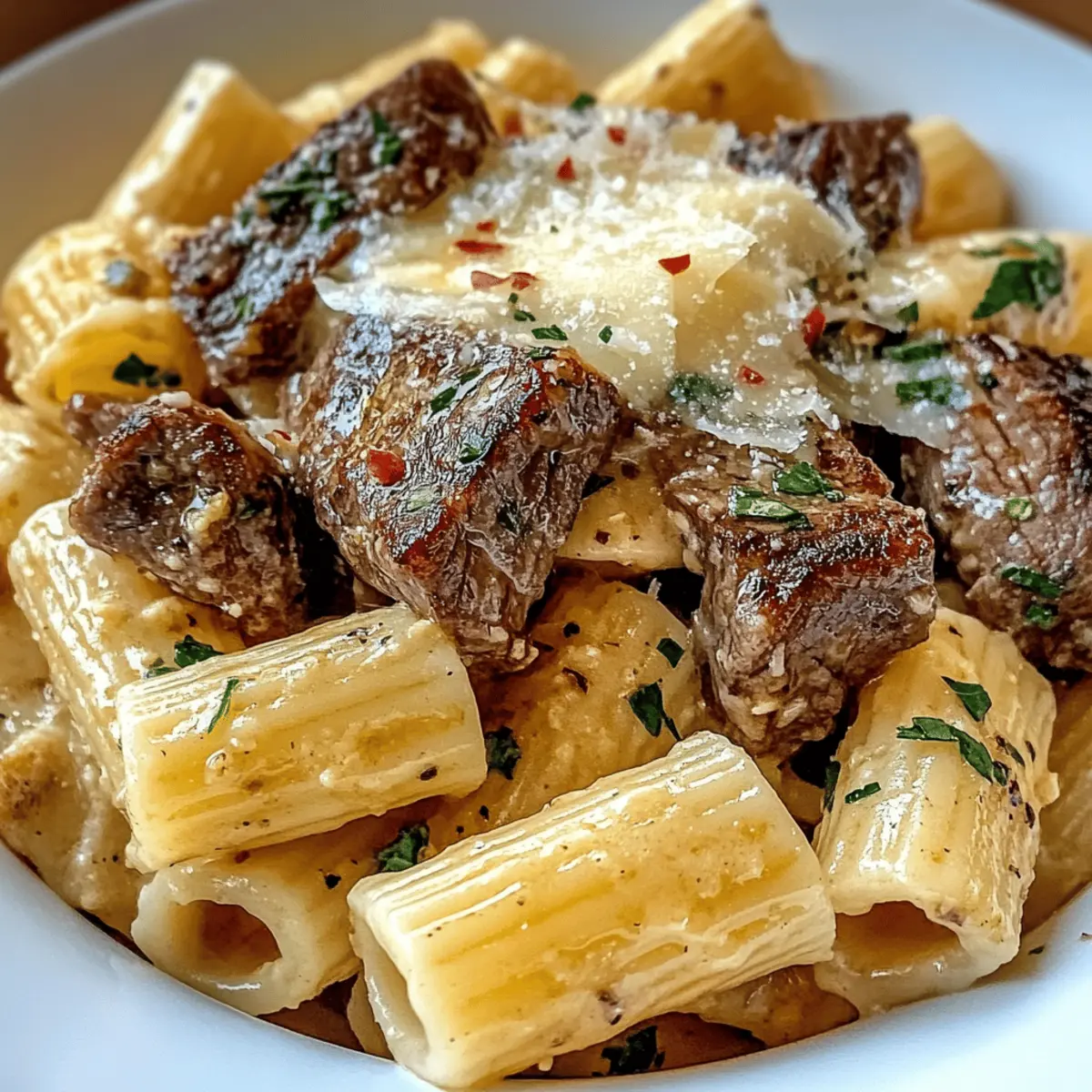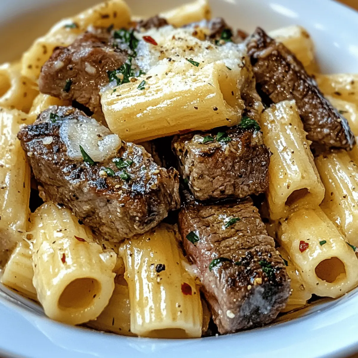 Der verführerische Duft von knusprigen Steakstücken, die in einer goldbraunen Knoblauchbutter schwimmen, weckt sofort die Vorfreude auf ein ganz besonderes Dinner. Heute lade ich euch ein, ein außergewöhnliches Gericht zuzubereiten: Knoblauchbuttersteak mit cremigen Rigatoni. Dieses Rezept ist nicht nur ein wahrer Genuss für die Sinne, sondern auch ein einfaches und nahrhaftes Comfort Food, das sich perfekt für ein stressfreies Abendessen unter der Woche eignet. Mit nur wenigen Zutaten kreiert ihr eine Mahlzeit, die sowohl die Familie als auch Gäste begeistert und ganz nach Belieben angepasst werden kann. Wartet ab, bis ihr seht, wie die Aromen aus der Pfanne auf den Teller tanzen – Frage ist: Seid ihr bereit, eure neue Lieblingsspeise zu entdecken? Warum werden Sie Knoblauchbuttersteak lieben? Einfachheit: Die Zubereitung ist unkompliziert und erfordert keine besonderen Kochkünste – perfekt für alle, die mit wenig Aufwand ein tolles Abendessen zaubern möchten. Aromatische Aromen: Die Kombination aus saftigen Steakstücken und würziger Knoblauchbutter sorgt für ein geschmackliches Erlebnis, das die Sinne verführt. Vielseitigkeit: Mit der Möglichkeit, verschiedene Gemüsesorten oder Pastasorten zu verwenden, ist dieses Gericht anpassbar und kann nach eurem Geschmack variiert werden. Probiert es auch mit frischem Gemüse wie Spinat oder Pilzen für zusätzlichen Geschmack und Nährstofftiefgang. Schnell zubereitet: Ideal für stressige Wochentage, da die gesamte Vorbereitung in weniger als 30 Minuten möglich ist! Perfekte Mischung: Die cremige Konsistenz der Rigatoni harmoniert wunderbar mit dem zarten Steak und der herzhaften Sauce – einfach ein Genuss, der alle begeistert. Gestalten Sie es nach Ihrem Gusto: Ob mit mehr Käse oder weniger Gewürzen, diese knoblauchbuttersteak Rezept lässt sich leicht anpassen, um jeder Vorliebe gerecht zu werden. Knoblauchbuttersteak Zutaten • Entdecken Sie die köstlichen Komponenten für unser herzhaftes Rezept! Für die Rigatoni Rigatoni – Der perfekte Pasta-Begleiter, der die cremige Sauce wunderbar aufnimmt. Sie können auch Penne oder Fettuccine verwenden. Für das Steak Strip Steaks – Saftige Stücke, die für den unwiderstehlichen Geschmack sorgen; Sirloin oder Filetsteak können ebenfalls verwendet werden. Olivenöl – Zum Anbraten des Steaks, gibt gesunde Fette hinzu; alternativ können Sie auch Butter nutzen. Für die Knoblauchbutter-Sauce Butter – Essentiell für den Geschmack und die Herstellung der Knoblauchbutter-Sauce; verwenden Sie ungesalzene Butter für bessere Kontrolle über den Salzgehalt. Knoblauch – Frisch gehackt bringt erdie lebendige Aromen ins Spiel; vermeiden Sie Knoblauchpulver für mehr Intensität. Hühnerbrühe – Verleiht der Sauce eine tiefe Geschmacksrichtung; Sie können auch Gemüsebrühe für eine leichtere Variante nehmen. Schlagsahne – Sorgt für die cremige Textur der Sauce; halb und halb kann für eine leichtere Alternative eingesetzt werden. Rote Pfefferflocken – Fügen Sie der Sauce eine pikante Note hinzu, passen Sie die Menge nach Geschmack an oder lassen Sie sie weg. Getrockneter Oregano & Thymian – Diese Kräuter bringen zusätzliche Geschmacksnuancen ins Gericht; frische Kräuter können ebenfalls verwendet werden. Geriebener Parmesan – Verleiht der Sauce ein käsiges Aroma; Pecorino Romano ist eine aromatische Alternative. Getrocknete Tomaten – Fügen süße und säuerliche Noten hinzu; ersetzen Sie sie durch frische Tomaten oder weglassen, um es einfacher zu machen. Verpassen Sie nicht die Chance, dieses Knoblauchbuttersteak mit cremigen Rigatoni zu zaubern – ein Gericht voller Geschmack und Komfort! Schritt-für-Schritt-Anleitung für Knoblauchbuttersteak mit cremigen Rigatoni Step 1: Rigatoni kochen Bringt in einem Topf gesalzenes Wasser zum Kochen und fügt die Rigatoni hinzu. Kocht die Pasta gemäß den Anweisungen auf der Verpackung, bis sie al dente ist – in der Regel etwa 10-12 Minuten. Nach dem Kochen die Pasta abgießen und beiseite stellen, damit sie etwas abkühlen kann, während ihr das Knoblauchbuttersteak zubereitet. Step 2: Steak anbraten Erhitzt in einer großen Pfanne bei mittlerer bis hoher Hitze ein Esslöffel Olivenöl. Während das Öl heiß wird, würzt die Steakstückchen mit Salz und Pfeffer. Legt die Steakstücke in die Pfanne und bratet sie 4-5 Minuten pro Seite, bis sie die gewünschte Garstufe erreicht haben – sie sollten außen schön braun und innen zart sein. Nach dem Braten die Stücke aus der Pfanne nehmen und für einige Minuten ruhen lassen. Step 3: Knoblauchbutter-Sauce zubereiten In derselben Pfanne, in der ihr das Steak gebraten habt, die Hitze auf mittlere Stufe reduzieren. Fügt die Butter hinzu und lasst sie schmelzen. Sobald die Butter geschmolzen ist, fügt den frisch gehackten Knoblauch hinzu und sautiert ihn etwa 30 Sekunden lang, bis er duftet. Passt auf, dass der Knoblauch nicht verbrennt, da er sonst bitter schmeckt. Step 4: Sauce verfeinern Jetzt fügt die Hühnerbrühe und die Schlagsahne in die Pfanne hinzu und rührt um. Streut die roten Pfefferflocken, den getrockneten Oregano und Thymian ein und bringt die Mischung zum Köcheln. Lasst die Sauce etwa 3-4 Minuten köcheln, bis sie leicht eingedickt ist und die Aromen sich verbinden. Die Sauce sollte cremig und verführerisch duftend sein. Step 5: Parmesan und Tomaten einrühren Reduziert die Hitze auf niedrig und gebt nach und nach den geriebenen Parmesan in die Sauce. Rührt ständig, bis sich der Käse vollständig aufgelöst hat und die Sauce eine glatte Konsistenz erreicht. Fügen die getrockneten Tomaten hinzu und vermischt alles gut. Diese Zutat bringt eine süße und leichte Säure in die Sauce. Step 6: Rigatoni und Steak hinzufügen Jetzt kommen die vorgekochten Rigatoni und die in Stücke geschnittenen Steakstücke in die Pfanne. Vermischt alles gründlich, sodass die Pasta und das Steak gleichmäßig mit der cremigen Sauce überzogen sind. Erw