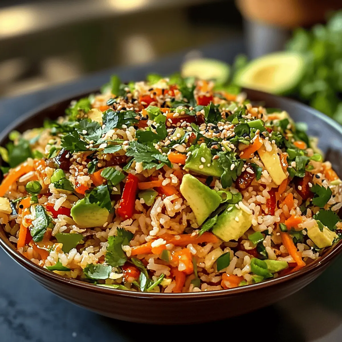 Als ich eines Tages mit frischem Gemüse und einer Packung Reis in der Küche stand, wusste ich sofort, dass ich etwas Besonderes erschaffen wollte. Der knusprige Reissalat, den ich im Kopf hatte, verspricht nicht nur ein Geschmackserlebnis, sondern auch eine wahrhaft kreative Freiheit. Mit der Wahl zwischen Garnelen, Hähnchen, Tofu oder Edamame und der Gelegenheit, die Gemüsevariationen nach Lust und Laune zu gestalten, wird dieser Salat ein schnelles, leichtes Gericht, das sowohl begeistern als auch sättigen kann. Die Kombination aus goldenem, knusprigem Reis und einer cremigen Sesamdressing hebt einfach jedes Mittagessen auf ein neues Level. Neugierig, wie man diesen leckeren Reissalat zaubert? Lass uns gleich loslegen! Warum ist dieser Reissalat so besonders? Vielfalt der Proteine: Du kannst wählen zwischen Garnelen, Hähnchen, Tofu oder Edamame, sodass dieser Salat für jeden Geschmack etwas bietet. Kreative Freiheit: Passe die Gemüsevariationen an deine Vorlieben an – von knackigen Bohnenkeimlingen bis zu Karotten. Schnell und Einfach: Mit wenigen Schritten zauberst du ein leckeres Gericht, ideal für einen hektischen Tag. Gesund und Lecker: Hoch in Ballaststoffen und Proteinen, ist dieser Salat perfekt für eine leichte Mahlzeit. Und vergiss nicht, ihn mit einem erfrischenden Getränk zu kombinieren, um dein Essen noch mehr zu genießen! Knuspriger Reissalat Zutaten Hinweis: Dieser Knuspriger Reissalat ist nicht nur einfach zuzubereiten, sondern auch anpassbar für verschiedene Diäten! Für den Salat Gekochter Sushi-Reis – Verwende am besten abgekühlten Reis vom Vortag für optimale Knusprigkeit. Neutrales Öl – Ideal zum Braten des Reises; Pflanzenöl oder Rapsöl sind zu empfehlen. Sojasauce – Sorgt für Umami und hebt den Geschmack des Reises hervor. Sesamöl – Verleiht eine nussige Tiefe zum Dressing und Reis. Napa-Kohl – Bringt Knusprigkeit und Frische in den Salat. Römersalat – Bietet eine erfrischende Basis mit einer knackigen Textur. Geraspelte Karotten – Fügen Farbe und Süße hinzu. Rote Paprika – Bereichert den Salat mit Süße und lebendiger Farbe. Frühlingszwiebeln – Bringen einen milden Zwiebelgeschmack und zusätzlichen Crunch. Koriander – Frisch und aromatisch; kann bei Allergien weggelassen werden. Für die Proteine Garnelen, Hähnchen, Tofu oder Edamame – Wähle deine Lieblingsproteinquelle oder kombiniere sie für mehr Abwechslung und Geschmack. Für das Dressing Mayonnaise – Grundzutat für das cremige Dressing; veganer Mayo ist ebenfalls eine optionale Wahl. Reisessig – Fügt dem Dressing eine angenehm säuerliche Note hinzu. Honig oder Ahornsirup – Für einen Hauch von Süße; benutze Ahornsirup für vegane Optionen. Ingwer und Knoblauch – Verstärken den Geschmack mit ihren aromatischen Aromen. Sriracha – Sorgt für die gewünschte Schärfe; je nach Vorliebe anpassen. Für die Garnitur Sesamkörner und zerstoßene Erdnüsse – Für den zusätzlichen Crunch und als ansprechende Garnitur. Avocado – Optional für mehr Cremigkeit und gesunde Fette. Scharfes Mayo – Perfekt für diejenigen, die es gerne würziger mögen. Schritt-für-Schritt-Anleitung für Knuspriger Reissalat mit cremigem Sesamdressing Step 1: Reis mischen In einer großen Schüssel den abgekühlten Sushi-Reis mit Sojasauce und Sesamöl vorsichtig vermengen. Achte darauf, dass die Zutaten gleichmäßig verteilt sind, um dem Reis einen köstlichen Geschmack zu verleihen. Dies sollte etwa 5 Minuten dauern, damit sich die Aromen gut verbinden, bevor du mit dem nächsten Schritt fortfährst. Step 2: Öl erhitzen Erhitze in einer großen Pfanne bei mittlerer bis hoher Hitze neutrales Öl. Sorge dafür, dass das Öl gut erhitzt ist, was etwa 2 Minuten dauert. Ein kleiner Spritzer Wasser sollte sofort zischen, wenn das Öl bereit ist, damit du das perfekte knusprige Ergebnis für deinen Knusprigen Reissalat erhältst. Step 3: Reis knusprig braten Verteile die Reis-Mischung gleichmäßig in der heißen Pfanne und lasse sie 5-7 Minuten garen, bis die Unterseite goldbraun und knusprig ist. Rühre nicht um, damit sich eine schöne Kruste bildet. Halte ein Auge auf die Farbe; der Reis sollte einen tiefen Goldton erreichen, bevor du ihn wendest. Step 4: Reis umdrehen Nachdem die erste Seite knusprig ist, verwende einen großen Spatel, um den Reis vorsichtig zu wenden. Lass ihn weitere 5-7 Minuten braten, bis beide Seiten schön braun und knusprig sind. Das Knacken des Reises während des Bratens ist ein gutes Zeichen für perfektes Ergebnis. Step 5: Reis brechen Nehme den knusprigen Reis aus der Pfanne und lasse ihn kurz abkühlen. Sobald er nicht mehr heiß ist, breche ihn in mundgerechte Stücke. Die Crunchiness sollte perfekt sein, um das Geschmackserlebnis deines Knusprigen Reissalats zu verstärken. Step 6: Gemüse kombinieren In einer großen Schüssel Napa-Kohl, Römersalat, geraspelte Karotten, rote Paprika, Frühlingszwiebeln und frischen Koriander gut vermischen. Dieser Schritt sollte etwa 3-5 Minuten dauern, um sicherzustellen, dass das Gemüse gleichmäßig verteilt ist und eine frische, knackige Basis für deinen Salat bildet. Step 7: Protein zubereiten Wähle dein bevorzugtes Protein (Garnelen, Hähnchen, Tofu oder Edamame) und bereite es entsprechend vor. Wenn du beispielsweise Garnelen verwendest, brate sie in einer separaten Pfanne 3-5 Minuten, bis sie durchgegart und rosa sind. Dieser Schritt sorgt dafür, dass dein Knuspriger Reissalat sowohl nahrhaft als auch lecker ist. Step 8: Dressing herstellen In einer Schüssel Mayonnaise, Reisessig, Sojasauce, Sesamöl, Honig, Ingwer, Knoblauch und Sriracha gut verrühren. Schlage alles mit einem Schneebesen, bis die Mischung cremig und gut vermischt ist. Je nach gewünschter Konsistenz kannst du etwas Wasser hinzufügen, um das Dressing leichter fließen zu lassen. Step 9: Salat kombinieren Füge das vorbereitete Protein zu der Schüssel mit den gemischten Grünstoffen hinzu. Gieße das Dressing übe