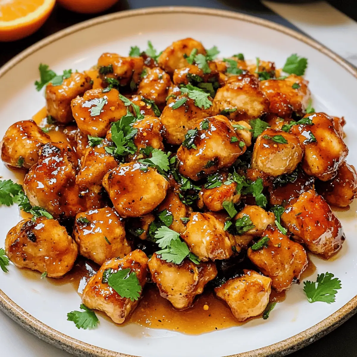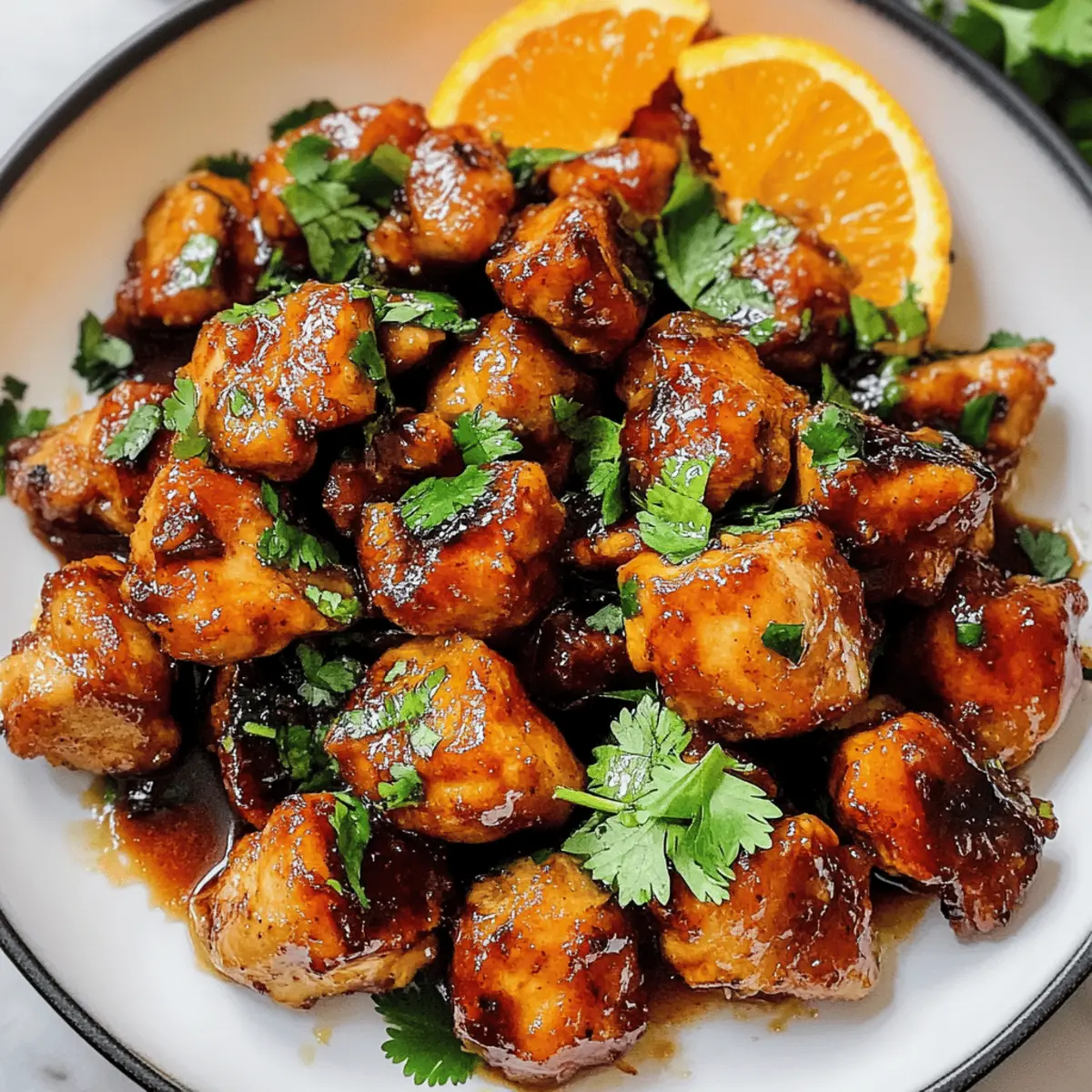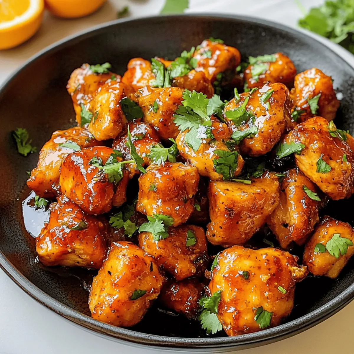 Irgendwo in der Küche hörte ich den berühmten Klang von brutzelndem Hühnchen – das war der Moment, als ich wusste, dass es Zeit für meine Koriander-Limette-Hühnchenbissen war. Diese schnellen und geschmackvollen Häppchen sind nicht nur ein Genuss für die Sinne, sondern auch die perfekte Lösung für hektische Wochentage. In nur 30 Minuten bereiten wir zarte Hühnchenteile in einer süß-sauren Orangensauce zu, verfeinert mit frischem Koriander. Sie sind leicht, gesund und bringen eine aufregende Abwechslung zu einem klassischen Abendessen. Gerade wenn der Hunger groß ist, kann ich kaum widerstehen, diese knusprigen Bissen direkt aus der Pfanne zu genießen. Hast du schon einmal daran gedacht, deine Lieblings-„Takeout“-Gerichte in einer gesünderen Version selbst zuzubereiten? Warum wirst du diese Bissen lieben? Geschmacksexplosion: Die Kombination aus süß-saurer Orangensauce und frischem Koriander sorgt für einen unvergesslichen Geschmack, der deinen Gaumen erfreuen wird. Schnell und einfach: In nur 30 Minuten bist du bereit, dieses köstliche Gericht auf den Tisch zu bringen – perfekt für stressige Wochentage! Vielfältige Optionen: Diese Koriander-Limette-Hühnchenbissen sind so flexibel; du kannst sie über Reis servieren oder mit geröstetem Gemüse kombinieren, um ein vollständiges Essen zu kreieren. Gesund und leicht: Mit gesunden Zutaten und wenig Fett sind sie die ideale Wahl für eine leichte und nahrhafte Mahlzeit. Familienfreundlich: Diese Bissen werden von der ganzen Familie geliebt – ideal, um Kindern die Freude an gesunden, hausgemachten Speisen näherzubringen. Koriander-Limette-Hühnchenbissen Zutaten Für das Hühnchen Hühnchenschenkel – Zart und geschmackvoll; Hühnchenbrust ist eine gesunde Alternative. Räucherpaprika – Verleiht dem Gericht eine subtile Rauchnote; reguläre Paprika kann ebenfalls verwendet werden. Kreuzkümmel – Sorgt für erdige Aromen; essenziell für die Geschmacksvertiefung. Salz – Verbessert den Gesamtgeschmack; passe die Menge nach deinen diätetischen Bedürfnissen an. Olivenöl – Zum Anbraten; eignet sich auch jedes hoch erhitzbare Öl für diesen Zweck. Für die Sauce Orangen – Frischer Saft für die Sauce; Navel- oder Valencia-Orangen sind ideal. Honig – Süßungsmittel in der Sauce; kann durch Ahornsirup ersetzt werden für einen anderen Geschmacksprofil. Knoblauch – Bringt herzhaften Geschmack; frischer Knoblauch wird für maximalen Geschmack empfohlen. Weißweinessig – Fügt der Sauce eine angenehme Säure hinzu; Apfelessig kann auch verwendet werden. Sojasauce – Bringt Umami und Salzigkeit; wähle eine natriumarme Version für eine leichtere Variante. Koriander – Frisches Kraut für Garnitur und Geschmack; verwende sowohl Stiele als auch Blätter für intensiven Geschmack. Diese Koriander-Limette-Hühnchenbissen sind nicht nur schnell zubereitet, sondern auch eine gesunde und schmackhafte Option für deine Wochentagsmenüs! Schritt-für-Schritt-Anleitung für Koriander-Limette-Hühnchenbissen Step 1: Hühnchen vorbereiten Schneide die Hühnchenschenkel in 2,5–4 cm große Stücke und würze sie großzügig mit Kreuzkümmel, Räucherpaprika und Salz. Lass die Gewürze kurz einziehen, damit das Hühnchen maximales Aroma entfaltet. Auf diese Weise wird das Fleisch zart und geschmackvoll, perfekt für unsere Koriander-Limette-Hühnchenbissen. Step 2: Sauce zubereiten In einer Schüssel presse die Orangen und vermische den Saft mit Honig, fein gehacktem Knoblauch, Weißweinessig und Sojasauce. Rühre alles gut durch, bis sich der Honig aufgelöst hat. Diese süß-säuerliche Sauce wird das Herzstück der Koriander-Limette-Hühnchenbissen und sorgt für einen köstlichen Geschmack. Step 3: Hühnchen anbraten Erhitze in einer großen Pfanne 2 Esslöffel Olivenöl bei mittlerer bis hoher Hitze. Gib die Hühnchenstücke dazu und brate sie 3–4 Minuten lang, bis sie goldbraun sind. Wende die Bissen, damit sie gleichmäßig garen und eine appetitliche Kruste entwickeln. Das perfekte Zeichen für Garheit ist, wenn sie eine Innentemperatur von 74 °C erreichen. Step 4: Sauce hinzufügen Reduziere die Hitze auf mittlere Stufe und gieße die vorbereitete Sauce über das Hühnchen in der Pfanne. Lass alles 4–5 Minuten leicht köcheln, bis die Sauce etwas eingedickt ist und die Hühnchenbissen gut bedeckt. Dies verleiht den Koriander-Limette-Hühnchenbissen eine herrlich klebrige Textur. Step 5: Kombinieren und garnieren Füge nun frischen, grob gehackten Koriander zu den Hühnchenbissen in der Pfanne hinzu. Mische alles gut durch, damit das Hühnchen schön von der Sauce ummantelt wird. Diese Verbindung sorgt dafür, dass sich die Aromen der Koriander-Limette-Hühnchenbissen entfalten und perfekt harmonieren. Step 6: Servieren Serviere die Koriander-Limette-Hühnchenbissen sofort auf einem Teller, über einem Bett aus Reis oder mit geröstetem Gemüse. Für einen zusätzlichen optischen Reiz kannst du mehr frischen Koriander darüber streuen. Genieße sofort diese schnelles, gesundes und geschmackvolles Gericht! Was passt zu Koriander-Limette-Hühnchenbissen? Genieße eine harmonische Mahlzeit, die deine Sinne verführt und den Geschmack deiner Koriander-Limette-Hühnchenbissen wunderbar ergänzt. Würziger Reis: Serviere sie über einer Schüssel duftendem, gewürztem Reis, um die Aromen zu intensivieren und eine köstliche Grundlage zu schaffen. Geröstetes Gemüse: Eine Mischung aus knackigem Gemüse, das im Ofen geröstet wird, bringt Textur und Frische in dein Gericht. Die Süße des Röstens harmoniert perfekt mit der Orangensauce. Knackiger Salat: Ein bunter Salat mit frischen Kräutern und einem leichten Dressing ergänzt die herzhaften Hühnchenbissen und bringt eine erfrischende Note in die Mahlzeit. Basilikum-Limonade: Ein spritziges Getränk, das die Frische von Limette und die Süße von Basilikum kombiniert, sorgt für eine erfrischende Begleitung zu den würzigen Bissen. Kokosnuss-Muffins