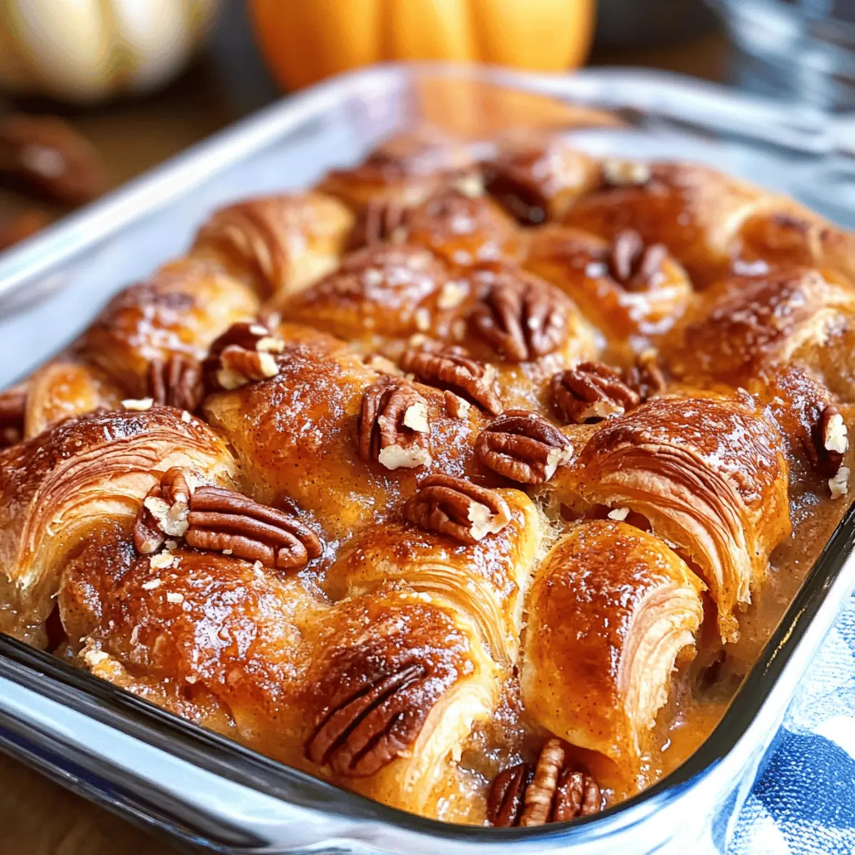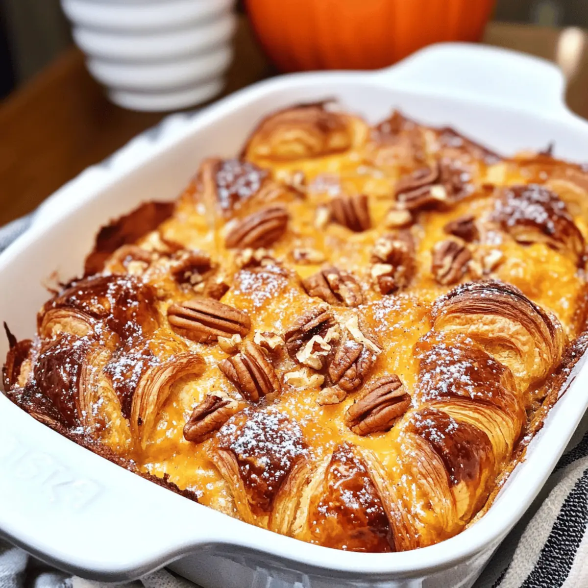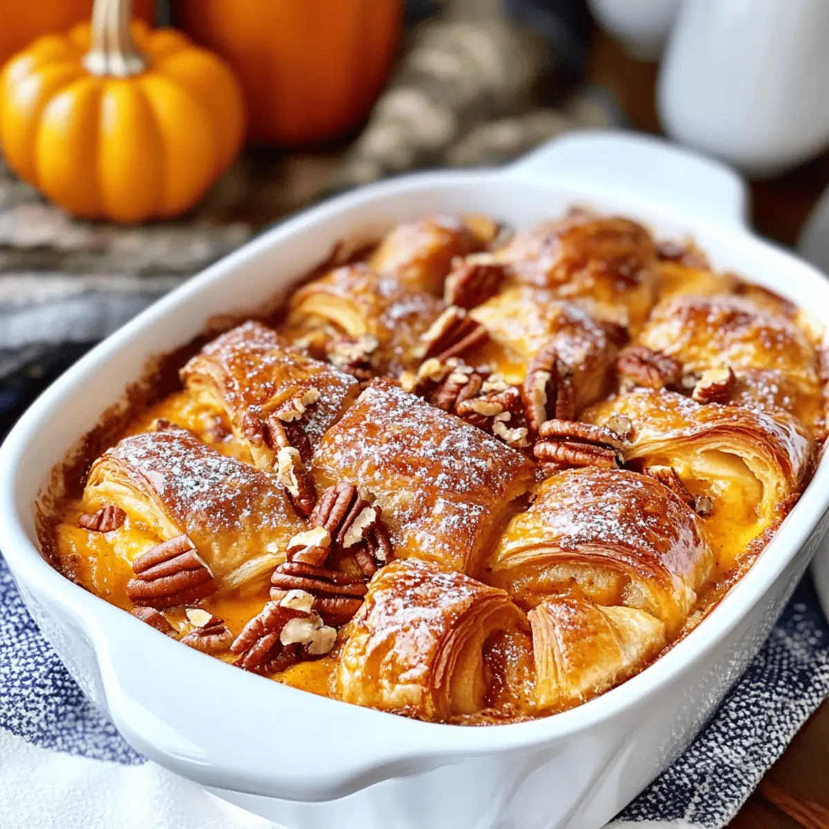 Die ersten kühlen Herbsttage bringen nicht nur bunte Blätter, sondern auch die Sehnsucht nach wärmenden Gerichten. Heute präsentiere ich einen Kürbis-Croissant-Auflauf, der das Beste aus beiden Welten vereint: flakey Croissants und eine samtige Kürbis-Custard, die einfach zum Verlieben ist. Diese einfache Rezeptur ist ideal für einen hektischen Morgen oder ein entspanntes Brunch mit Freunden, denn sie kann am Vorabend vorbereitet werden und wartet nur darauf, dass du sie am nächsten Tag in den Ofen schiebst. Mit einem Hauch von Zimt und der Möglichkeit, sie nach Belieben zu variieren, wird sich dieser ganz besondere Auflauf schnell in dein Herz und deine Frühstücksroutine schleichen. Bist du bereit, dein neues Lieblingsfrühstück zu entdecken? Warum wirst du diesen Auflauf lieben? Einfachheit: Die Zubereitung ist kinderleicht und erfordert nur grundlegende Kochfähigkeiten, sodass auch Anfänger schnell erfolgreich sind. Herbstliche Aromen: Die Kombination aus Kürbis, Zimt und Muskatnuss schafft eine warme, einladende Geschmacksexplosion – perfekt für die kühlen Monate. Vielseitigkeit: Egal, ob als Frühstück, Brunch oder sogar Dessert, der Kürbis-Croissant-Auflauf lässt sich nach deinem Geschmack anpassen oder mit verschiedenen Toppings wie Walnüssen verfeinern. Vorbereitungsfreundlich: Du kannst ihn am Vorabend zubereiten – einfach im Kühlschrank lassen und am nächsten Morgen backen. So hast du mehr Zeit für die wichtigen Dinge. Familienfreundlich: Dieser herzliche Auflauf hat das Potenzial, die ganze Familie zu begeistern und wird sicherlich zum neuen Liebling in deiner Frühstücksroutine! Kürbis-Croissant-Auflauf Zutaten • Dieses Rezept ist einfach unwiderstehlich! Für den Auflauf Bierte Croissants – Sie bilden die flauschige Basis; verwende frisch gebackene Croissants aus der Bäckerei oder Dosen-Croissants. Kürbisgewürz-Frischkäse (8 oz) – Bringt cremigen Geschmack und Kürbisnote; alternativ kannst du normalen Frischkäse und Kürbispüree kombinieren. Eier (2) – Binden die Zutaten und sorgen für Stabilität. Vanilleextrakt (1 TL) – Verstärkt den Gesamtgeschmack. Kürbisgewürz-Kaffeekrem (1/2 Tasse) – Fügt Süße und herbstliche Gewürznoten hinzu; kann durch Milch und Gewürze (Zimt, Muskat, Ingwer) ersetzt werden, wenn kein Kaffeegeschmack gewünscht ist. Kürbispüree (1/2 Tasse) – Sorgt für den intensiven Kürbisgeschmack und Feuchtigkeit. Kürbisgewürz (1-2 TL) – Für extra Kürbisgeschmack; nach Belieben anpassen. Gehackte Pekannüsse (1/4 Tasse, optional) – Bieten einen knackigen Biss; weglassen, wenn kein Nussgeschmack gewünscht ist. Für die Garnierung Puderzucker – Einzeln hinzufügen, um die oberste Schicht zu verschönern und Süße zu verleihen. Schritt-für-Schritt-Anleitung für den Kürbis-Croissant-Auflauf Step 1: Ofen vorheizen Heize den Ofen auf 175 °C (350 °F) vor. Bereite eine Backform (etwa 23 x 23 cm) vor, indem du sie mit Kochspray einsprühst, um ein Ankleben des Auflaufs zu verhindern. Eine gut vorbereitete Form sorgt dafür, dass der Kürbis-Croissant-Auflauf gleichmäßig backt und nicht anbrennt. Step 2: Croissants würfeln Nehme die gebackenen Croissants und schneide sie in ein-Zoll große Stücke. Leg die Croissantwürfel gleichmäßig in die vorbereitete Backform. Es ist wichtig, dass die Würfel gut verteilt sind, damit jeder Bissen die köstliche Kürbiscreme aufnimmt. Step 3: Custard-Mischung zubereiten In einer Schüssel den Kürbisgewürz-Frischkäse, die Eier, das Vanilleextrakt, das Kürbisgewürz-Kaffeekrem, das Kürbispüree und das Kürbisgewürz gut vermischen. Verquirle die Zutaten mit einem Handmixer oder einem Schneebesen, bis die Mischung glatt und cremig ist. Achte darauf, keine Klumpen zu hinterlassen, um eine gleichmäßige Konsistenz zu gewährleisten. Step 4: Croissants und Custard kombinieren Gieße die cremige Custard-Mischung gleichmäßig über die Croissants in der Backform. Stelle sicher, dass alle Croissantstücke gut bedeckt sind, sodass sie während des Backens die köstlichen Aromen aufnehmen können. Schüttele die Form leicht, um sicherzustellen, dass die Custard gut verteilt ist. Step 5: Durchziehen lassen Lass den Kürbis-Croissant-Auflauf bei Raumtemperatur mindestens 20 Minuten ruhen. Alternativ kannst du ihn auch über Nacht im Kühlschrank lassen, um die Aromen intensivieren und die Croissants noch weicher zu machen. Diese Wartezeit ist entscheidend für das optimale Gelingen. Step 6: Toppings hinzufügen Falls gewünscht, bestreue den Auflauf vor dem Backen mit gehackten Pekannüssen. Die Nüsse geben dem Gericht einen köstlichen Crunch und harmonieren perfekt mit der Cremigkeit des Kürbis-Croissant-Auflaufs. Sie sind optional, können aber eine schöne Textur hinzufügen. Step 7: Backen Schiebe den Auflauf in den vorgeheizten Ofen und backe ihn 35-40 Minuten lang, bis er goldbraun und in der Mitte fest ist. Achte darauf, dass die Oberseite nicht zu schnell bräunt; falls nötig, kannst du ihn gelegentlich mit Alufolie abdecken, um ein Anbrennen zu verhindern. Step 8: Servieren Nimm den Kürbis-Croissant-Auflauf aus dem Ofen und lass ihn kurz abkühlen. Garniere ihn nach Belieben mit Puderzucker für eine süße Note. Serviere ihn warm, um das volle Aroma und die köstliche Textur zu genießen – er wird sicher zum Star deines Frühstücks oder Brunchs! Kürbis-Croissant-Auflauf Variationen Entdecke die Möglichkeiten, wie du dieses Rezept ganz nach deinem Geschmack anpassen kannst! Lass deiner Kreativität freien Lauf, während du deinen ganz eigenen Kürbis-Croissant-Auflauf kreierst. Glutenfrei: Verwende glutenfreie Croissants oder eine andere glutenfreie Backmischung für die perfekte Basis. Süßere Variante: Füge Schokoladenstückchen hinzu, um eine zarte Süße und einen zusätzlichen Geschmackskick zu gewährleisten. Vegane Option: Ersetze Eier durch einen Leinsamen-Ei-Ersatz und benutze veganen Frischkäse sowie pflanzliche Milch. Ernähr