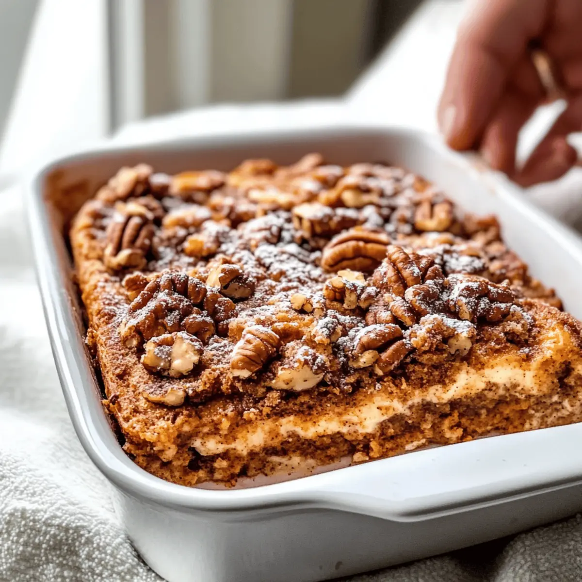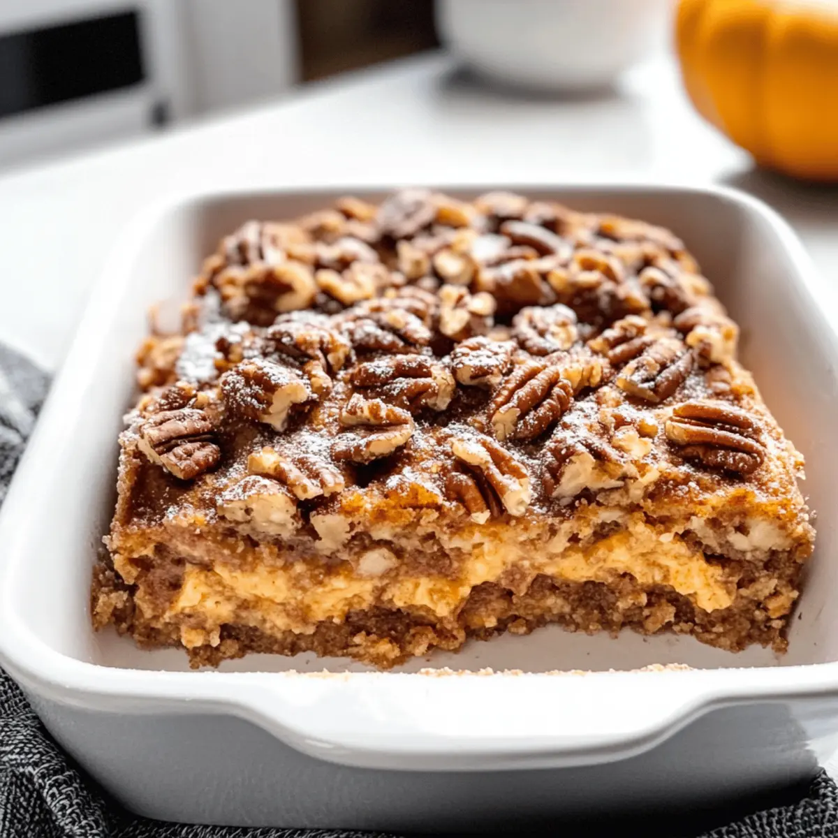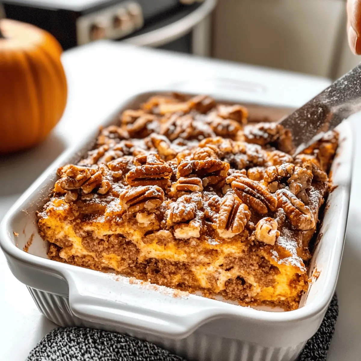 Es gibt Momente in der Küche, die einfach magisch sind—wie der Augenblick, als ich das erste Mal das Aroma eines frisch gebackenen Kürbis French Toast Auflaufs erlebte. Dieser köstliche Auflauf verbindet das Beste aus zwei Welten: die Reichhaltigkeit von weichem, custardy Brot und die warmen, einladenden Gewürze eines klassischen Kürbispies. In meinem Rezept für den Overnight Kürbis French Toast Auflauf mit knackiger Pecan-Streusel wird das Frühstück zu einem stressfreien Vergnügen, das sowohl Zeit spart als auch den Gaumen erfreut. Perfekt für jeden Anlass, sei es beim Brunch mit Freunden oder beim gemütlichen Familienfrühstück, dieses Gericht sorgt garantiert für strahlende Gesichter. Bist du bereit, die Aromen des Herbstes in deiner eigenen Küche zu entdecken? Warum wirst du dieses Rezept lieben? Einfache Zubereitung: Der langanhaltende Geschmack der Herbstgewürze wird durch die unkomplizierte Zubereitung ergänzt. Ideal für alle, die es lieben, stressfreie Gerichte zu kreieren. Vielfältige Variationen: Mit alternativen Brotsorten und Streusel-Optionen kannst du das Rezept ganz nach deinem Geschmack anpassen – perfekt für kreative Köche! Perfekte Konsistenz: Die Kombination aus flauschigem Brot und knusprigem Pecan-Topping sorgt für ein ausgewogenes Texturerlebnis in jedem Bissen. Vorbereitung am Vorabend: Dieser Auflauf ist das perfekte Gericht für einen stressfreien Morgen, denn du kannst ihn am Vorabend zubereiten, wie zum Beispiel zusammen mit meinen Zimtige Franzoesische Toasts. Vielseitige Serviermöglichkeiten: Genieße ihn warm mit einem Hauch von Ahornsirup oder Puderzucker – er passt hervorragend zu deinem Lieblingskaffee oder einem wärmenden Apfelpunsch! Kürbis French Toast Auflauf Zutaten Hinweis: Alle Zutaten tragen zu einem unwiderstehlichen Geschmack bei, der für jedem Herbstmorgen perfekt ist. Für den Auflauf Brot – Ideal ist altbackenes Brot oder geröstetes frisches Brot für die optimale Textur. Wähle Brioche, französisches Brot oder Challah. Milch – Sorgt für die nötige Feuchtigkeit; du kannst pflanzliche Alternativen wie Kokosmilch für eine milchfreie Option verwenden. Schlagsahne – Macht die Mischung besonders cremig; ersetze sie durch vollfette Kokosmilch oder pflanzliche Sahne, um sie laktosefrei zu gestalten. Kürbispüree – Für den vollen Geschmack; wir empfehlen die Verwendung von Dosenkürbis und nicht von Kürbis-Pie-Füllung. Eier – Binden die Zutaten zusammen und sorgen für Struktur; gut verquirlen. Zucker – Für die süße Note; reduziere nach Belieben für weniger Süße. Kürbisgewürz – Gibt den warmen, aromatischen Geschmack; kann durch einzelne Gewürze wie Zimt, Muskatnuss, Nelken und Ingwer ersetzt werden. Vanilleextrakt – Bereichert das Aroma; verwendest du am besten hochwertigen Extrakt für optimale Ergebnisse. Für die Streusel Pecannüsse – Verleihen dem Streusel eine schöne Crunch-Note; kannst du auch durch Walnüsse ersetzen oder ganz weglassen, um es nussfrei zu machen. Brauner Zucker – Sorgt für die süße und intensiviert die Aromen im Streusel. Mehl – Bindet die Zutaten für die Streusel; für glutenfreie Varianten kann Mandel- oder Hafermehl verwendet werden. Butter – Für die nötige Reichhaltigkeit; in einer veganen Variante kann sie durch pflanzliche Margarine ersetzt werden. Schritt-für-Schritt-Anleitung für den Kürbis French Toast Auflauf Step 1: Brot vorbereiten Schneide das altbackene Brot in gleichmäßige Würfel und verteile sie gleichmäßig in einer gefetteten 13×9 Backform. Achte darauf, dass das Brot gut verteilt ist, um eine gleichmäßige Durchfeuchtung zu gewährleisten. Diese Basis sorgt dafür, dass der Kürbis French Toast Auflauf die perfekte Textur erhält. Step 2: Mischung für die Eiercreme herstellen In einer großen Schüssel verrühre die Milch, Schlagsahne, Zucker, Eier, Kürbispüree, Kürbisgewürz und Vanilleextrakt, bis alles gut vermischt ist. Verwende einen Schneebesen, um eine homogene Konsistenz zu erreichen. Diese cremige Mischung wird das Brot durchdringen und einen köstlichen Geschmack im Auflauf erzeugen. Step 3: Brot einweichen und im Kühlschrank lassen Gieße die Eiercrememischung gleichmäßig über die Brotstücke. Stelle sicher, dass jedes Stück gut durchtränkt ist. Decke die Backform mit Frischhaltefolie ab und lasse sie für mindestens 4 Stunden oder über Nacht im Kühlschrank stehen, damit das Brot die Aromen gut aufnehmen kann. Step 4: Streusel zubereiten In einer separaten Schüssel vermenge braunen Zucker, Mehl, Butter und die gehackten Pecannüsse mit einer Gabel oder den Fingern, bis die Mischung krümelig ist. Diese Streusel verleihen dem Kürbis French Toast Auflauf eine köstliche, knusprige Textur und werden gleichmäßig über den Auflauf verteilt, bevor er in den Ofen kommt. Step 5: Ofen vorheizen Heize deinen Ofen auf 175°C (350°F) vor, während der Auflauf im Kühlschrank durchzieht. Ein gut vorgeheizter Ofen sorgt dafür, dass dein Kürbis French Toast Auflauf gleichmäßig gart und eine goldene, köstliche Kruste bildet. Step 6: Auflauf backen Nimm die Backform aus dem Kühlschrank, streue die Streusel gleichmäßig über die Oberseite des inklusiven Kürbis French Toast Auflaufs und schiebe die Form in den vorheizten Ofen. Backe den Auflauf für 45-55 Minuten, bis die Eiercreme fest ist und die Oberseite schön goldbraun aussieht. Step 7: Abkühlen und servieren Lass den Auflauf nach dem Backen leicht abkühlen, bevor du ihn in Stücke schneidest und servierst. Du kannst ihn warm genießen, vielleicht mit einem Hauch von Sirup oder Puderzucker, um das geschmackliche Erlebnis zu verfeinern. Vorbereitung für den Kürbis French Toast Auflauf Der Kürbis French Toast Auflauf ist perfekt für stressfreies Meal Prep! Du kannst das Brot bereits bis zu 24 Stunden im Voraus in Würfel schneiden und in der Backform anrichten. Die Eiercreme-Mischung kann ebenfalls am Vorabend zubereitet und über das Brot 