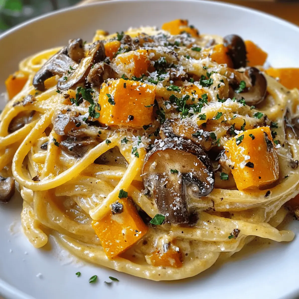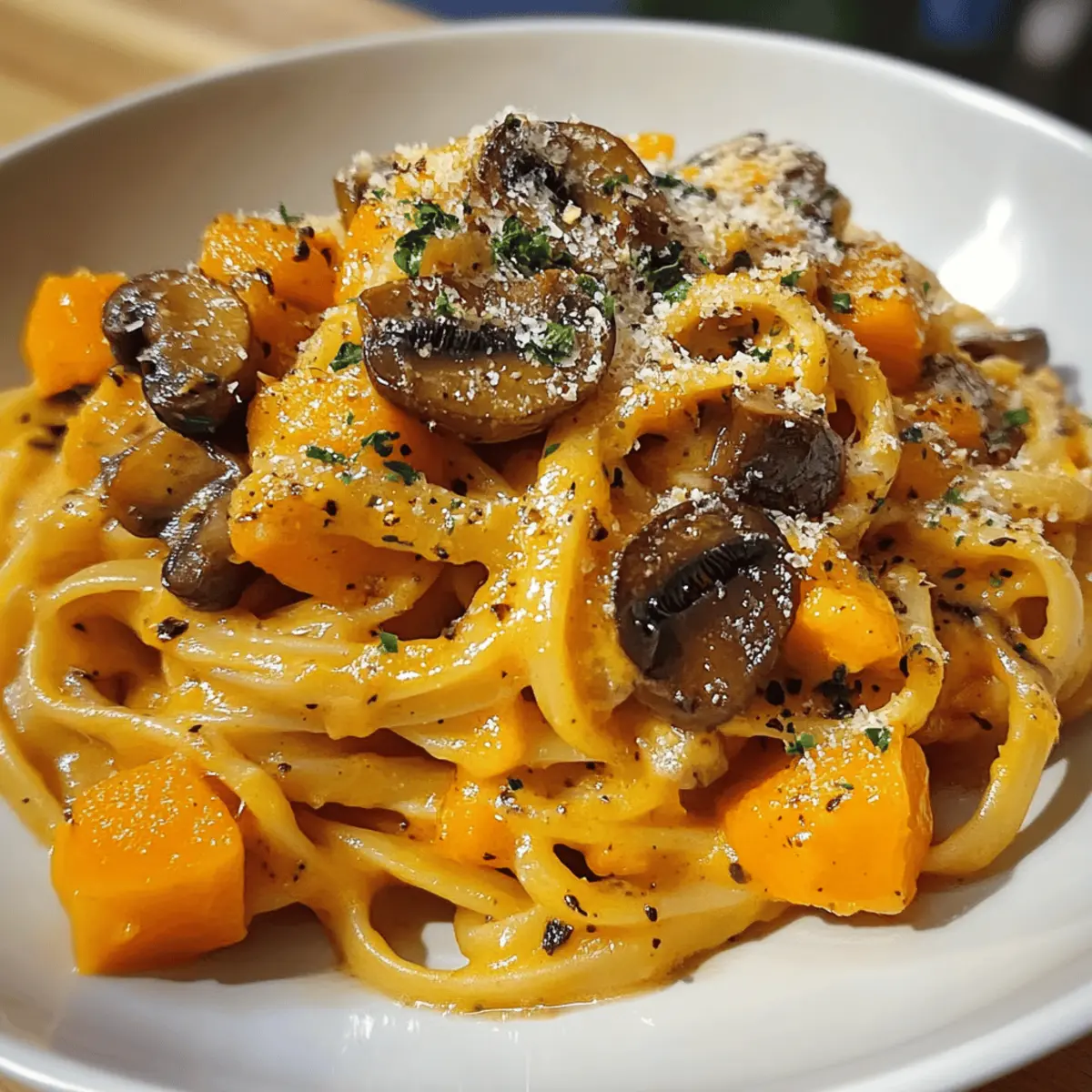 Während ich in der Küche stand und die ersten Kühle des Herbstes spürte, fiel mir ein köstlicher Gedanke ein: Kürbis-Pilz-Pasta. Diese schnelle und einfache Rezeptur vereint die süße Note von Kürbis mit der erdigen Tiefe von Pilzen und sorgt so für ein cremiges, herzhaftes Gericht, das sich perfekt für geschäftige Wochentage eignet. In nur wenigen Schritten zauberst du eine Träumerei, die nicht nur den Gaumen erfreut, sondern auch eine warme Umarmung für die Seele ist. Ideal für alle, die frische, selbstgemachte Gerichte lieben und den Fast Food-Alltag hinter sich lassen möchten. Bist du bereit, deinem Abendessen einen herbstlichen Twist zu geben? Warum wirst du dieses Rezept lieben? Einfachheit: Die Zubereitung ist super unkompliziert und erfordert nur grundlegende Küchenfähigkeiten. Herzhafter Geschmack: Die Kombination aus süßem Kürbis und erdigen Pilzen sorgt für einen reichen und befriedigenden Geschmack, der rundum begeistert. Schnell zubereitet: In weniger als 30 Minuten hast du ein köstliches Gericht auf dem Tisch, perfekt für hektische Wochentage. Vielseitigkeit: Du kannst verschiedene Pilzsorten wie Shiitake oder Austernpilze verwenden oder sogar Spinat hinzufügen, um deiner Pasta eine frische Note zu verleihen. Crowd-Pleaser: Diese Pasta wird garantiert zum Star deines nächsten Abendessens – perfekt, um Familie und Freunde zu beeindrucken! Falls du mehr über die idealen Beilagen erfahren möchtest, schau dir unser Rezept für frischen Salat oder Knoblauchbrot an, um das perfekte Menü abzurunden. Kürbis-Pilz-Pasta Zutaten Hinweis: Diese Zutatenliste hilft dir, die köstliche Kürbis-Pilz-Pasta zuzubereiten, die deine Geschmacksknospen verwöhnen wird. Für die Pasta • Pasta – Verwende deine Lieblingspasta für die perfekte Grundlage. Für die Sauce • Kürbis – Liefert die süße Note und eine cremige Textur; Butternut-Kürbis ist eine gute Alternative. • Champignons – Bringen einen erdigen Geschmack; Shiitake oder sogar Steinpilze verstärken das Aroma. • Zwiebel – Fügt der Sauce Tiefe hinzu; fein gehackt für gleichmäßiges Garen verwenden. • Knoblauch – Verleiht ein aromatisches Flair; frischer Knoblauch sorgt für den besten Geschmack. • Olivenöl – Hochwertiges extra natives Olivenöl sorgt beim Anbraten für einen intensiven Geschmack. • Sahne – Macht die Sauce schön cremig; veganer Sahneersatz ist eine gute Option. • Salz & Pfeffer – Unverzichtbar für das Würzen und Verstärken der Aromen; nach Geschmack anpassen. • Muskatnuss – Eine optionale Gewürzergänzung, die Wärme und Tiefe bringt und den Kürbisgeschmack unterstreicht. • Parmesan – Der krönende Abschluss für Geschmack und Cremigkeit; für eine vegane Variante einfach weglassen oder ersetzen. • Frische Petersilie – Für eine Garnitur und einen frischen Geschmackskick. Schritt-für-Schritt-Anleitung für Kürbis-Pilz-Pasta Schritt 1: Pasta kochen Bringe in einem großen Topf ausreichend gesalzenes Wasser zum Kochen. Füge deine Lieblingspasta hinzu und koche sie für 8 bis 10 Minuten al dente. Achte darauf, dass die Pasta bissfest bleibt. Bevor du das Wasser abgießt, hebe eine Tasse vom Kochwasser auf, um die Sauce später anzupassen. Schritt 2: Zwiebel anschwitzen Erhitze in einer großen Pfanne bei mittlerer Hitze einen Schuss Olivenöl. Füge die fein gehackte Zwiebel hinzu und brate sie etwa 3 bis 5 Minuten lang, bis sie glasig und weich ist. Dies sorgt für eine aromatische Basis in deiner Kürbis-Pilz-Pasta. Schritt 3: Knoblauch hinzufügen Gib nun den frisch gehackten Knoblauch in die Pfanne und brate ihn für etwa 30 Sekunden mit, bis er duftet. Rühre währenddessen ständig um, um ein Anbrennen zu vermeiden. Der aromatische Knoblauch wird dem Gericht eine schöne Tiefe verleihen. Schritt 4: Kürbis und Pilze anbraten Incorporiere den gewürfelten Kürbis und die in Scheiben geschnittenen Pilze in die Pfanne. Brate alles 5 bis 7 Minuten lang, bis beide Zutaten weich und leicht angebraten sind. Die süßen Noten des Kürbisses kombinieren sich hervorragend mit den erdigen Aromen der Pilze. Schritt 5: Sauce cremig machen Reduziere die Hitze und gieße die Sahne in die Pfanne. Lass die Mischung sanft köcheln, damit sie leicht eindickt – dies sollte etwa 5 Minuten dauern. Rühre gelegentlich um, damit sich die Zutaten gut vermischen und eine cremige Sauce entsteht. Schritt 6: Würzen Füge Salz, Pfeffer und Muskatnuss (falls verwendet) hinzu, um der Sauce den letzten Schliff zu geben. Schmecke die Sauce ab und passe die Gewürze je nach Vorliebe an. Diese Gewürze heben die herrlichen Aromen der Kürbis-Pilz-Pasta hervor. Schritt 7: Pasta einmischen Gieße die gekochte Pasta direkt in die Pfanne mit der Sauce und vermenge alles gut. Falls die Sauce zu dick ist, kannst du nach Bedarf etwas vom aufgehobenen Nudelwasser hinzufügen, um die gewünschte Konsistenz zu erreichen. Alles gut umrühren, sodass die Pasta schön umhüllt ist. Schritt 8: Servieren Verteile die fertige Kürbis-Pilz-Pasta auf Tellern und bestreue sie abschließend mit frisch geriebenem Parmesan und gehackter Petersilie. Die Kombination aus cremiger Sauce und den farbenfrohen Garnituren macht das Gericht appetitlich und einladend. Kürbis-Pilz-Pasta Variationen Gib deiner Kürbis-Pilz-Pasta eine persönliche Note mit diesen köstlichen Anpassungen und Variationen. Pilzvielfalt: Experimentiere mit verschiedenen Pilzsorten wie Shiitake oder Austernpilzen für spannende Geschmacksnuancen. Jedes Pilz hat seinen eigenen Charakter, der deiner Pasta eine neue Dimension verleiht. Grüner Zusatz: Füge frischen Spinat oder Grünkohl hinzu, um nicht nur Farbe, sondern auch zusätzliche Nährstoffe zu integrieren. Das ergibt ein hübsches und gesundes Gericht, das noch nährstoffreicher wird. Nussiger Crunch: Toppe deine Pasta mit gerösteten Pinienkernen oder Walnüssen für eine köstliche Textur und einen nussigen Geschmack. Das Knusprige wird wunderbar mit der cre