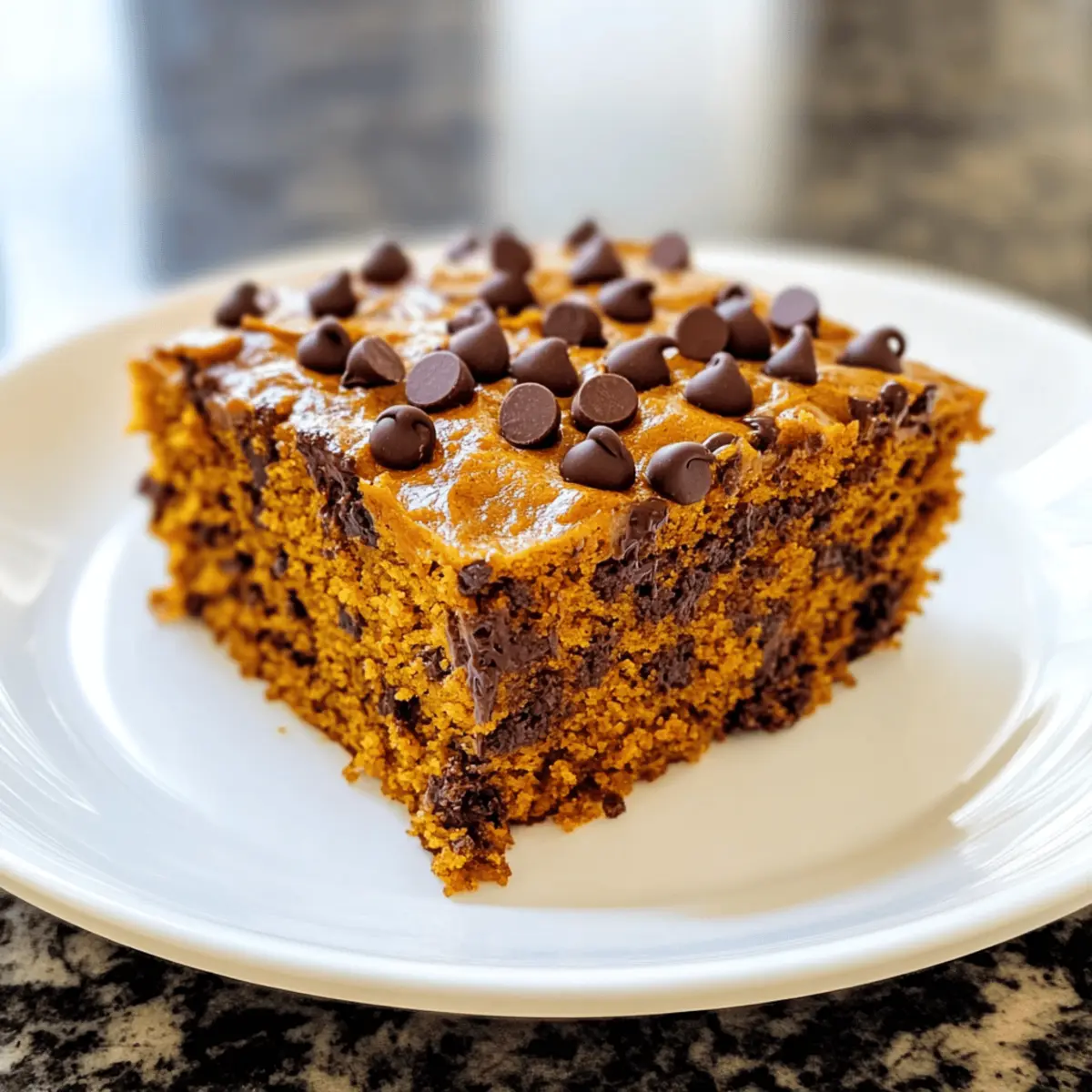 Genießen Sie diesen köstlichen Kürbis Schokoladenstückchen Kuchen warm oder bei Zimmertemperatur.