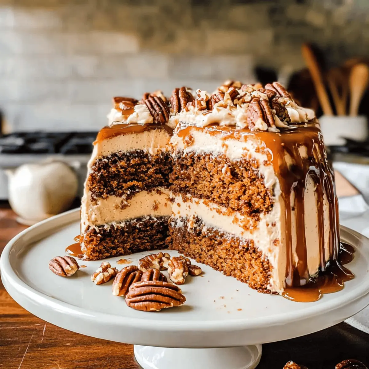 • Karamellisierte Äpfel: Diese warmen, süßen Äpfel fügen eine fruchtige Note hinzu und harmonieren perfekt mit dem Kürbisgeschmack. Sie sorgen für die nötige Frische und dennoch dafür, dass der Kuchen im Mittelpunkt bleibt.