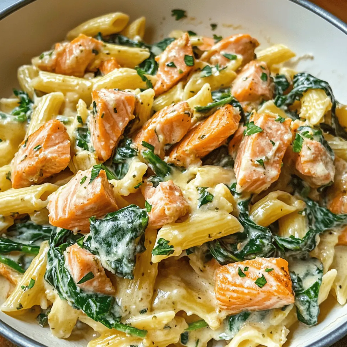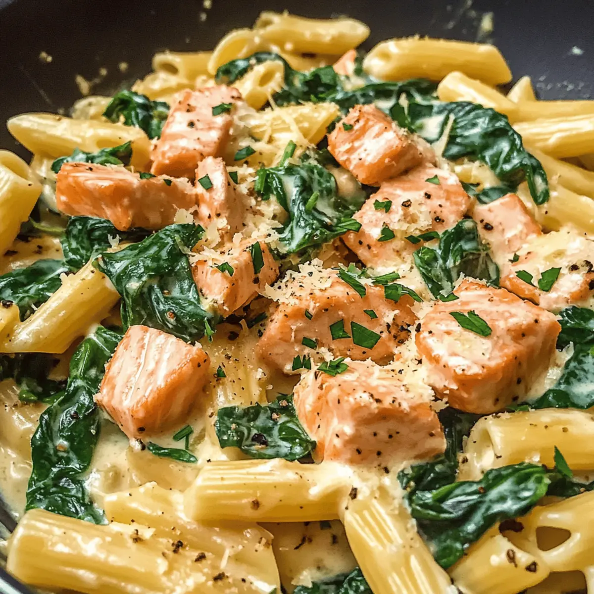 Einfachheit: Mit nur wenigen Zutaten und klaren Schritten wird das Kochen zum Kinderspiel. Schnell: In nur 30 Minuten auf dem Tisch – ideal für stressige Abende. Cremiger Genuss: Die Kombination aus Sahne und Parmesan sorgt für eine himmlische Sauce, die jeden Bissen zum Erlebnis macht. Vielseitig: Verwendet euren Lieblingspasta und passt das Rezept nach Belieben an – auch für Vegetarier oder glutenfreie Varianten geeignet! Restaurantqualität: Genießt den luxuriösen Geschmack von zartem Lachs und frischem Spinat, während ihr das Gefühl habt, in einem tollen Restaurant zu speisen. Perfekte Reste: Nutzt übrig gebliebenen Lachs und überrascht eure Familie immer wieder aufs Neue!