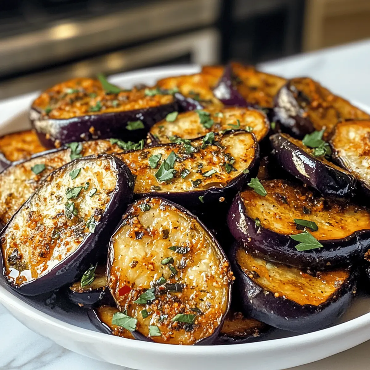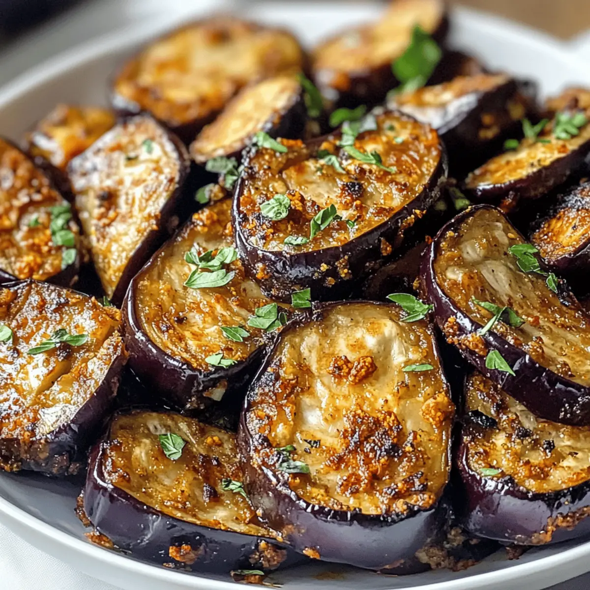 Die knusprige Verlockung der Luftfritteuse hat mich sofort in ihren Bann gezogen, als ich das erste Mal die Low-Calorie Luftfritteuse Aubergine zubereitet habe. In nur 25 Minuten verwandelt sich die Aubergine in eine köstliche Delikatesse, die außen schön knackig und innen wunderbar zart ist. Diese gesunde, kalorienarme Variante eignet sich nicht nur perfekt als Beilage, sondern auch als Hauptgericht für vegetarische Genießer. Außerdem ist sie schnell zubereitet und benötigt kaum Öl, was sie zu einer großartigen Wahl für alle macht, die auf ihre Ernährung achten. Lust auf ein leichtes und dennoch geschmackvolles Gericht? Lass uns gemeinsam in die Welt der köstlichen Luftfritteuse eintauchen! Warum sind Luftfritteuse-Gerichte so beliebt? Einfachheit: Die Zubereitung dieser Low-Calorie Luftfritteuse Aubergine ist ein Kinderspiel und benötigt nur grundlegende Kochkenntnisse. Vielfalt: Kombiniere verschiedene Gewürze und Marinaden für unendlich viele Geschmackskombinationen. Gesund: Mit nur 80-120 Kalorien pro Portion passt dieses Gericht perfekt in eine kalorienbewusste Ernährung. Schnelligkeit: In nur 25 Minuten hast du ein köstliches und nahrhaftes Gericht auf dem Tisch. Crispy Genuss: Die Kombination aus knuspriger Oberfläche und zartem Inneren macht diese Aubergine unwiderstehlich. Probier auch diese tollen Zucchini-Rezepte oder schau dir an, wie du mit der Luftfritteuse andere Gemüsesorten zubereiten kannst! Low-Calorie Luftfritteuse Aubergine Zutaten Hinweis: Stelle sicher, dass du frische Zutaten wählst, um den besten Geschmack aus deiner Low-Calorie Luftfritteuse Aubergine herauszuholen. Für die Aubergine • Aubergine – Die Hauptzutat, die eine cremige Textur liefert und Aromen gut aufnimmt. • Olivenöl (optional) – Fügt Reichtum hinzu und verbessert die Bräunung; kann für eine kalorienärmere Version weggelassen werden. Für die Gewürzmischung • Knoblauchpulver (1 TL) – Gibt einen wunderbaren Knoblauchgeschmack; frischer Knoblauch kann für mehr Intensität verwendet werden. • Zwiebelpulver (1 TL) – Verstärkt die herzhaften Aromen; frische Zwiebeln können alternativ verwendet werden. • Paprikapulver (½ TL) – Bringt eine milde Schärfe und Farbe; experimentiere mit geräuchertem Paprika für einen anderen Twist. • Getrockneter Oregano (½ TL) – Verleiht ein mediterranes Aroma. • Salz und Pfeffer – Unverzichtbare Würze, um alle Aromen zu betonen. Optionale Marinaden/Gewürze • Balsamico-Essig – Für eine süß-säuerliche Note. • Sojasauce – Für Umami-Geschmack. • Zitronensaft – Fügt Frische hinzu und helf beim Ausbalancieren der Aromen. • Chiliflocken – Für einen angenehmen Schärfekick; nach Belieben hinzufügen. • Frische Kräuter – Für zusätzliche Frische und Geschmack. Mit diesen Zutaten bist du bereit, die köstliche Low-Calorie Luftfritteuse Aubergine zuzubereiten! Schritt-für-Schritt-Anleitung für Low-Calorie Luftfritteuse Aubergine Step 1: Aubergine vorbereiten Schneide die Aubergine in gewünschte Formen, z. B. Scheiben, Würfel oder Stifte. Optional kannst du die Stücke 15–20 Minuten mit Salz bestreuen, um die Bitterkeit zu reduzieren. Danach die Aubergine gründlich abspülen und mit einem Küchentuch trocken tupfen. Step 2: Würzen In einer großen Schüssel die Aubergine mit Olivenöl (falls verwendet), Knoblauchpulver, Zwiebelpulver, Paprikapulver, Oregano, Salz und Pfeffer vermengen. Achte darauf, dass die Auberginenstücke gleichmäßig mit der Würzmischung bedeckt sind, um ein optimales Geschmackserlebnis zu garantieren. Step 3: Luftfritteuse vorheizen Heize die Luftfritteuse auf 200 °C vor. Dies dauert in der Regel etwa 3–5 Minuten, je nach Modell. Das Vorheizen sorgt dafür, dass die Aubergine von Beginn an knusprig wird und gleichmäßig gart. Step 4: Aubergine garen Lege die gewürzte Aubergine in einer einzigen Schicht in den Korb der Luftfritteuse. Gare die Aubergine 10–15 Minuten lang, wobei du sie einmal zur Hälfte der Garzeit schüttelst oder wendest, um eine gleichmäßige Bräunung zu gewährleisten. Achte darauf, dass die Stücke nicht übereinanderliegen. Step 5: Servieren Entferne die Aubergine vorsichtig aus der Luftfritteuse, wenn sie goldbraun und knusprig ist. Serviere sie sofort als köstliche Beilage oder Snack. Optional kannst du die Aubergine mit frischen Kräutern oder einem Dip nach Wahl anrichten. Lagerungstipps für Low-Calorie Luftfritteuse Aubergine Raumtemperatur: Die zubereitete Aubergine sollte nicht länger als 2 Stunden bei Raumtemperatur gelagert werden, um die Frische und Sicherheit zu gewährleisten. Kühlschrank: Bewahre die Reste in einem luftdichten Behälter im Kühlschrank auf. Diese sind bis zu 3 Tage haltbar und bleiben so am besten frisch. Gefrierer: Wenn du die Low-Calorie Luftfritteuse Aubergine länger aufbewahren möchtest, kannst du sie bis zu 3 Monate im Gefrierschrank lagern. Friere sie am besten in einem flachen Behälter oder einem Gefrierbeutel ein, um Platz zu sparen. Wiedererhitzen: Um die Aubergine wieder knusprig zu machen, empfehle ich, sie in der Luftfritteuse bei 180 °C für 5–7 Minuten zu erhitzen. So bleibt die Textur ideal erhalten. Meal Prep für die Low-Calorie Luftfritteuse Aubergine Die Zubereitung der Low-Calorie Luftfritteuse Aubergine ist ideal für Meal Prep und spart dir wertvolle Zeit an hektischen Abenden. Du kannst die Aubergine bereits bis zu 24 Stunden im Voraus schneiden und mit den Gewürzen marinieren; bewahre sie einfach in einem luftdichten Behälter im Kühlschrank auf, um die Frische zu bewahren. Achte darauf, die Stücke gleichmäßig mit der Gewürzmischung zu bedecken, damit der Geschmack optimal durchzieht. Wenn du bereit bist, die Aubergine zu genießen, heize die Luftfritteuse vor und gare die Aubergine in nur 10-15 Minuten für ein köstliches, knuspriges Ergebnis, das immer noch so lecker ist wie frisch zubereitet! Was passt zu Low-Calorie Luftfritteuse Aubergine? Die krosse Auber
