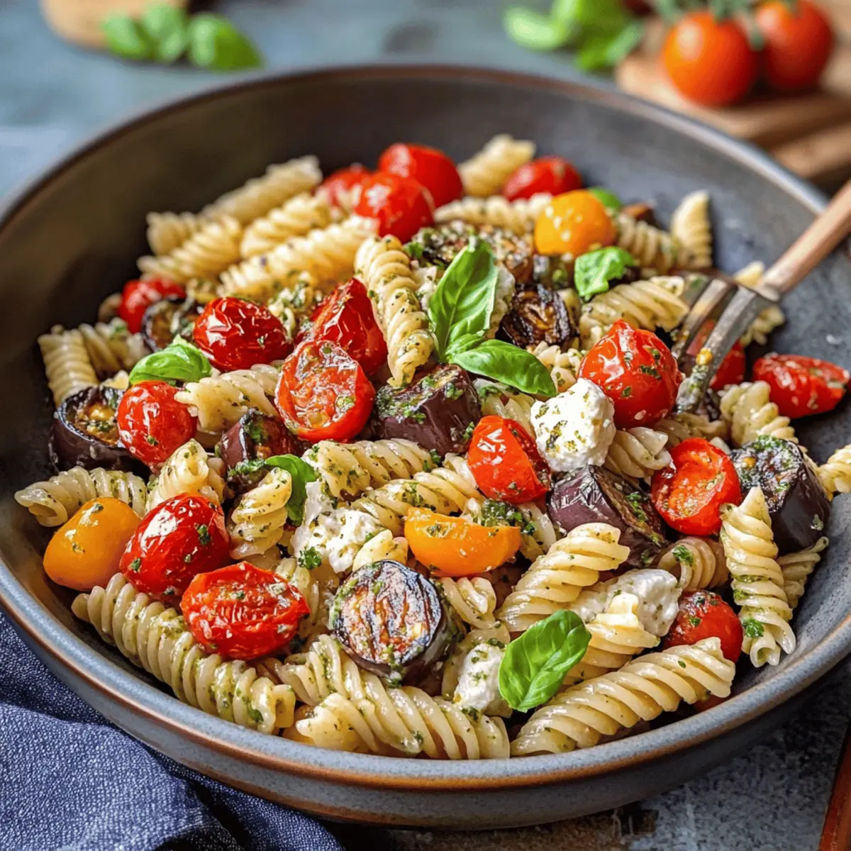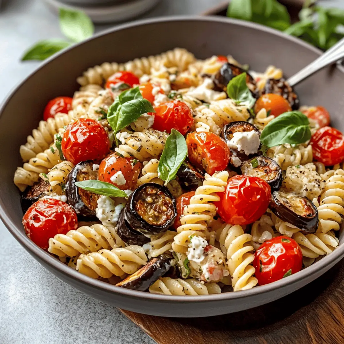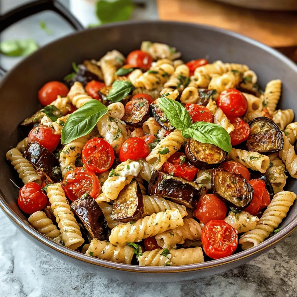 Ein leuchtend-bunter Teller Mediterraner Nudelsalat sorgt garantiert für gute Laune und geschmackliche Freude! Die Kombination aus köstlich geröstetem Ofengemüse und einer cremigen Ricotta-Dressing ist nicht nur ein Fest für die Augen, sondern auch schnell zubereitet und ganz einfach vegetarisch. Dieser Nudelsalat ist perfekt als erfrischende Beilage zu Grillgerichten oder als leichtes Hauptgericht, das sich wunderbar warm oder kalt genießen lässt. In weniger als einer Stunde hüllt euch dieser Salat in die sonnigen Aromen des Mittelmeers – ganz ohne aufwendige Vorbereitungen. Habt ihr Lust, die Geschmacksexplosion zu entdecken, die euch direkt in den Urlaub entführt? Warum werden Sie dieses Rezept lieben? Einfachheit: Die Zubereitung ist so unkompliziert, dass selbst Kochanfänger sie meistern können! Vielfalt: Dieser Mediterraner Nudelsalat ist äußerst vielseitig und lässt sich mit verschiedenen Gemüsesorten und Beilagen kombinieren. Frische Aromen: Die Kombination aus geröstetem Ofengemüse und cremigem Ricotta-Dressing sorgt für ein unvergessliches Geschmackserlebnis. Perfekt für Geselligkeit: Ob als Beilage zu Grillgerichten oder als leichtes Hauptgericht, dieser Salat bringt Farbe und Geschmack auf jedes Buffet. Schnell zubereitet: In weniger als einer Stunde steht dieser köstliche Nudelsalat auf dem Tisch – ein echter Rettungsanker an hektischen Tagen! Gesund und nahrhaft: Reich an Ballaststoffen und Protein ist er nicht nur lecker, sondern auch eine gesunde Wahl für alle. Für eine weitere köstliche Sommererfrischung könnte dieser Mediterraner Bohnensalat Getrocknete genau das Richtige sein! Mediterraner Nudelsalat Zutaten • Entdecken Sie die leckeren Zutaten für unseren Mediterranen Nudelsalat mit Ofengemüse und Ricotta-Dressing! Für das Ofengemüse Cocktailtomaten (250 g) – Sie verleihen dem Salat eine angenehme Süße und Saftigkeit. Alternativ können Sie auch Kirschtomaten verwenden. Aubergine (400 g) – Sie sorgt beim Rösten für eine cremige Textur. Zucchini oder Paprika sind ebenfalls tolle Alternativen. Knoblauch (1 Zehe, gerieben) – Er intensiviert den Geschmack und sorgt für ein tolles Aroma. Olivenöl (3 EL) – Wichtig für das Rösten und das Dressing, verleiht es den Aromen Fülle. Oregano (2 TL) – Fügt köstliche, mediterrane Kräuternoten hinzu. Zucker (1 TL) – Balanciert die Säure der Tomaten aus. Salz (1,5 TL) – Unerlässlich für die Geschmacksverstärkung. Für den Nudelsalat Pasta (400 g, al dente gekocht) – Sorgt für Struktur und Herzhaftigkeit, wählen Sie eine Sorte wie Fusilli oder Penne. Basilikum (1 Handvoll) – Frisch und aromatisch, hebt die Aromen hervor. Pasta-Wasser (25 ml) – Anpassung der Konsistenz des Dressings. Für das Ricotta-Dressing Ricotta (3 EL) – Verleiht dem Dressing eine cremige Note. Zitronensaft (ein Spritzer) – Bringt Frische und Säure ins Spiel. Pfeffer – Für die nötige Würze. Parmesan (100 g, gerieben) – Gibt dem Gericht einen herzhaften Abschluss. Tomatenflocken (2 TL, optional) – Intensiviert den Tomatengeschmack im Salat. Machen Sie sich bereit, die Aromen des Mittelmeers in einem einfach und schnell zuzubereitenden Gericht zu genießen! Step-by-Step Instructions für Mediterraner Nudelsalat mit Ofengemüse & Ricotta-Dressing Step 1: Ofen vorheizen und Backform vorbereiten Heizen Sie den Ofen auf 180 °C (350 °F) vor und fetten Sie eine Backform leicht ein. Diese Schritte sind wichtig, um sicherzustellen, dass das Gemüse gleichmäßig geröstet wird und eine köstliche Caramelisierung erhält. Überprüfen Sie, ob der Ofen richtig vorgeheizt ist, während Sie das Gemüse vorbereiten. Step 2: Gemüse vorbereiten und rösten Schneiden Sie die Cocktailtomaten und die Aubergine in Hälften bzw. Würfel und geben Sie sie in die Backform. Fügen Sie den geriebenen Knoblauch, Salz, Oregano, Zucker und 3 Esslöffel Olivenöl hinzu. Mischen Sie alles gut durch und verteilen Sie die Mischung gleichmäßig. Rösten Sie das Gemüse etwa 40 Minuten lang, bis es schön goldbraun und weich ist. Step 3: Pasta kochen Während das Gemüse im Ofen röstet, bringen Sie einen großen Topf mit Salzwasser zum Kochen. Fügen Sie die Pasta hinzu und kochen Sie sie al dente, was in der Regel 8-10 Minuten dauert. Lassen Sie etwas Nudelwasser (ca. 25 ml) für später in einer Tasse ablaufen, bevor Sie die fertige Pasta abgießen und beiseite stellen. Step 4: Dressing zubereiten In einer Küchenmaschine oder einem Mixer geben Sie das frische Basilikum, 3 Esslöffel Ricotta, das restliche Olivenöl, das abgezweigte Nudelwasser, einen Spritzer Zitronensaft, Salz und Pfeffer. Mischen Sie alles gut, bis das Dressing schön cremig und gleichmäßig ist. Die Kombination aus diesen Zutaten verleiht dem Mediterranen Nudelsalat seine delikate Vielfalt. Step 5: Zusammenführen der Zutaten Sobald das Gemüse fertig geröstet ist, nehmen Sie es aus dem Ofen und lassen Sie es kurz auskühlen. In einer großen Schüssel vermengen Sie die al dente gekochte Pasta mit dem gerösteten Gemüse und dem cremigen Ricotta-Dressing. Achten Sie darauf, alles gut zu vermischen, damit die Aromen gleichmäßig verteilt sind. Step 6: Servieren und garnieren Vor dem Servieren können Sie 100 g geriebenen Parmesan über den Salat streuen und nach Belieben mit frischem Basilikum garnieren. Servieren Sie den Mediterranen Nudelsalat warm oder kalt, je nach Vorliebe. Die leuchtenden Farben und der verführerische Duft lassen jeden Tisch erstrahlen! Mediterraner Nudelsalat Variationen Lassen Sie Ihrer Kreativität freien Lauf und passen Sie diesen leckeren Salat nach Ihrem Geschmack an! Vegetarisch: Ersetzen Sie das Ricotta-Dressing durch eine vegane Variante, um die Cremigkeit zu erhalten, ohne Milchprodukte zu verwenden. Proteinreich: Fügen Sie gegrilltes Hähnchen oder gebratene Kichererbsen hinzu, um den Salat herzhaft und sättigend zu machen. Das gibt einen tollen Biss! Pikant: Geben Sie einige Chiliflocken oder frisch