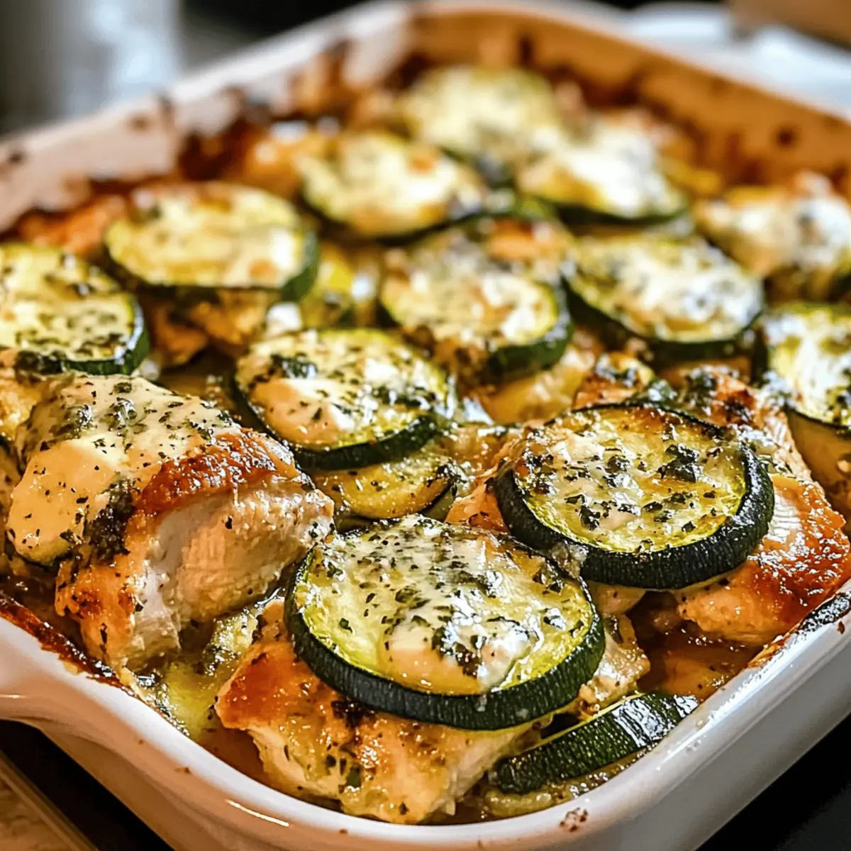 Dieses Rezept für Mediterranes Hähnchen Zucchini Auflauf kombiniert zartes Hähnchen, frische Zucchini und würzigen Feta für ein kohlenhydratfreundliches Gericht.