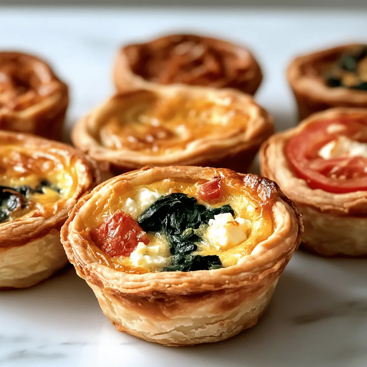 Der Duft frisch gebackener Mini-Quiches erinnert mich sofort an gesellige Brunch-Tage mit Freunden. Diese kleinen, aber feinen Küchlein, gefüllt mit einer köstlichen Mischung aus Eiern und Ihrem Lieblingsbelag, sind nicht nur unglaublich vielseitig, sondern auch ein absoluter Crowd-Pleaser! Ob für eine Feier, einen schnellen Snack oder als Meal Prep für die kommende Woche – Mini-Quiches sind die perfekte Lösung. Sie lassen sich ganz nach Ihrem Geschmack anpassen und stehen in nur wenigen Minuten auf dem Tisch. Neugierig, welche Füllungen Sie ausprobieren können? Lassen Sie uns gemeinsam diese kleinen Wunder zubereiten! Warum sind Mini-Quiches so beliebt? Vielseitigkeit: Mini-Quiches punkten mit einer Unmenge an individuellen Füllungsoptionen, von klassisch bis kreativ – perfekt für jeden Geschmack! Einfache Zubereitung: Der unkomplizierte Prozess macht es Ihnen leicht, sie im Handumdrehen zu backen und dennoch großartig auszusehen. Perfekte Portionen: Diese kleinen Häppchen sind nicht nur lecker, sondern auch ideal als Fingerfood bei Feiern oder für die nächste Familienfeier. Schnell gemacht: Mit minimalem Aufwand sind sie in kurzer Zeit fertig – eine unschlagbare Lösung für hektische Tage! Für jeden Anlass: Ob als snackige Appetizer, fürs Brunch-Buffet oder als Meal Prep – Mini-Quiches sind wahre Alleskönner in der Küche! Probieren Sie auch mal diese Ideen für Füllungen, um noch mehr Abwechslung zu schaffen! Mini-Quiche Zutaten • Für die Kruste und die Basis: Kühlere Teigkruste – Die perfekte Grundlage für die Mini-Quiches; verwenden Sie gerne einen selbstgemachten Teig für noch mehr Frische. Große Eier – Der Hauptbestandteil, der Struktur und Protein liefert; keine Ersatzstoffe empfehlenswert. Schlagsahne – Sorgt für eine reiche und cremige Füllung; verwenden Sie halb und halb für eine leichtere Variante. Vollmilch – Balanciert die Schlagsahne aus; kann durch pflanzliche Milch (z.B. Mandelmilch) ersetzt werden, um die Quiche vegan zu gestalten. • Für die Füllungen: Gekochter Speck – Bringt herzhaftes Aroma und Textur; für eine vegetarische Option mit gekochter Wurst oder Gemüse ersetzen. Geriebener Gruyère-Käse – Liefert nussigen Geschmack und Schmelz; tauschen Sie ihn gegen Cheddar oder Mozzarella für andere Geschmacksrichtungen. Fein gehackte Frühlingszwiebeln – Sorgt für Frische; Lauch kann eine gute Alternative sein. Frisch gehackter Spinat – Fügt Farbe und Nährstoffe hinzu; verwenden Sie Grünkohl oder ein anderes Gemüse nach Wahl. Krümeliger Feta-Käse – Sorgt für eine pikante Note; ersetzen Sie ihn durch Ziegenkäse für eine besondere Note. Fein gehackte Champignons – Bringen einen umami Geschmack; jedes sautierte Gemüse kann ersetzen. Geriebener Schweizer Käse – Eine weitere schmelzende Option, kann auch durch Provolone ersetzt werden. Frischer Thymian (optional) – Verstärkt die Kräuternoten; lassen Sie ihn weg, wenn keine frischen Kräuter vorhanden sind oder ersetzen Sie ihn durch getrockneten Thymian. Würfelig gekochter Schinken – Bietet eine fleischige Option; durch Truthahn-Bacon ersetzen oder für vegetarische Quiches weglassen. Geriebener scharfer Cheddar-Käse – Schmeckt intensiver; verwenden Sie milden Cheddar für einen weniger intensiven Geschmack. • Für die Garnierung: Chopped Petersilie – Fügt einen frischen Kräutergeschmack als Garnitur hinzu; kann auch durch Schnittlauch ersetzt werden. Mit diesen köstlichen Mini-Quiche Zutaten sind Sie bereit, Ihre ganz eigenen, individuellen Kreationen zu zaubern – perfekt für jeden Anlass! Schritt-für-Schritt-Anleitung für Mini-Quiches Step 1: Ofen vorheizen und Muffinformen vorbereiten Heizen Sie zunächst Ihren Ofen auf 190°C vor und fetten Sie zwei Muffinformen mit 24 Mulden gut ein, um sicherzustellen, dass die Mini-Quiches später nicht kleben bleiben. Dies ist ein wichtiger Schritt, um die perfekte Konsistenz der Mini-Quiches zu gewährleisten. Step 2: Teig ausrollen und Formen ausschneiden Rollen Sie nun die gekühlten Teigkrusten auf einer bemehlten Arbeitsfläche aus. Schneiden Sie 48 Kreise mit einem Durchmesser von etwa 6,5 cm aus und drücken Sie diese vorsichtig in die Muffinförmchen. Lassen Sie die Formen dann für etwa 15 Minuten im Kühlschrank ruhen, damit der Teig fest bleibt. Step 3: Eimischung zubereiten In einer großen Schüssel schlagen Sie die Eier, Schlagsahne, Vollmilch, Salz und Pfeffer gut zusammen, bis die Mischung glatt und homogener ist. Dies ist die Basis für die cremige Füllung der Mini-Quiches. Gießen Sie die Mischung anschließend in einen Messbecher, um das Einfüllen in die Förmchen zu erleichtern. Step 4: Füllen der Muffinförmchen Füllen Sie jede Teigkruste gleichmäßig mit den gewählten Füllungen wie gekochtem Speck, Spinat oder Käse. Gießen Sie dann die vorbereitete Eimischung vorsichtig bis etwa drei Viertel voll in jede Form. Achten Sie darauf, nicht überzufüllen, damit die Mini-Quiches beim Backen nicht überlaufen. Step 5: Backen der Mini-Quiches Schieben Sie die Muffinformen in den vorgeheizten Ofen und backen Sie die Mini-Quiches für etwa 22-25 Minuten. Sie sind fertig, wenn die Eier fest und die Oberseite leicht goldbraun sind. Achten Sie darauf, dass sie nicht zu dunkel werden, um das köstliche Aroma zu bewahren. Step 6: Abkühlen und Servieren Lassen Sie die Mini-Quiches nach dem Backen etwa 5 Minuten in der Form abkühlen, bevor Sie sie vorsichtig auf ein Gitterrost setzen. So lassen sie sich besser handhaben. Servieren Sie die Quiches warm, bei Zimmertemperatur oder sogar kalt – perfekt für jeden Anlass! Expertentipps für Mini-Quiches Füllung variieren: Experimentieren Sie mit verschiedenen Füllungen, um Ihre Mini-Quiches ganz nach Ihrem Geschmack anzupassen und neue Kombinationen zu entdecken. Teig vorbereiten: Stellen Sie sicher, dass der Teig gut gekühlt ist, bevor Sie ihn in die Muffinformen drücken, um eine optimale Struktur und Fluffigkeit zu g