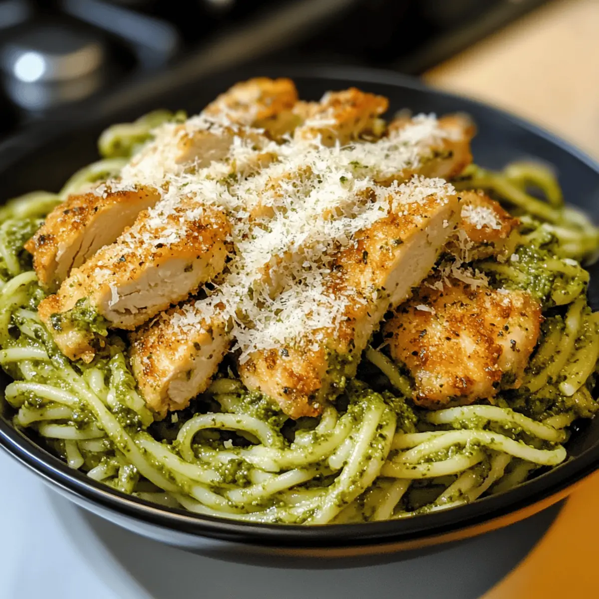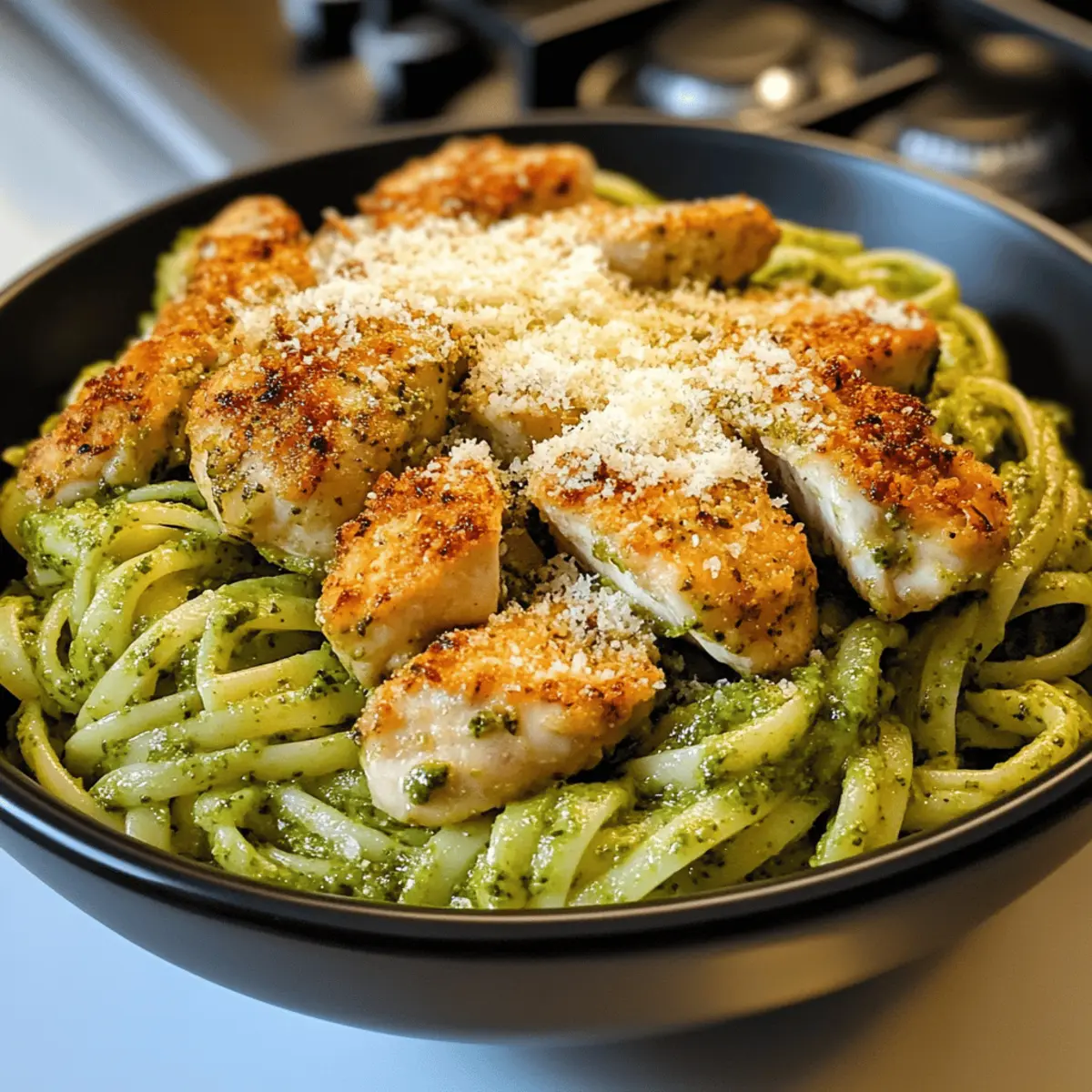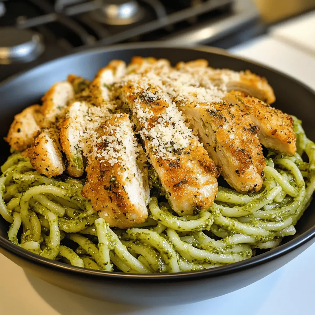 Pesto-Nudeln mit knusprigem Parmesan-Hühnchen ist ein köstliches und schnelles Gericht, das perfekt für jeden Geschmack anpassbar ist.